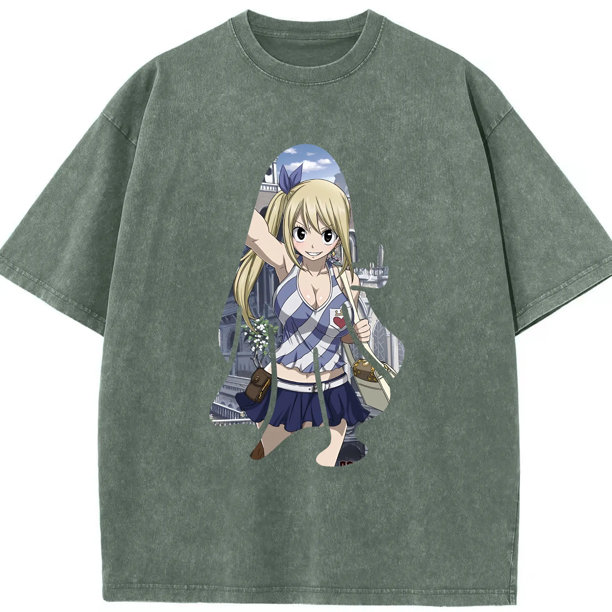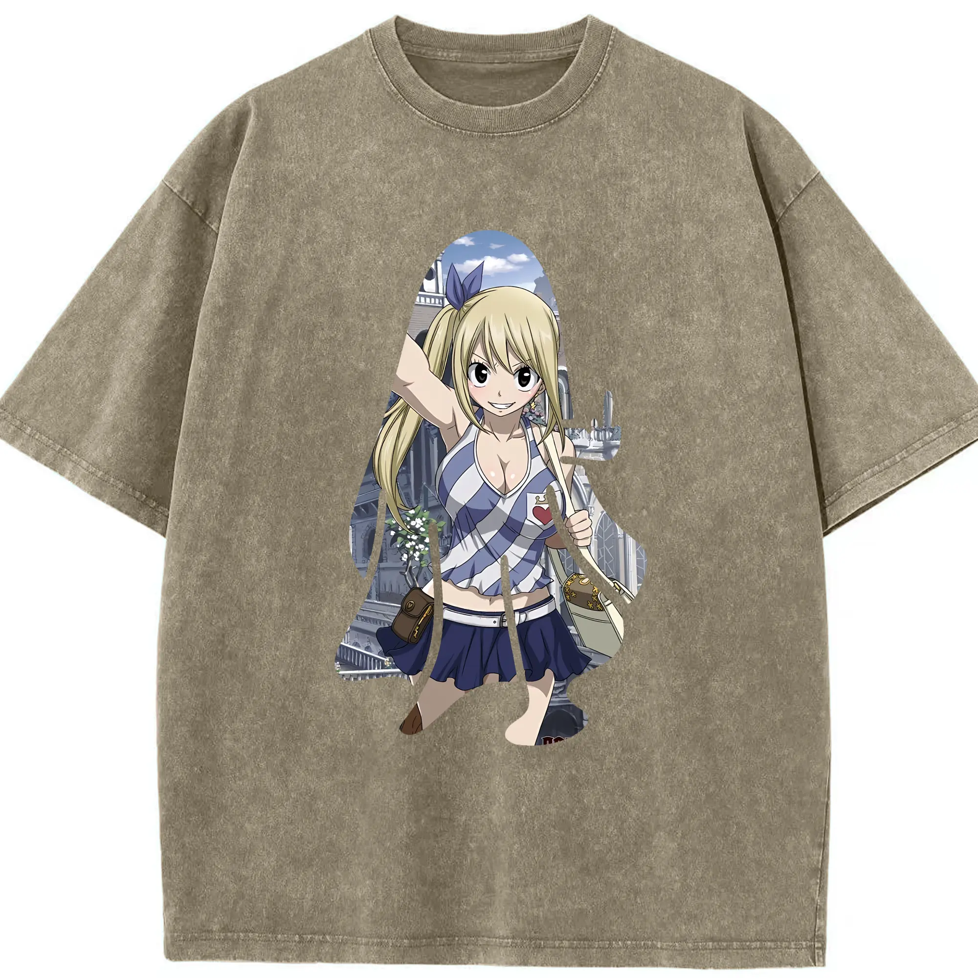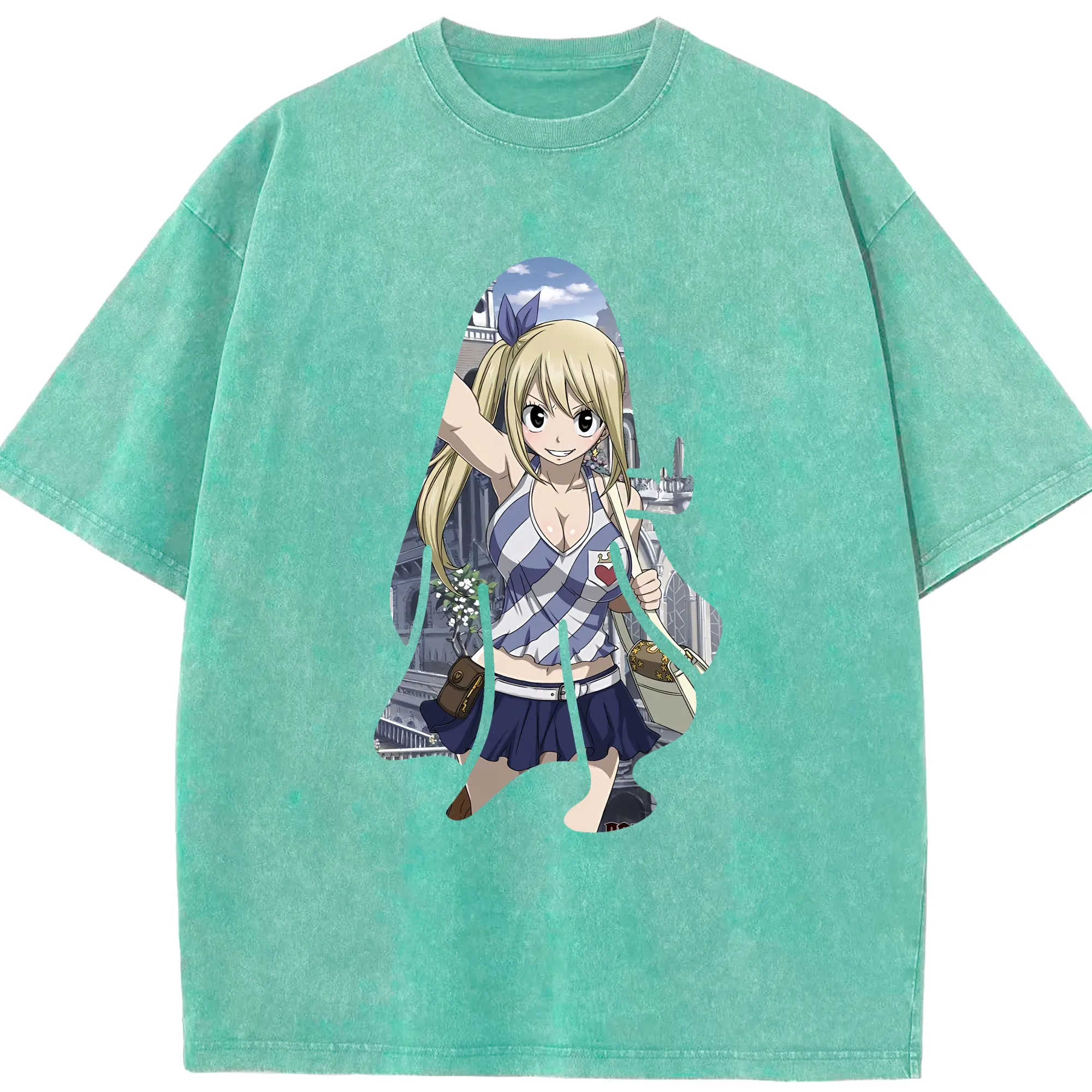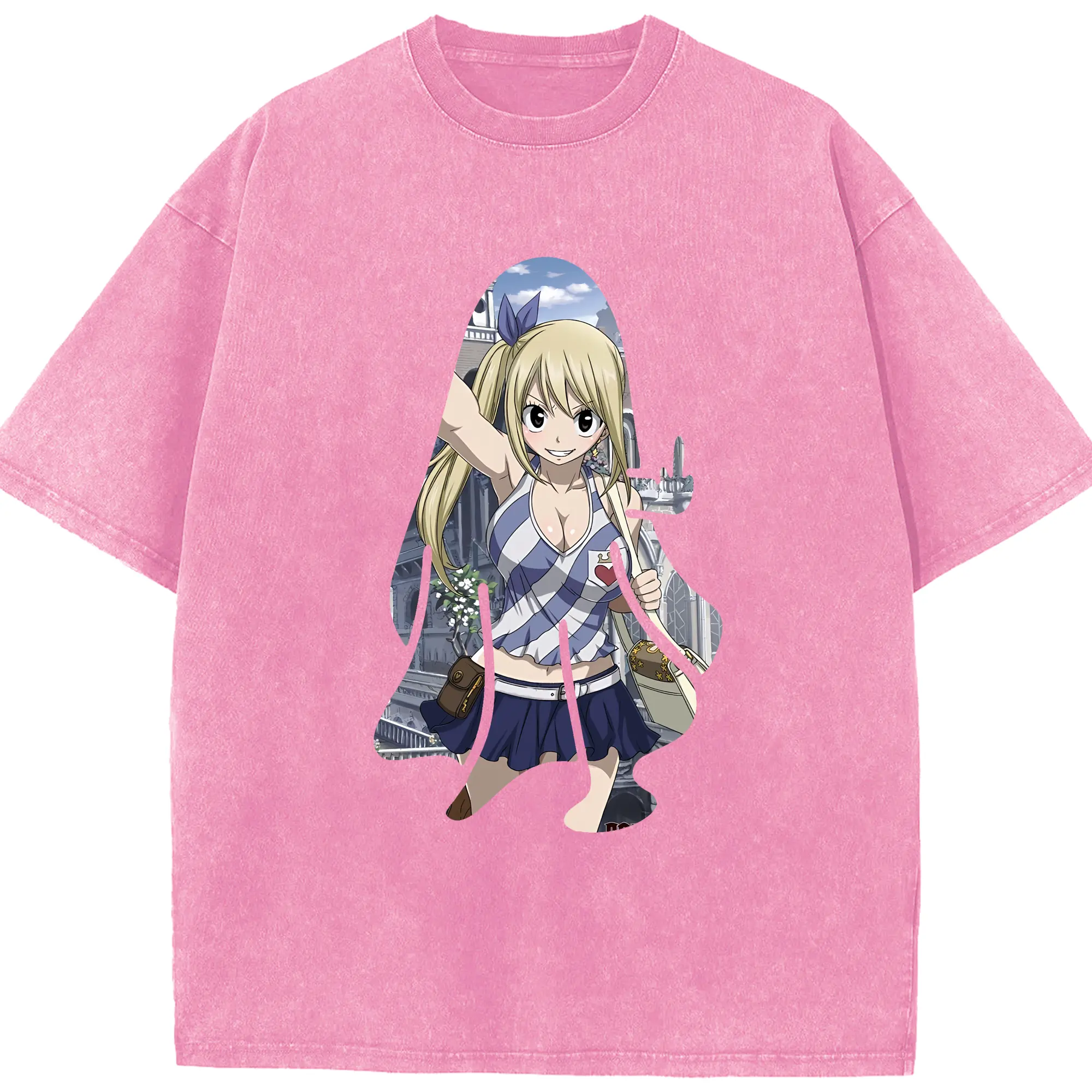 フェアリーテイル グッズ ルーシィ・ハートフィリア - 綿100% ヴィンテージ風 半袖Tシャツ ・ 背面プリント ・ 柔らか肌触り ・ 通気性 快適 ・ スポーツ カジュアル 外出用