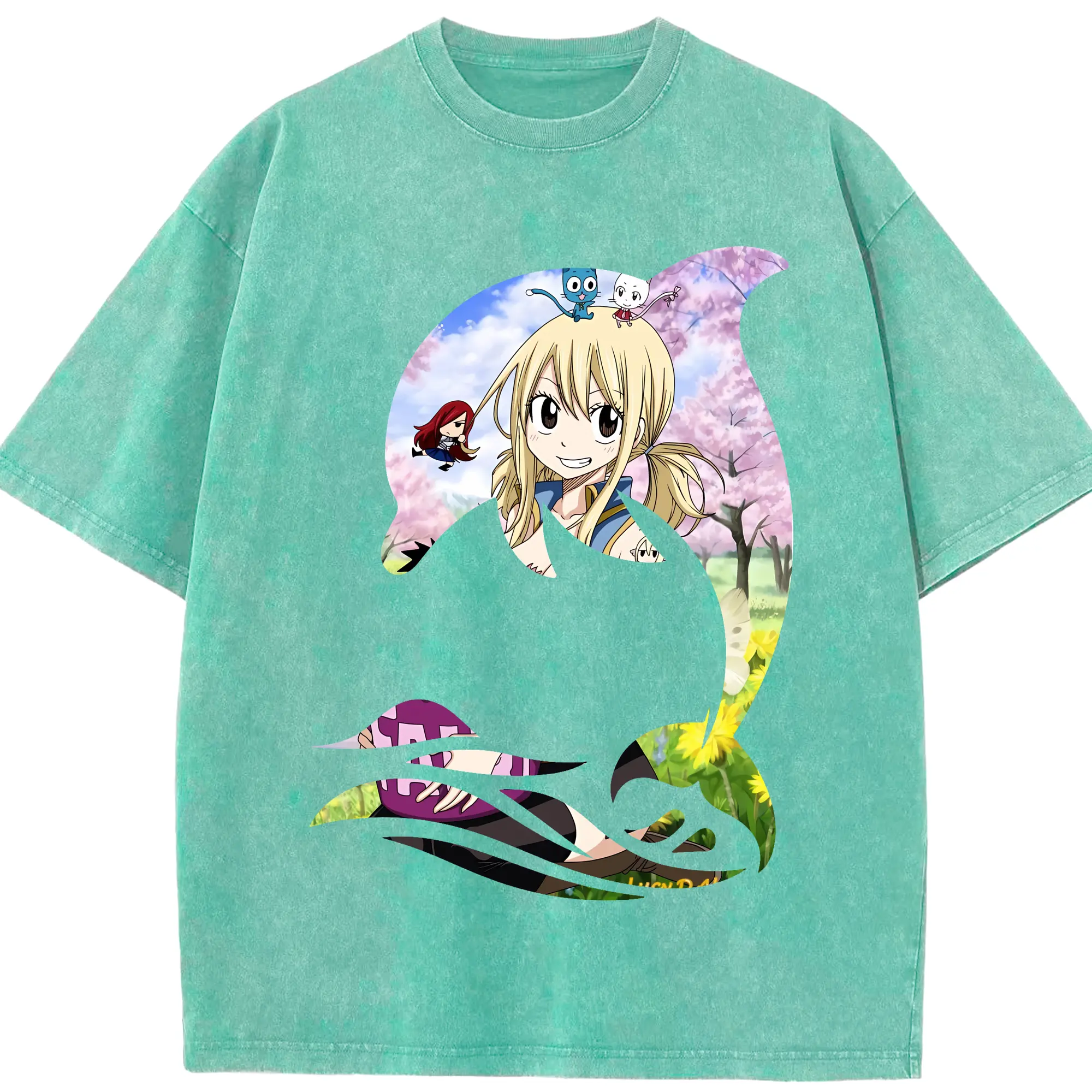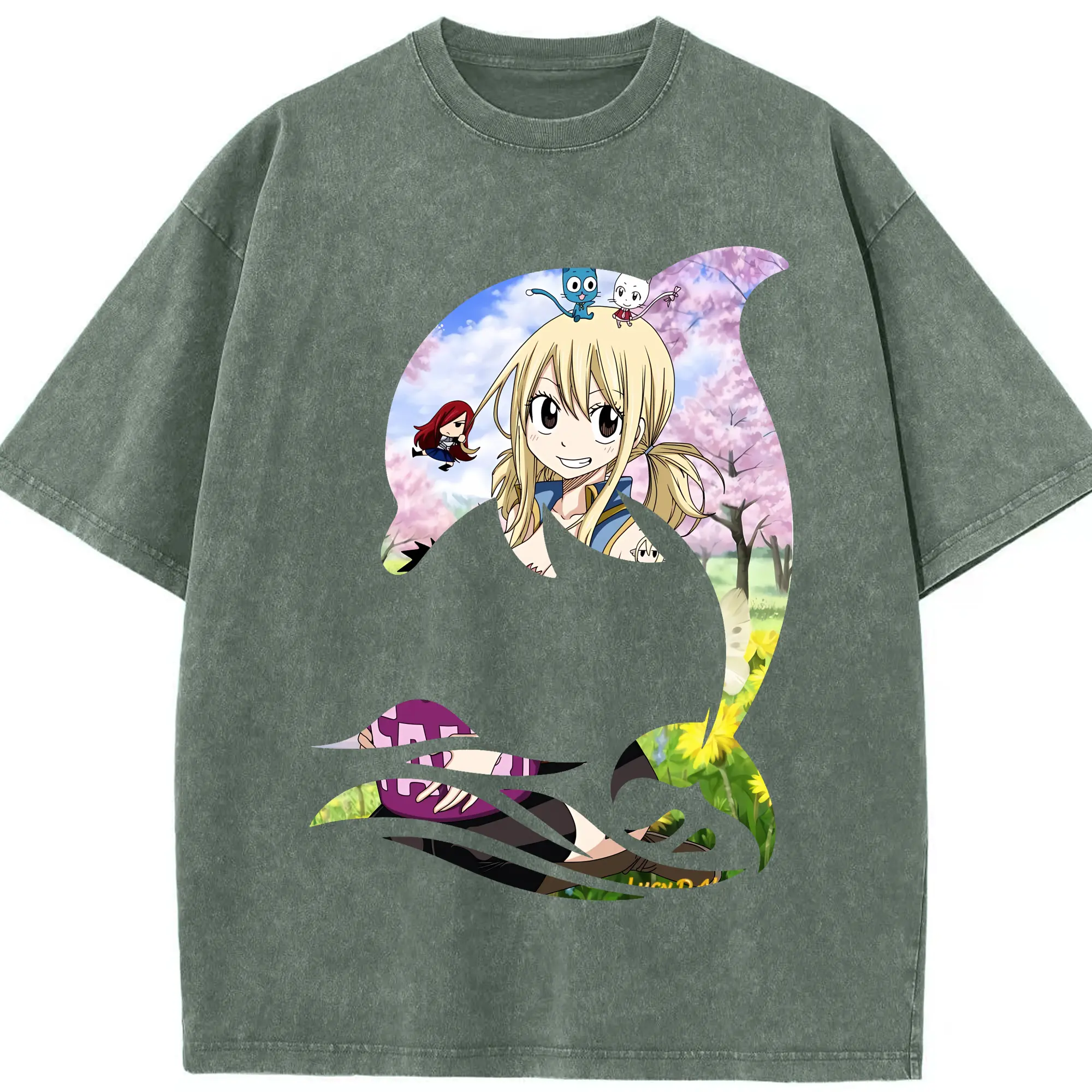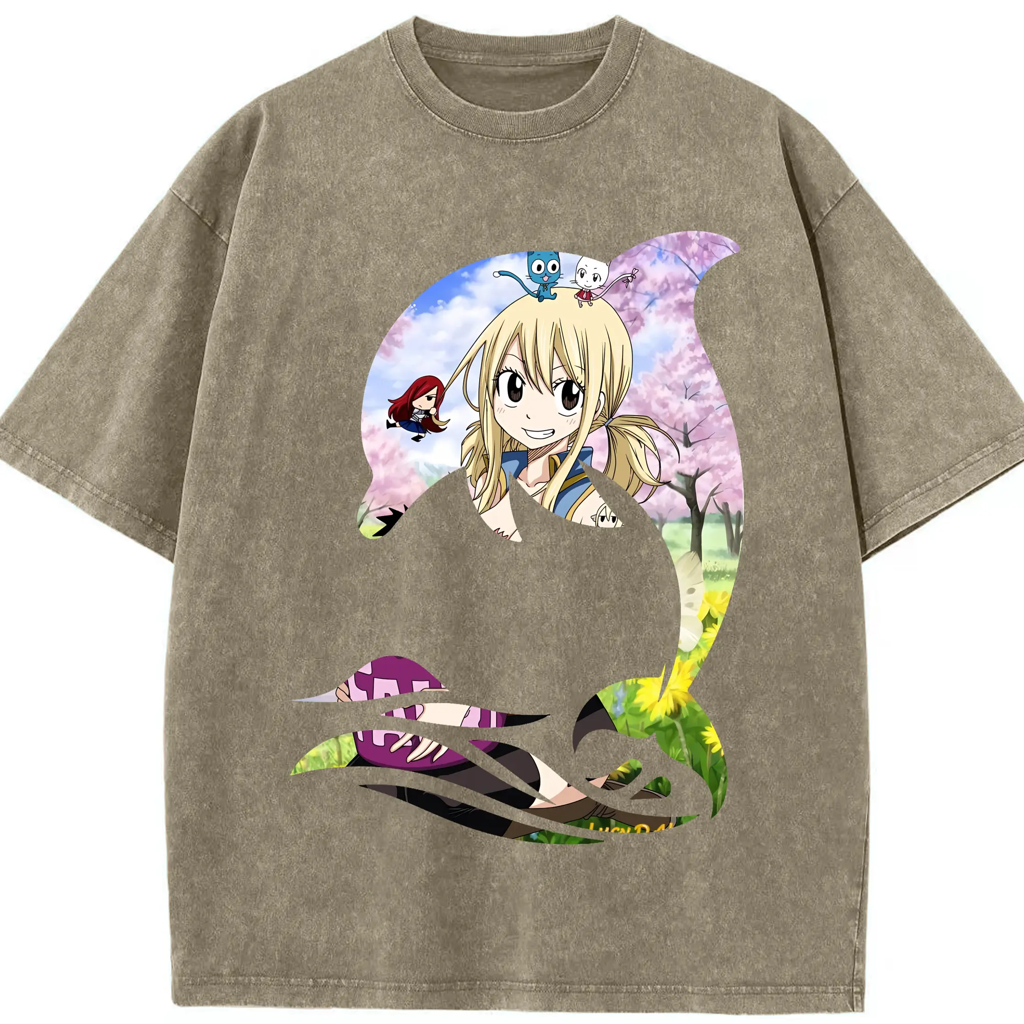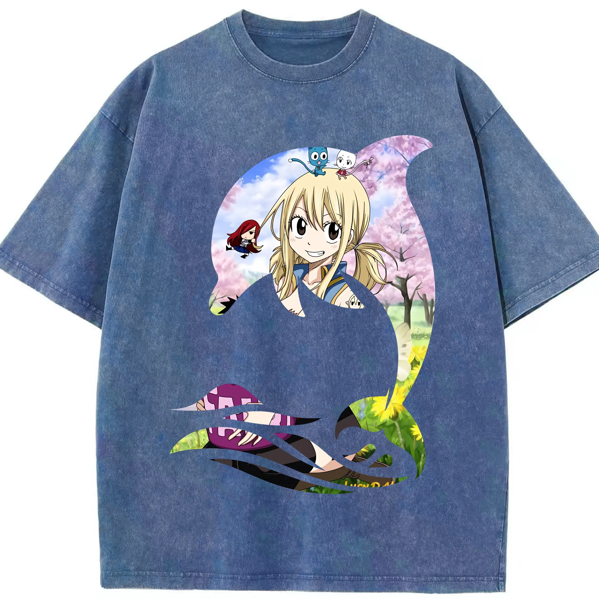 フェアリーテイル グッズ ルーシィ・ハートフィリア - 綿100% ヴィンテージ風 半袖Tシャツ ・ 背面プリント ・ 柔らか肌触り ・ 通気性 快適 ・ スポーツ カジュアル 外出用
