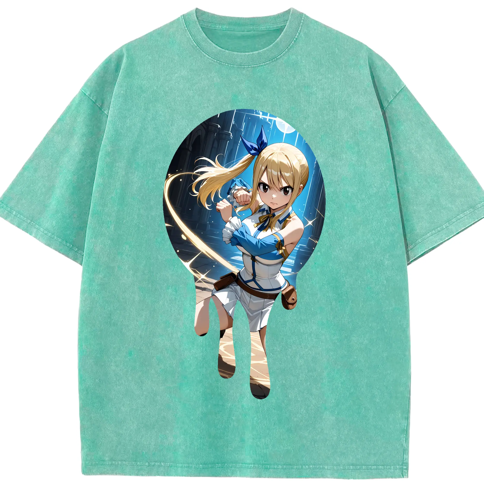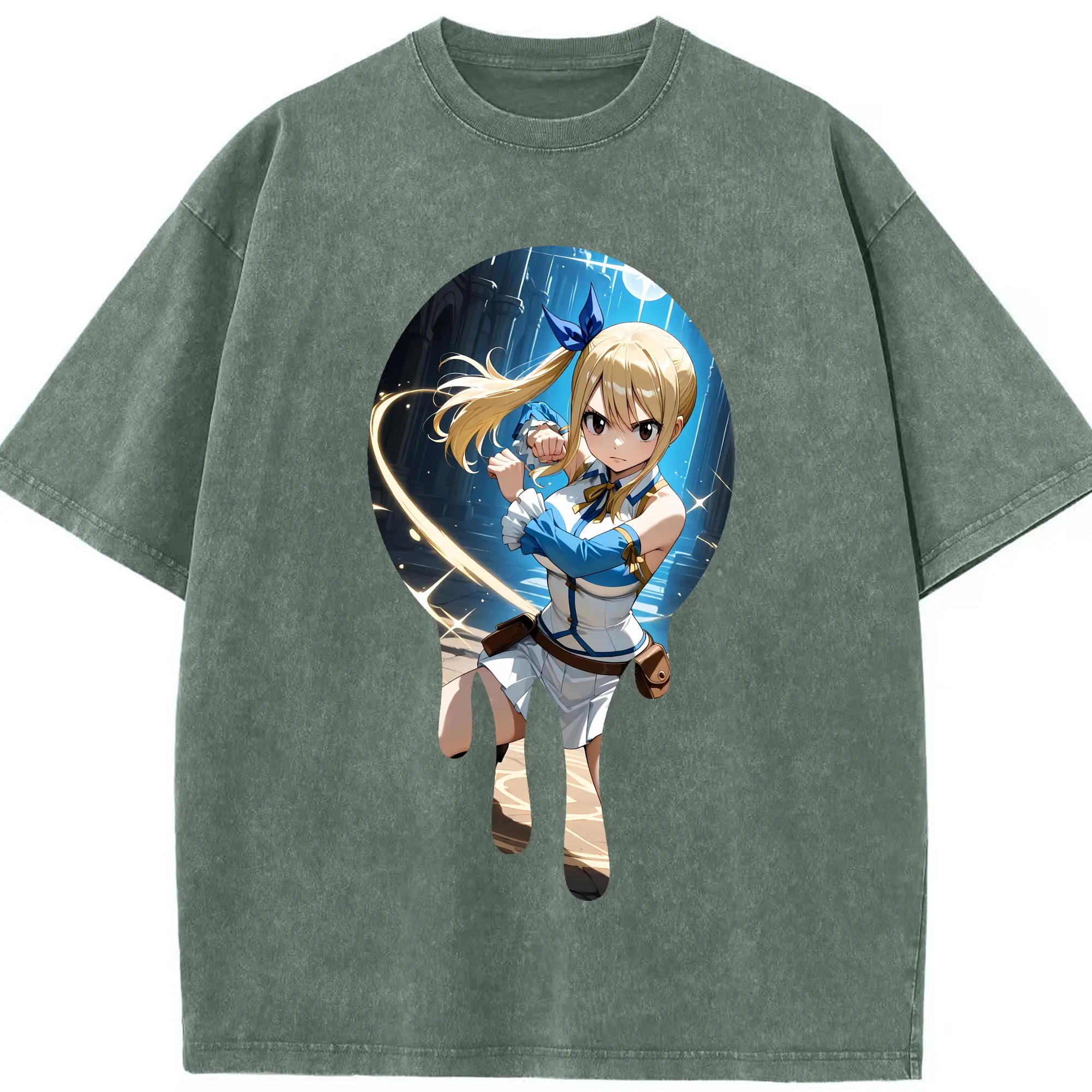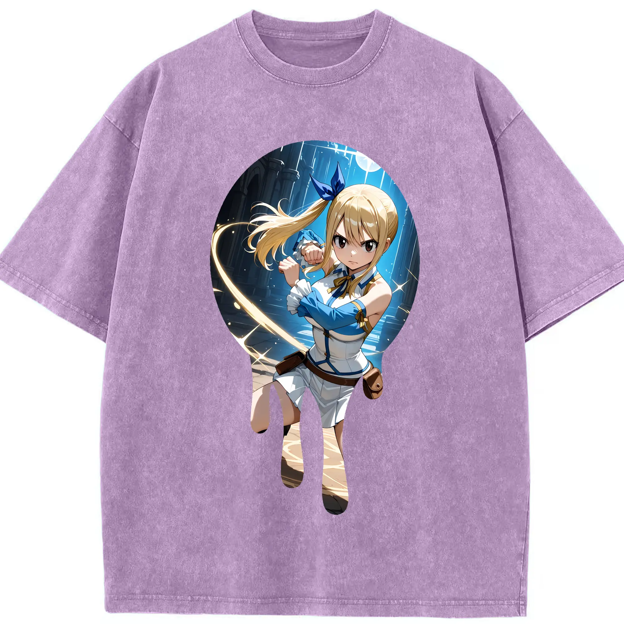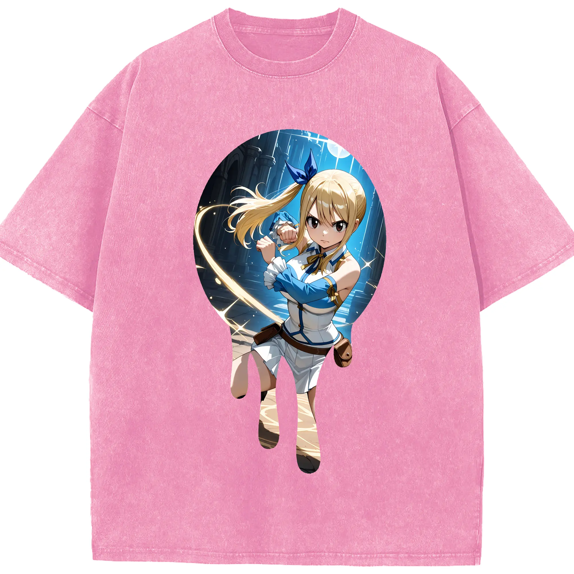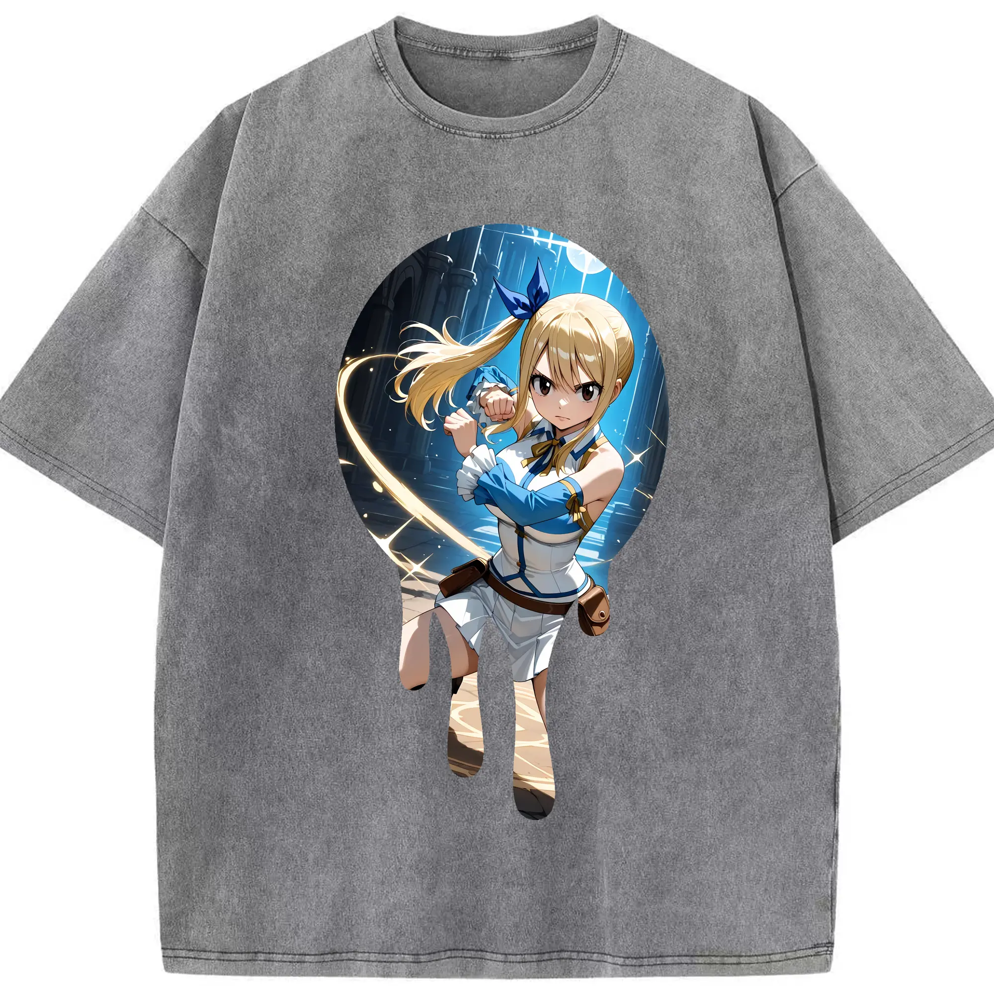 フェアリーテイル グッズ ルーシィ・ハートフィリア - 綿100% ヴィンテージ風 半袖Tシャツ ・ 背面プリント ・ 柔らか肌触り ・ 通気性 快適 ・ スポーツ カジュアル 外出用