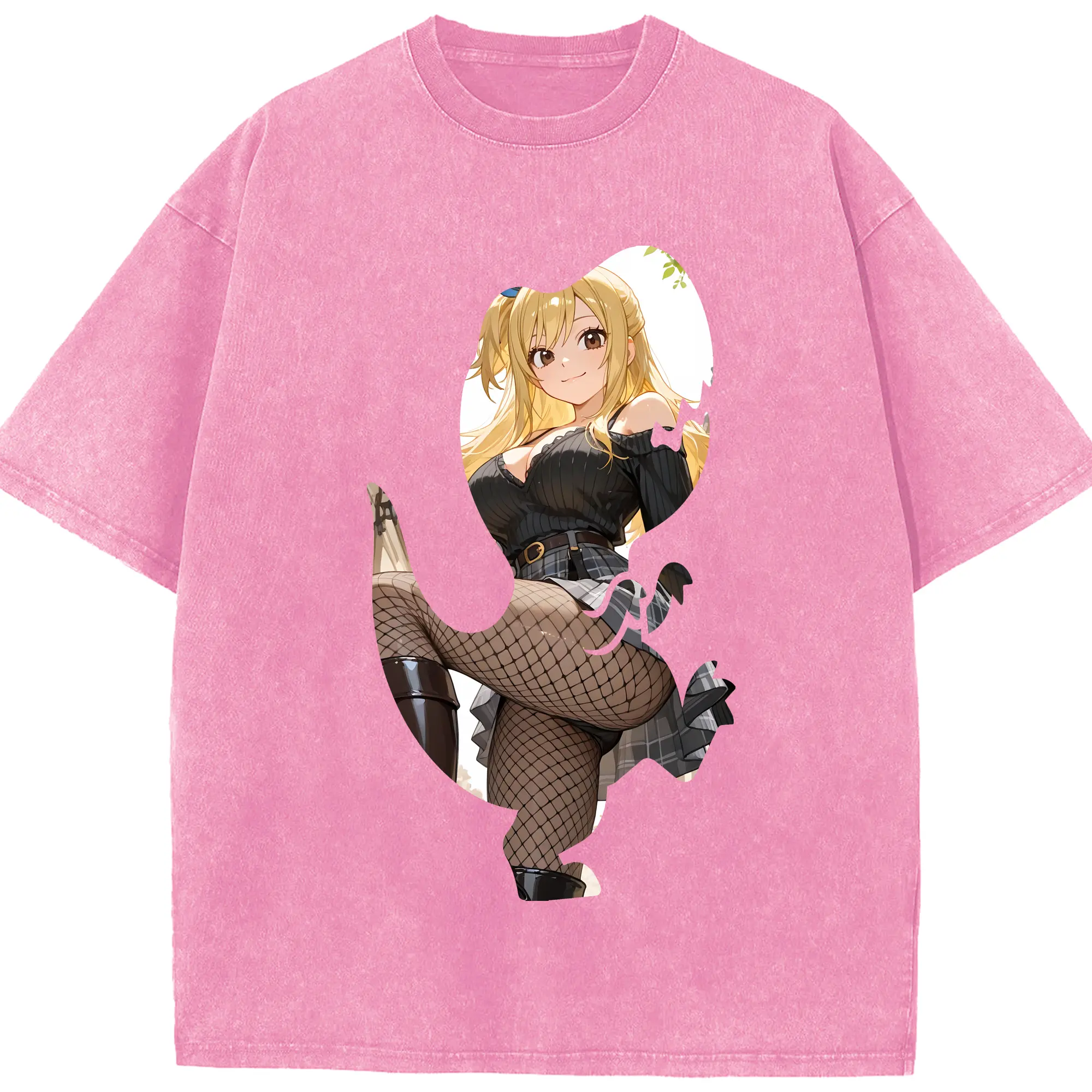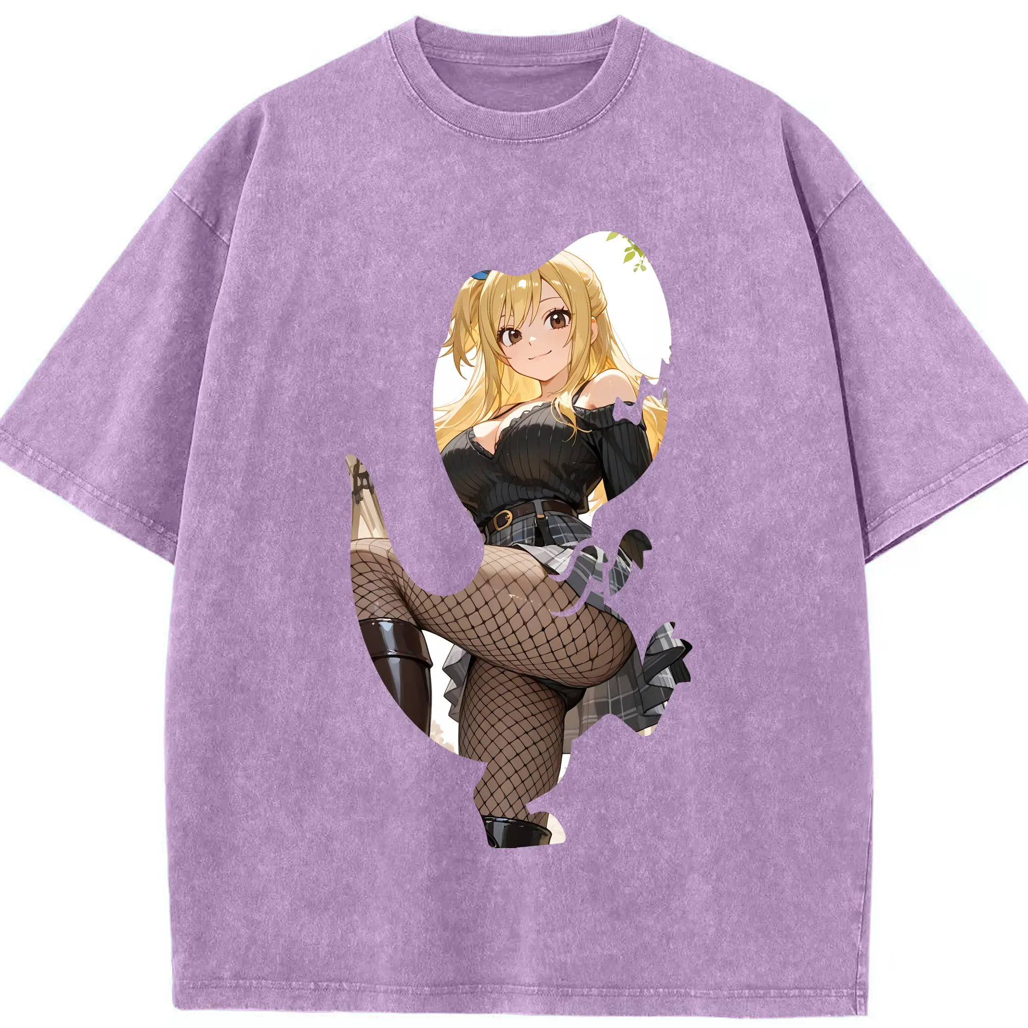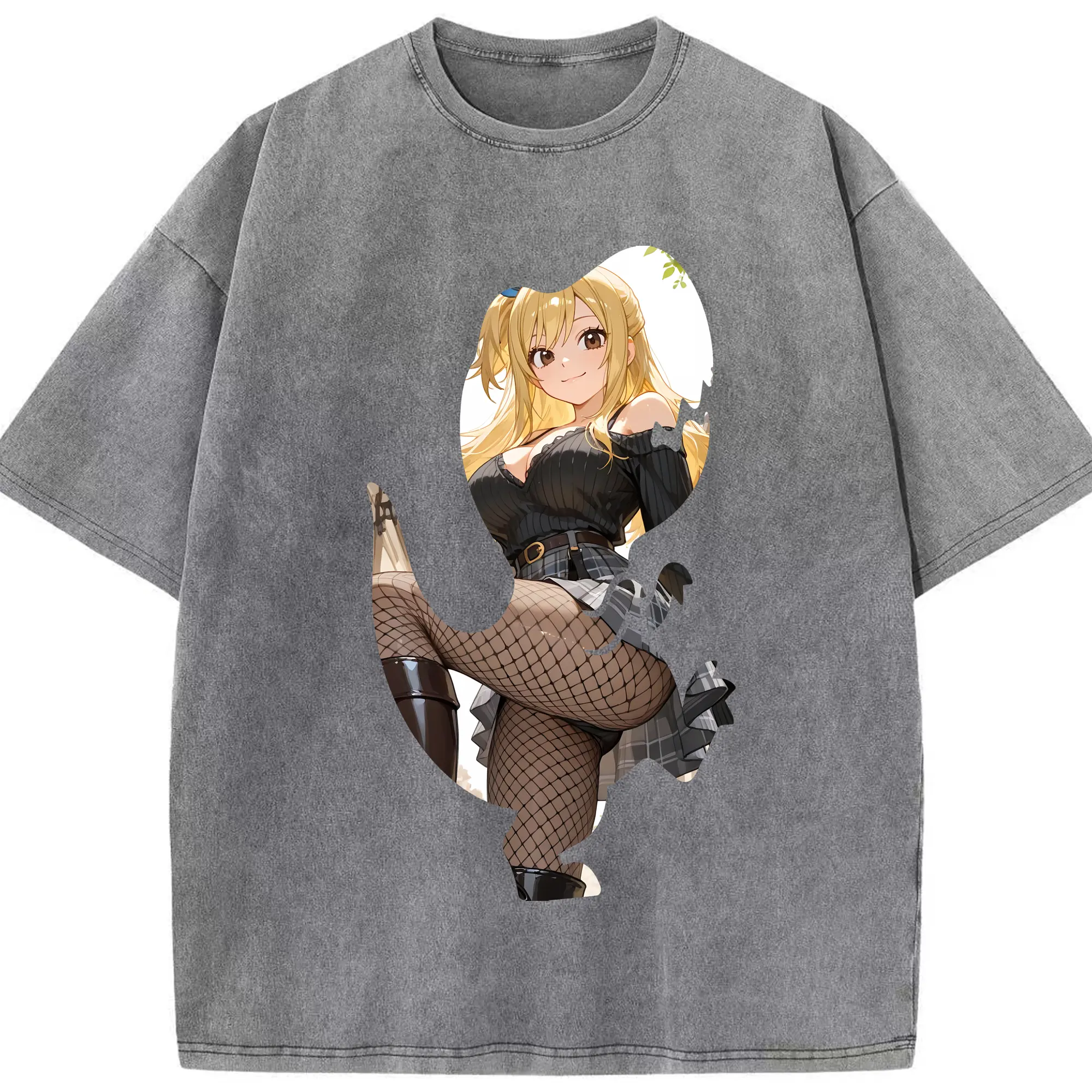 フェアリーテイル グッズ ルーシィ・ハートフィリア - 綿100% ヴィンテージ風 半袖Tシャツ ・ 背面プリント ・ 柔らか肌触り ・ 通気性 快適 ・ スポーツ カジュアル 外出用