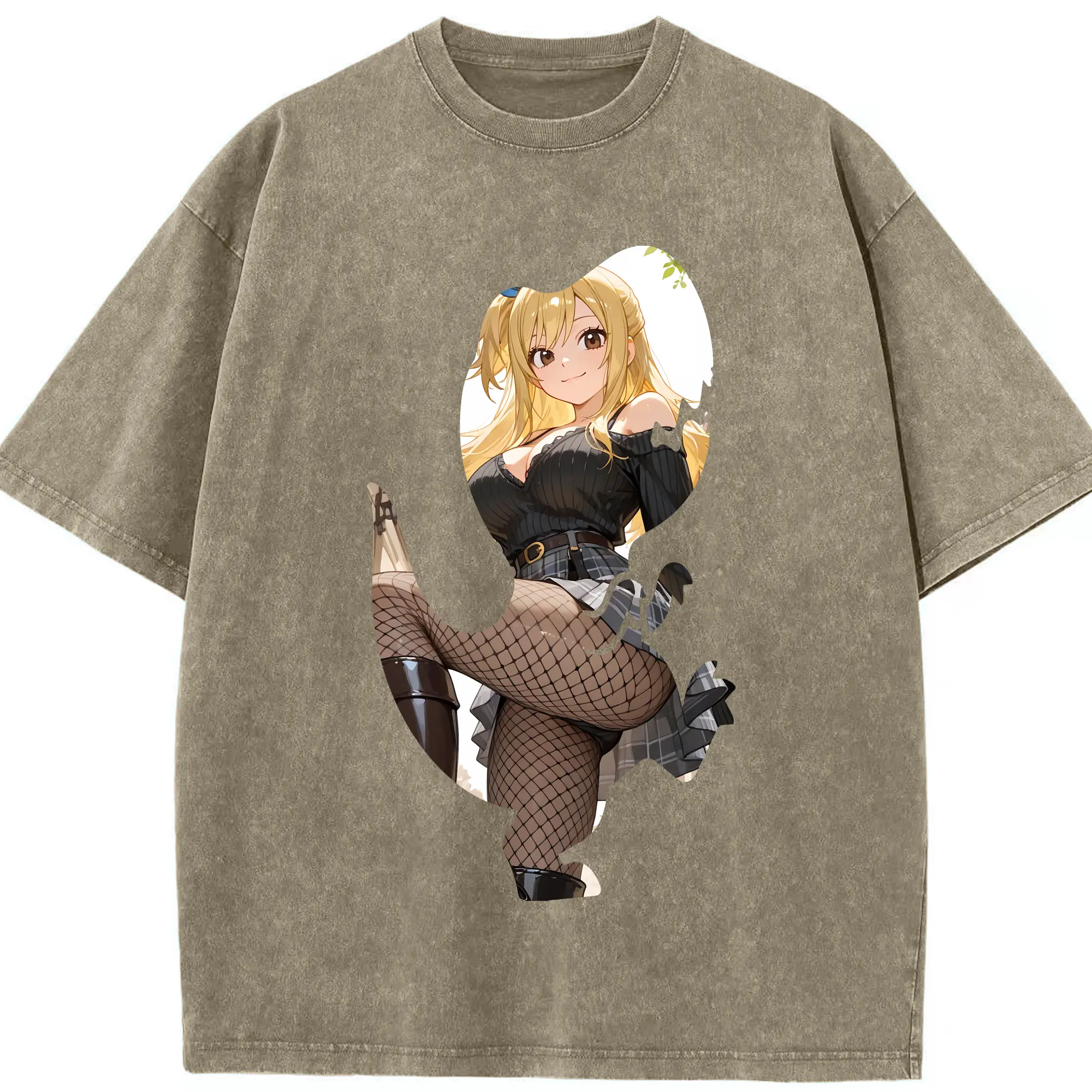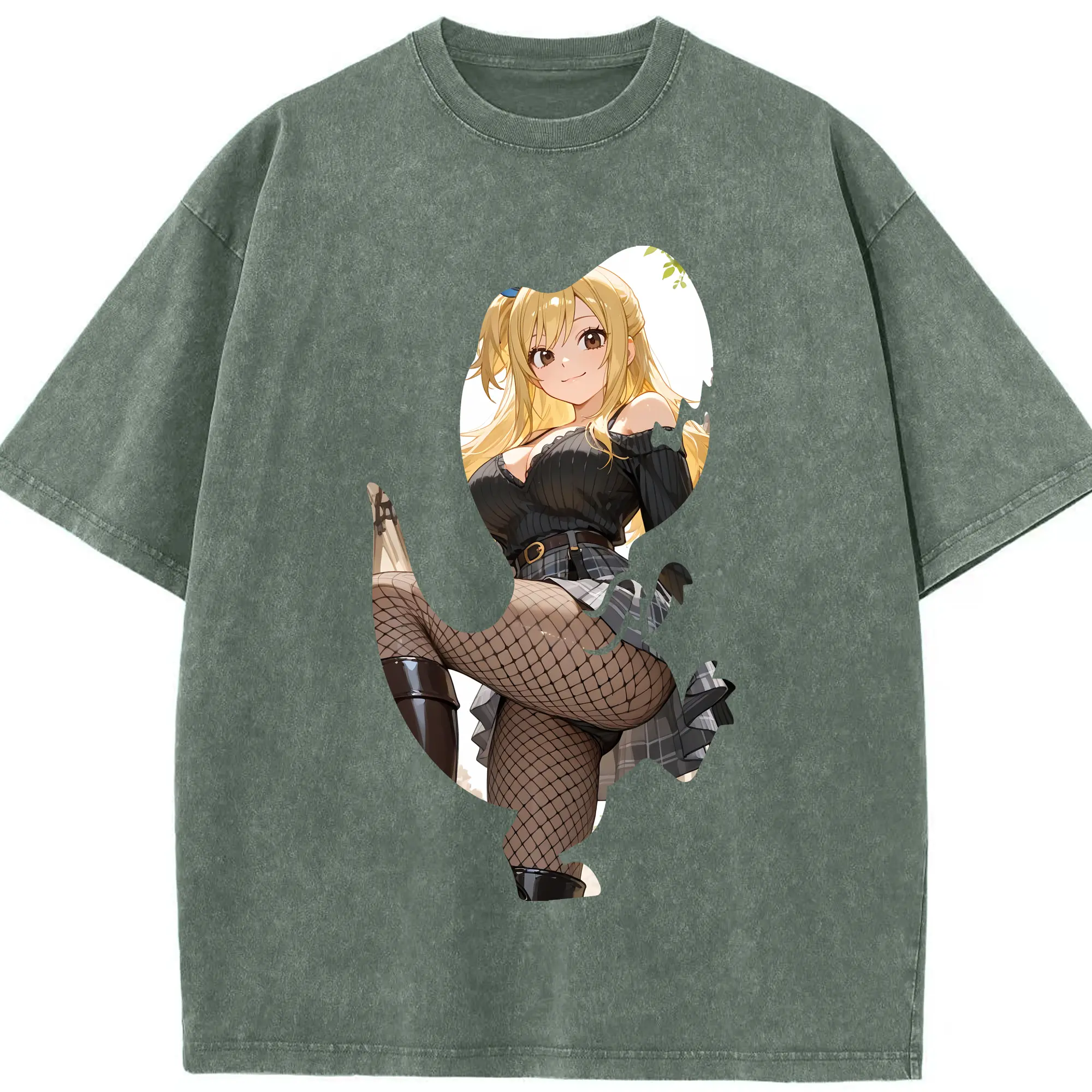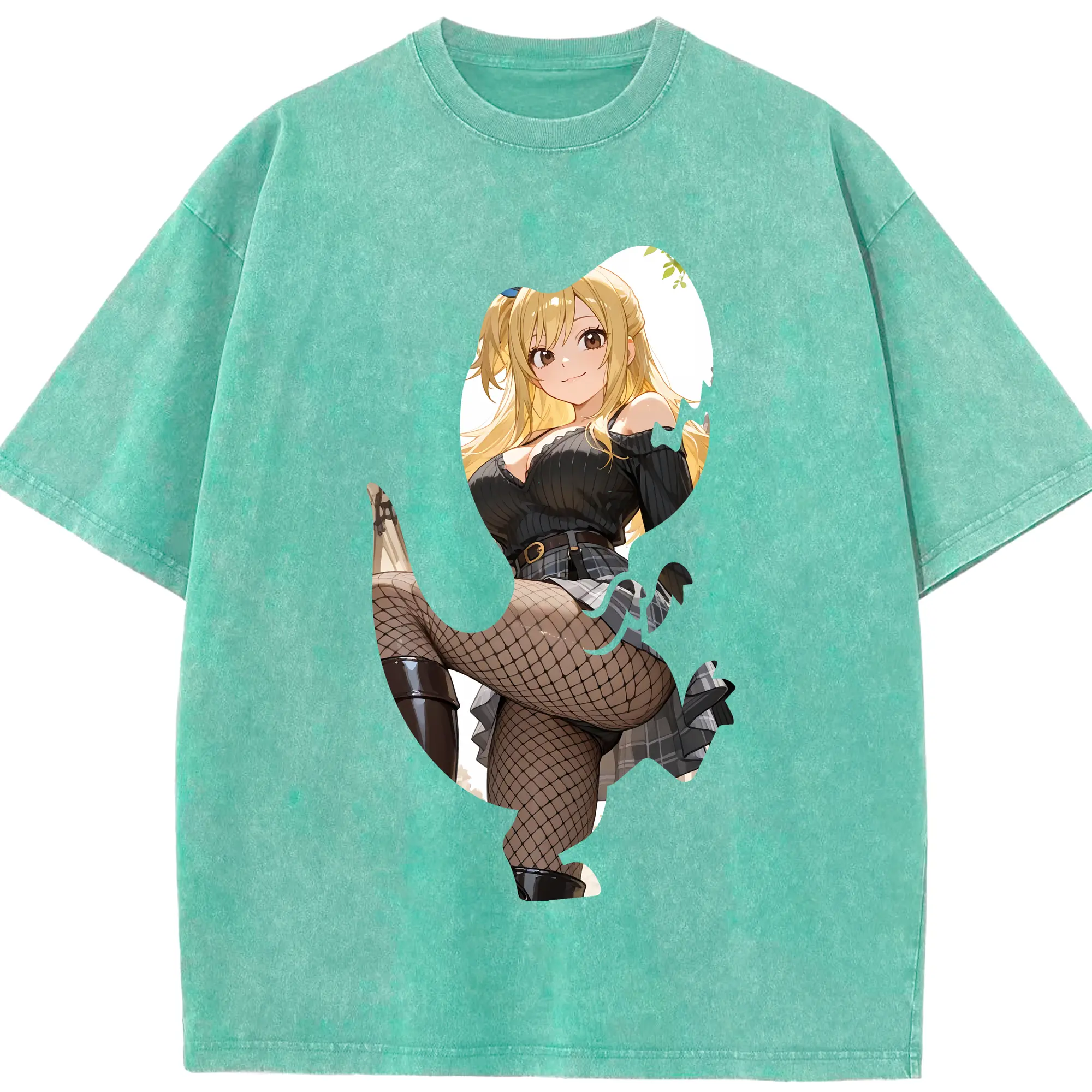 フェアリーテイル グッズ ルーシィ・ハートフィリア - 綿100% ヴィンテージ風 半袖Tシャツ ・ 背面プリント ・ 柔らか肌触り ・ 通気性 快適 ・ スポーツ カジュアル 外出用
