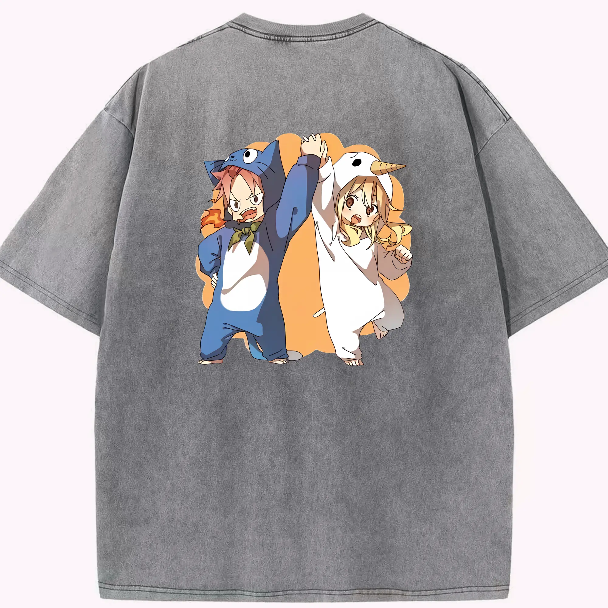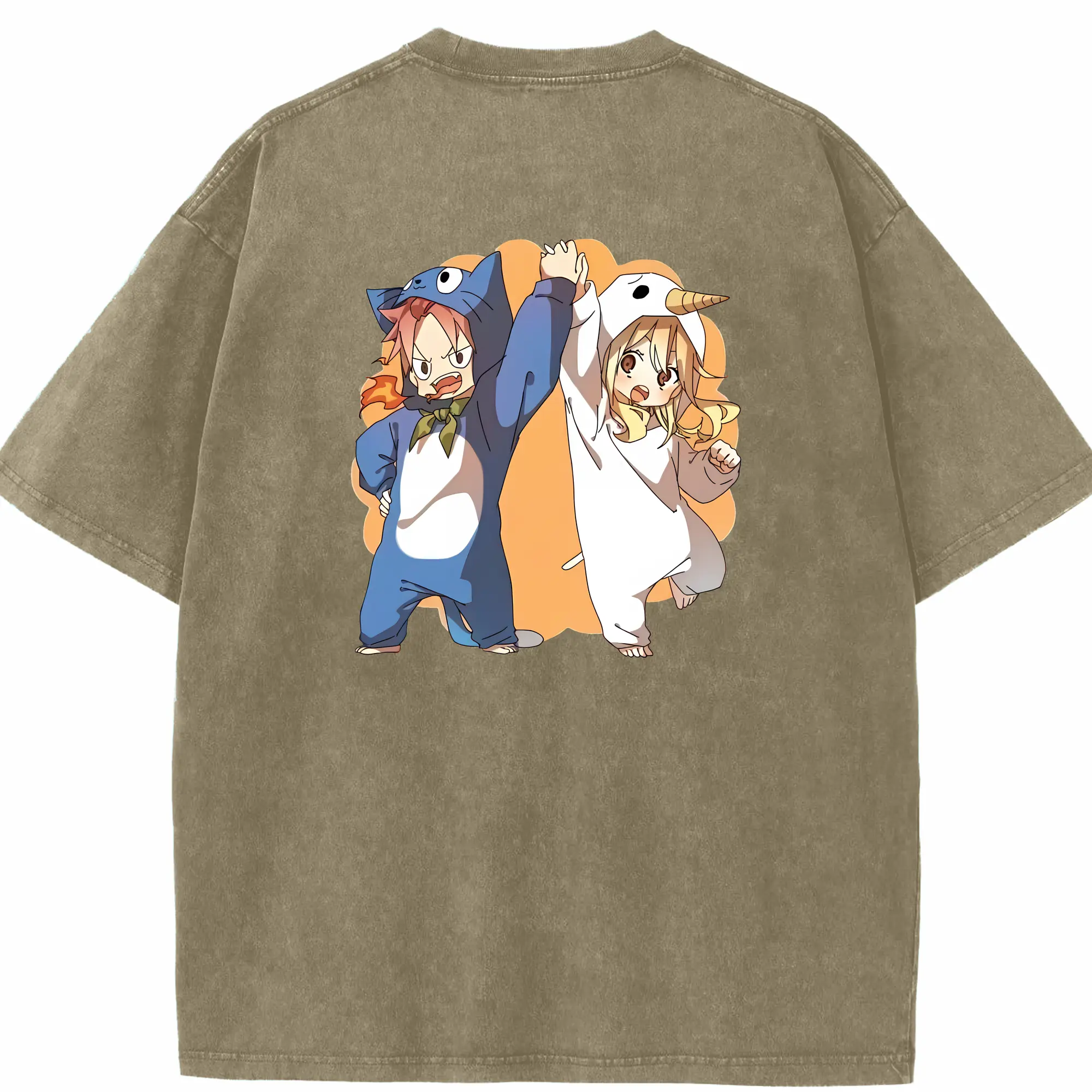 フェアリーテイル グッズ ルーシィ・ハートフィリア - 綿100% ヴィンテージ風 半袖Tシャツ ・ フロントプリント ・ 柔らか肌触り ・ 通気性 快適 ・ スポーツ カジュアル 外出用