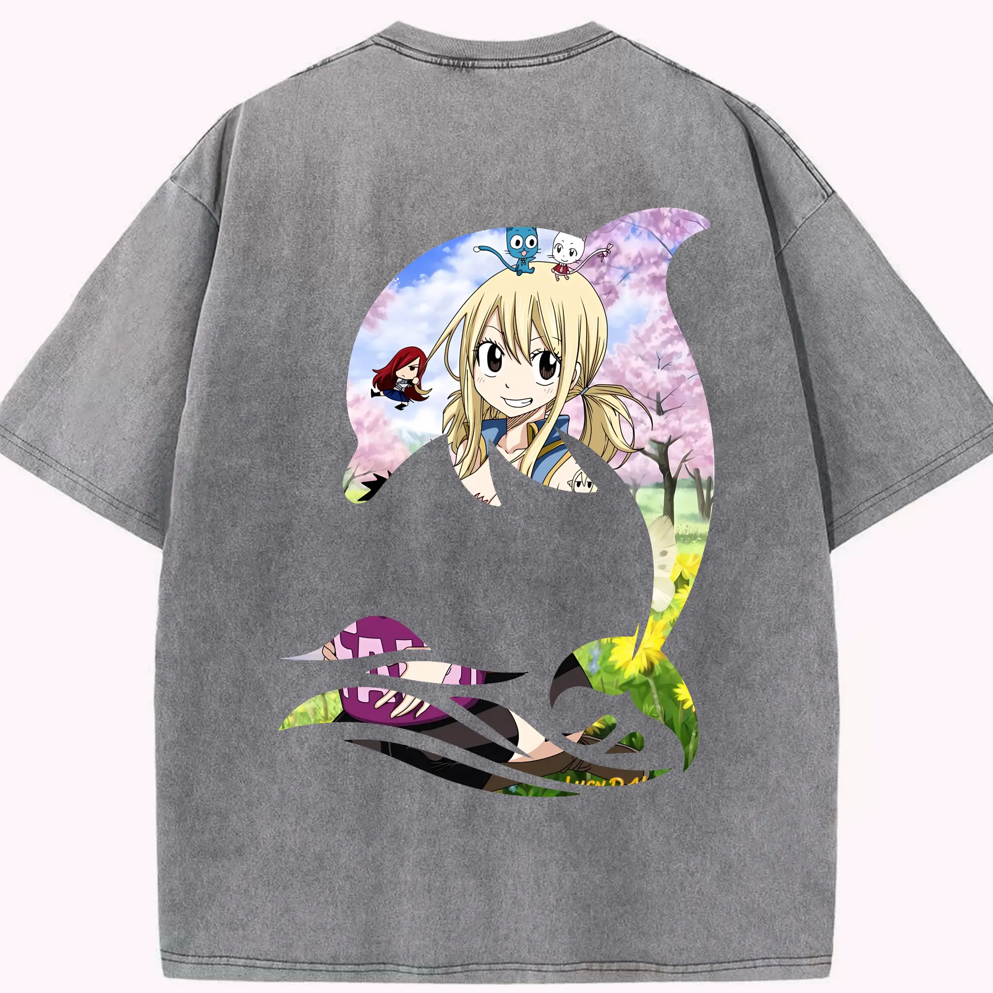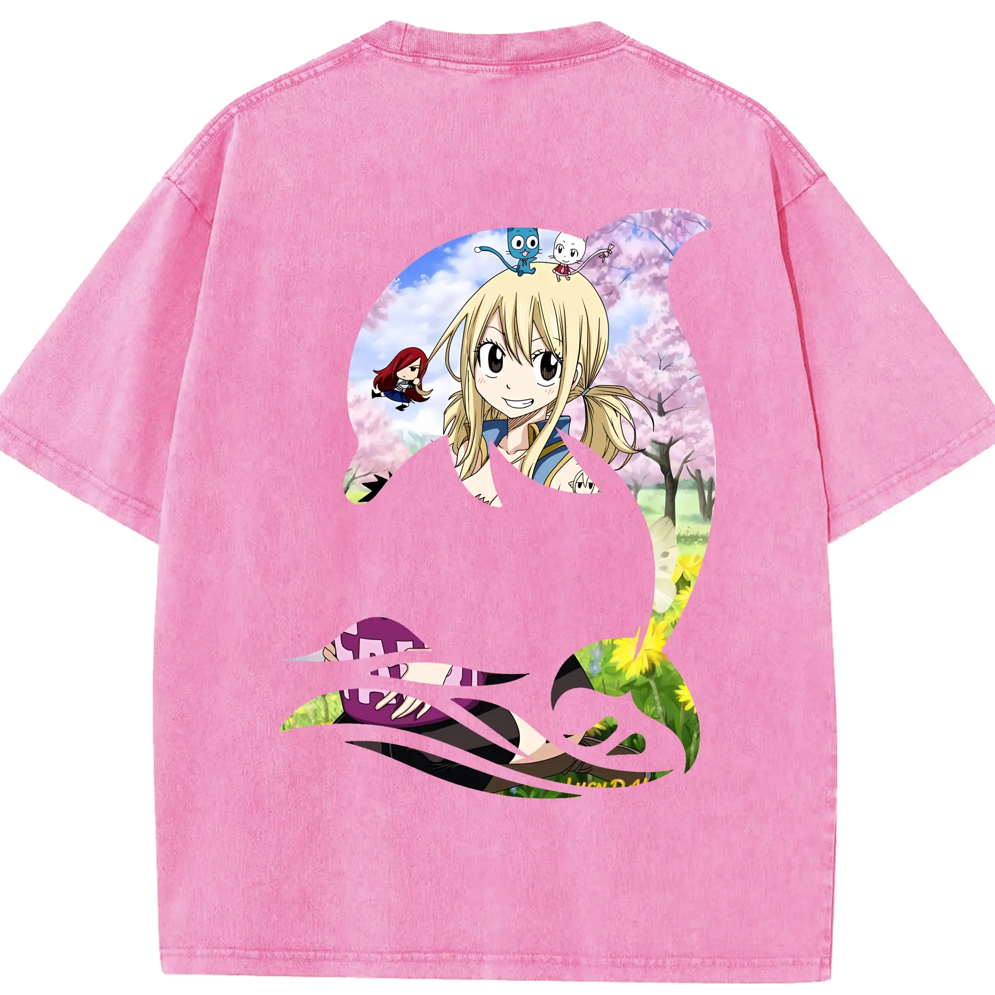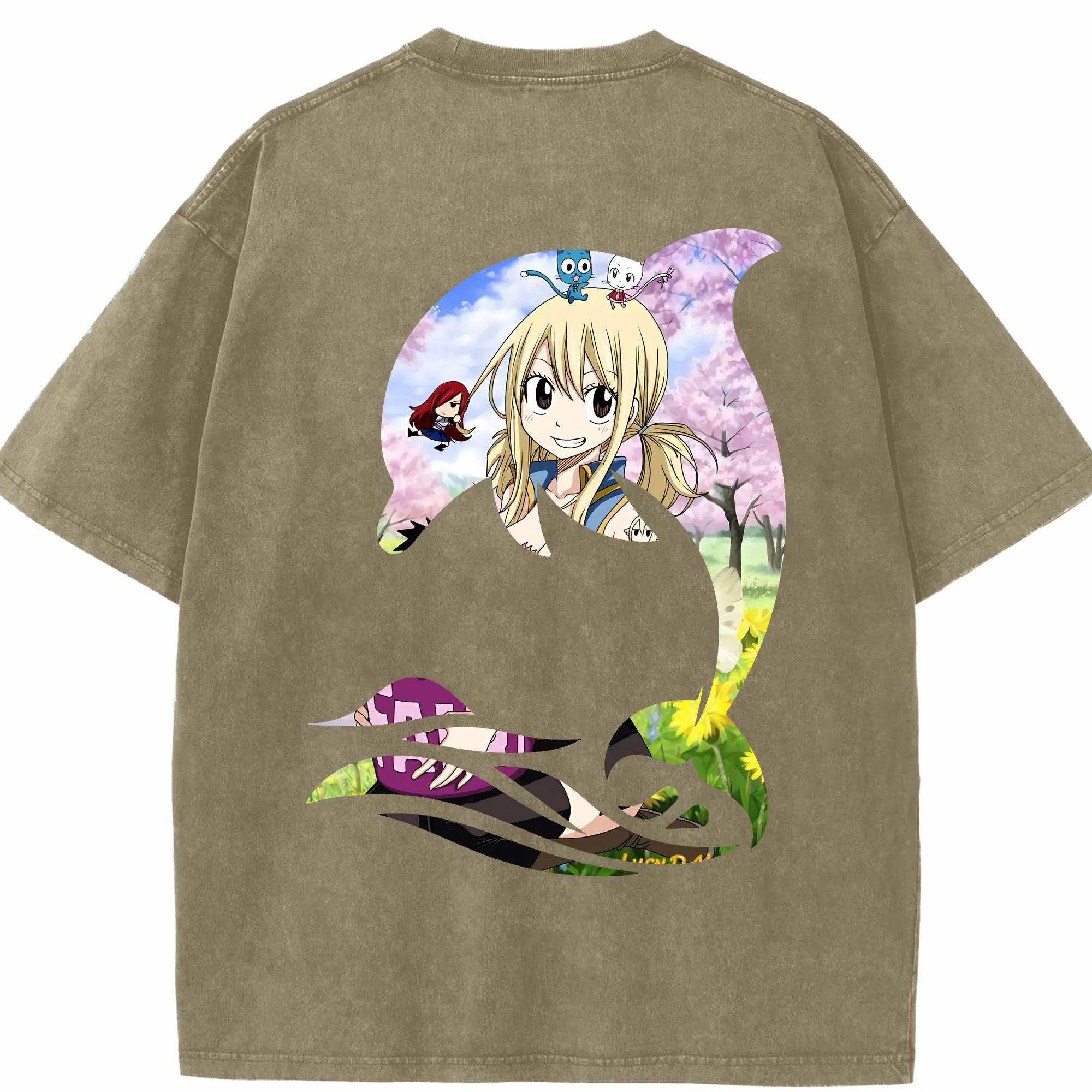 フェアリーテイル グッズ ルーシィ・ハートフィリア - 綿100% ヴィンテージ風 半袖Tシャツ ・ フロントプリント ・ 柔らか肌触り ・ 通気性 快適 ・ スポーツ カジュアル 外出用