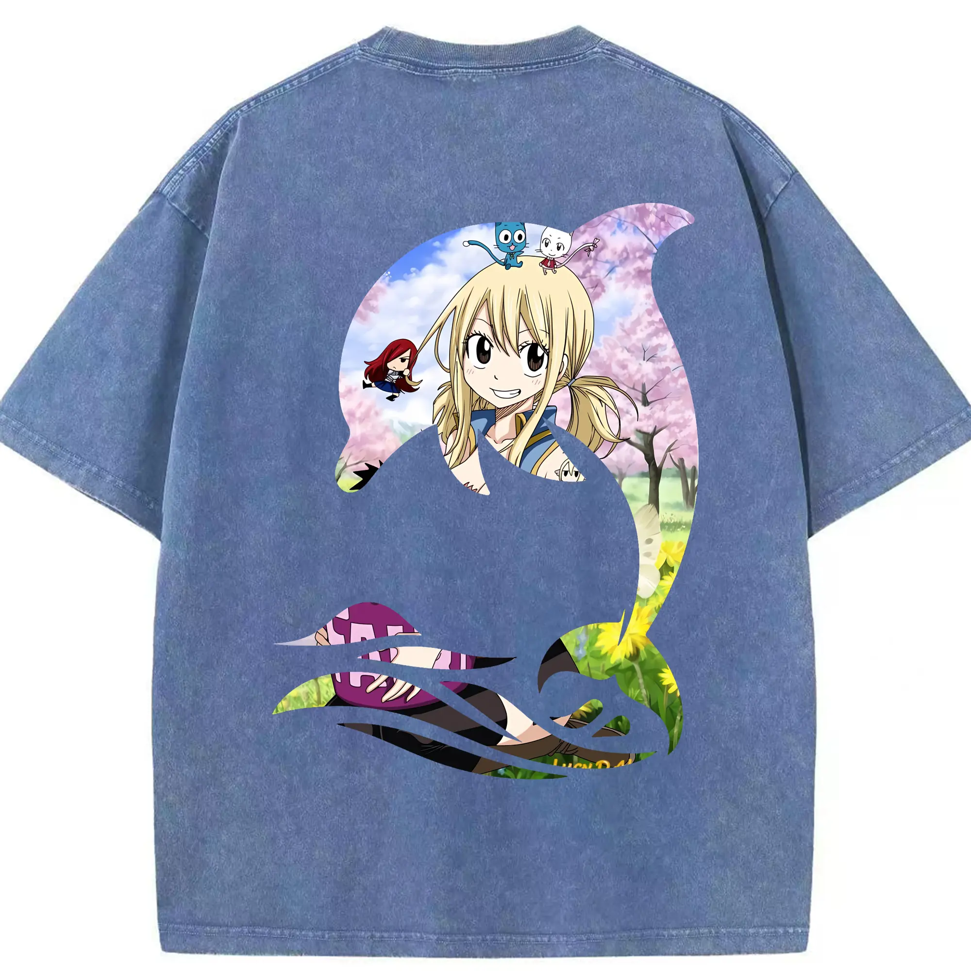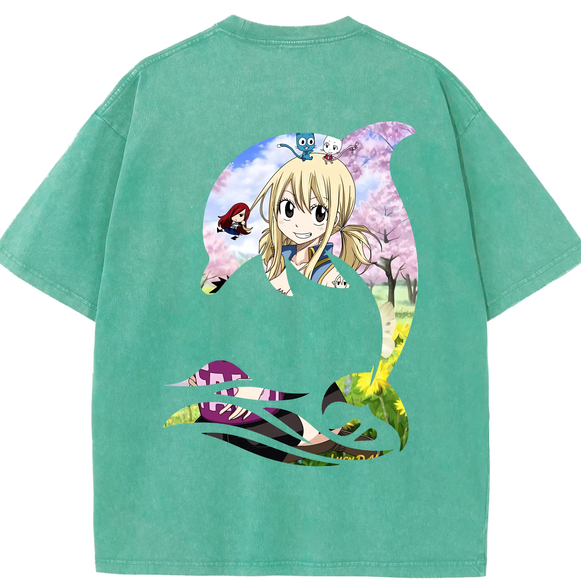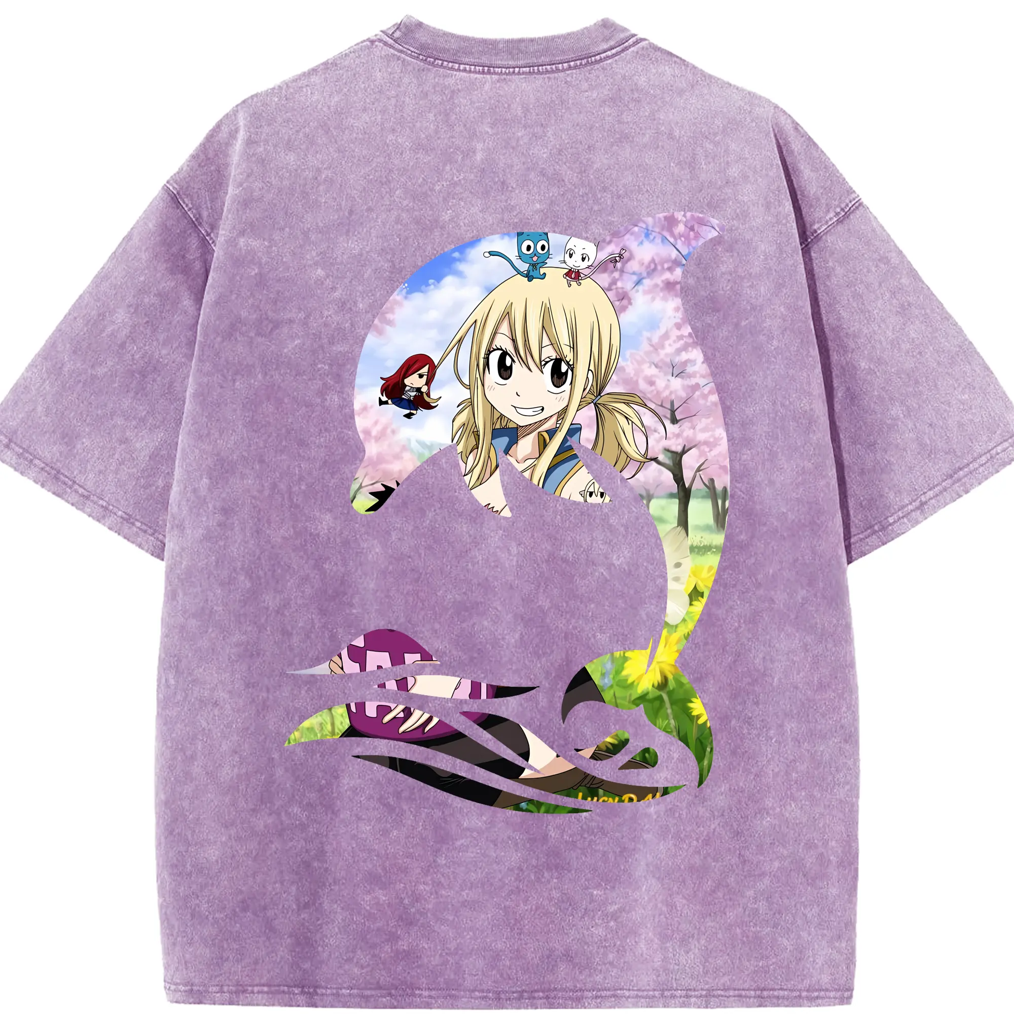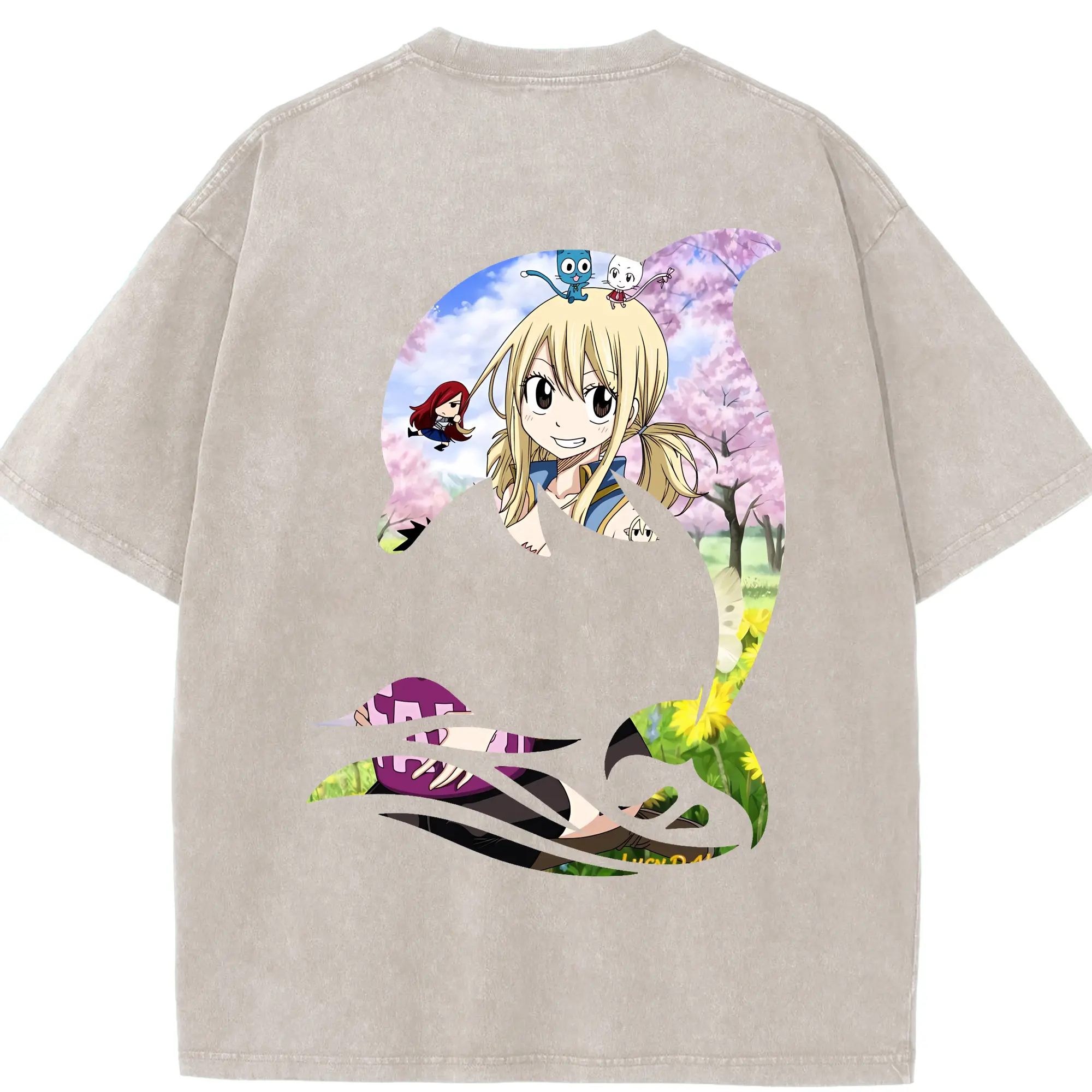 フェアリーテイル グッズ ルーシィ・ハートフィリア - 綿100% ヴィンテージ風 半袖Tシャツ ・ フロントプリント ・ 柔らか肌触り ・ 通気性 快適 ・ スポーツ カジュアル 外出用