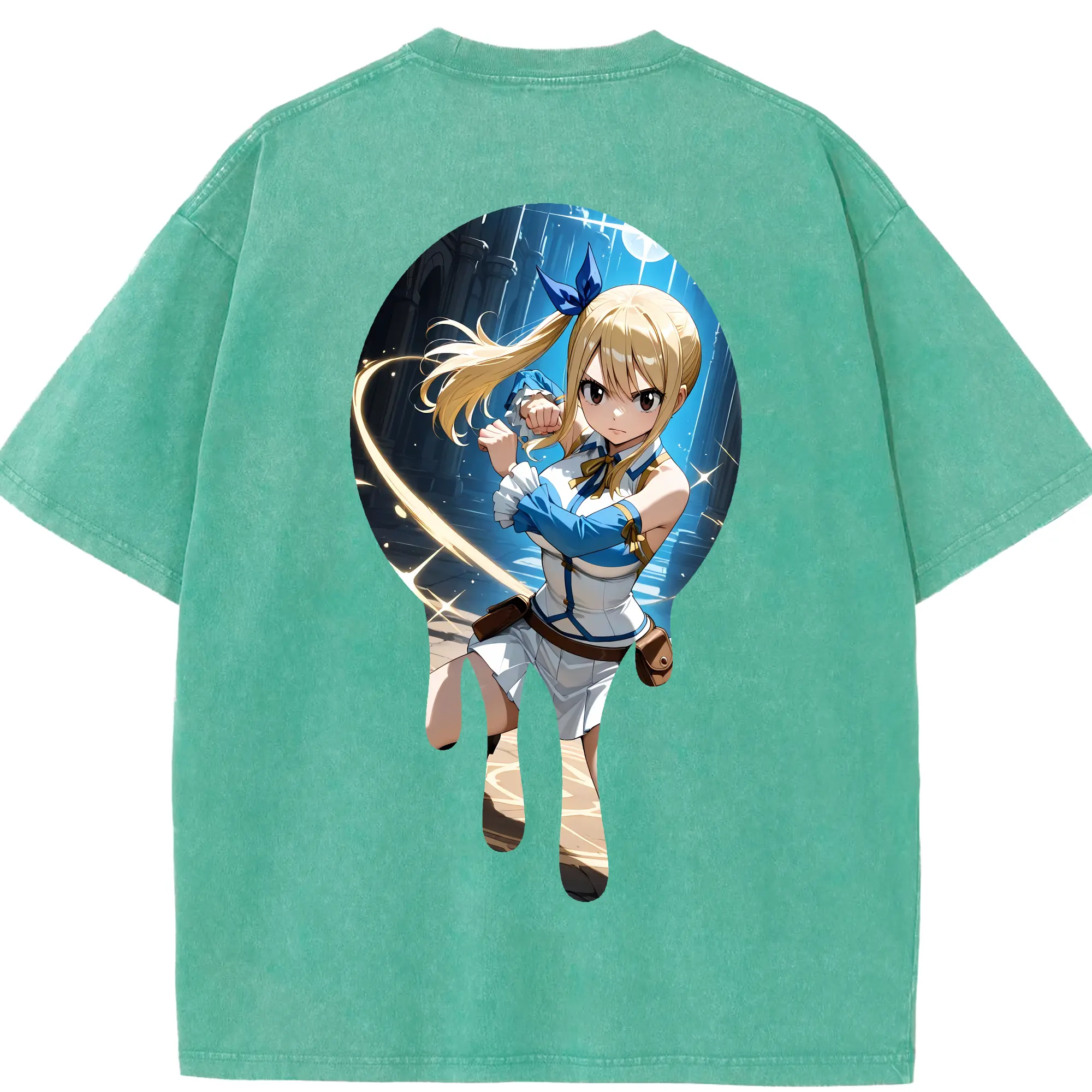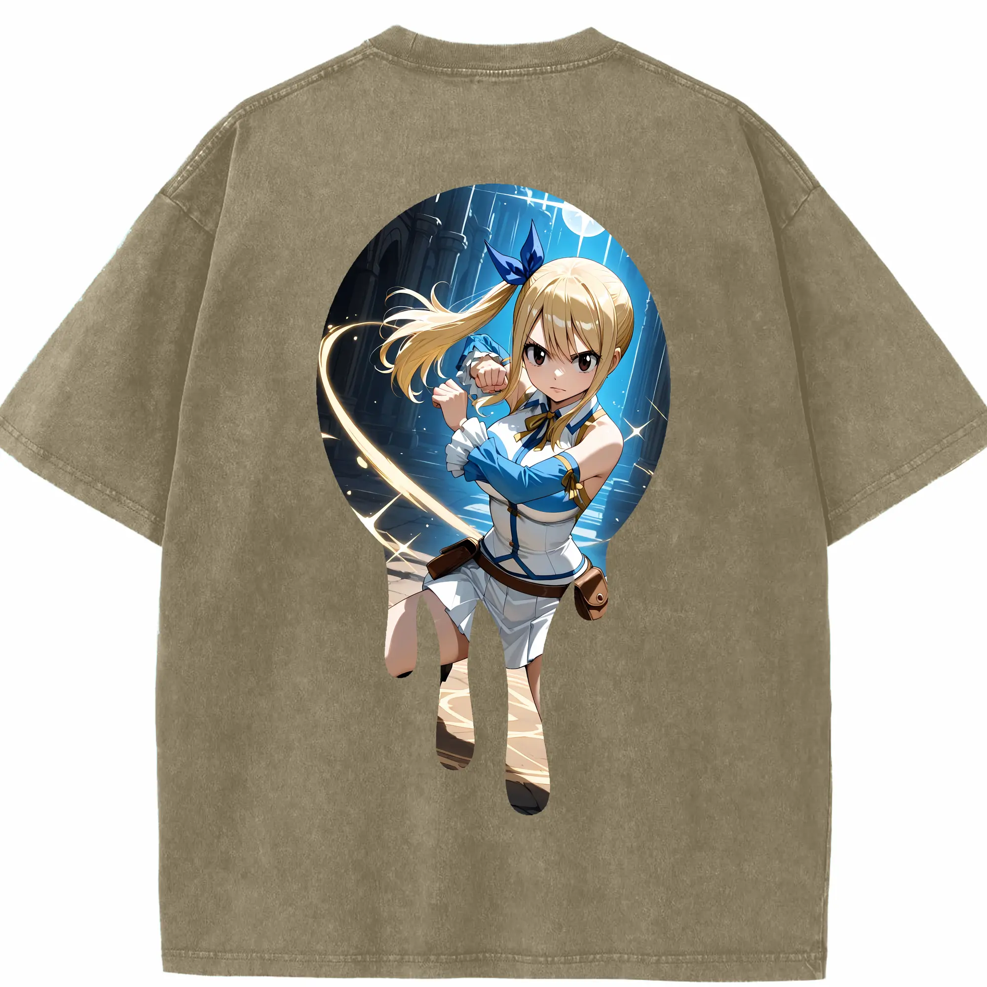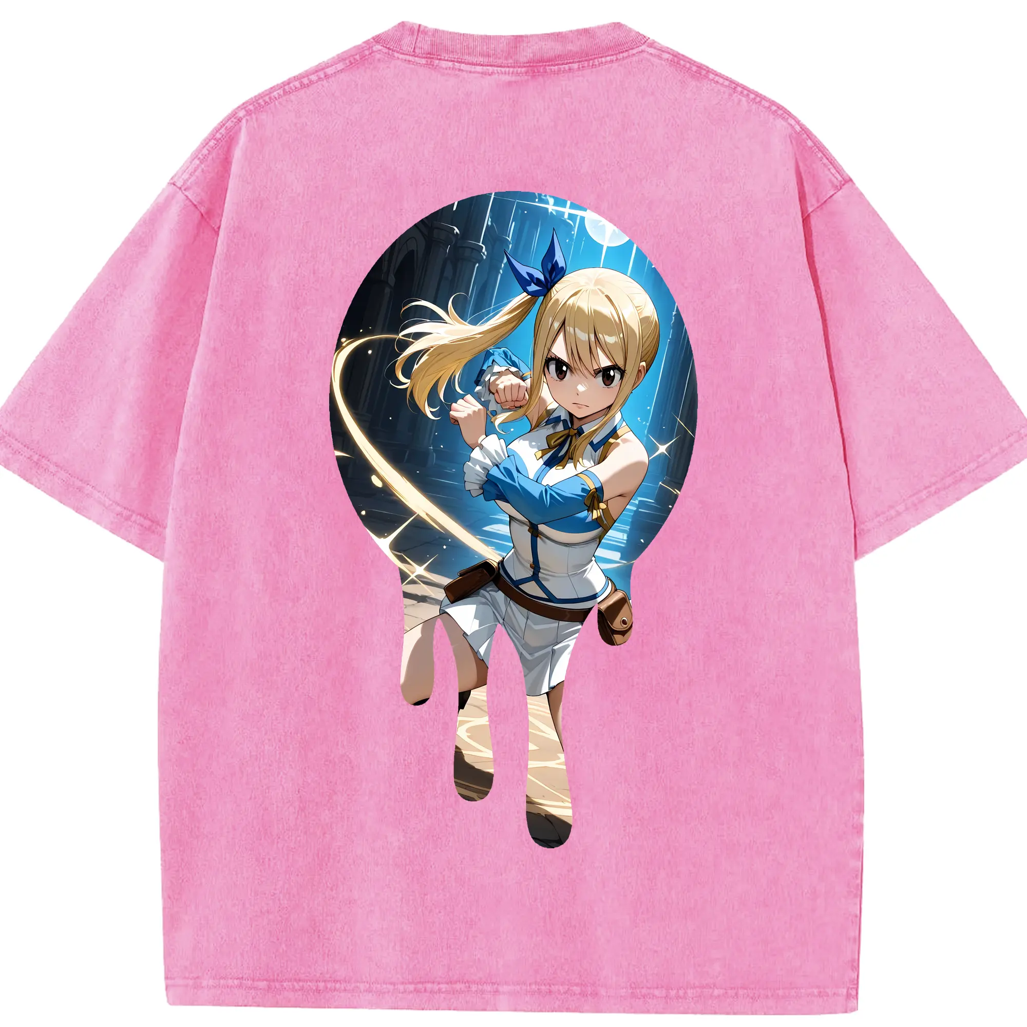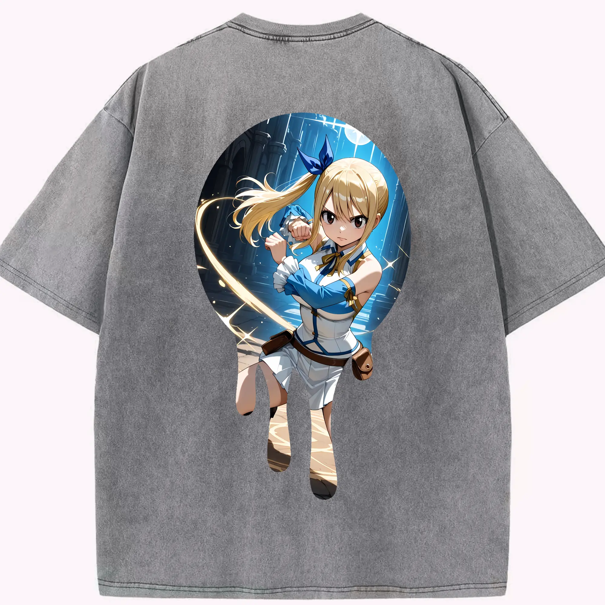 フェアリーテイル グッズ ルーシィ・ハートフィリア - 綿100% ヴィンテージ風 半袖Tシャツ ・ フロントプリント ・ 柔らか肌触り ・ 通気性 快適 ・ スポーツ カジュアル 外出用