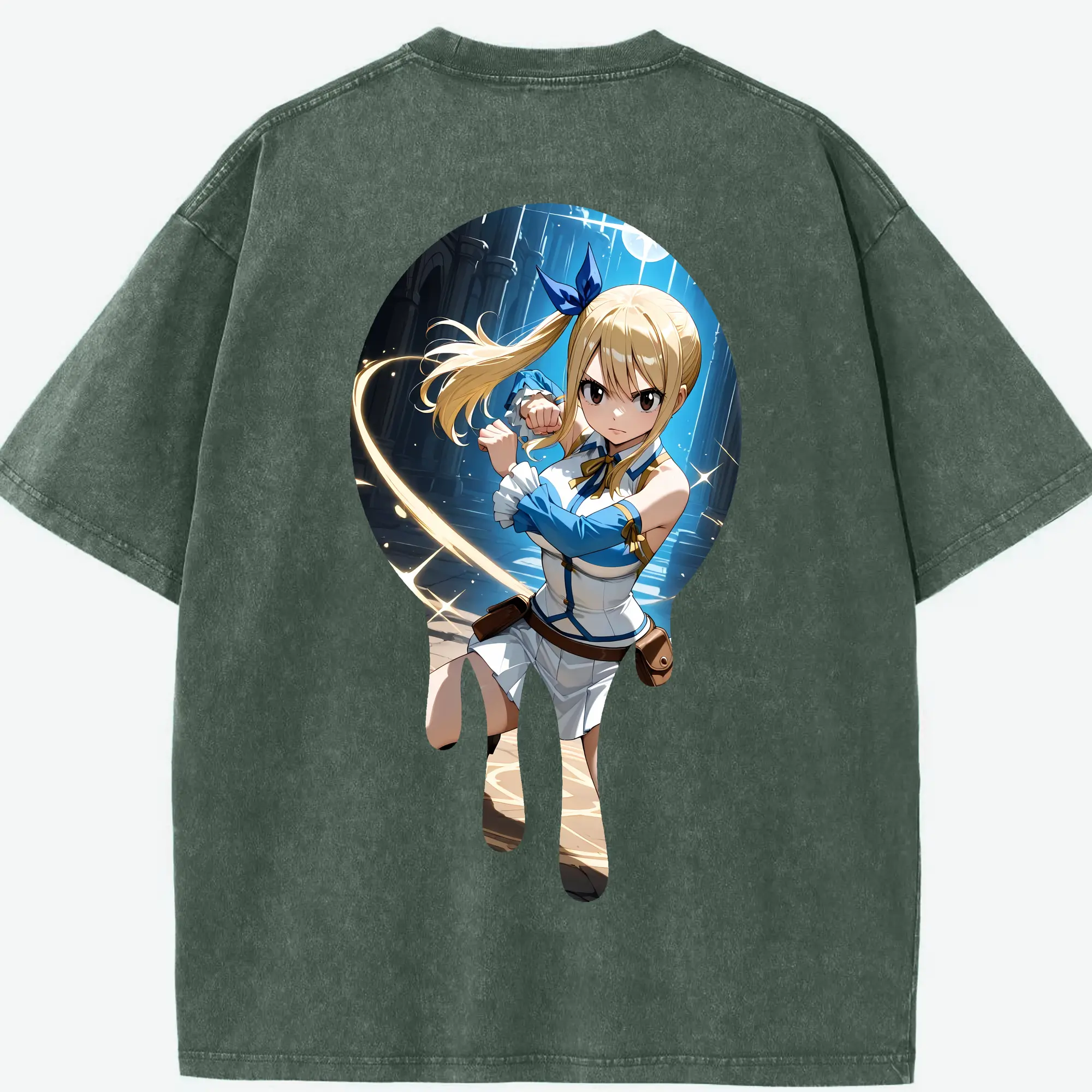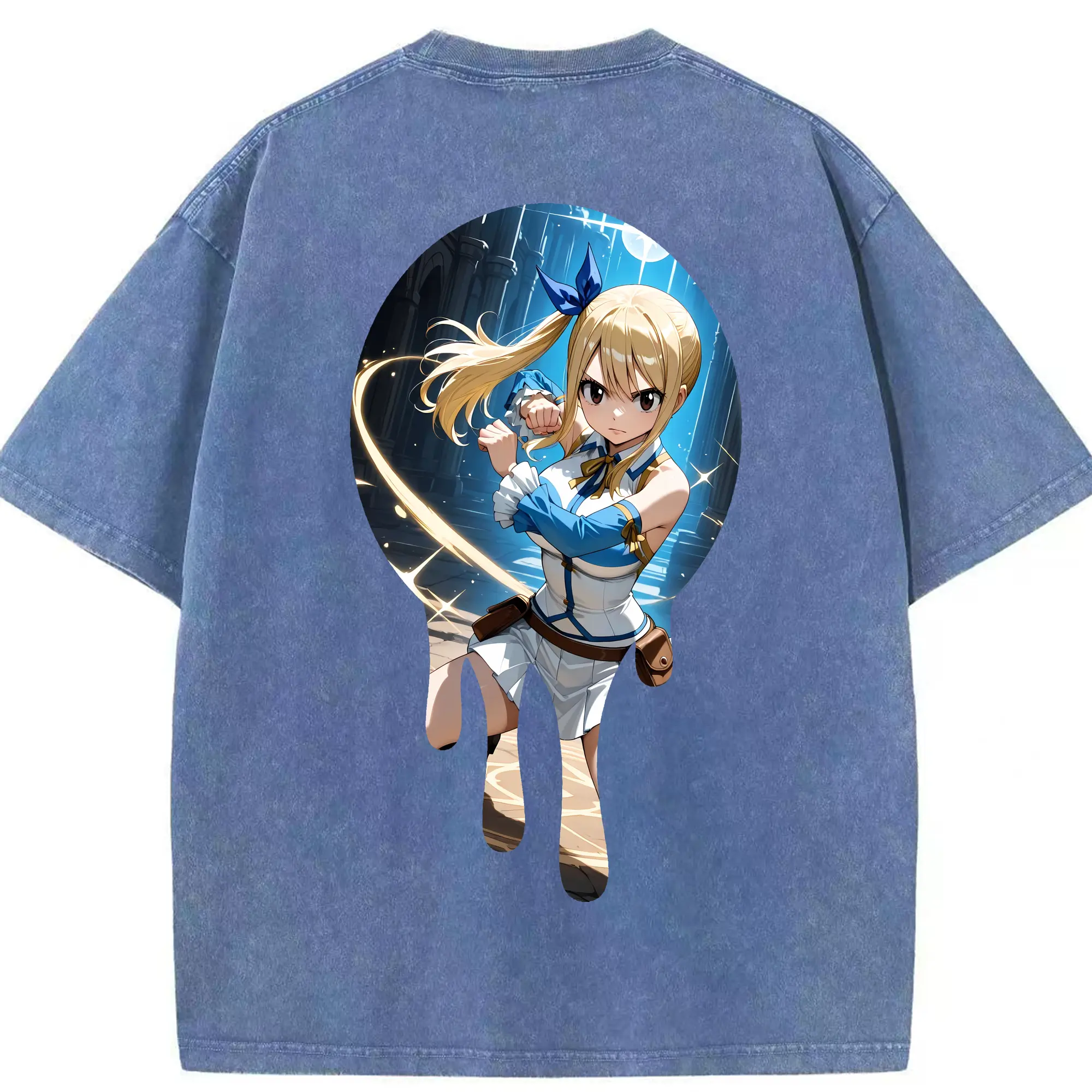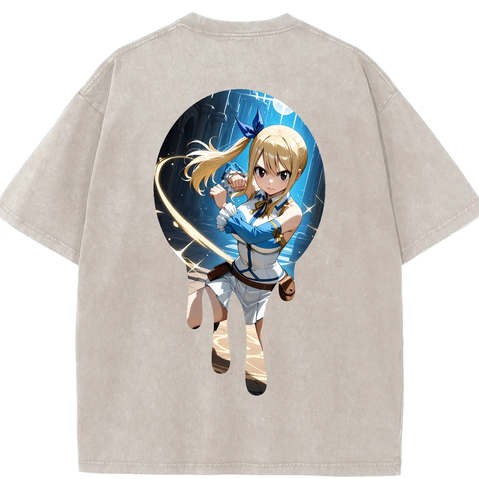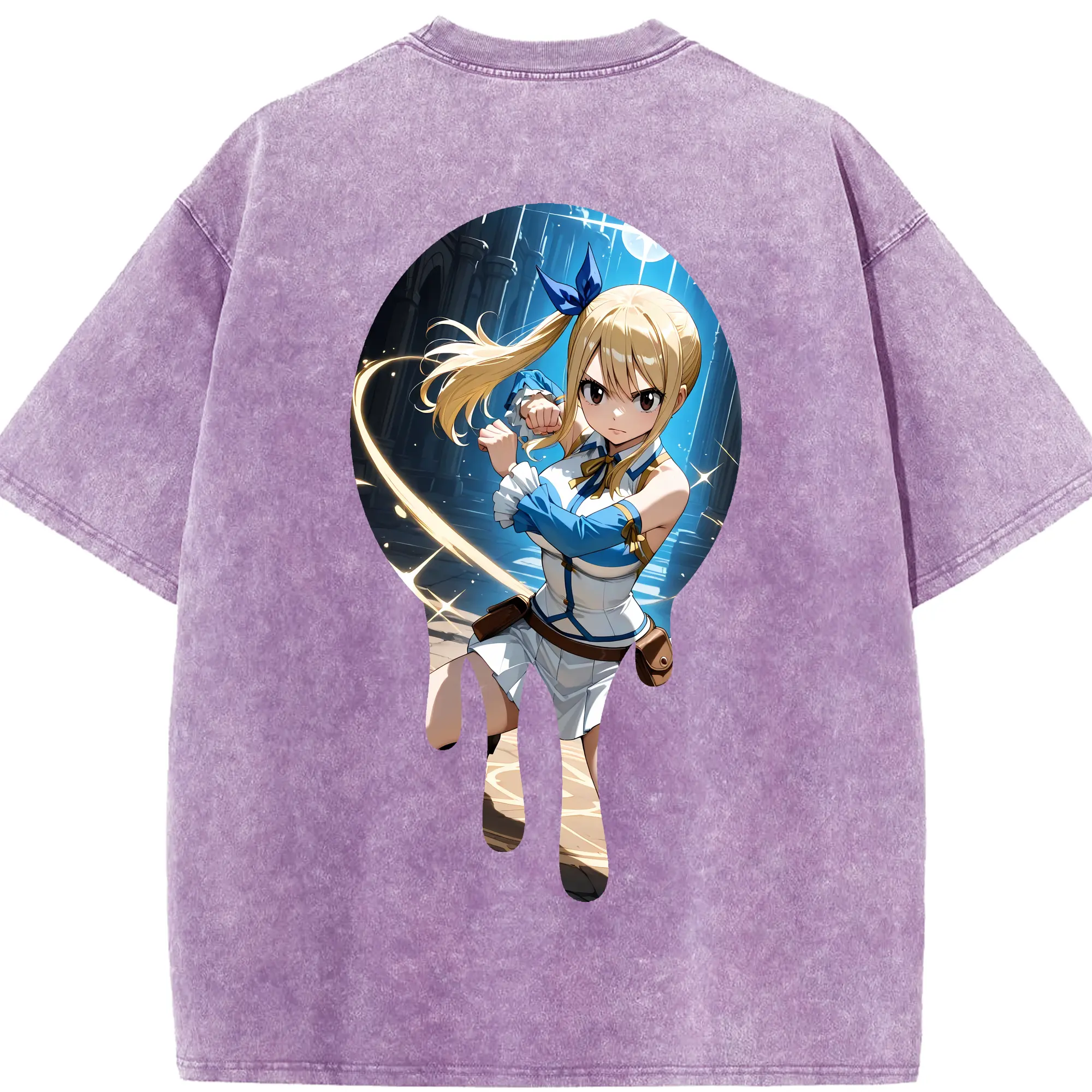 フェアリーテイル グッズ ルーシィ・ハートフィリア - 綿100% ヴィンテージ風 半袖Tシャツ ・ フロントプリント ・ 柔らか肌触り ・ 通気性 快適 ・ スポーツ カジュアル 外出用