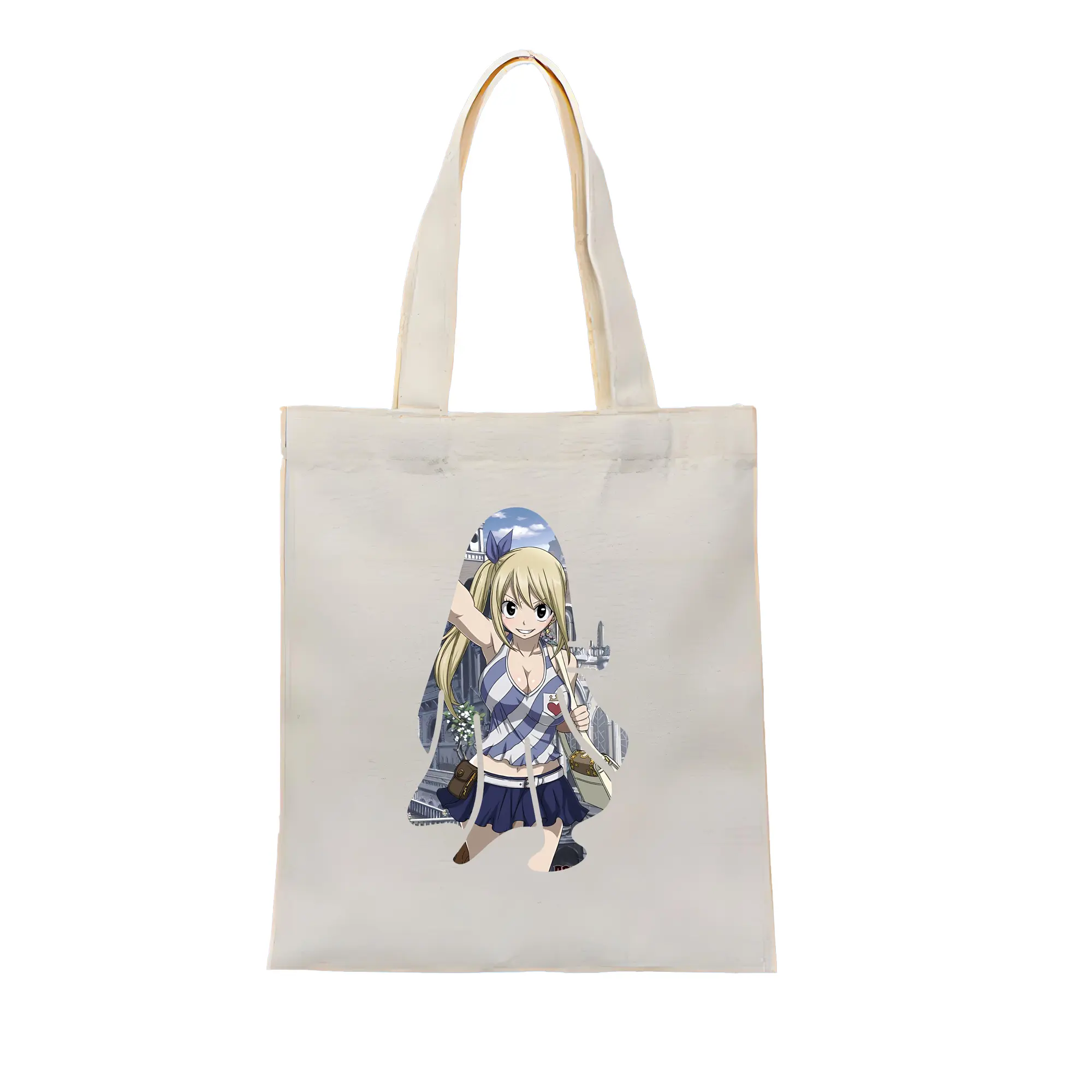 フェアリーテイル グッズ ルーシィ・ハートフィリア - 縦型キャンバス手提げバッグ(トートバッグ) ・ キャンバス素材 ・ ショッピング用 ・ 軽量 丈夫 お手入れ簡単