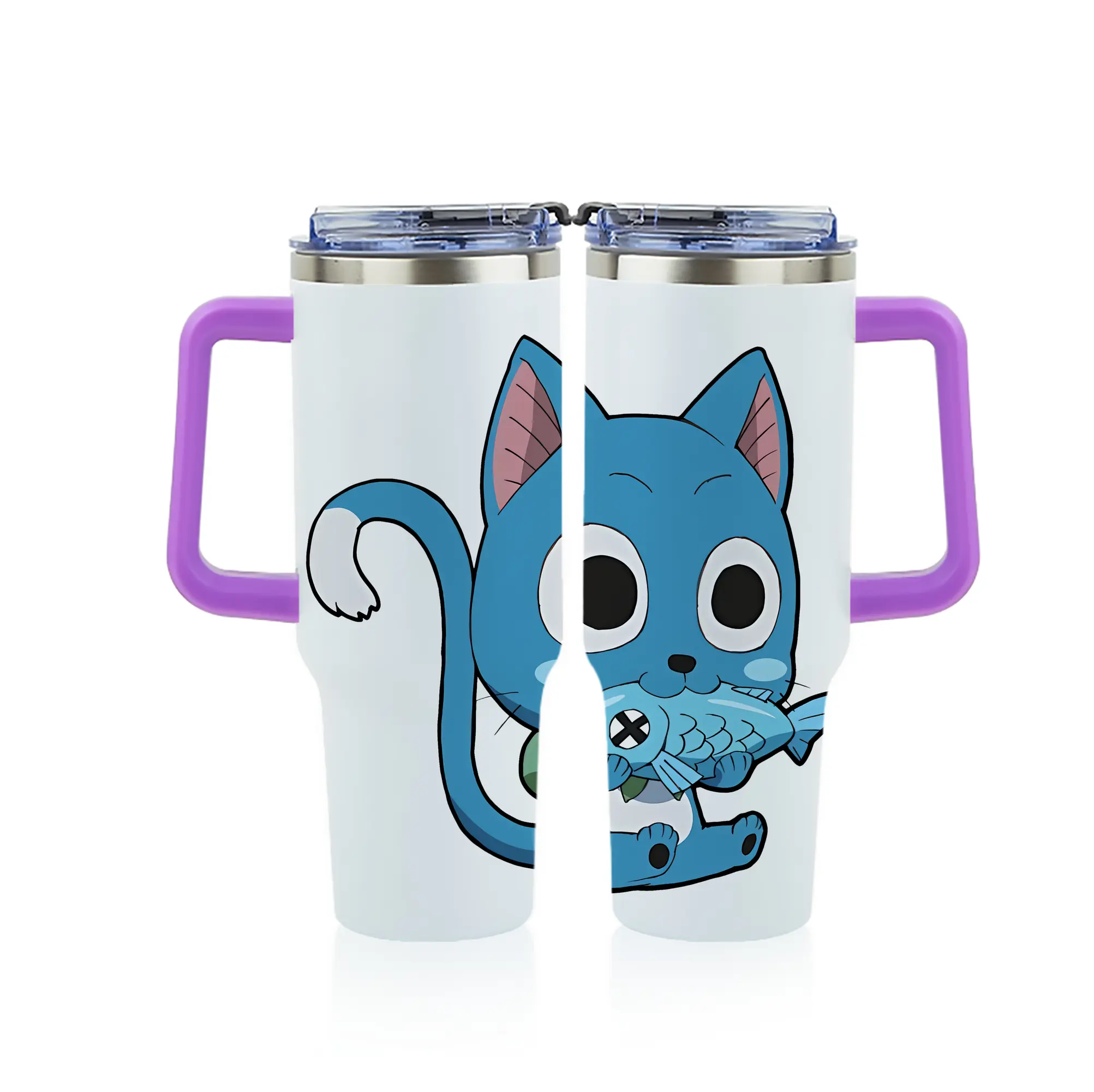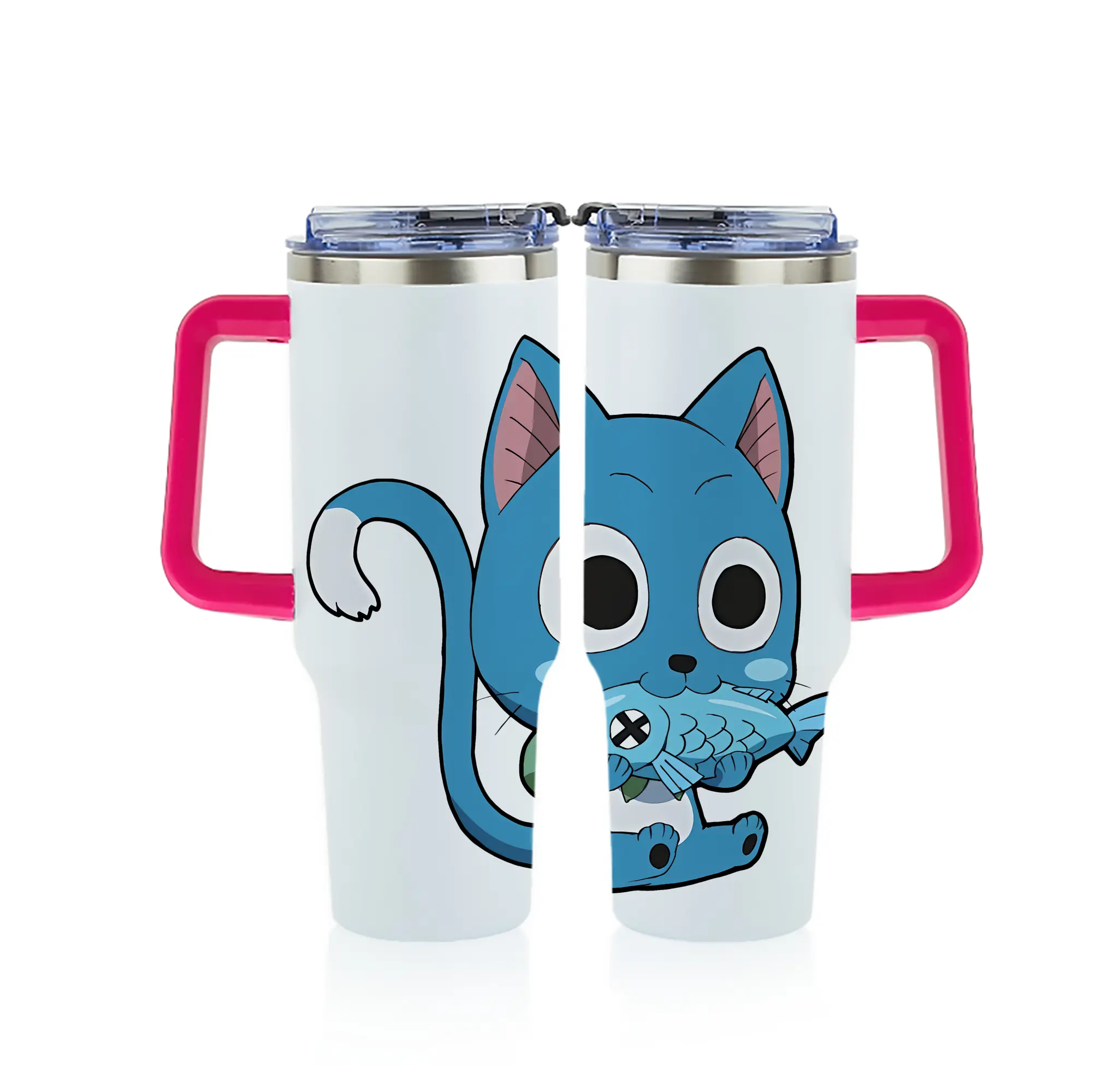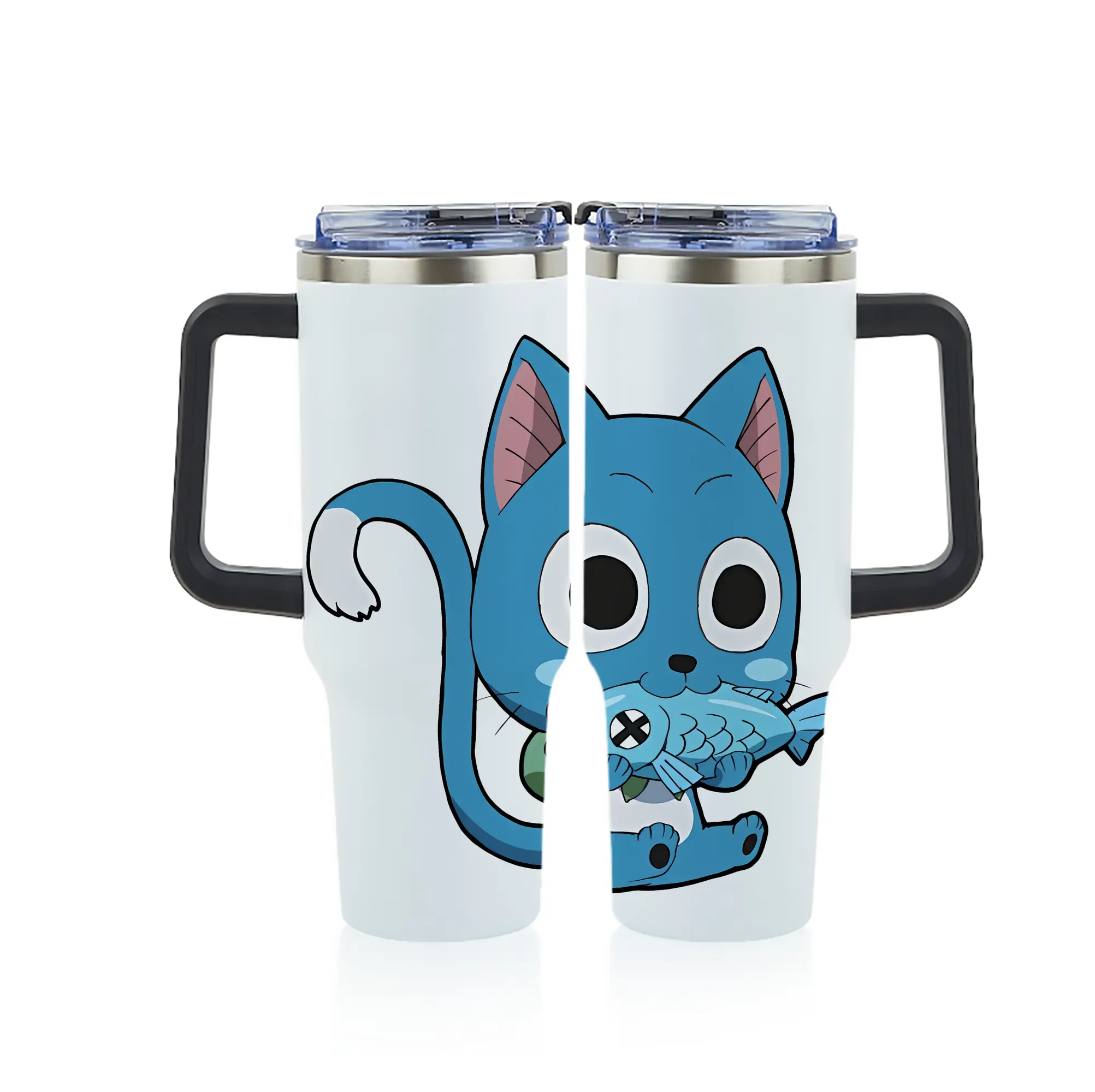 フェアリーテイル グッズ ハッピー - 綿100% 半袖Tシャツ ・ フロントプリント ・ 快適 通気性 ・ 日常使い 散歩 スポーツ用