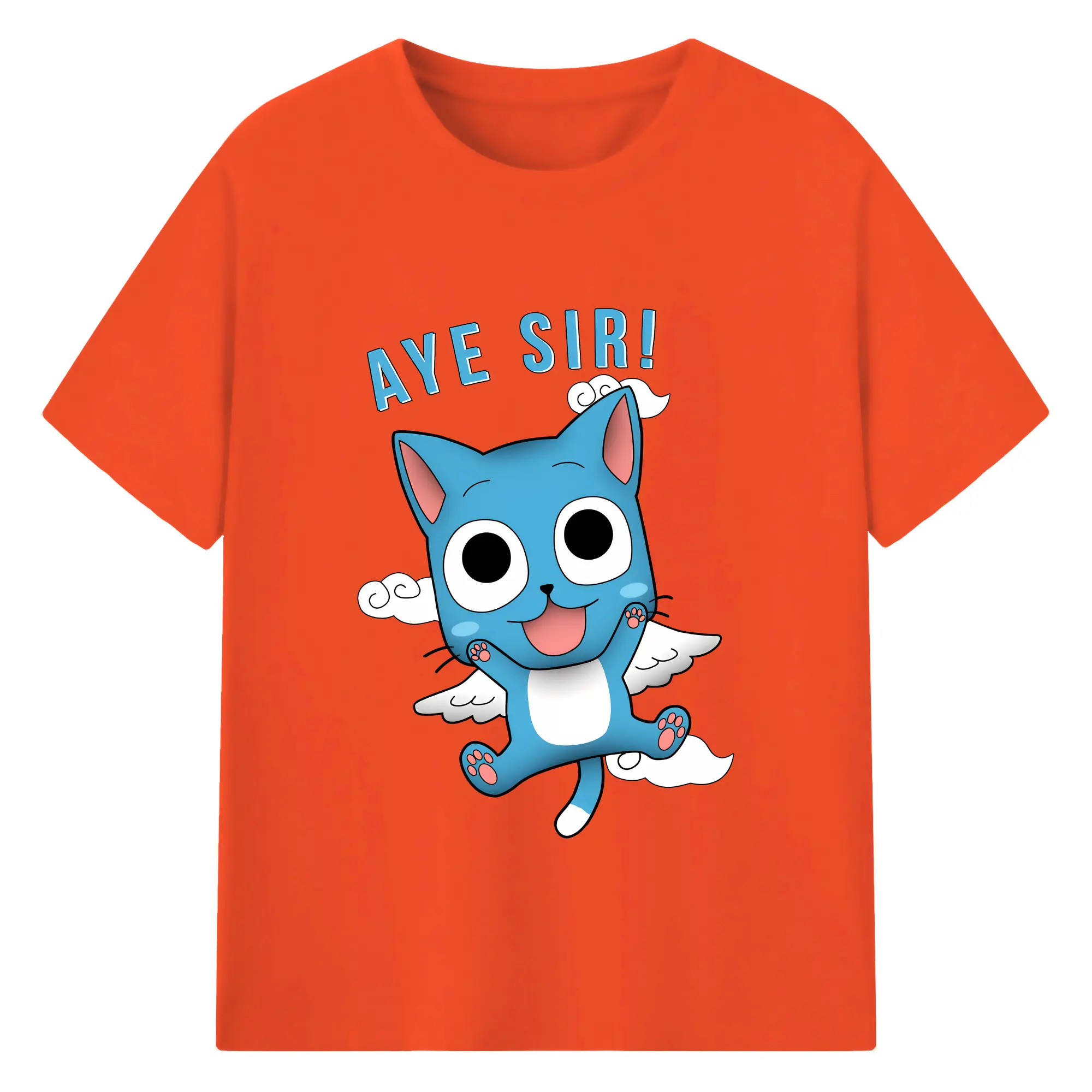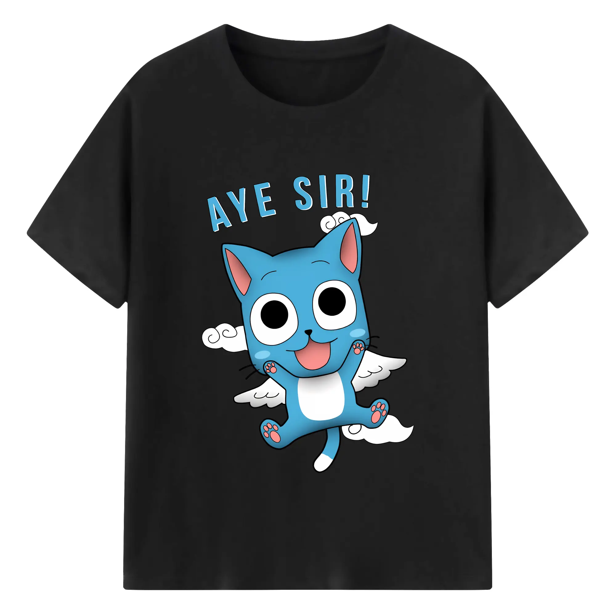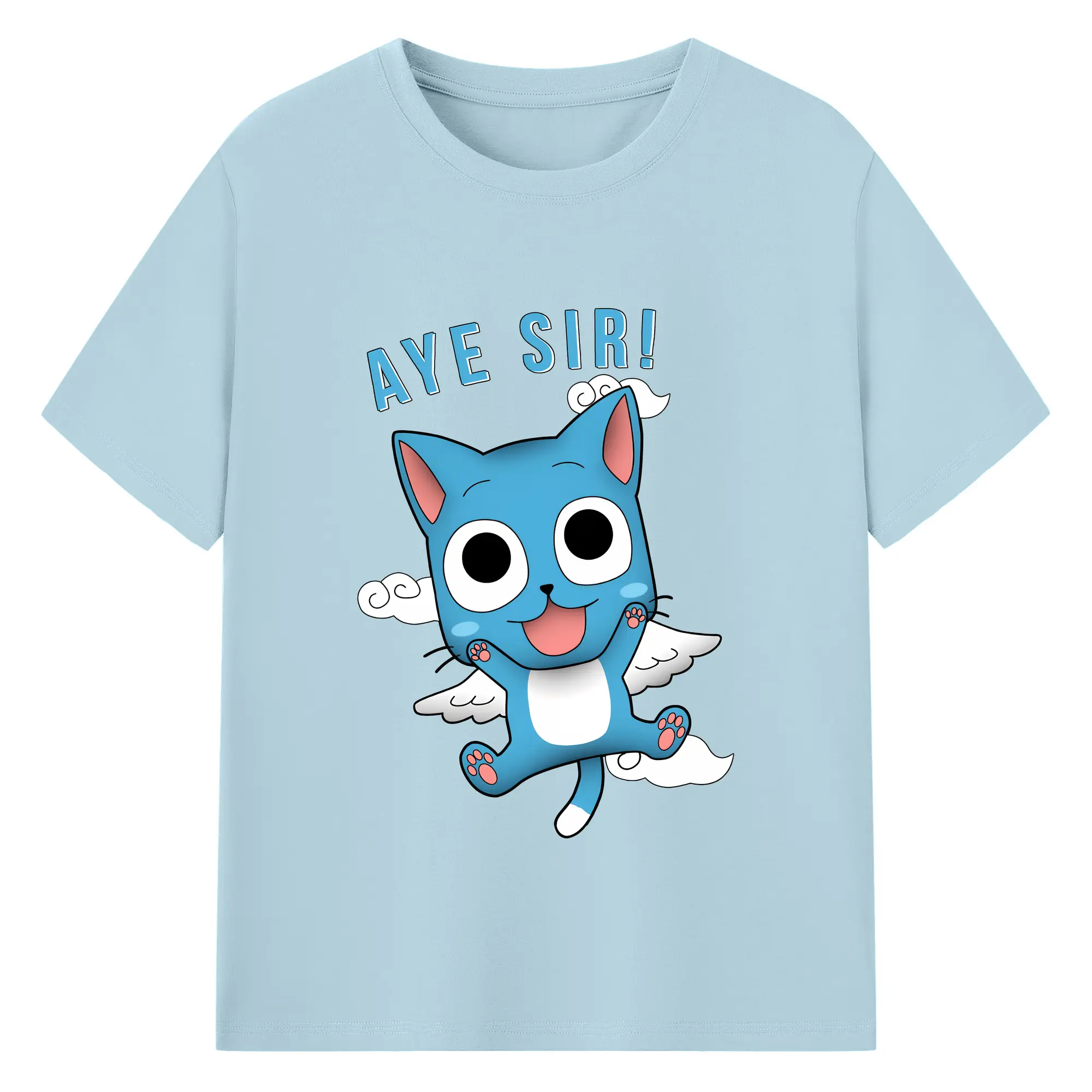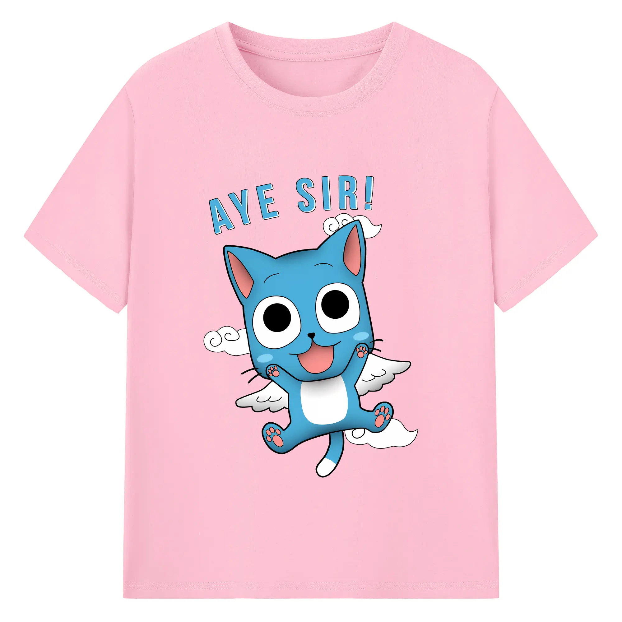 フェアリーテイル グッズ ハッピー - 綿100% 半袖Tシャツ ・ バックプリント ・ 快適 通気性 ・ 日常使い 散歩 スポーツ用