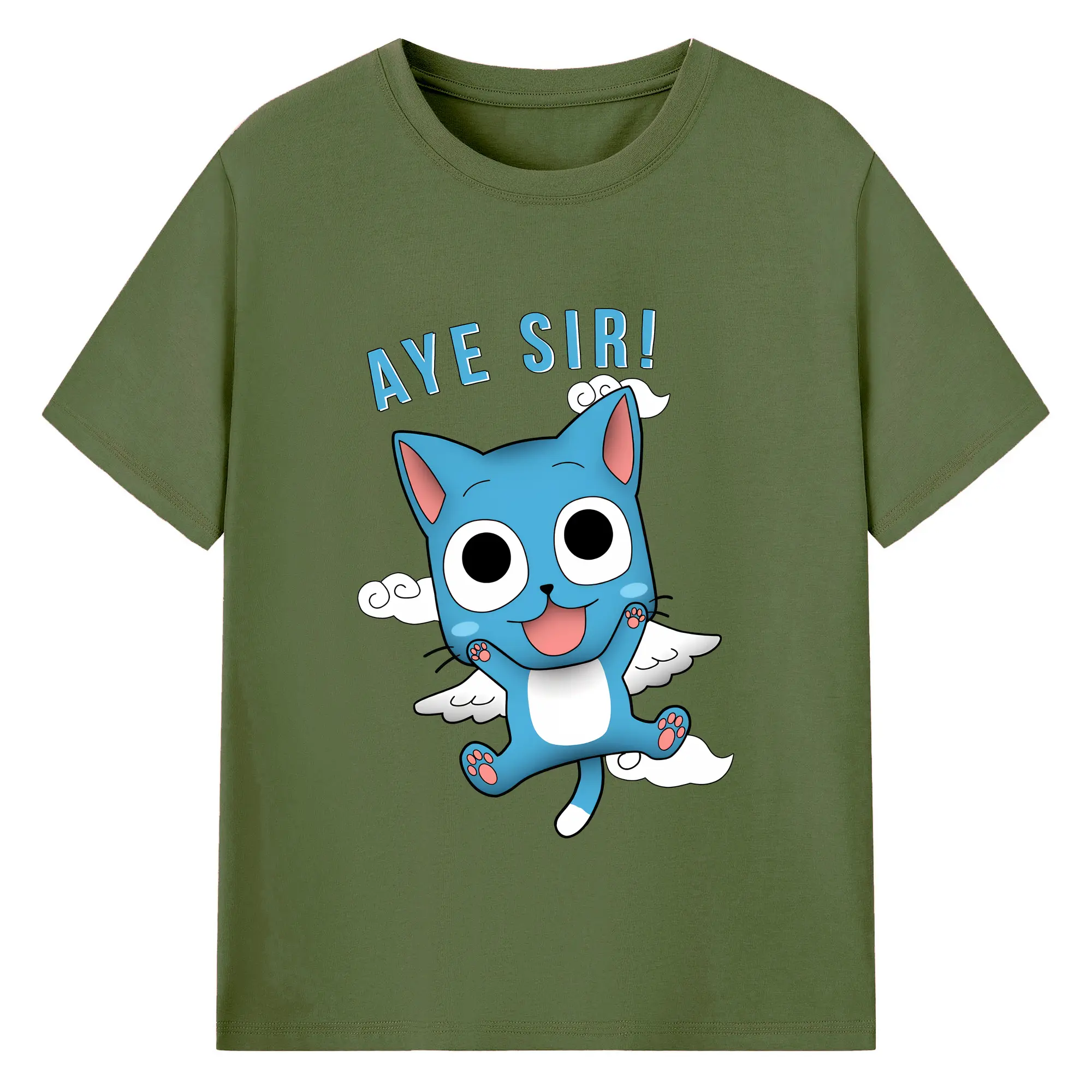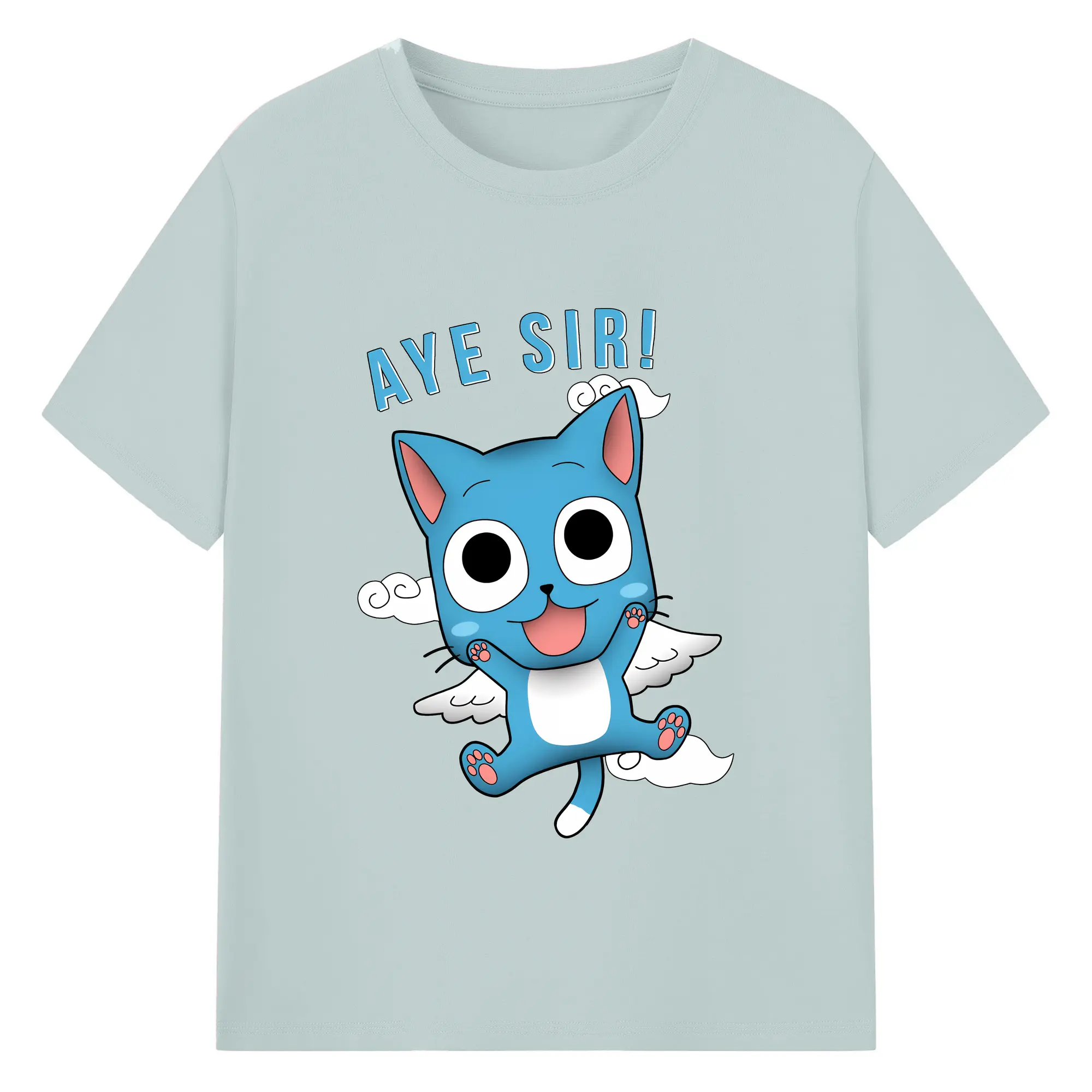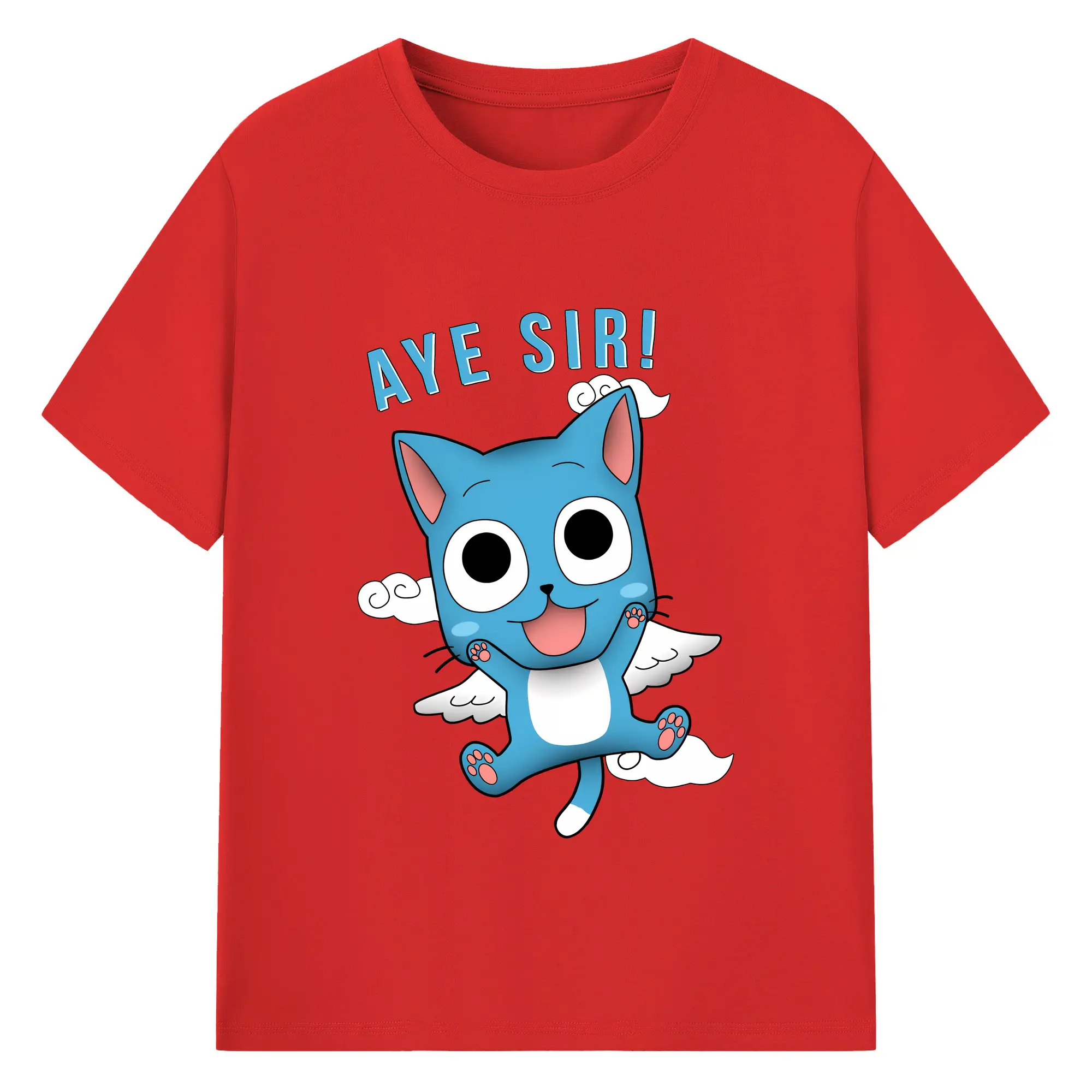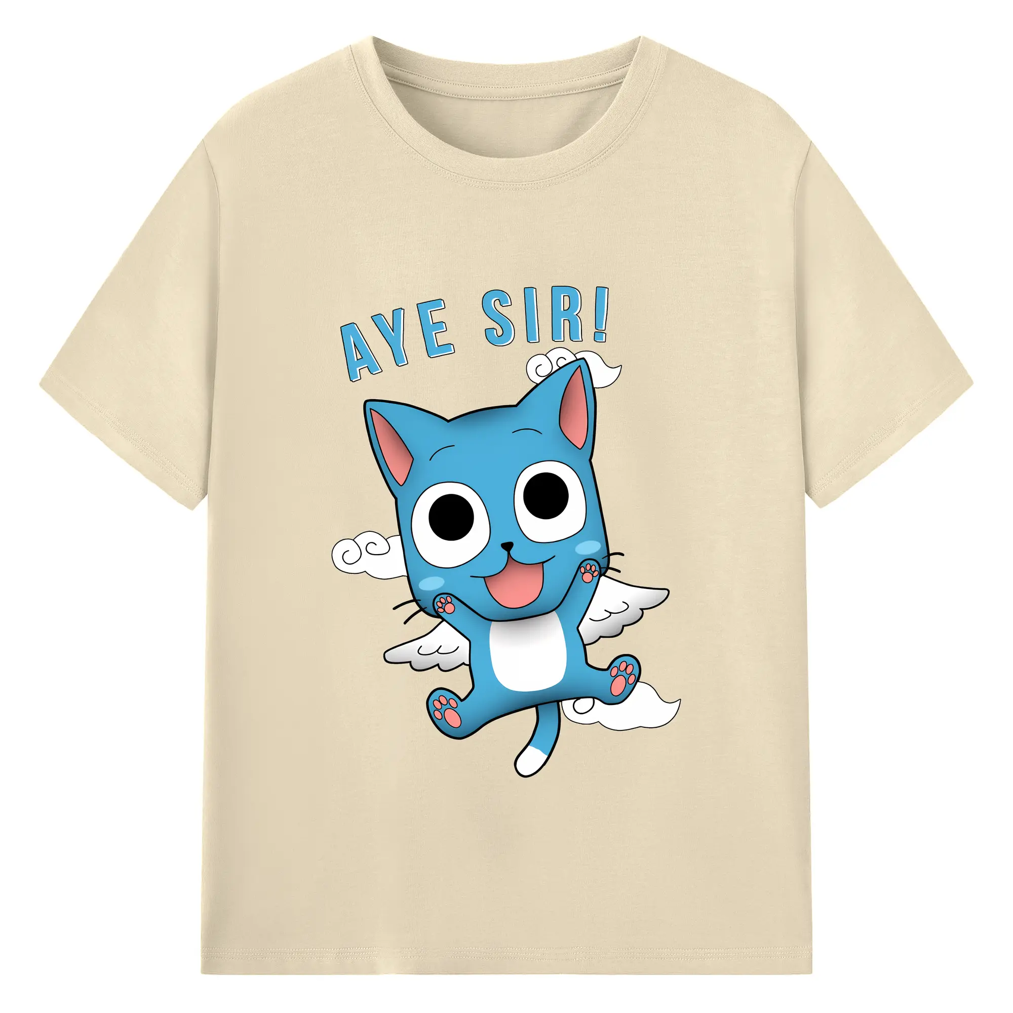 フェアリーテイル グッズ ハッピー - 綿100% 半袖Tシャツ ・ バックプリント ・ 快適 通気性 ・ 日常使い 散歩 スポーツ用