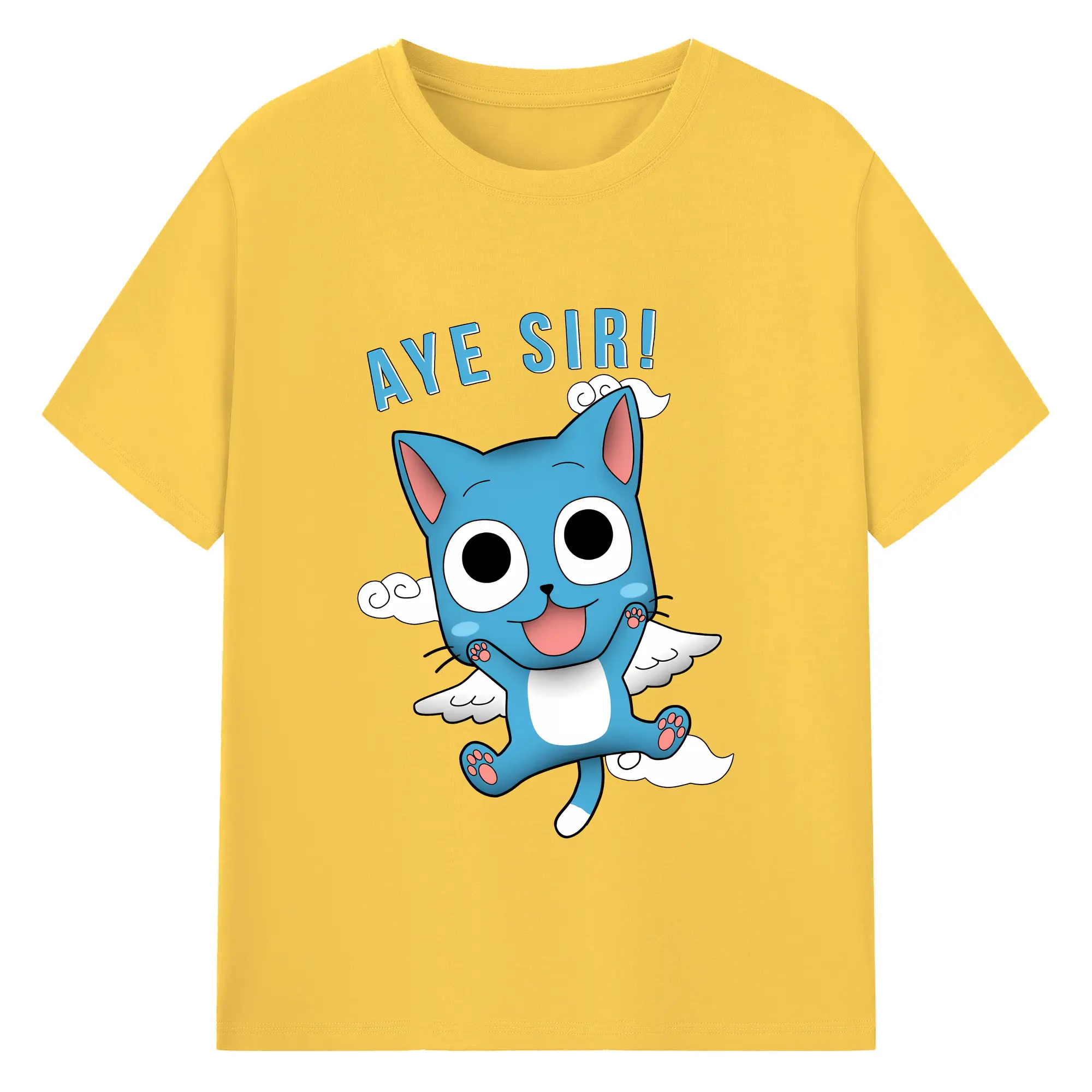 フェアリーテイル グッズ ハッピー - 綿100% キッズTシャツ ・ フロントプリント ・ 快適 通気性 ・ スポーツ カジュアル 散歩用