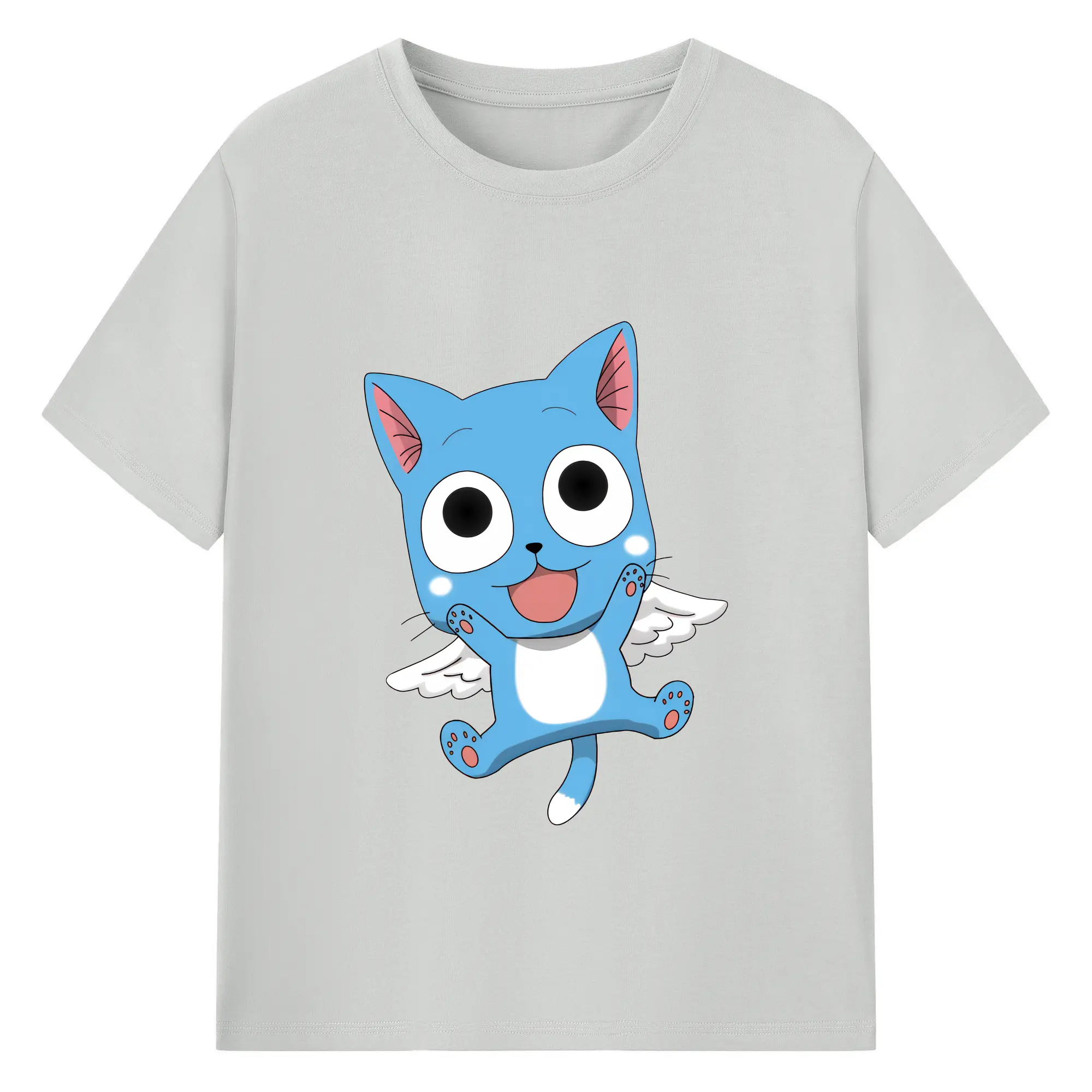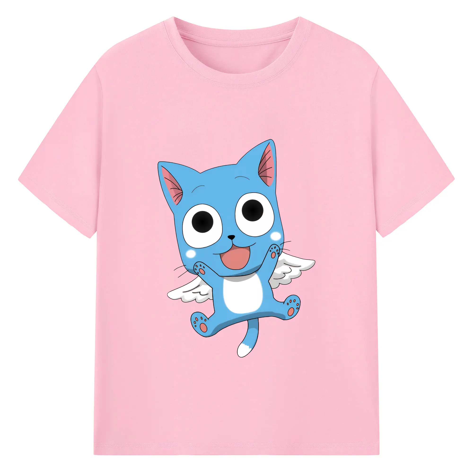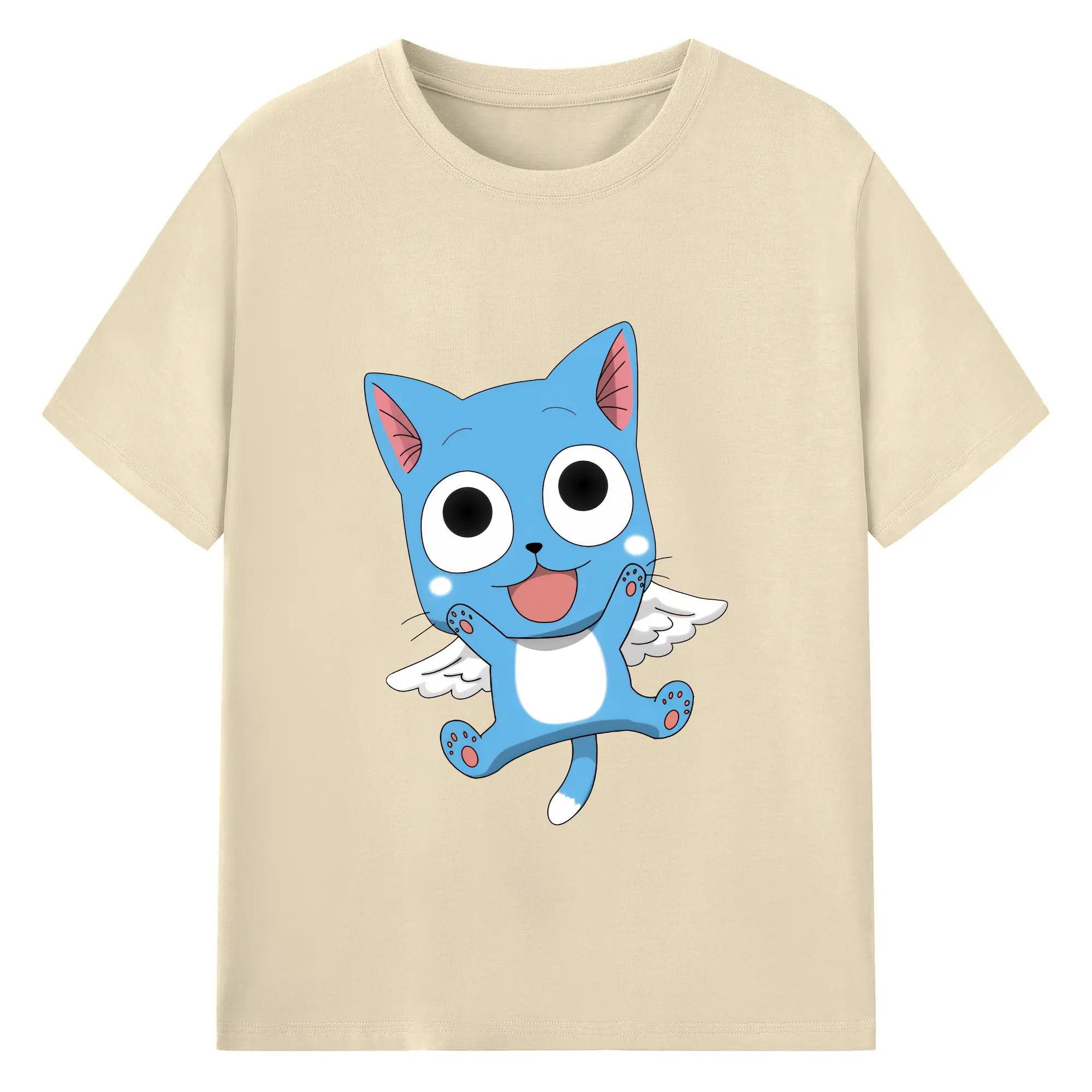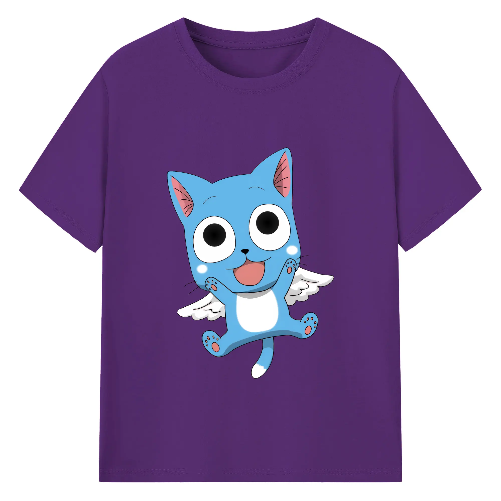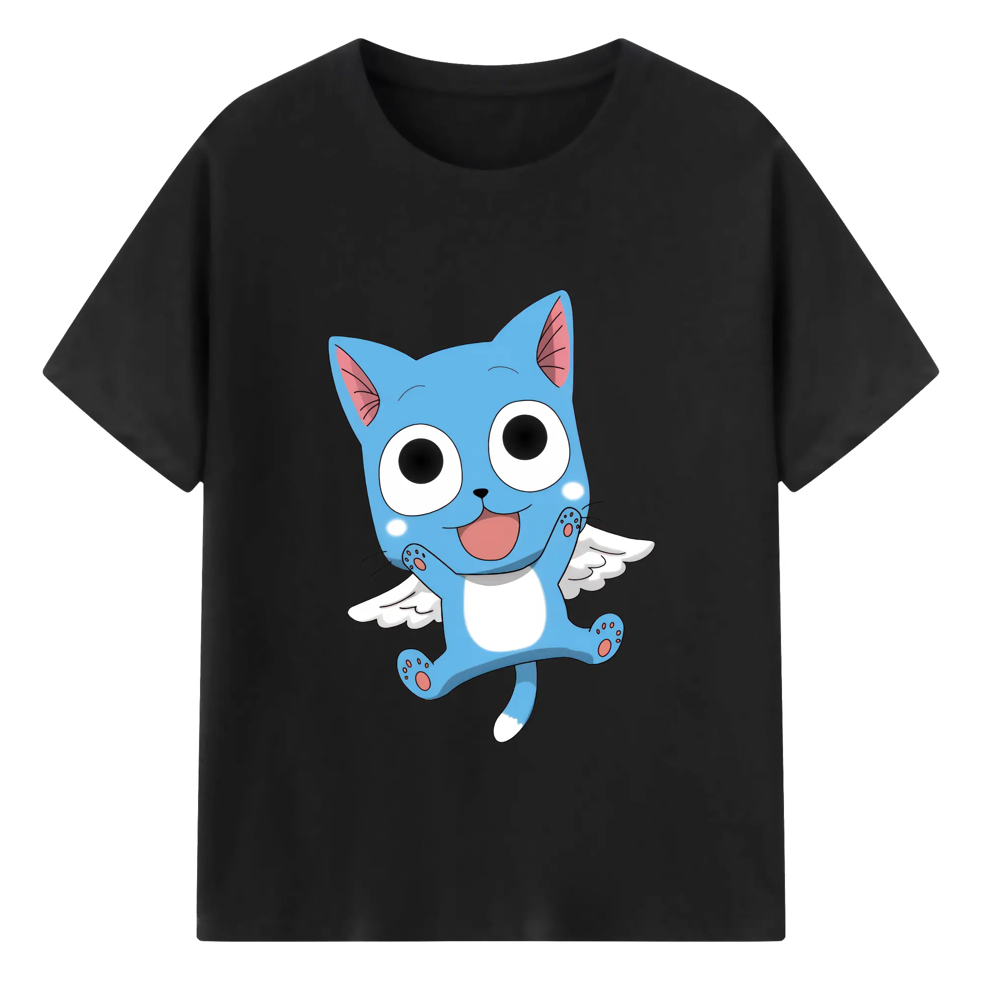 フェアリーテイル グッズ ハッピー - 綿100% 半袖Tシャツ ・ バックプリント ・ 快適 通気性 ・ 日常使い 散歩 スポーツ用