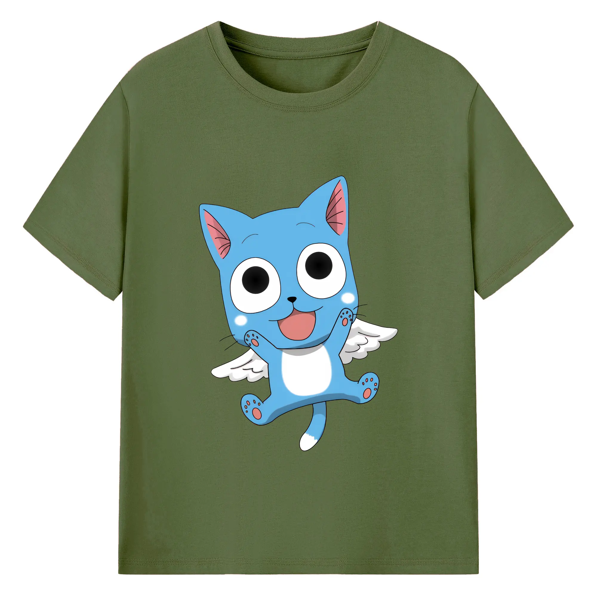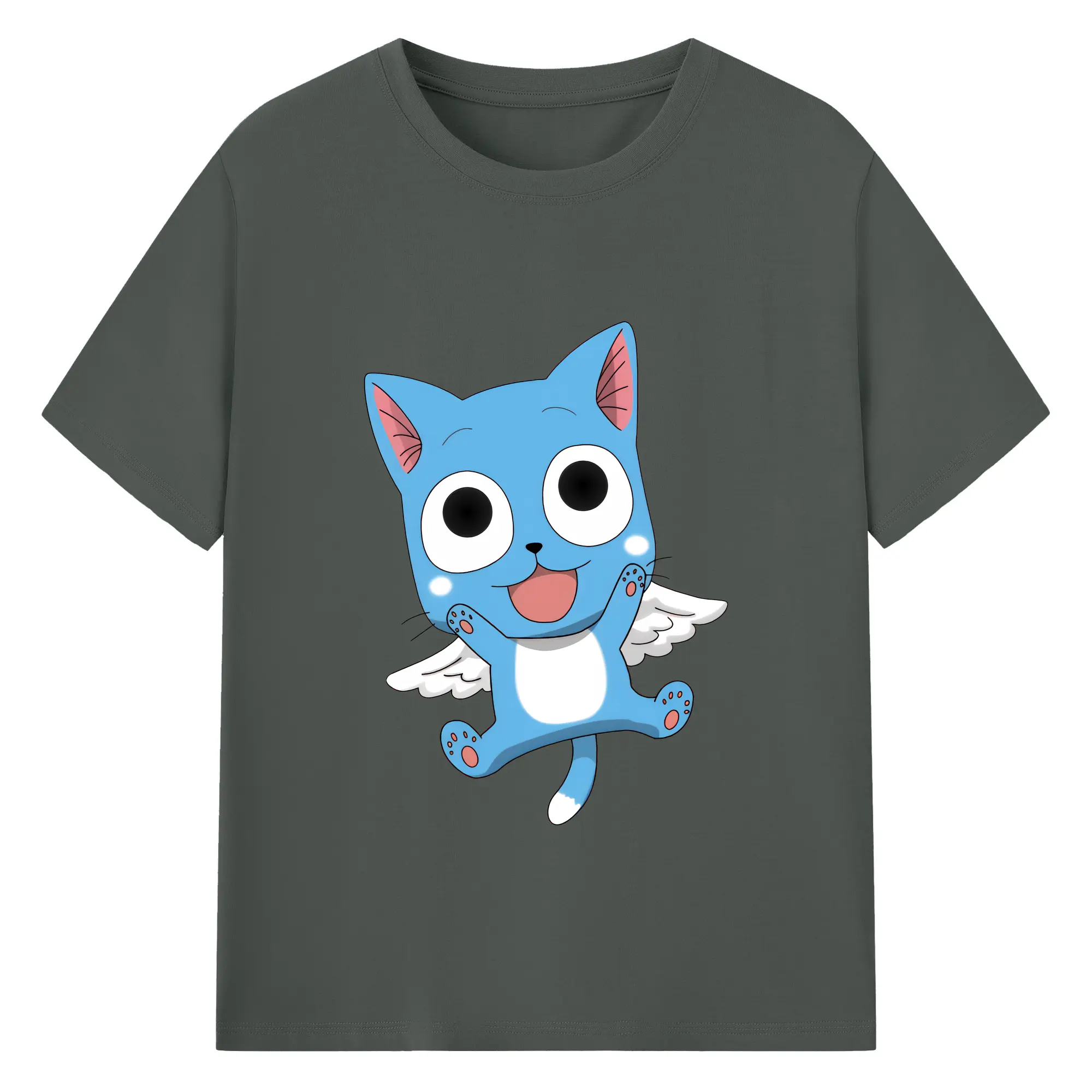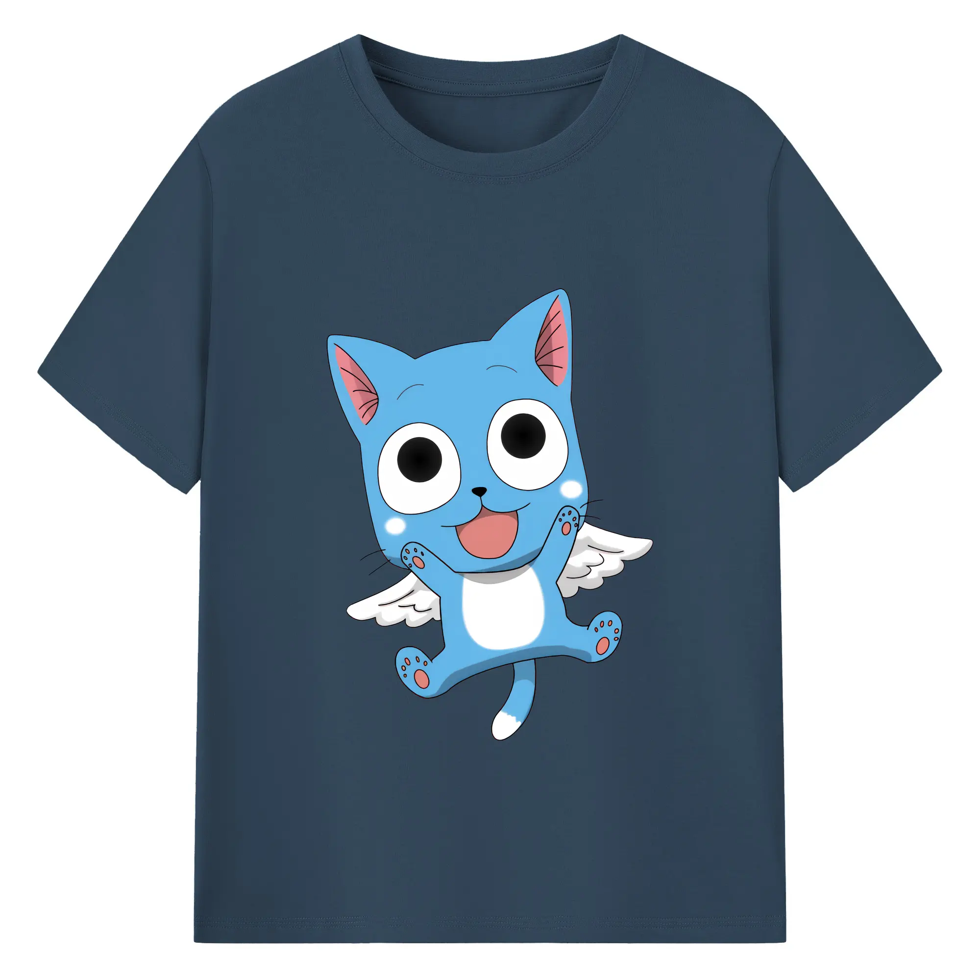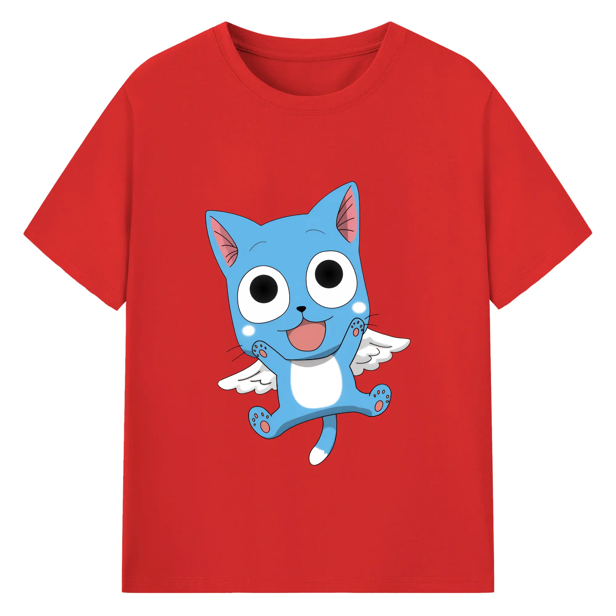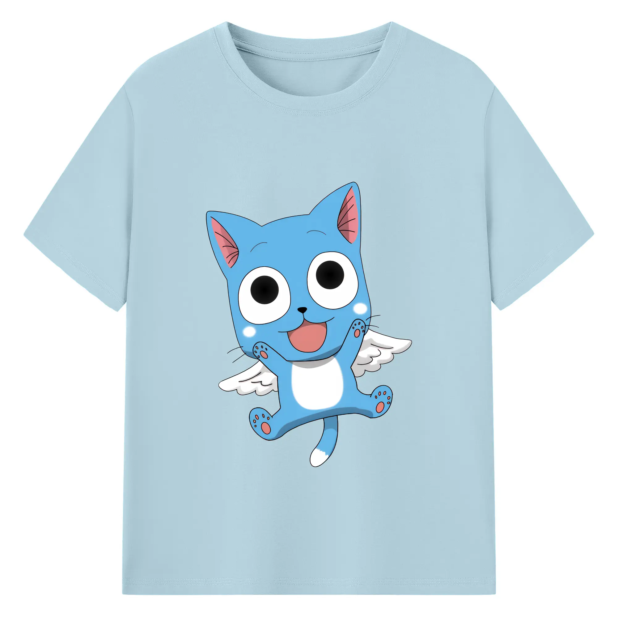 フェアリーテイル グッズ ハッピー - 綿100% 半袖Tシャツ ・ バックプリント ・ 快適 通気性 ・ 日常使い 散歩 スポーツ用