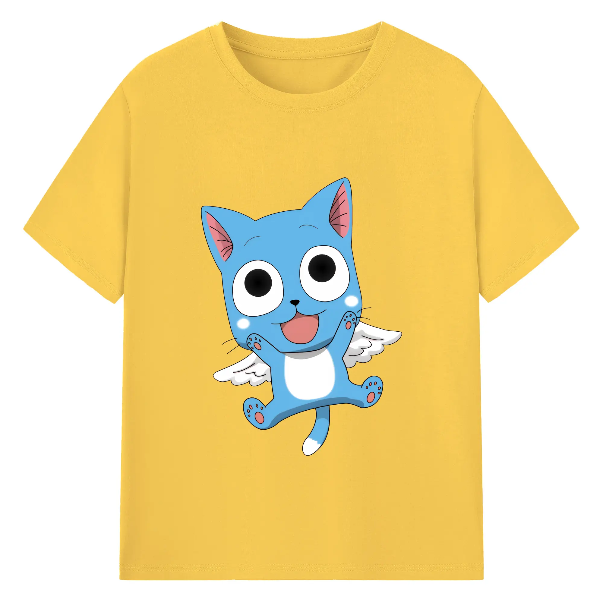 フェアリーテイル グッズ ハッピー - 綿100% キッズTシャツ ・ フロントプリント ・ 快適 通気性 ・ スポーツ カジュアル 散歩用