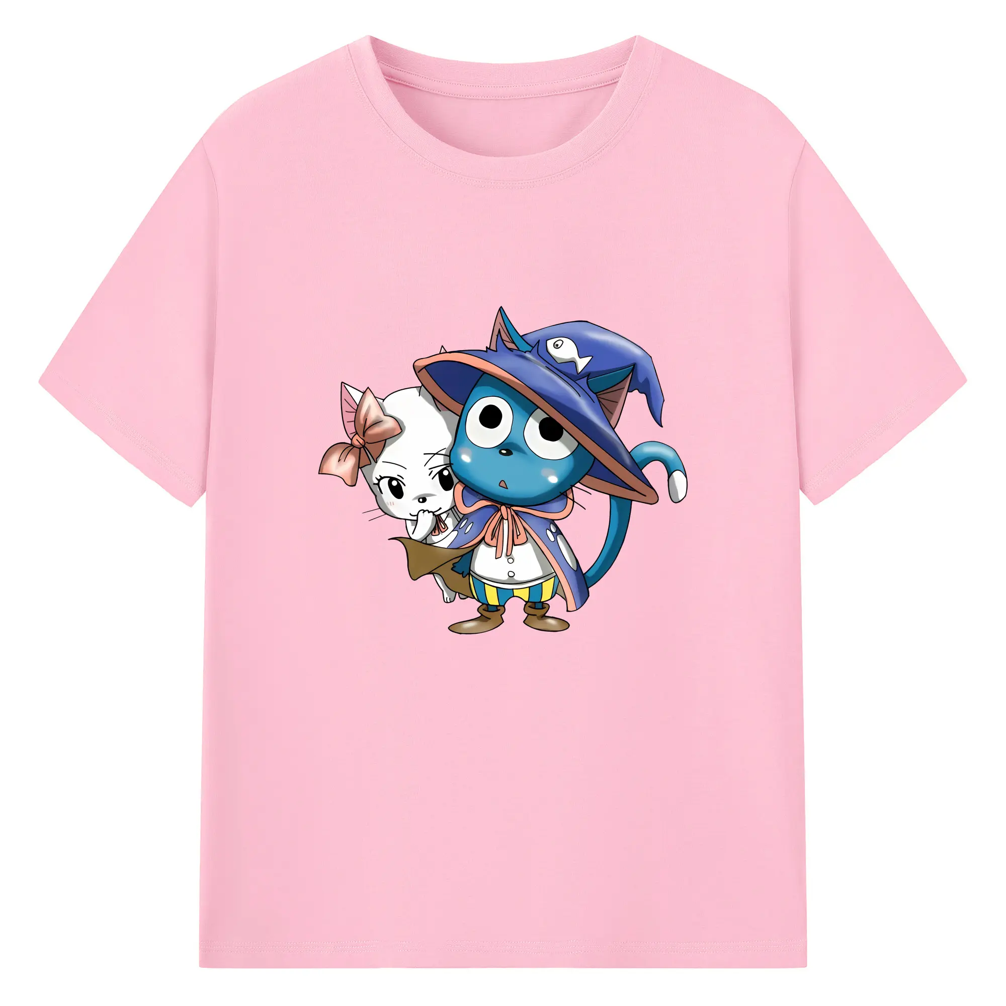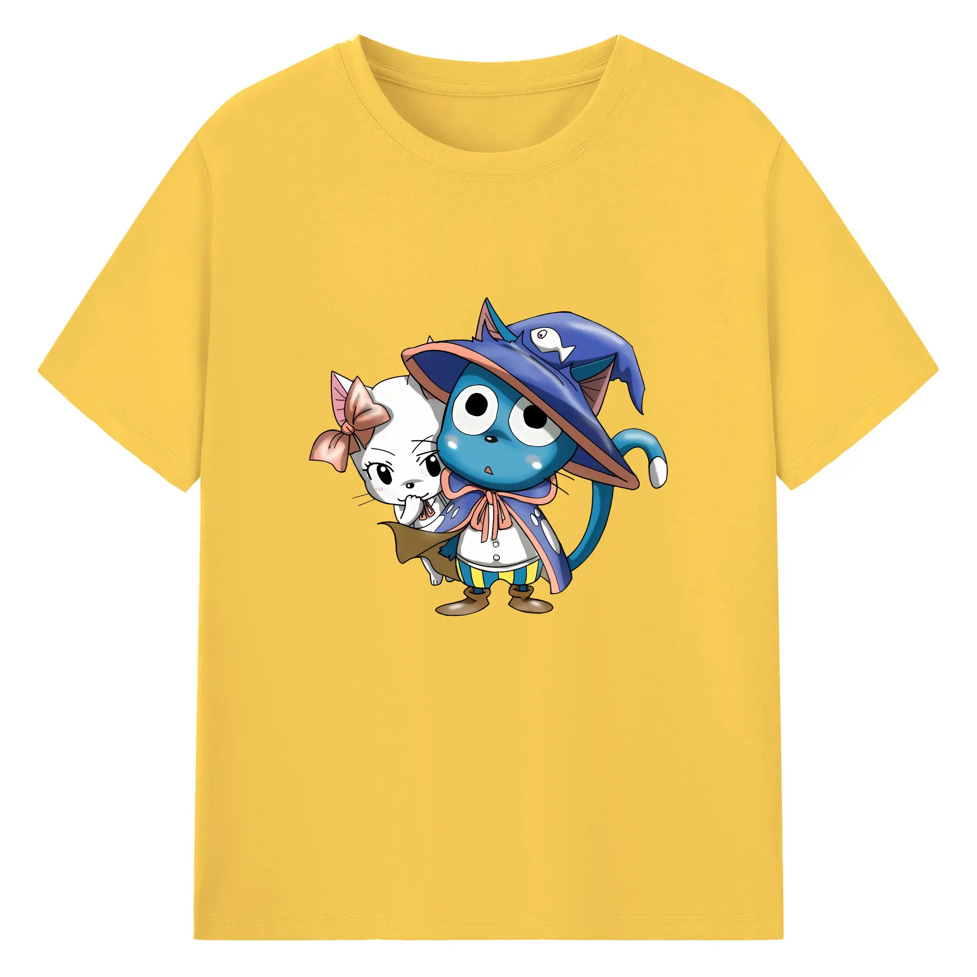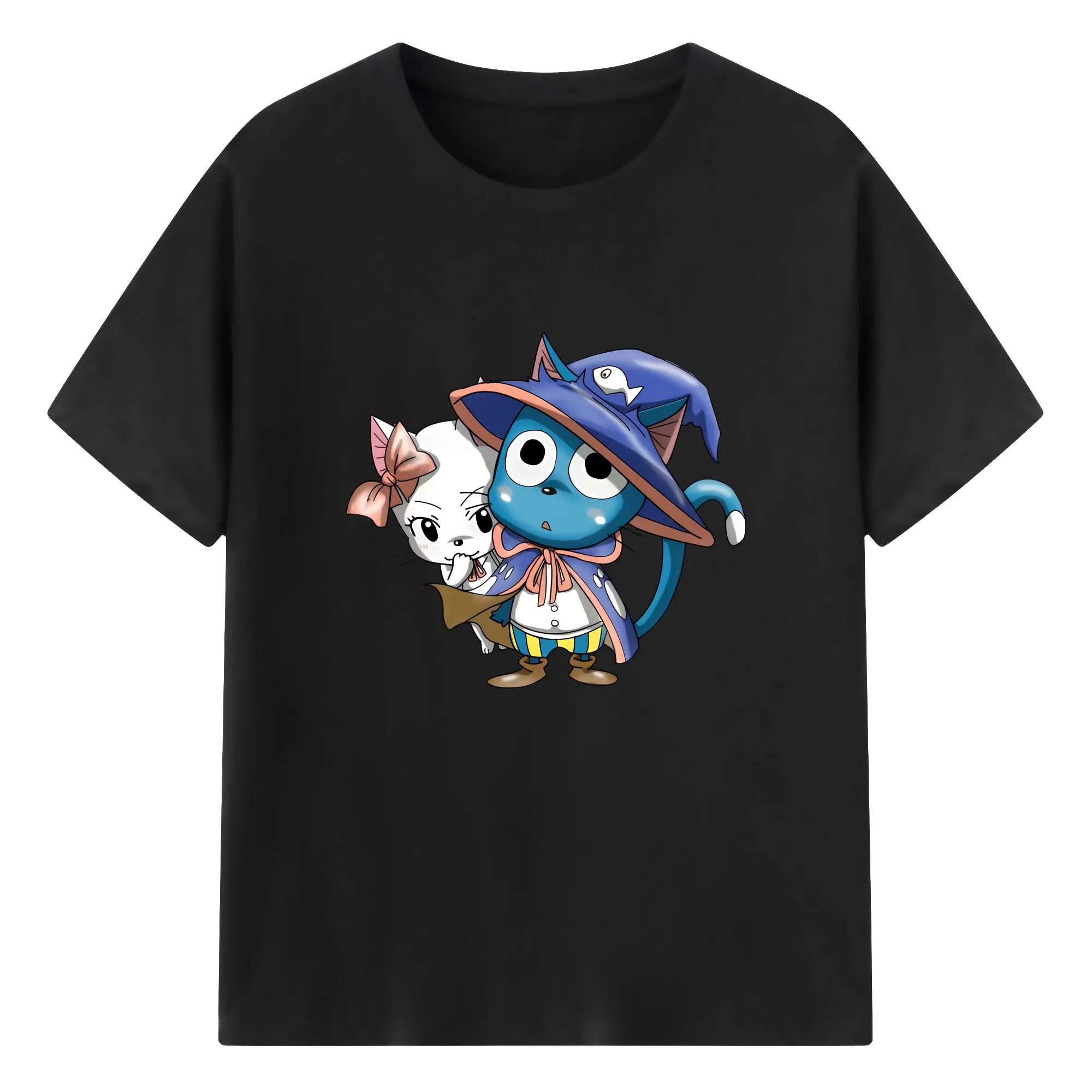 フェアリーテイル グッズ ハッピー - 綿100% 半袖Tシャツ ・ バックプリント ・ 快適 通気性 ・ 日常使い 散歩 スポーツ用