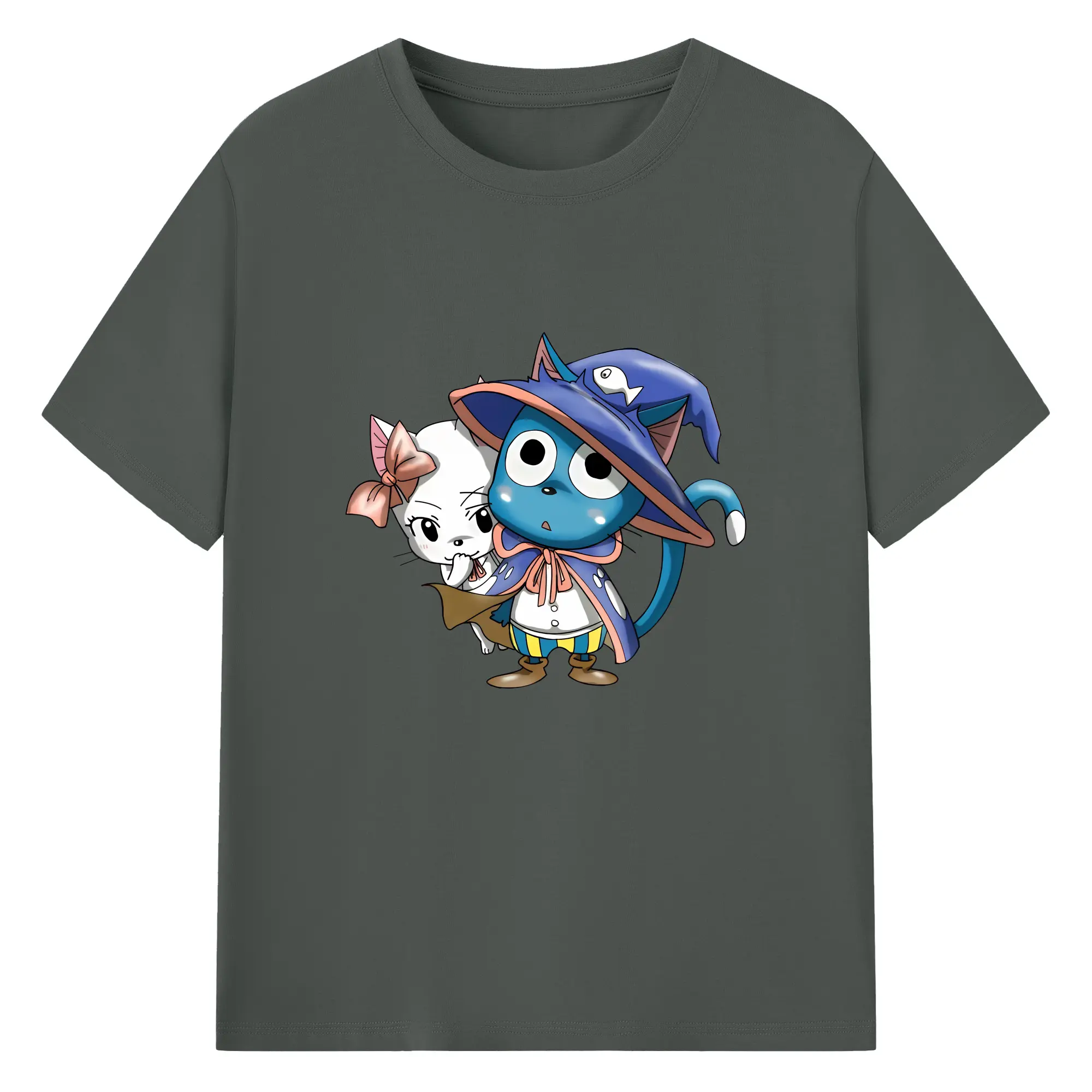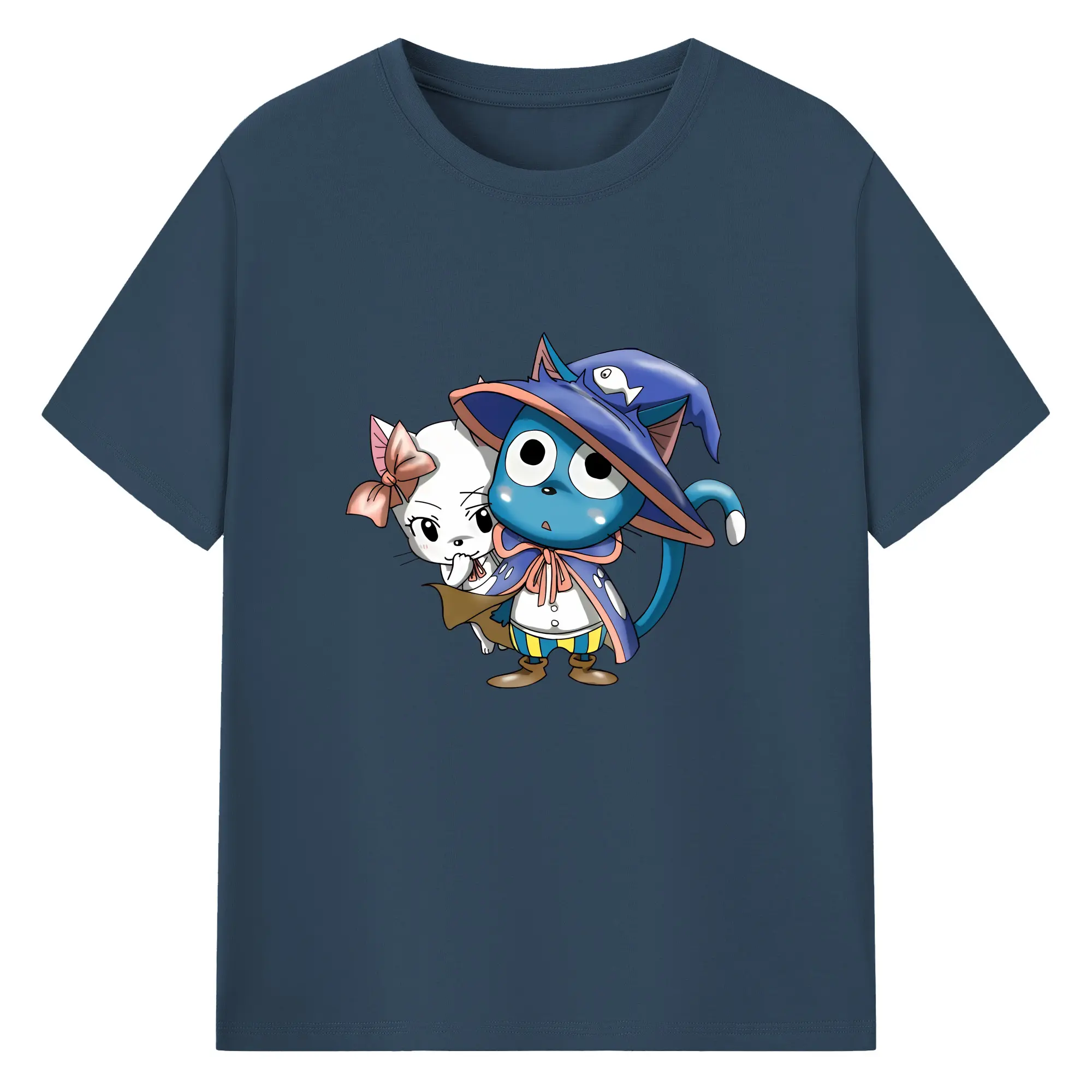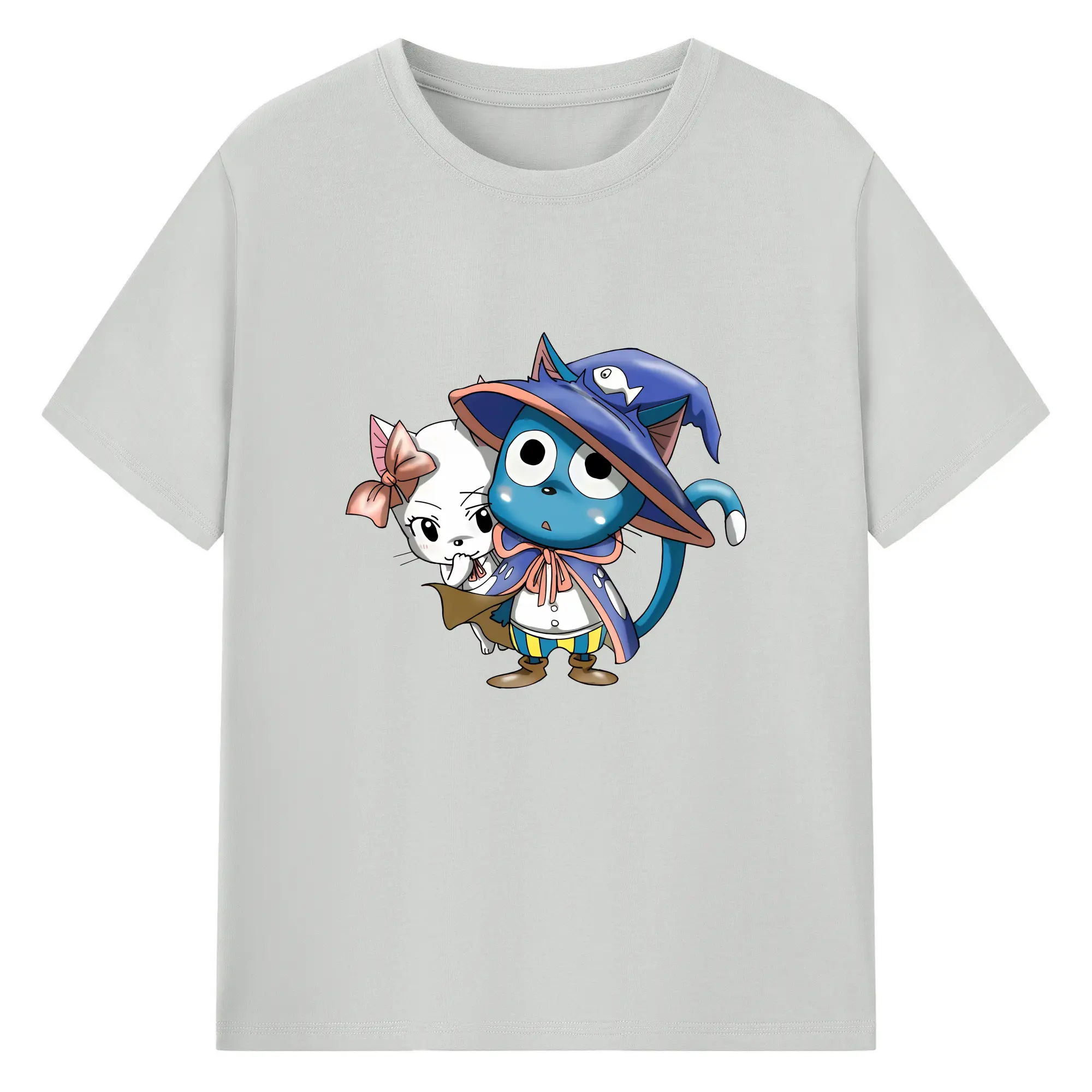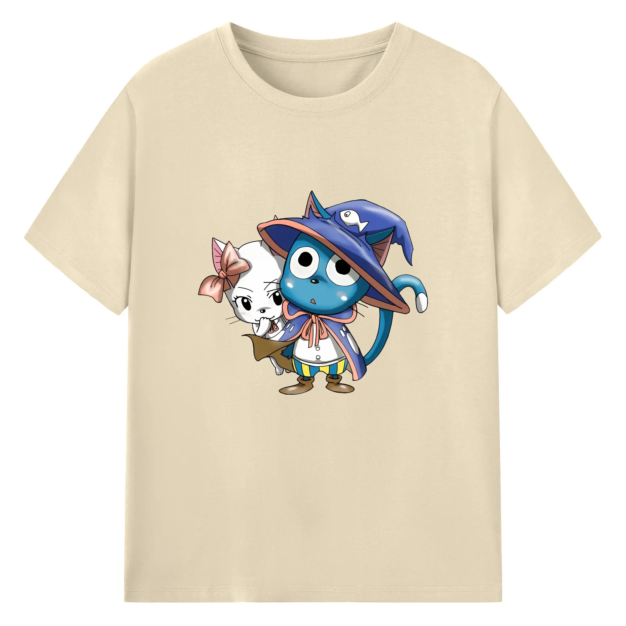 フェアリーテイル グッズ ハッピー - 綿100% 半袖Tシャツ ・ バックプリント ・ 快適 通気性 ・ 日常使い 散歩 スポーツ用