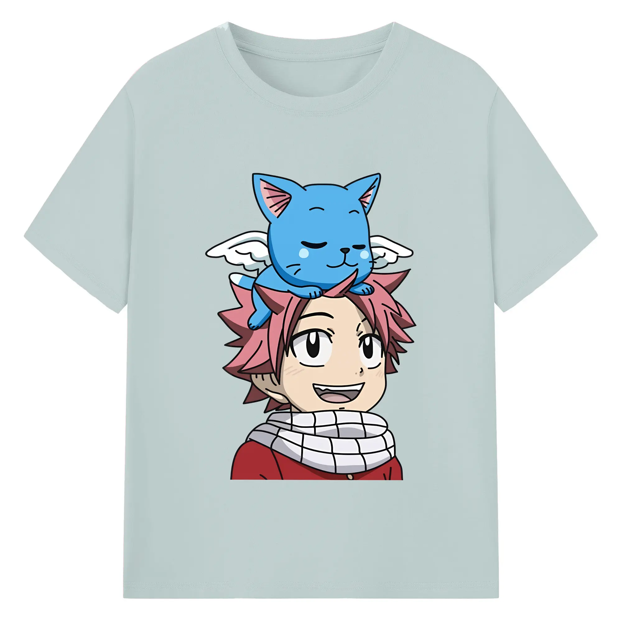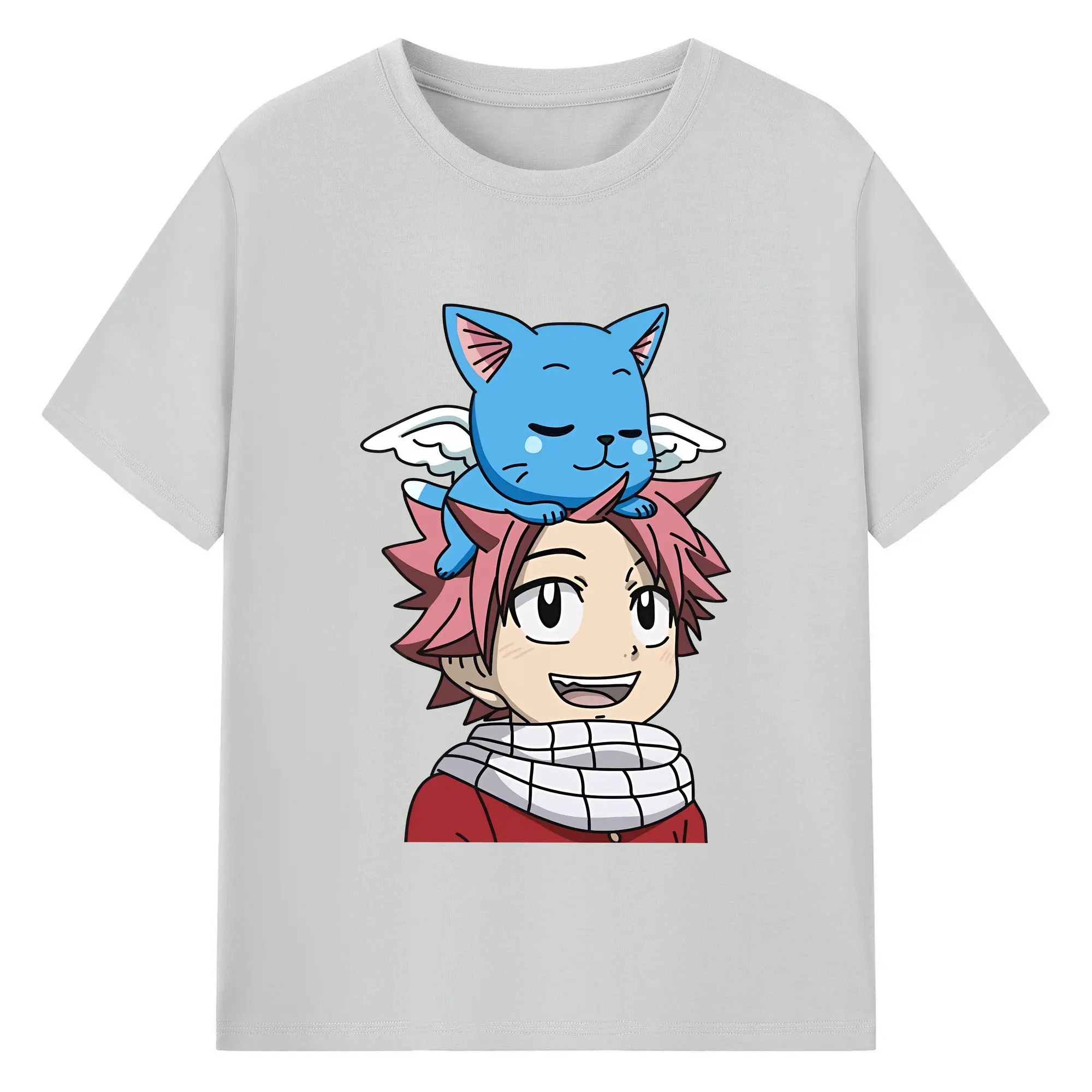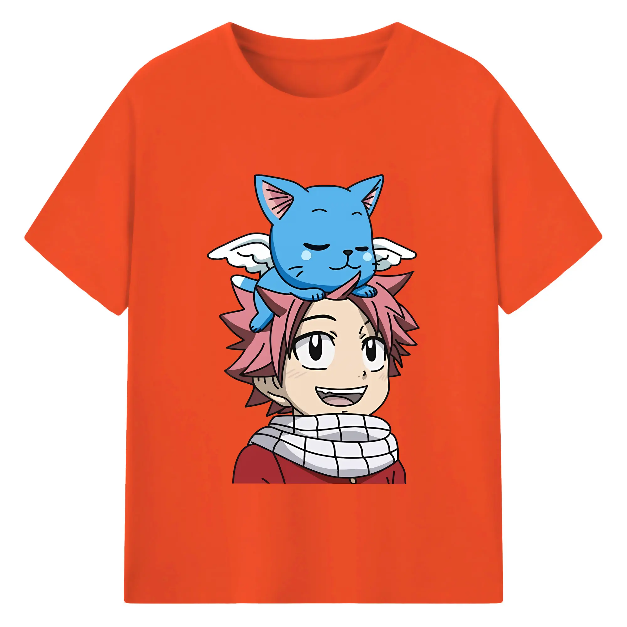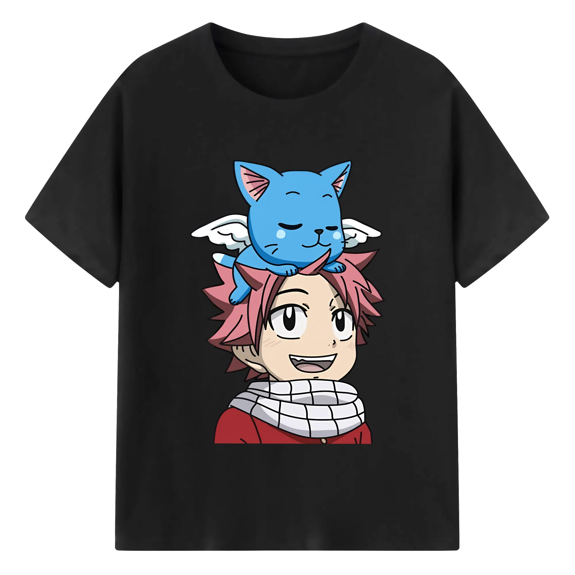 フェアリーテイル グッズ ハッピー - 綿100% 半袖Tシャツ ・ バックプリント ・ 快適 通気性 ・ 日常使い 散歩 スポーツ用