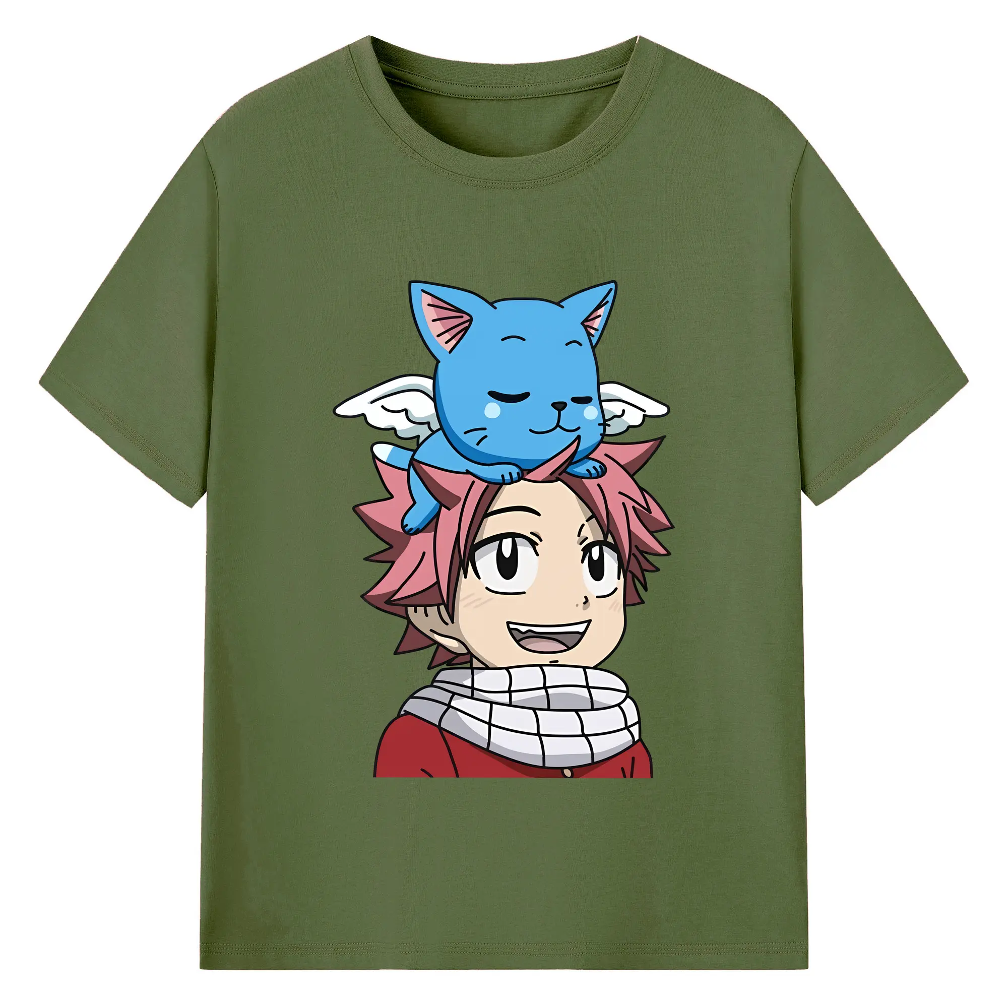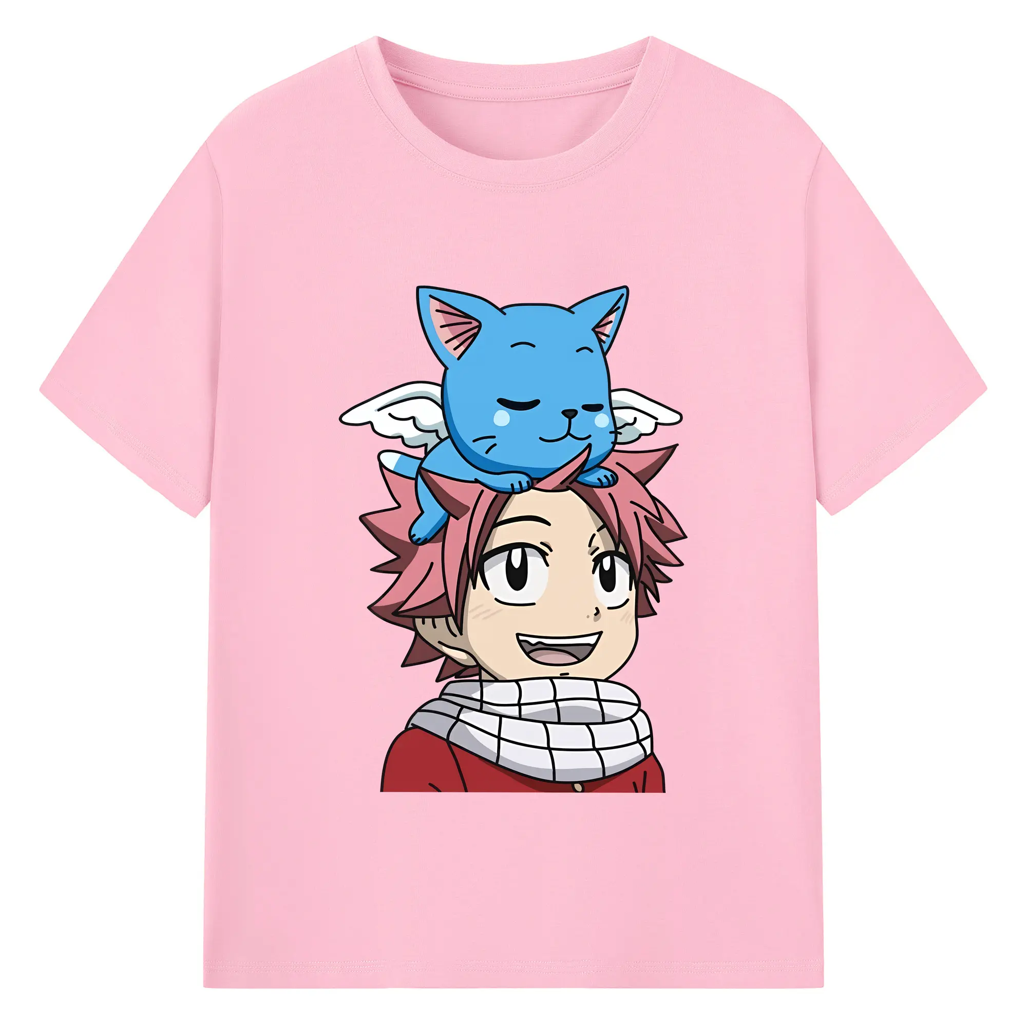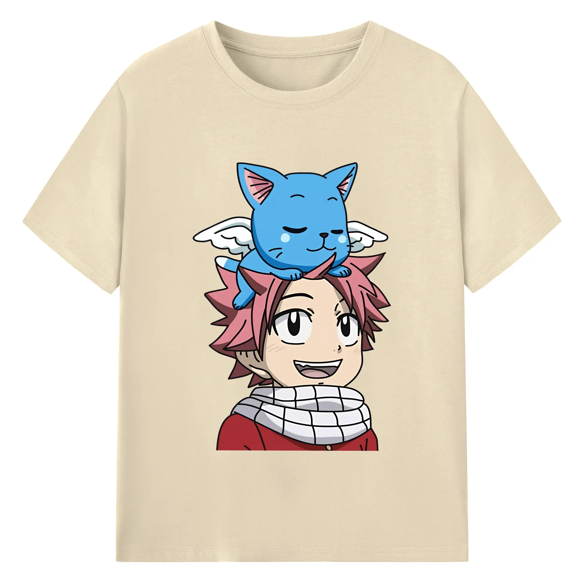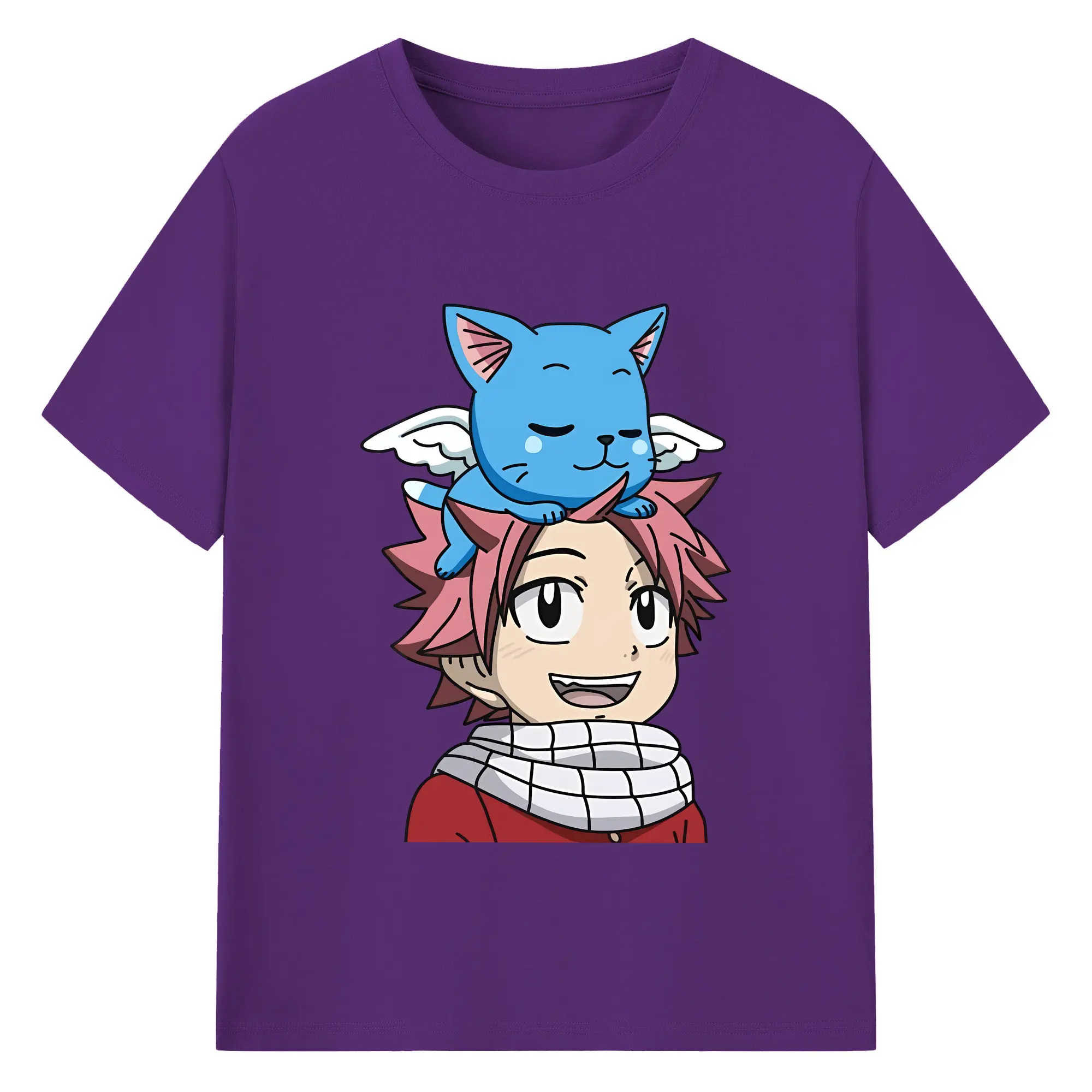 フェアリーテイル グッズ ハッピー - 綿100% 半袖Tシャツ ・ バックプリント ・ 快適 通気性 ・ 日常使い 散歩 スポーツ用