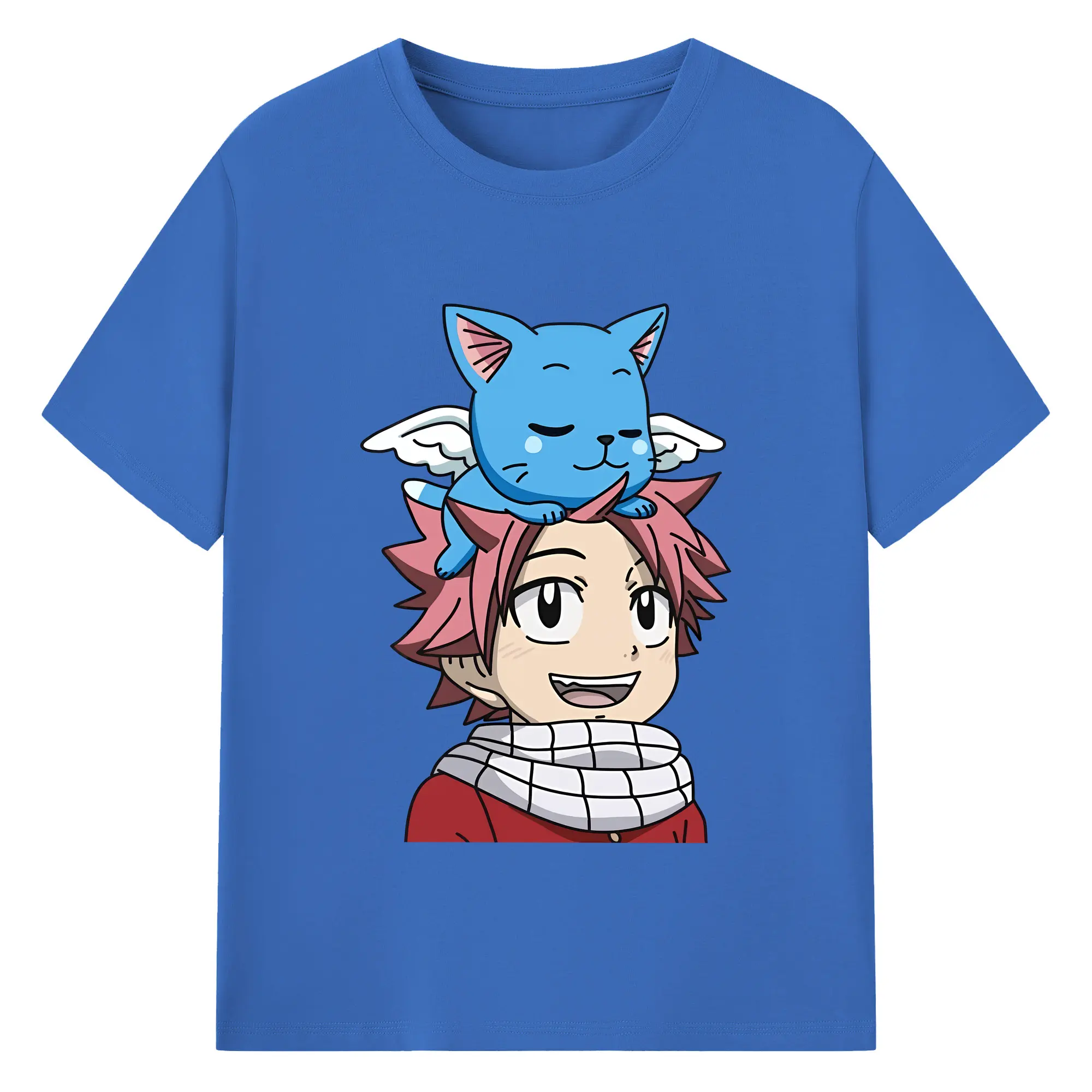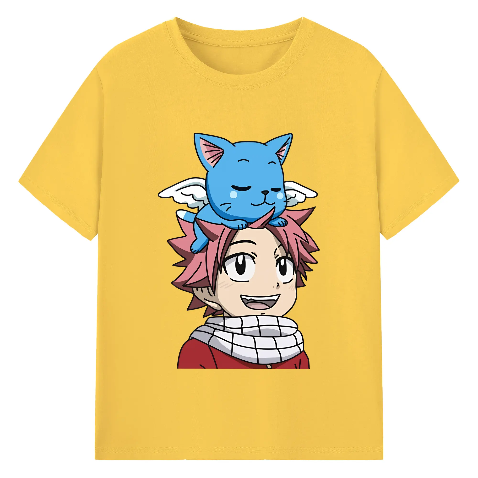 フェアリーテイル グッズ ハッピー - 綿100% キッズTシャツ ・ フロントプリント ・ 快適 通気性 ・ スポーツ カジュアル 散歩用