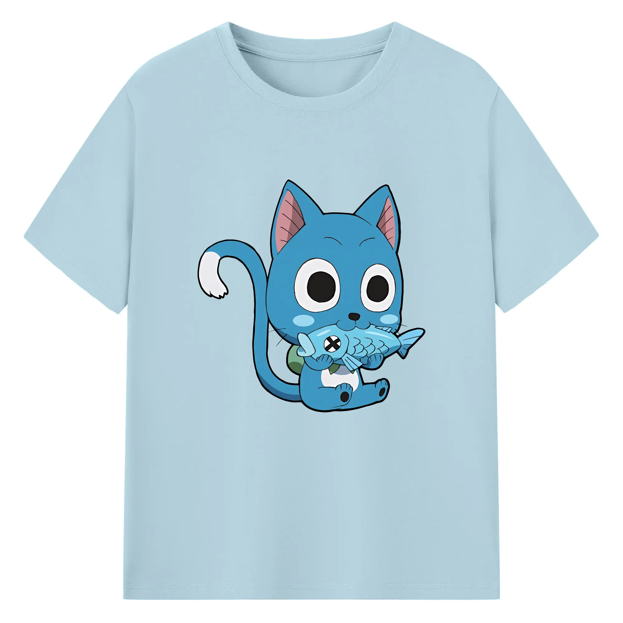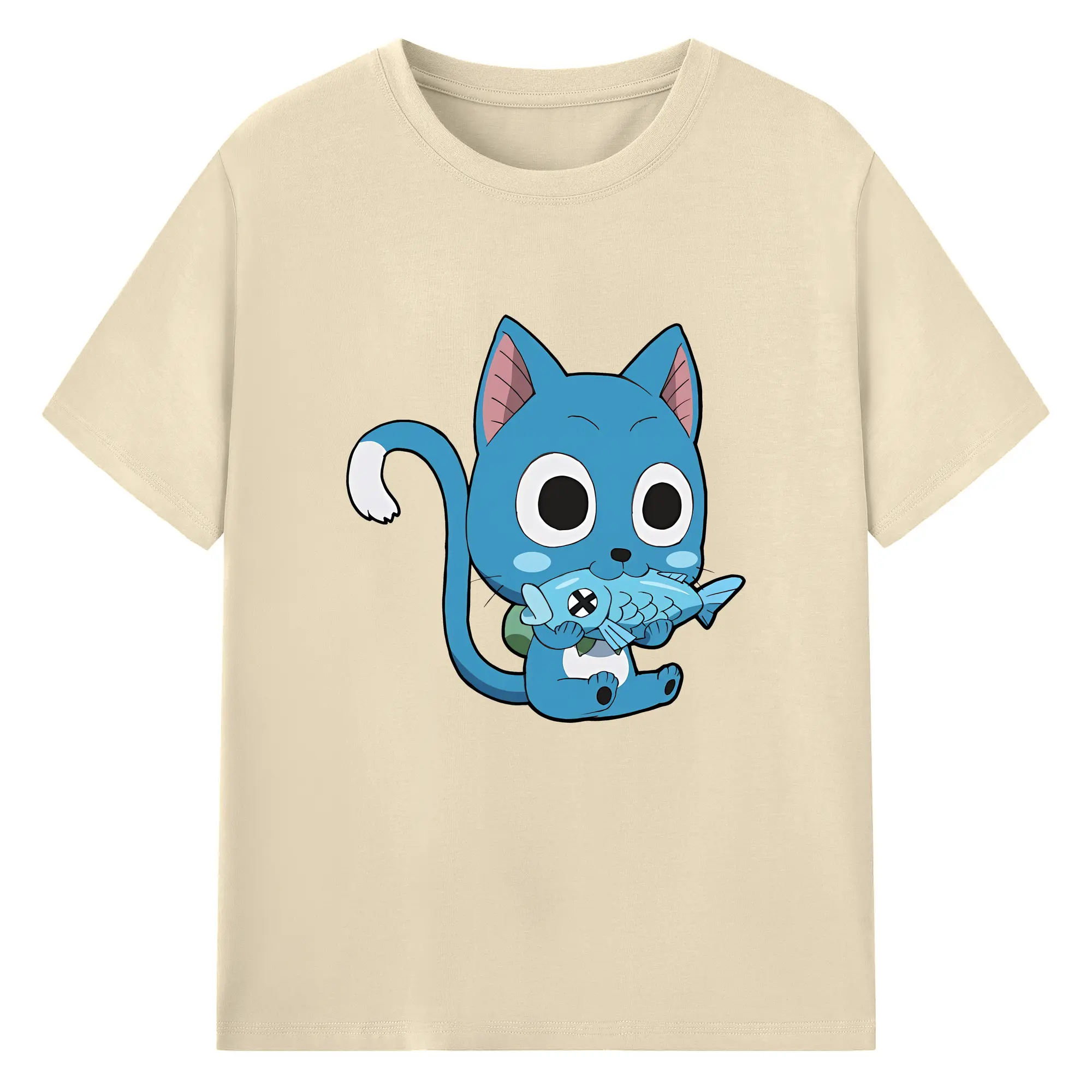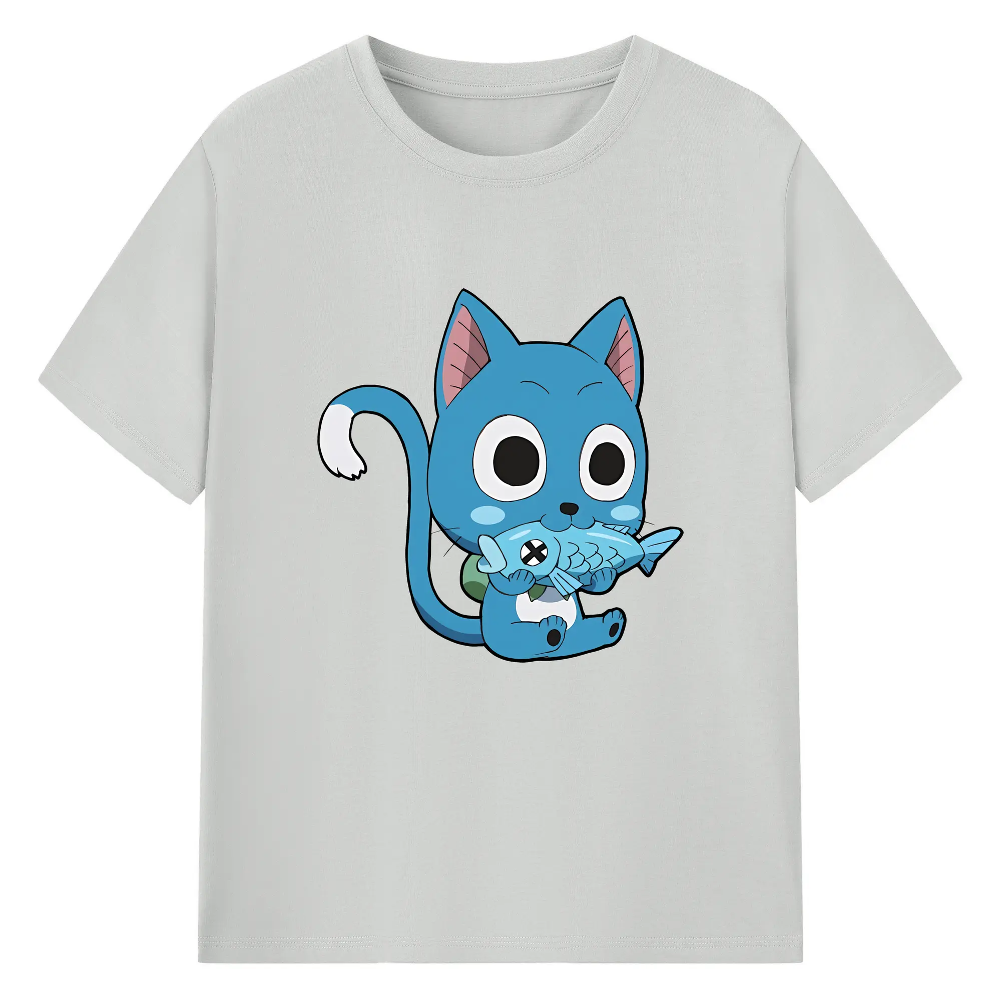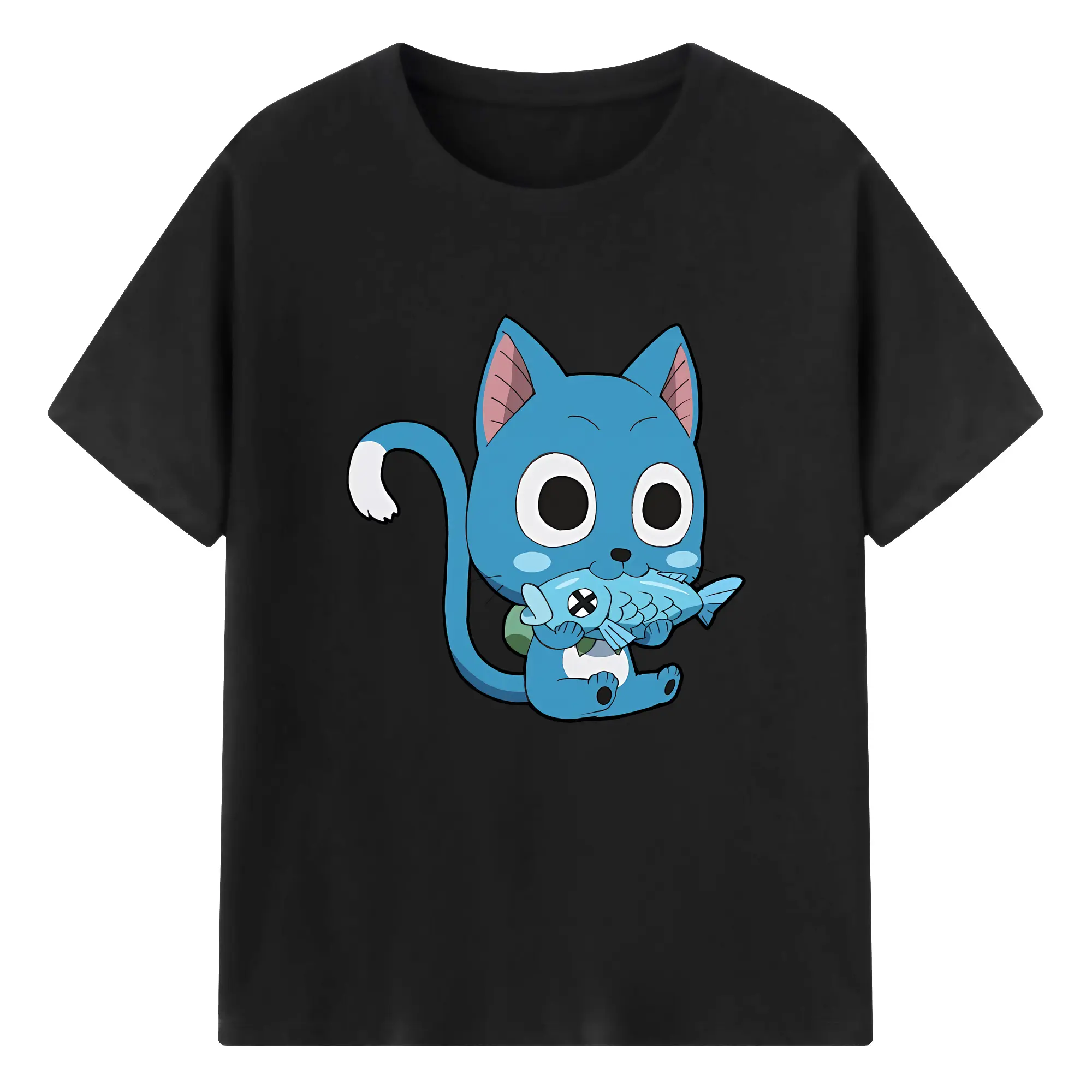 フェアリーテイル グッズ ハッピー - 綿100% 半袖Tシャツ ・ バックプリント ・ 快適 通気性 ・ 日常使い 散歩 スポーツ用