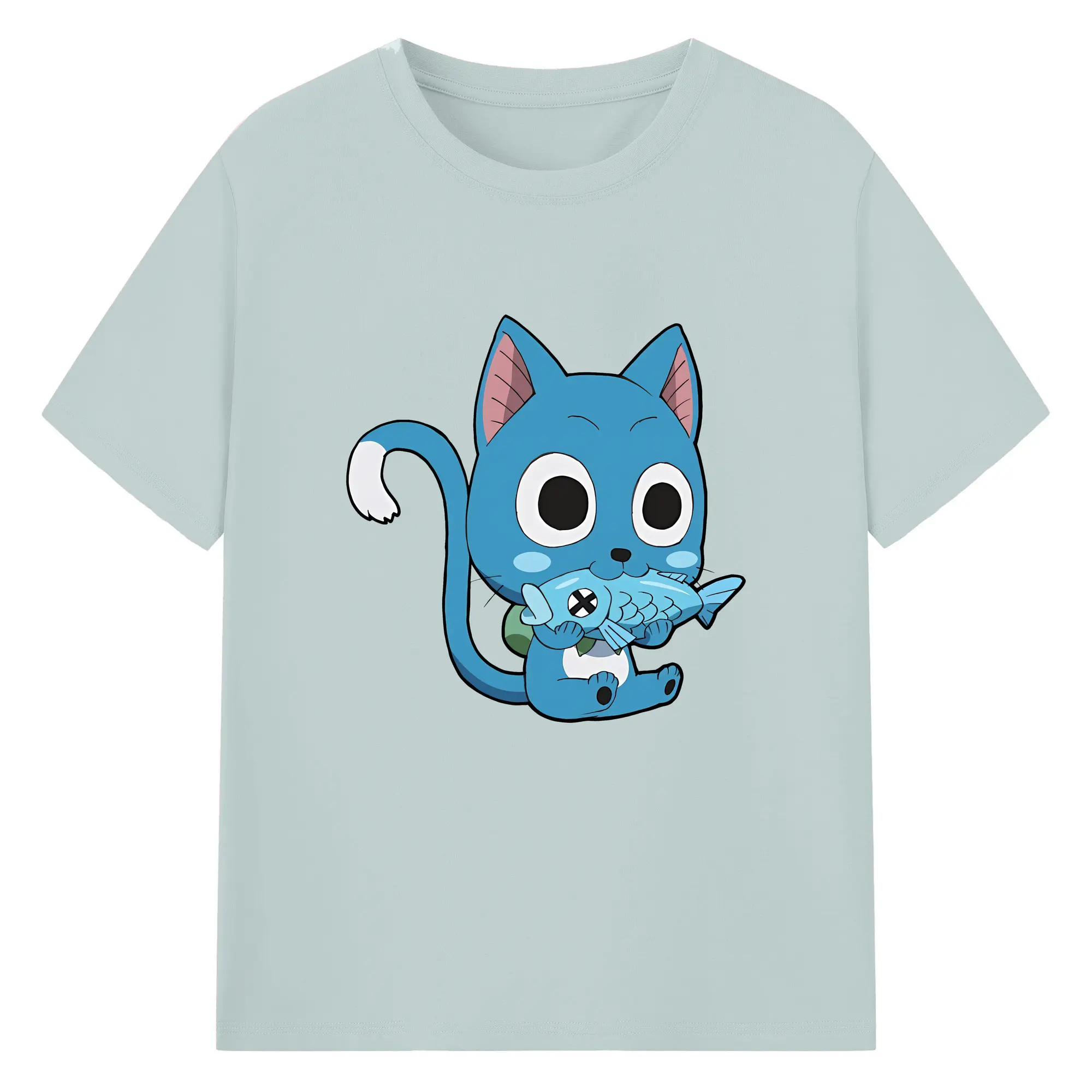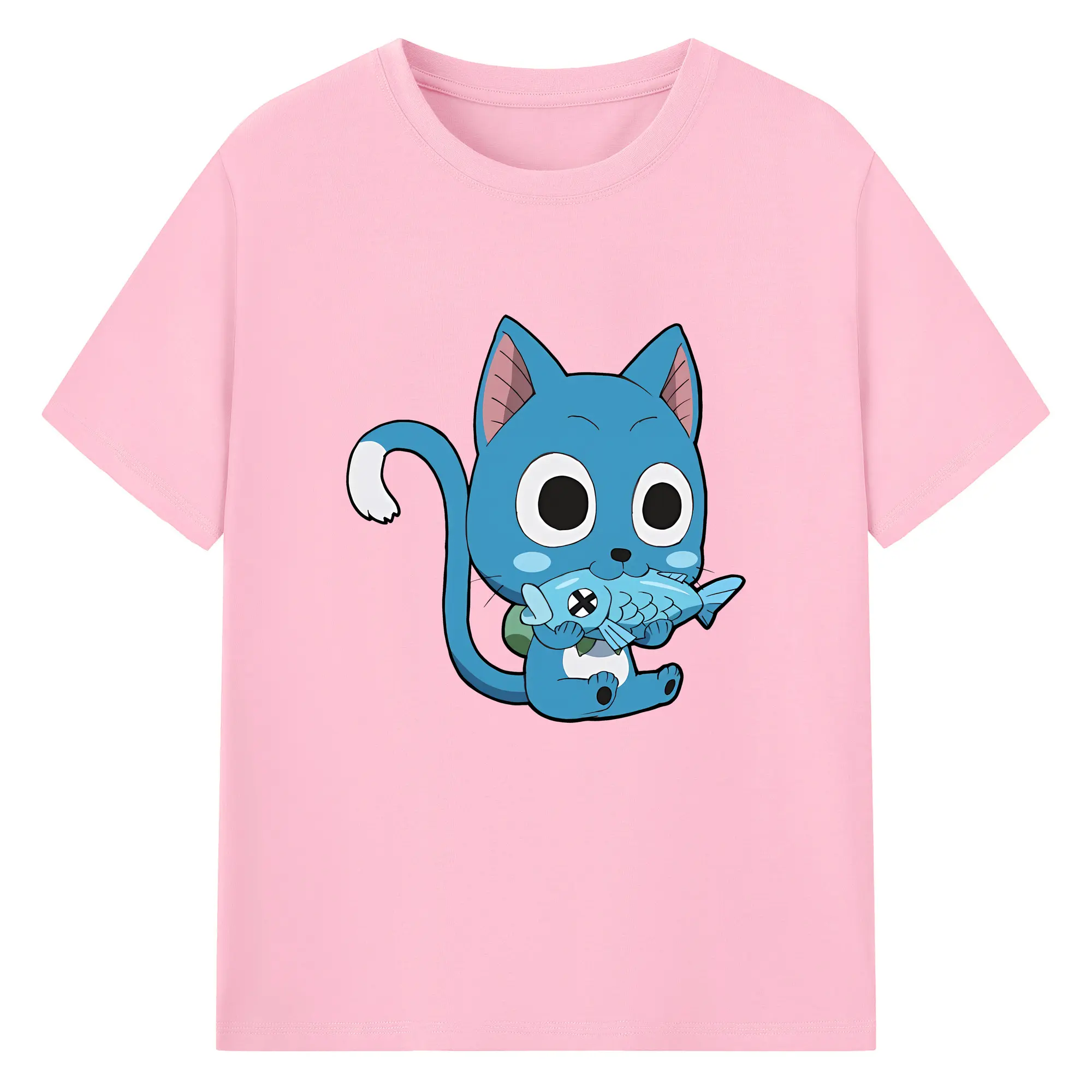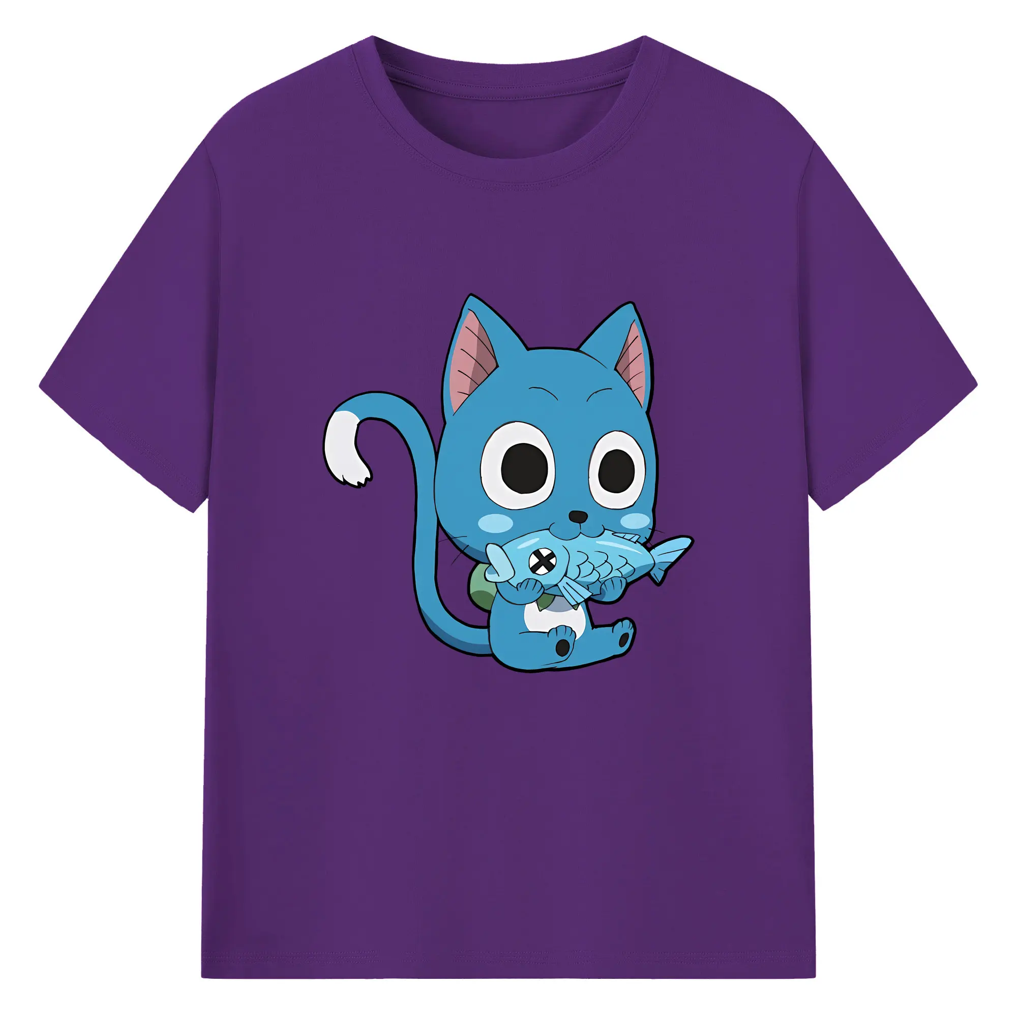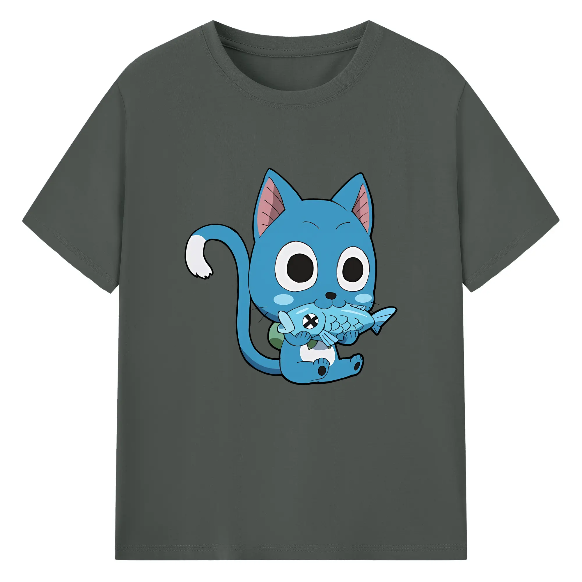 フェアリーテイル グッズ ハッピー - 綿100% 半袖Tシャツ ・ バックプリント ・ 快適 通気性 ・ 日常使い 散歩 スポーツ用