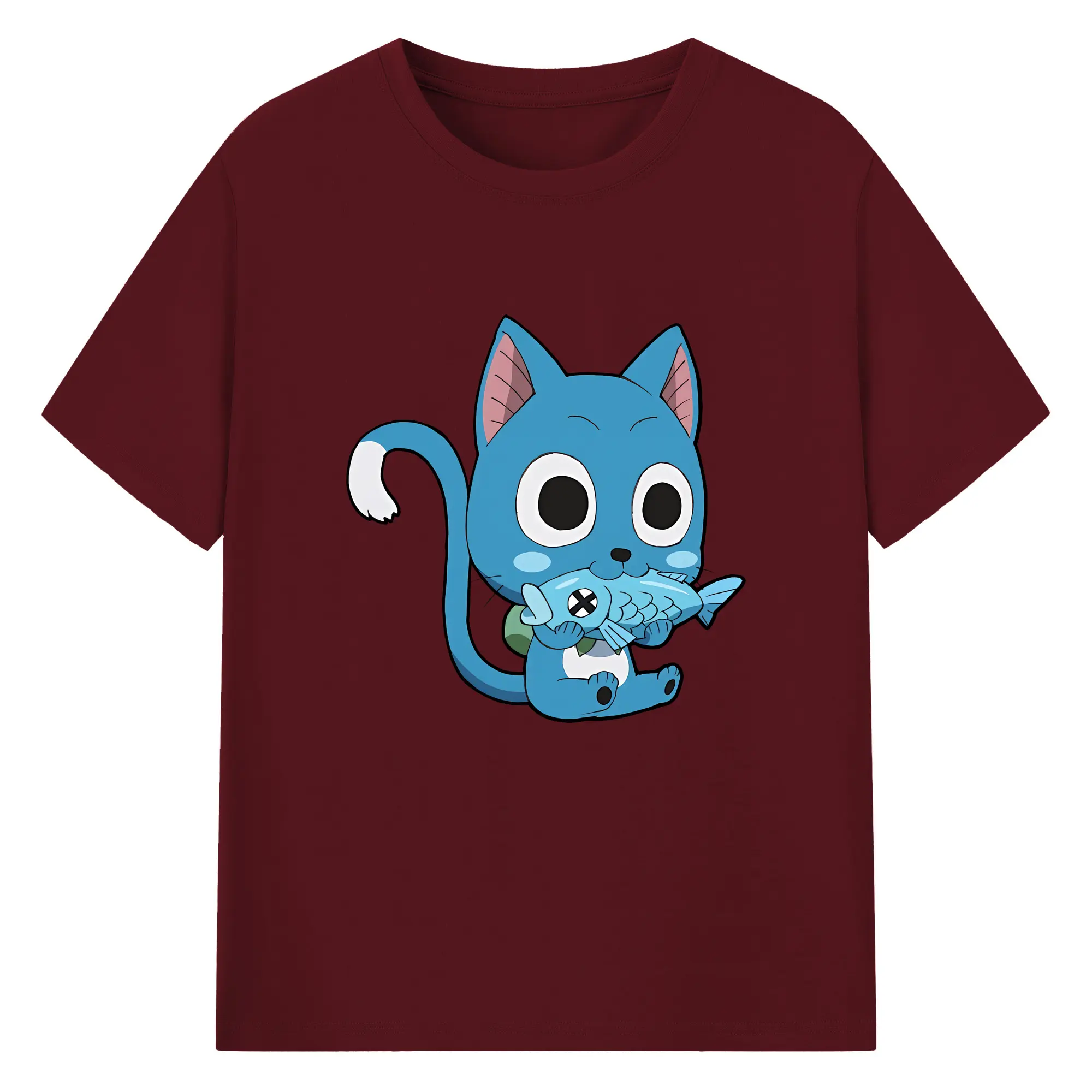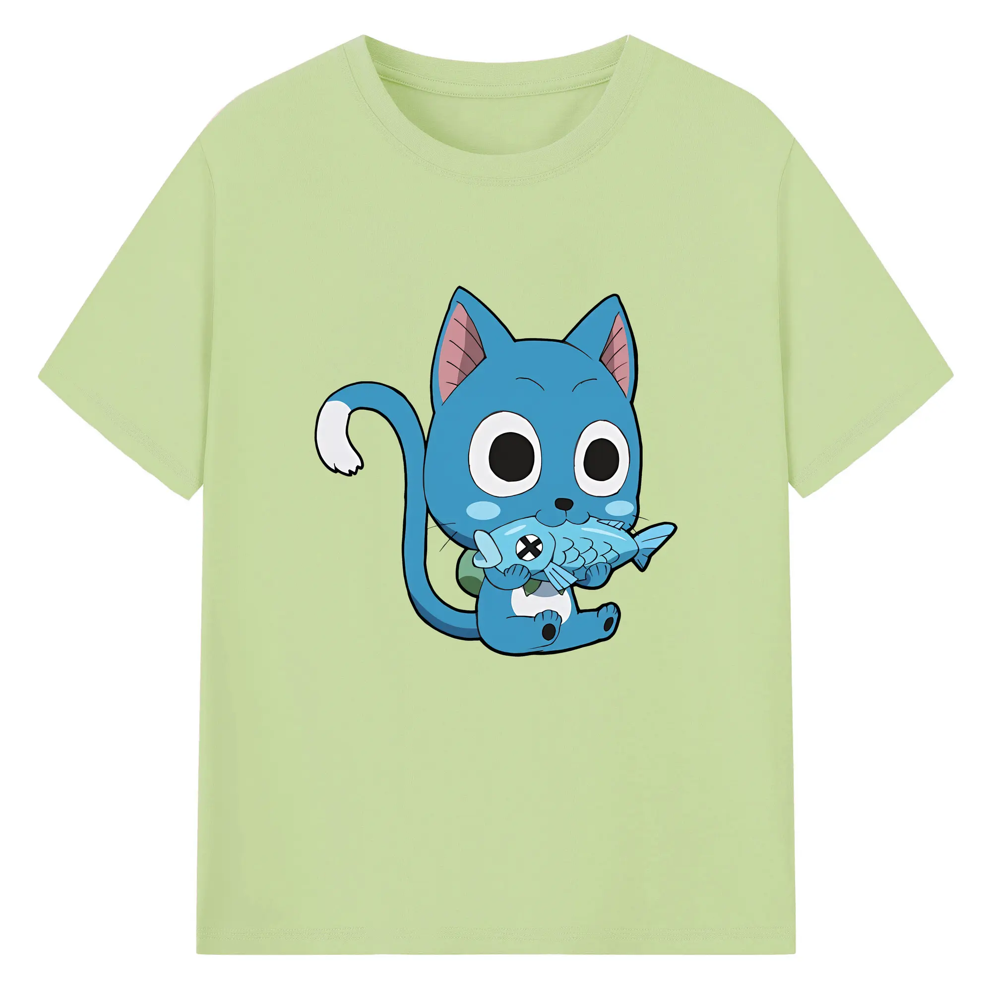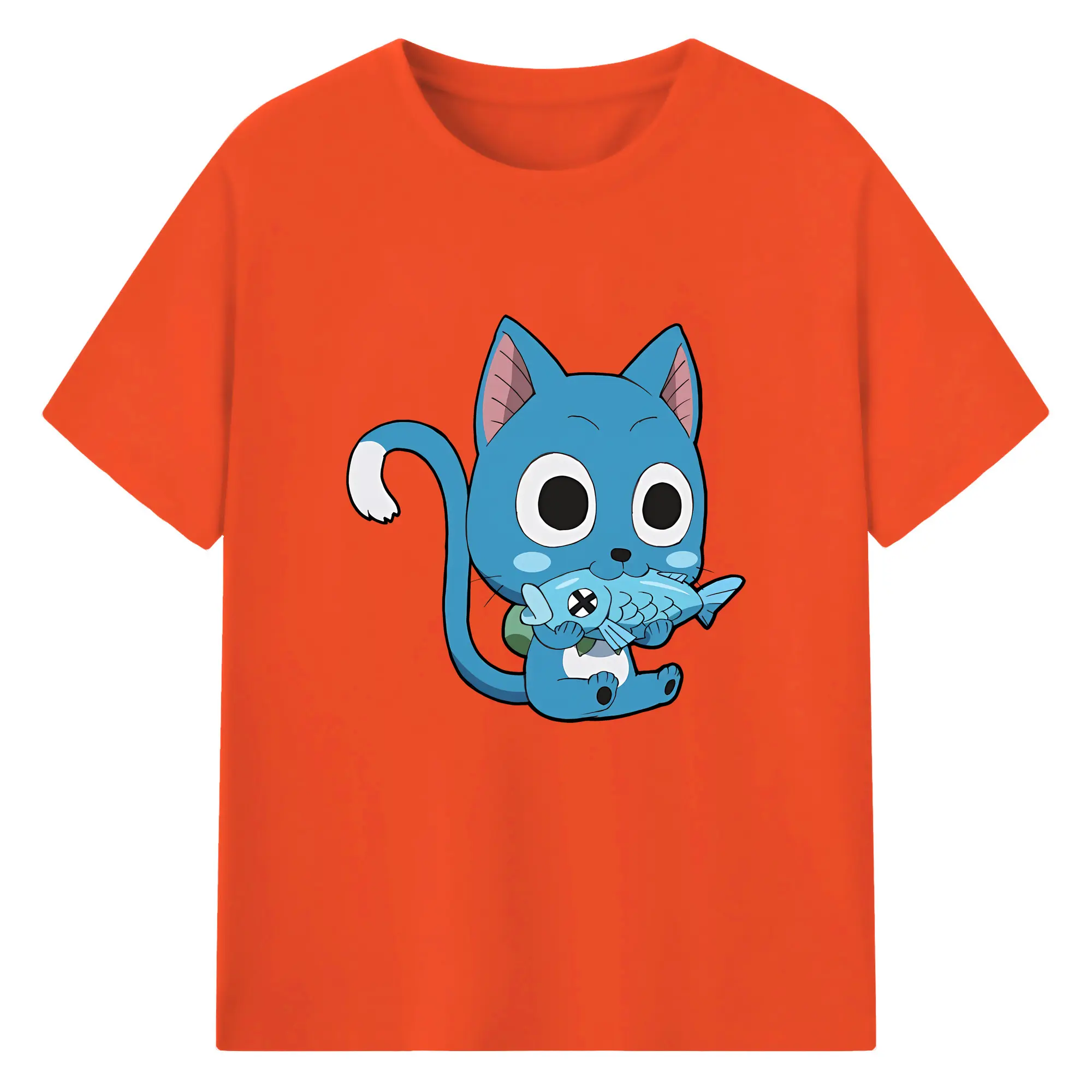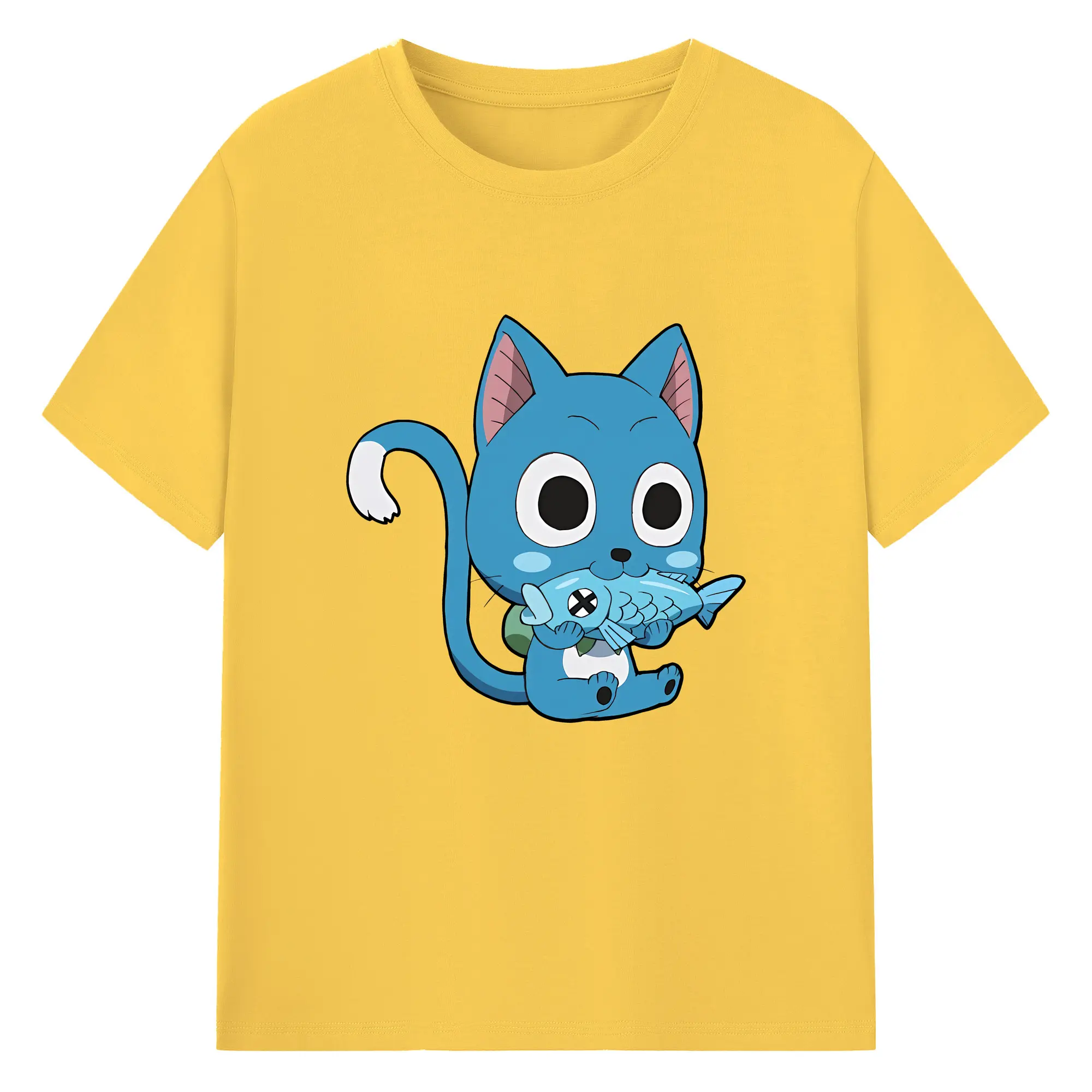 フェアリーテイル グッズ ハッピー - 綿100% キッズTシャツ ・ フロントプリント ・ 快適 通気性 ・ スポーツ カジュアル 散歩用