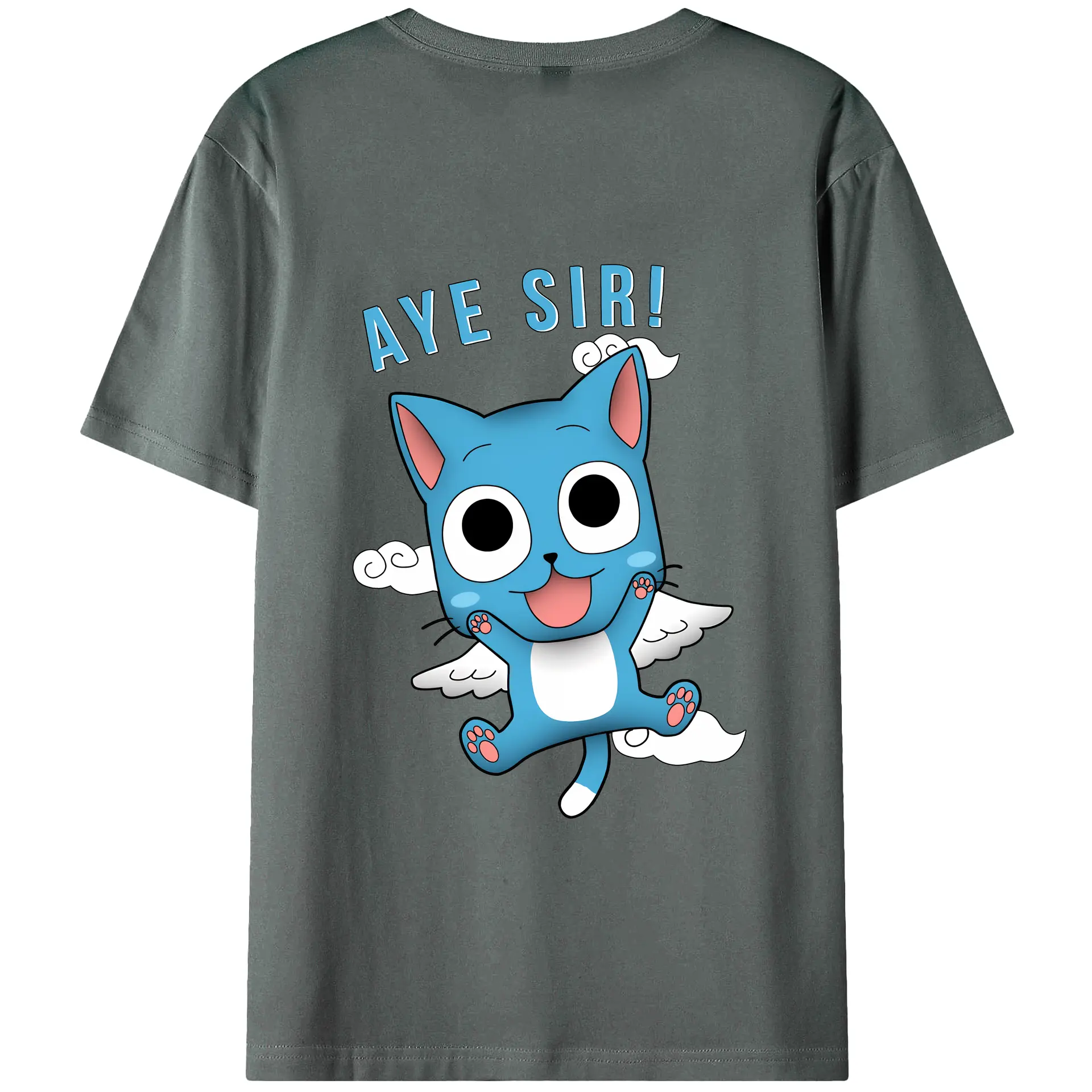 フェアリーテイル グッズ ハッピー - 綿100% ヴィンテージ風 半袖Tシャツ ・ 背面プリント ・ 柔らか肌触り ・ 通気性 快適 ・ スポーツ カジュアル 外出用