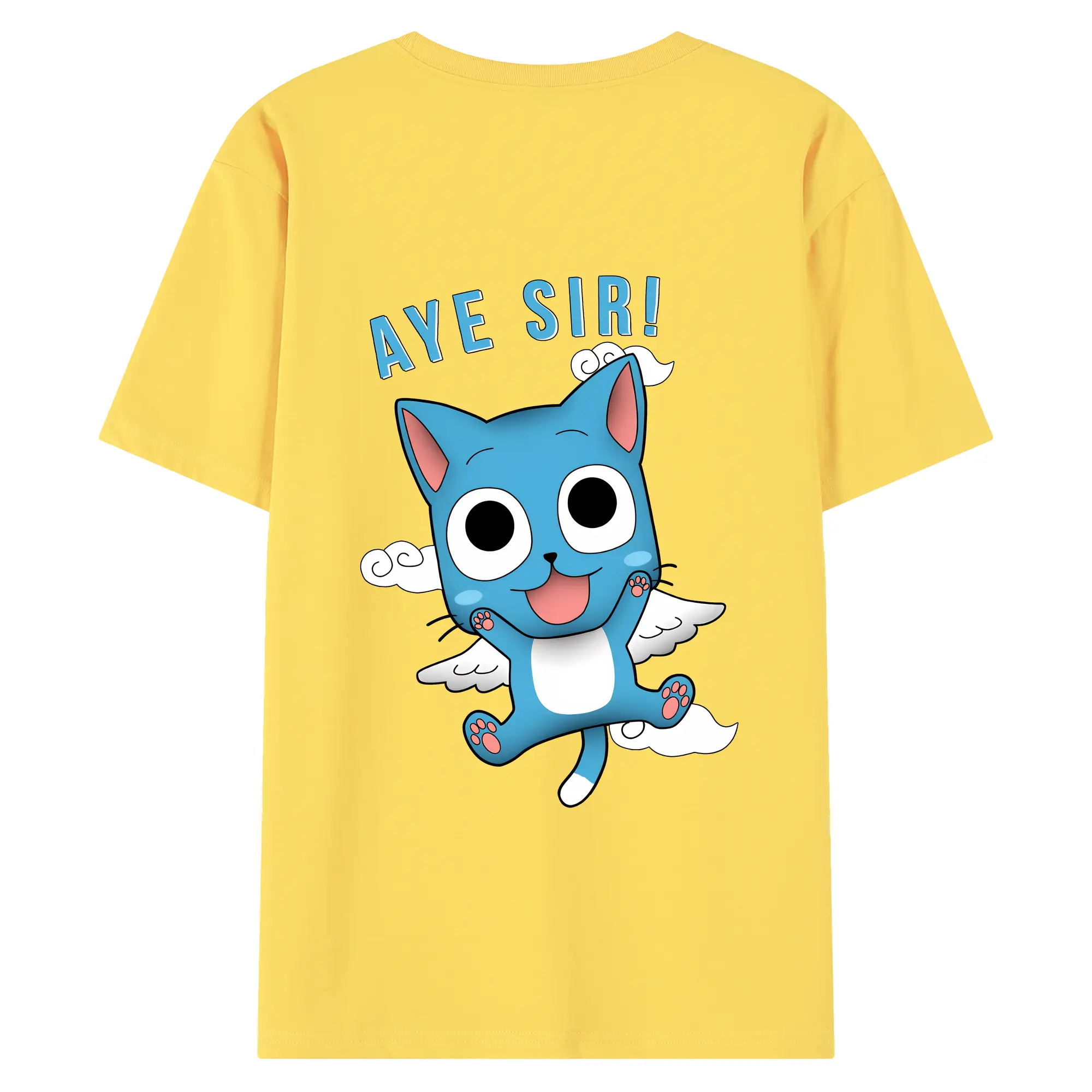 フェアリーテイル グッズ ハッピー - 綿100% 半袖Tシャツ ・ フロントプリント ・ 快適 通気性 ・ 日常使い 散歩 スポーツ用