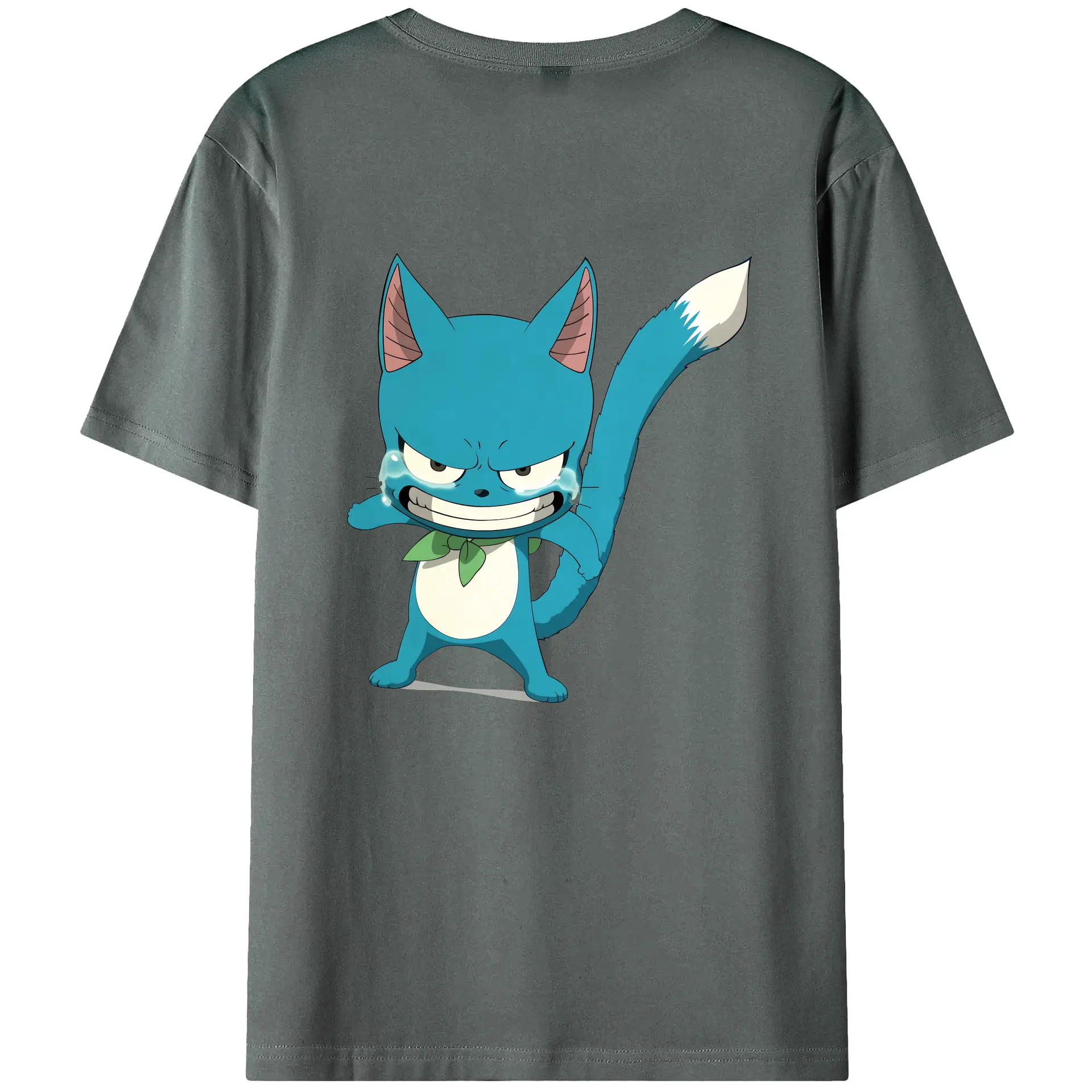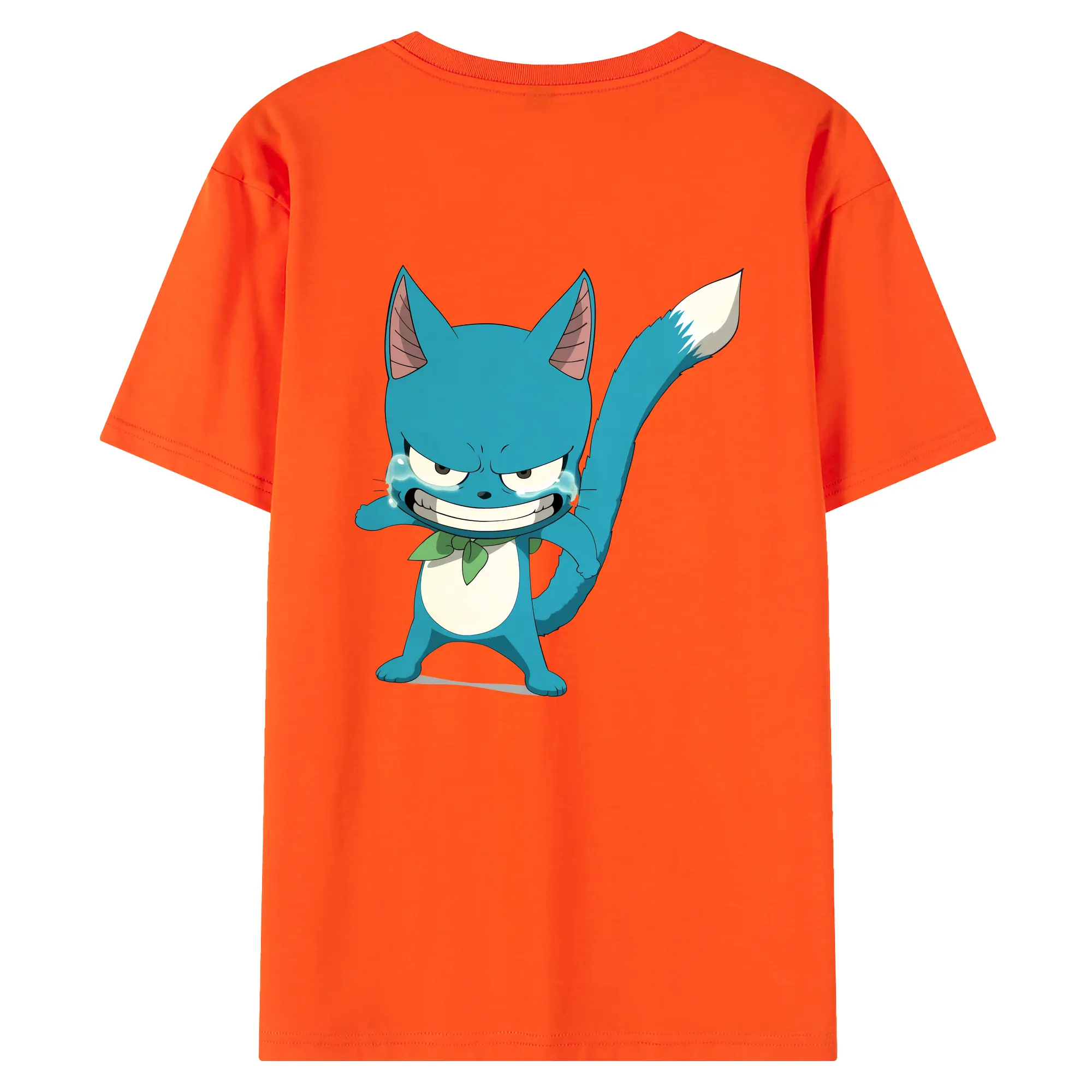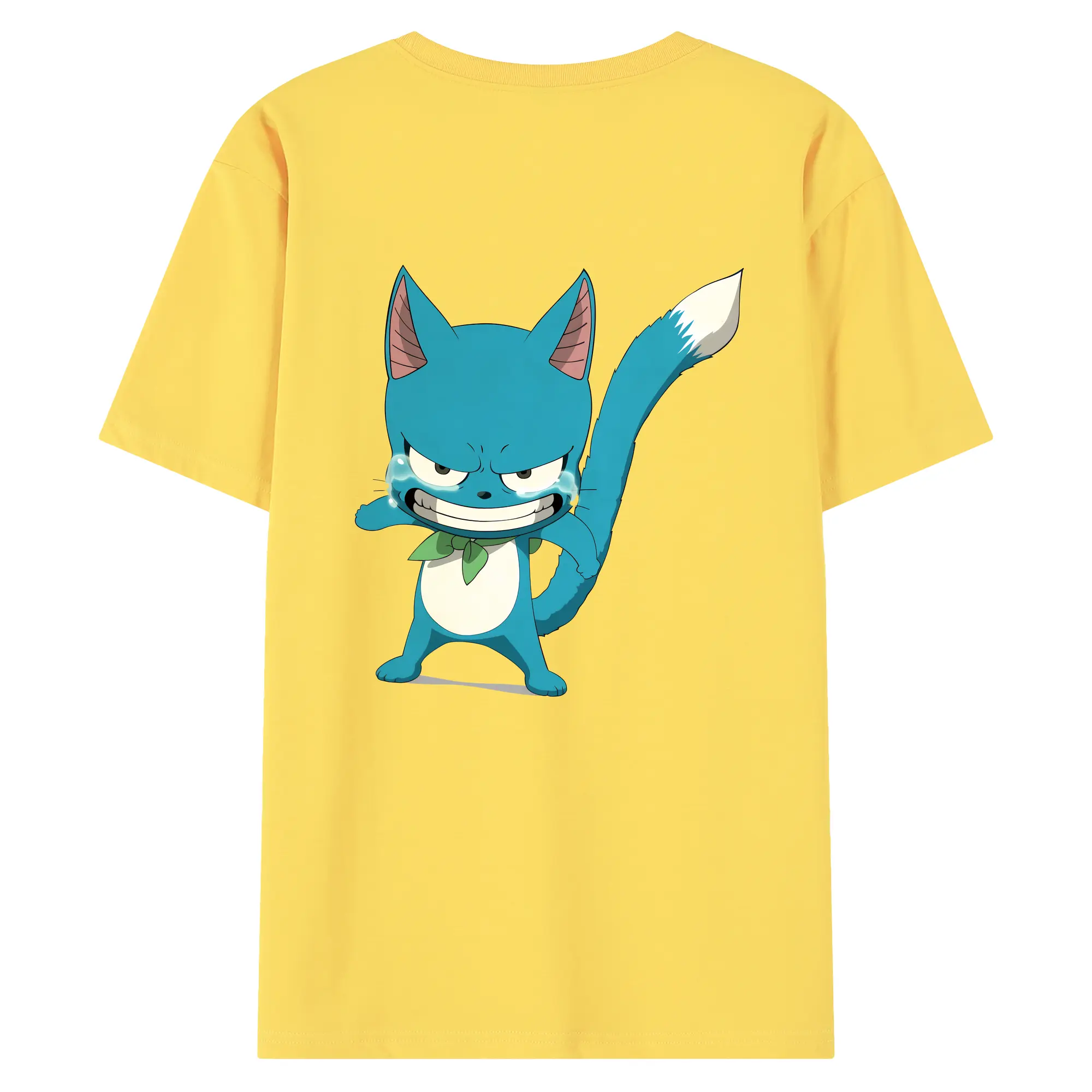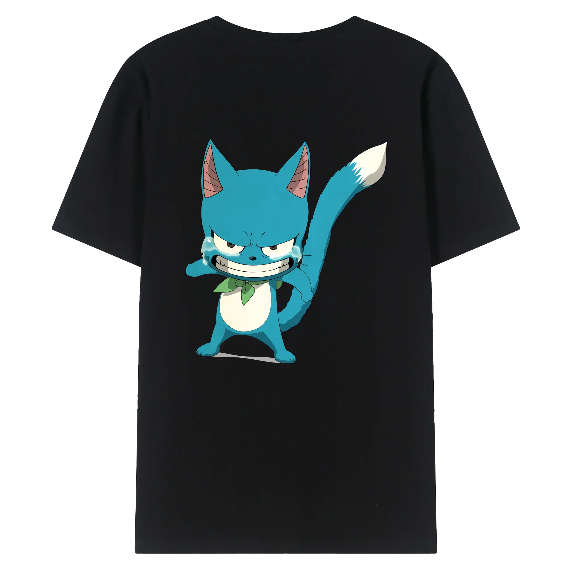 フェアリーテイル グッズ ハッピー - 綿100% 半袖Tシャツ ・ フロントプリント ・ 快適 通気性 ・ 日常使い 散歩 スポーツ用