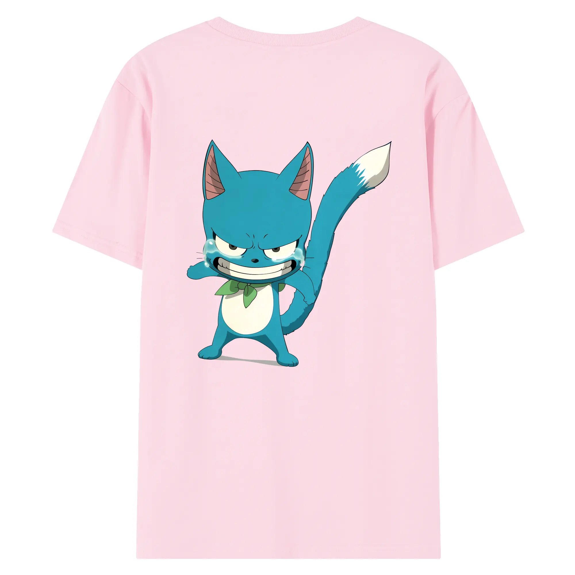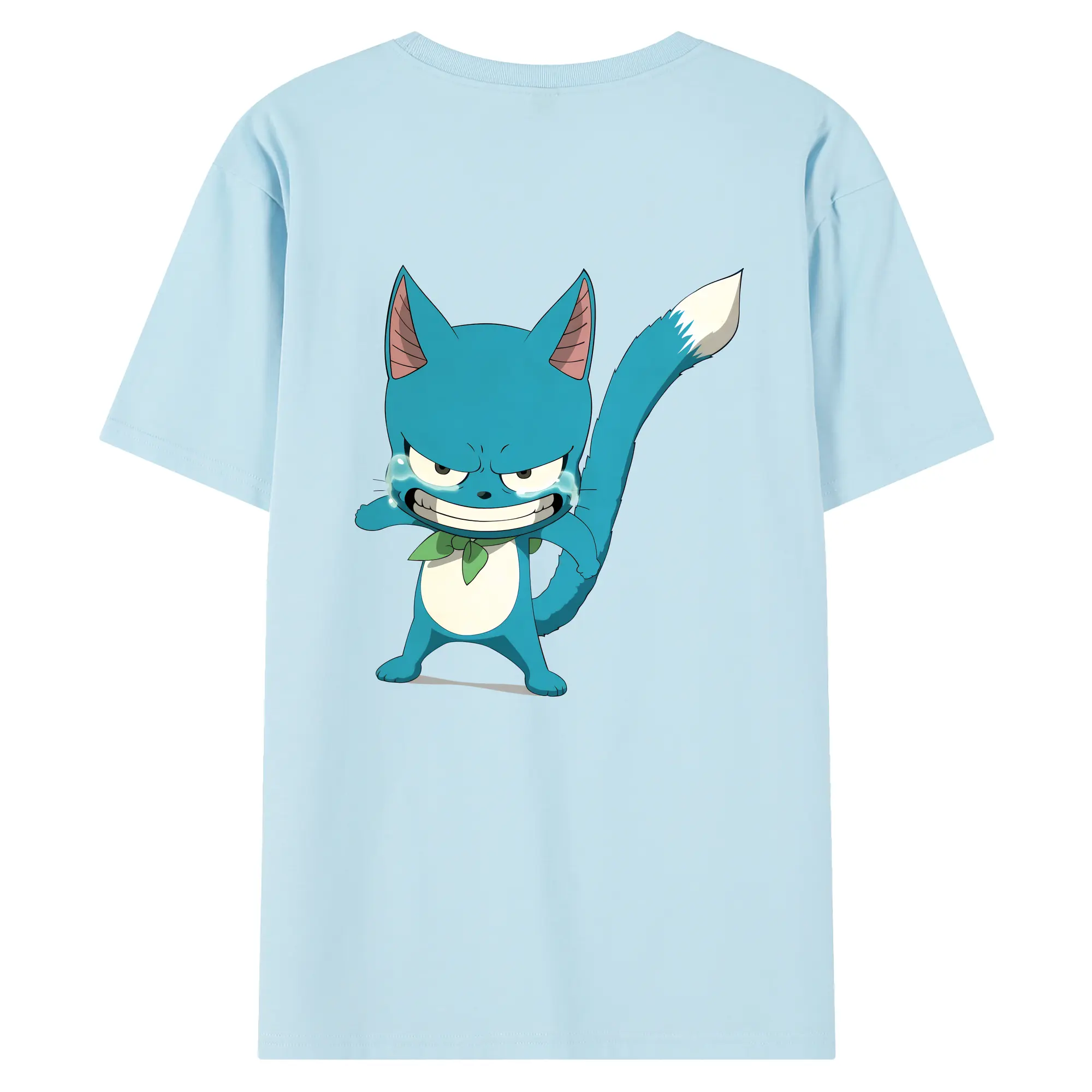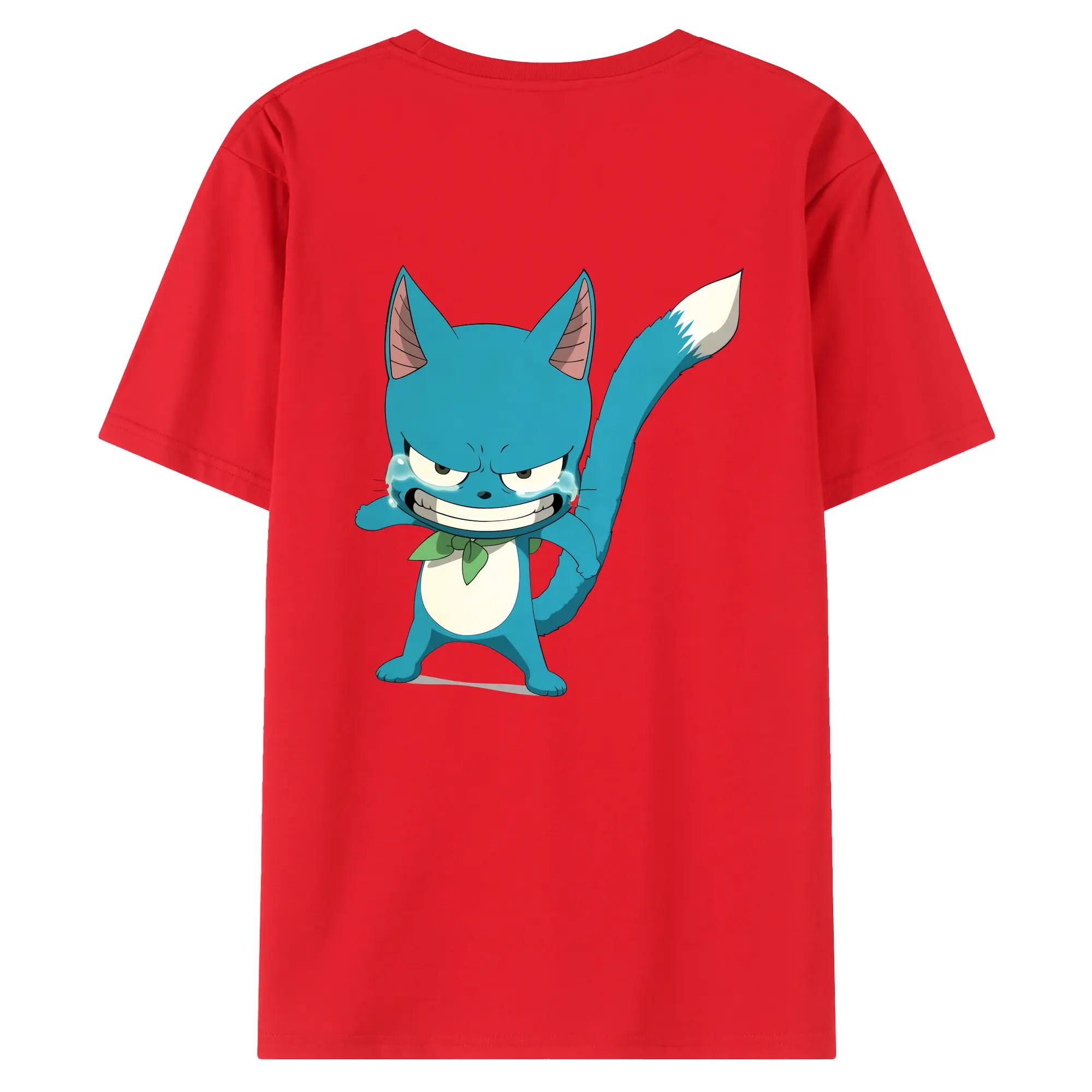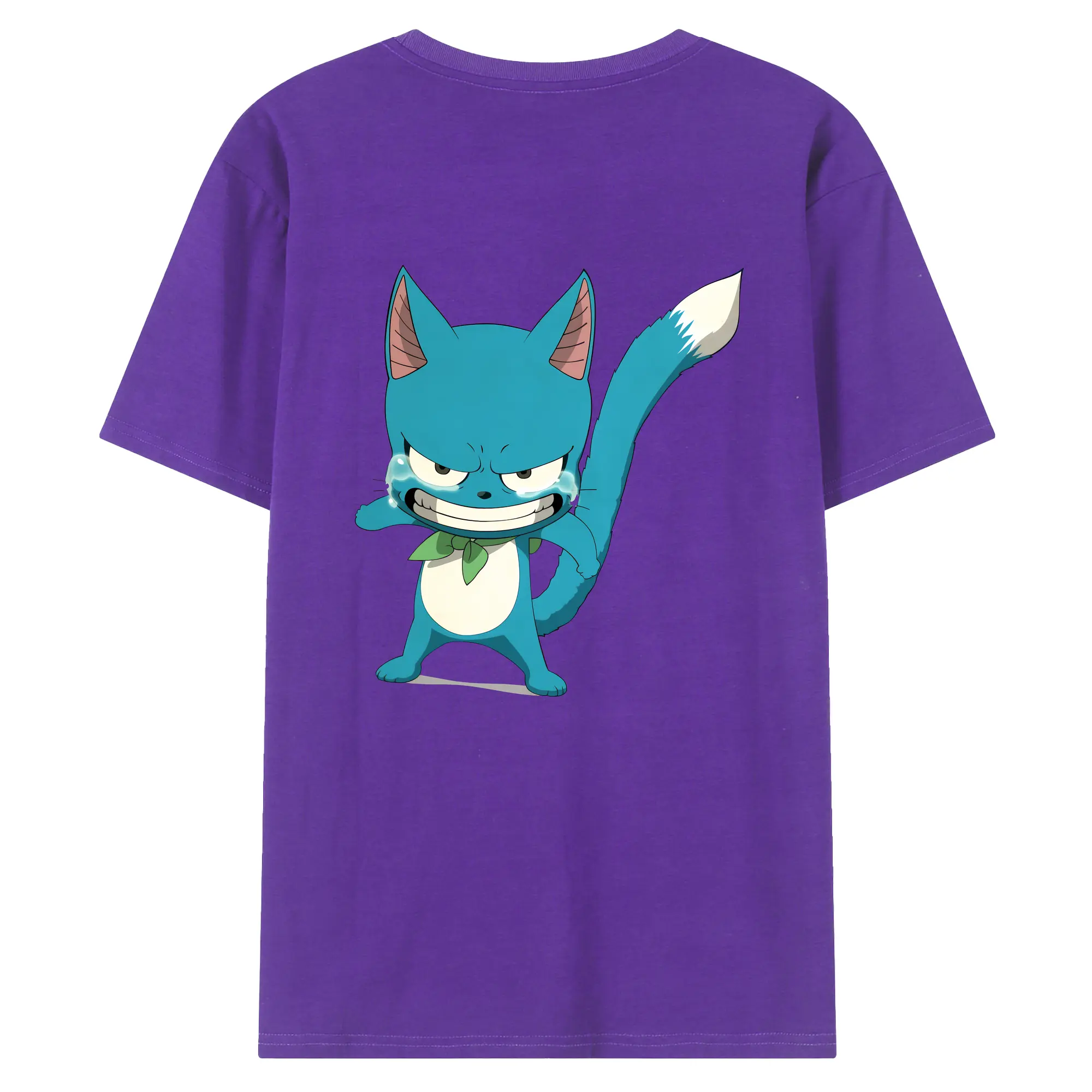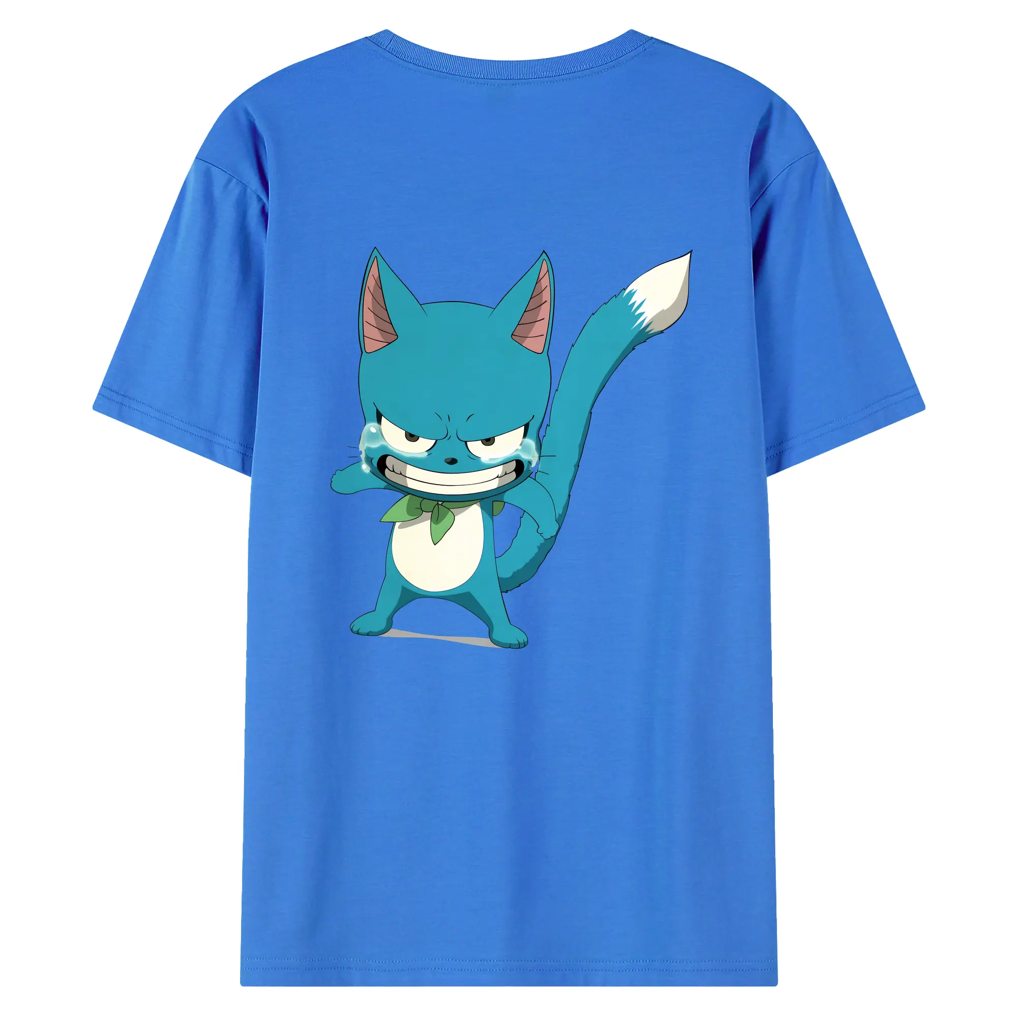 フェアリーテイル グッズ ハッピー - 綿100% 半袖Tシャツ ・ フロントプリント ・ 快適 通気性 ・ 日常使い 散歩 スポーツ用