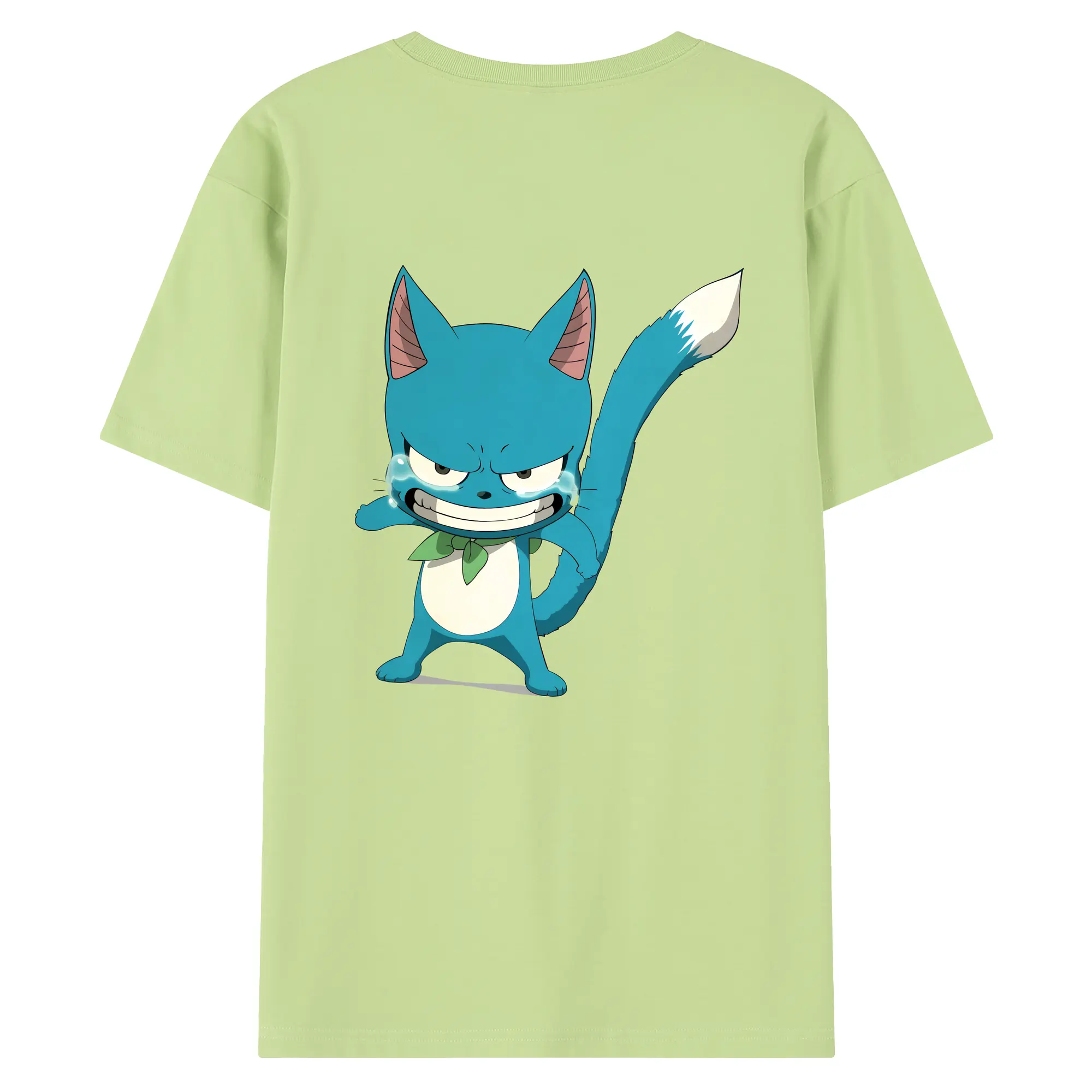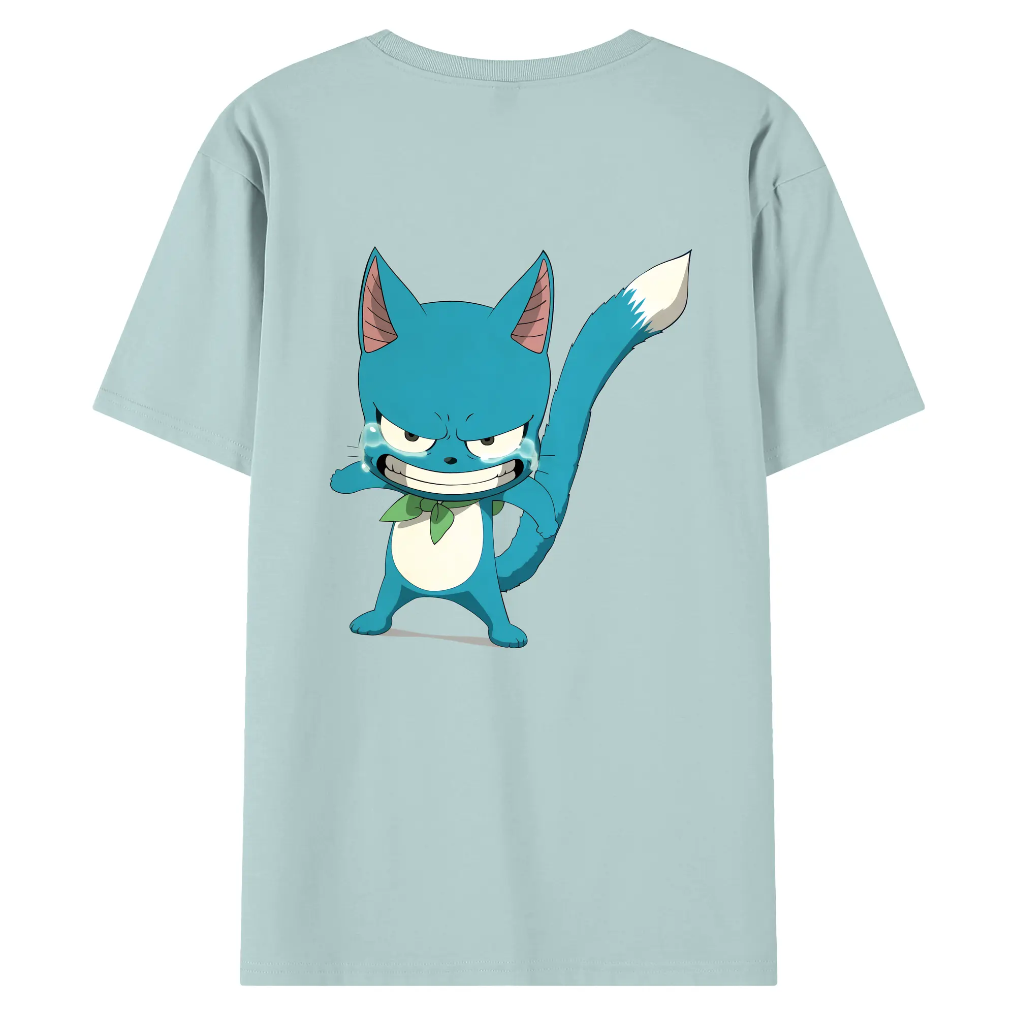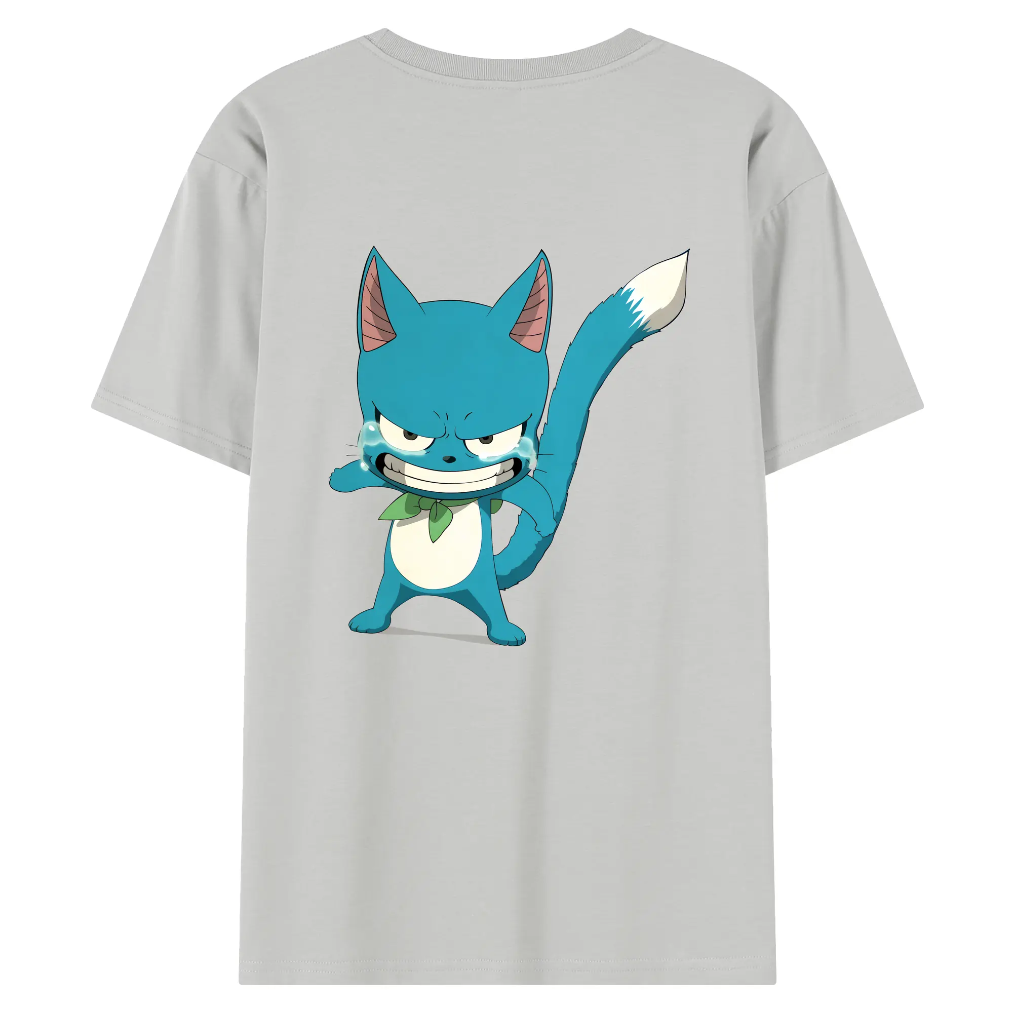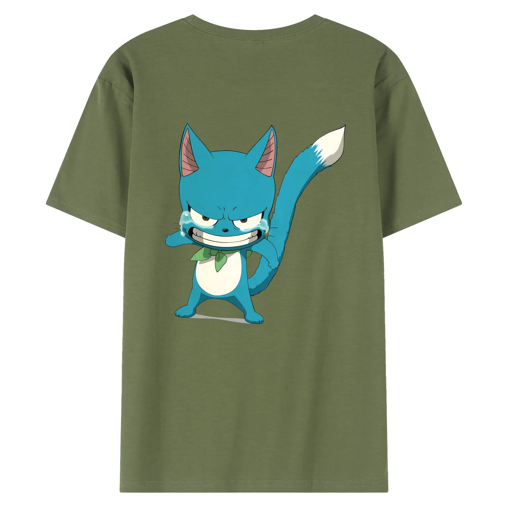 フェアリーテイル グッズ ハッピー - 綿100% 半袖Tシャツ ・ フロントプリント ・ 快適 通気性 ・ 日常使い 散歩 スポーツ用