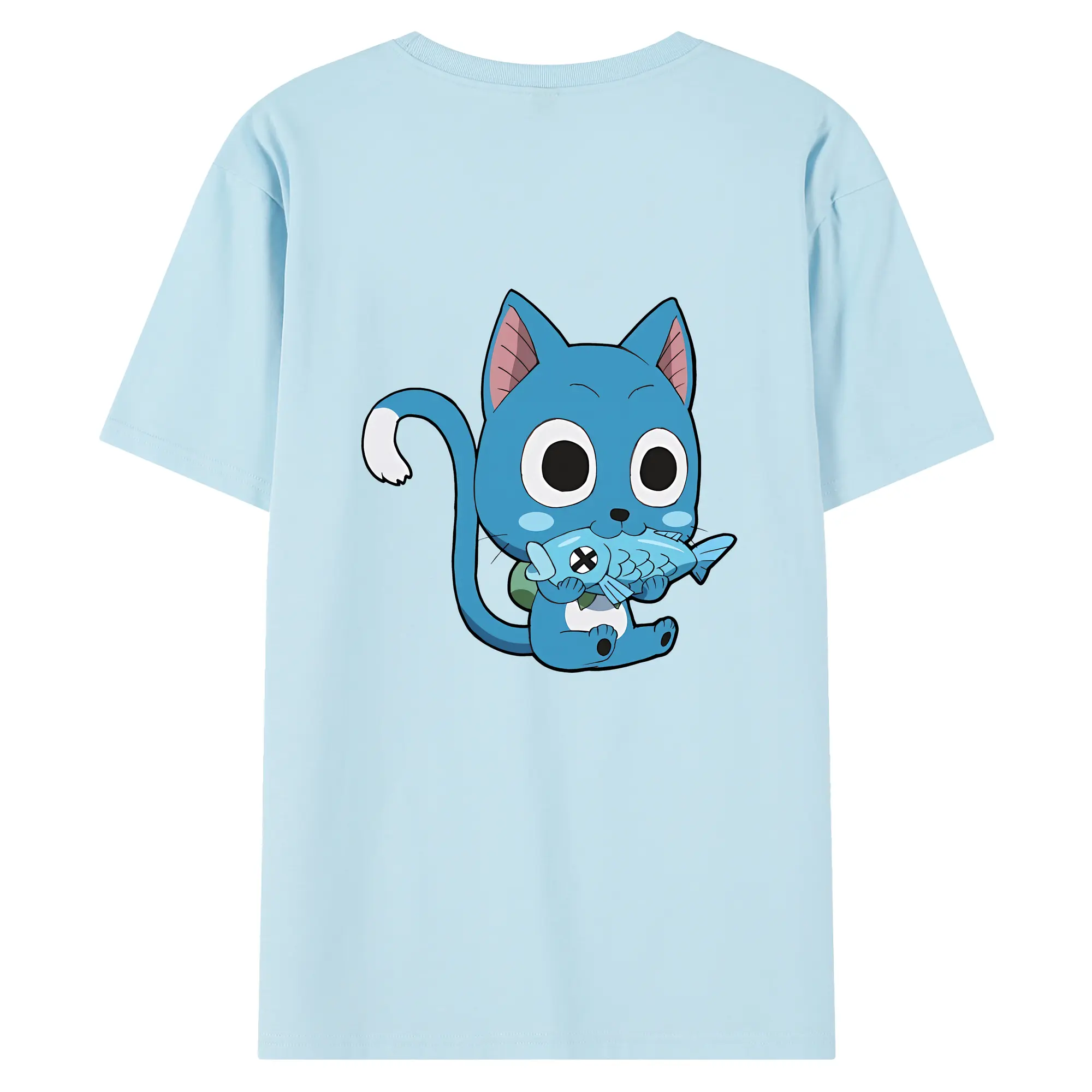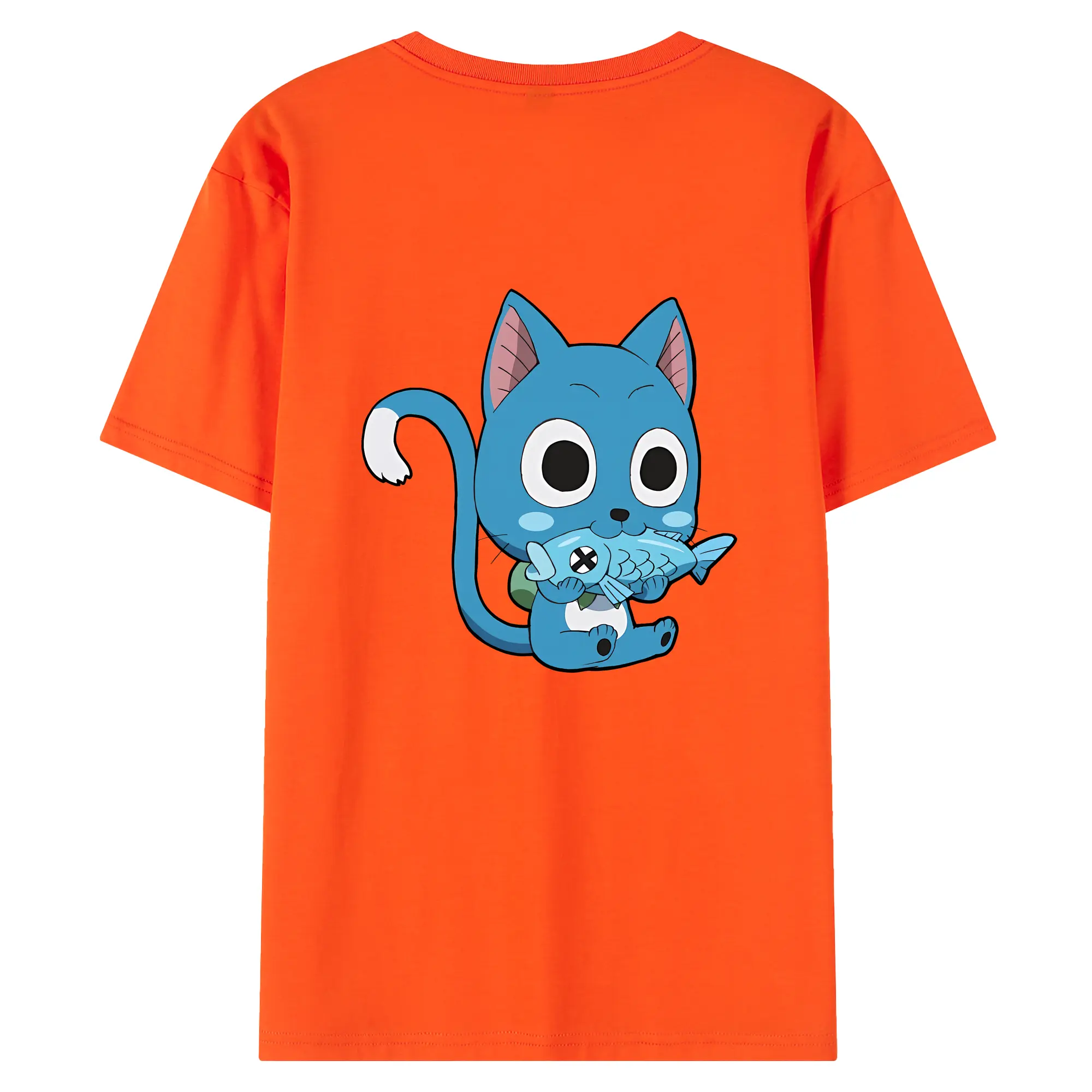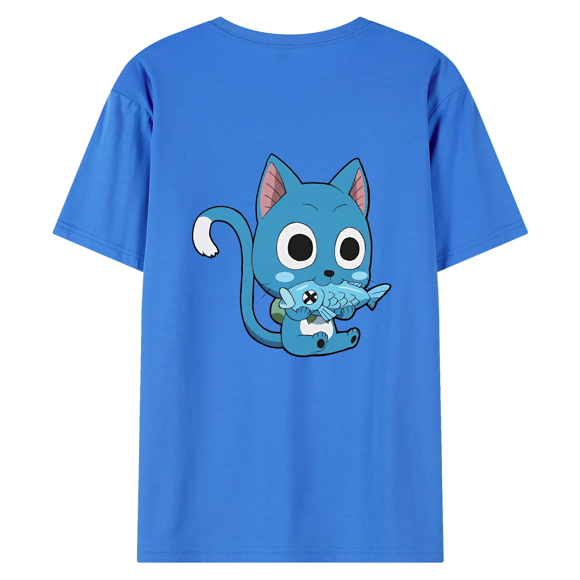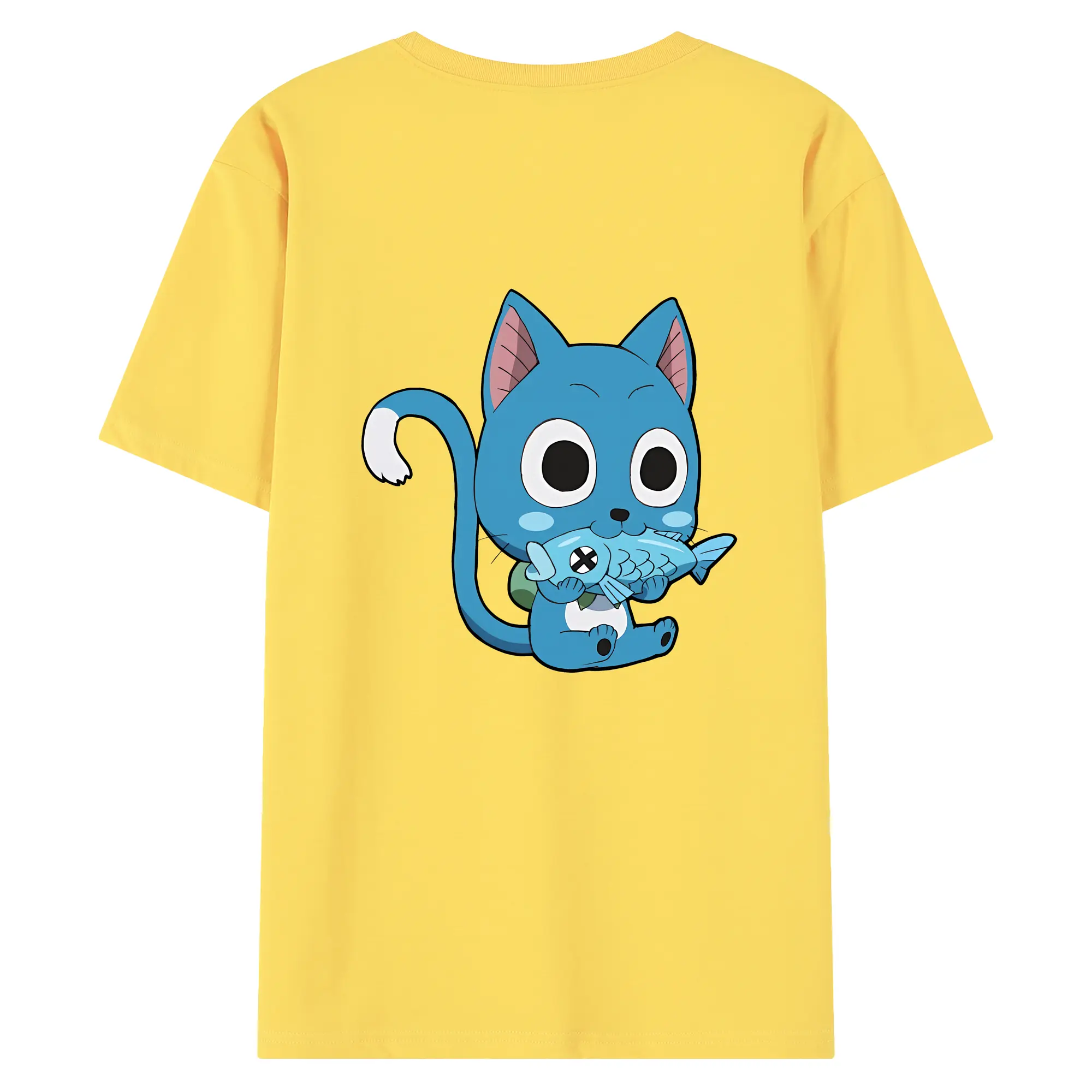 フェアリーテイル グッズ ハッピー - 綿100% 半袖Tシャツ ・ フロントプリント ・ 快適 通気性 ・ 日常使い 散歩 スポーツ用