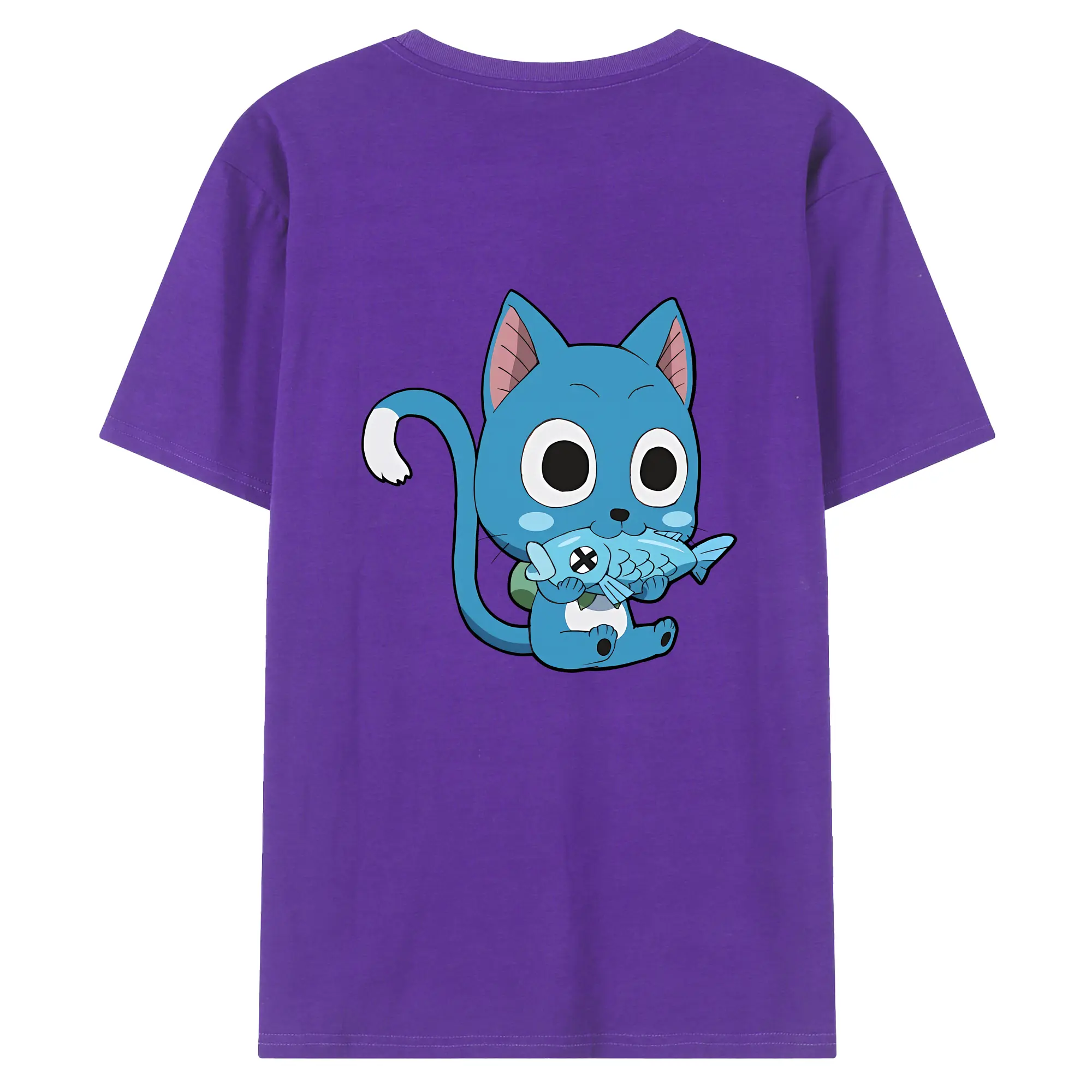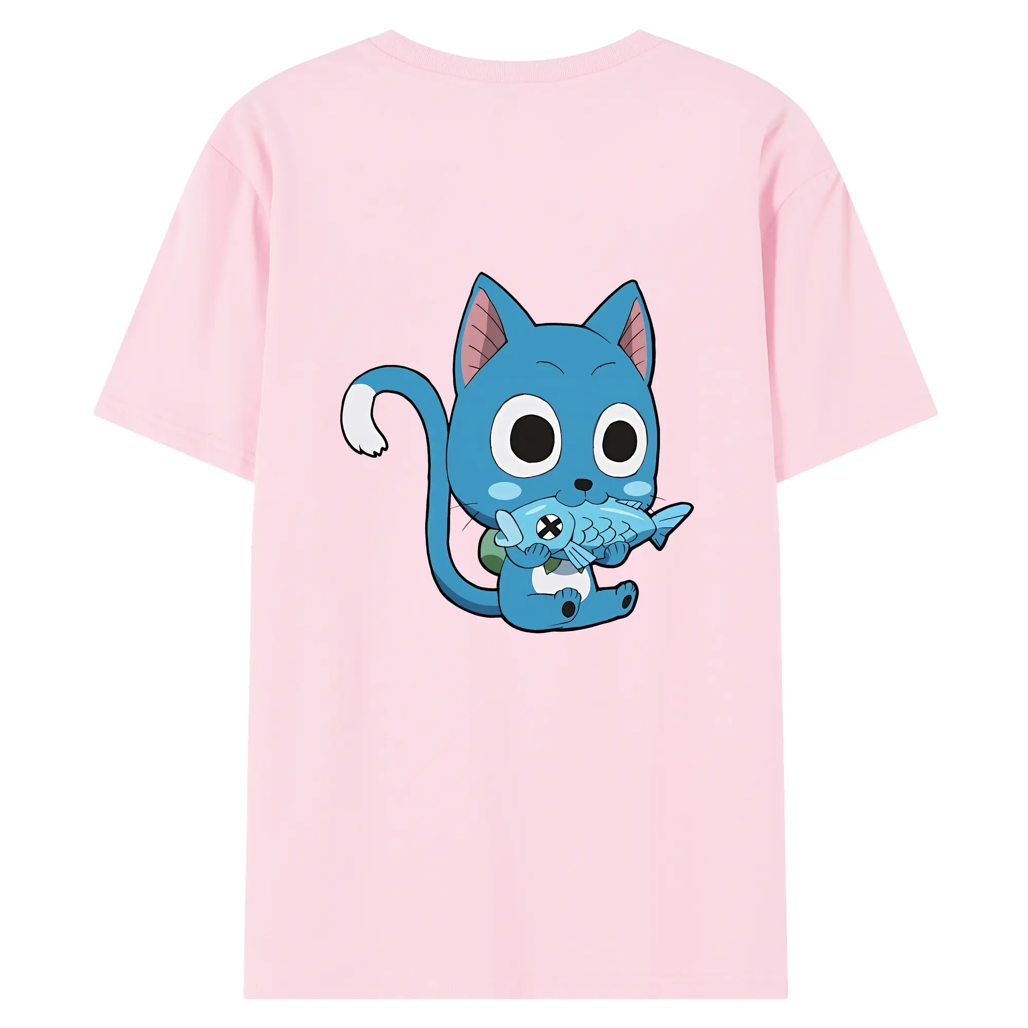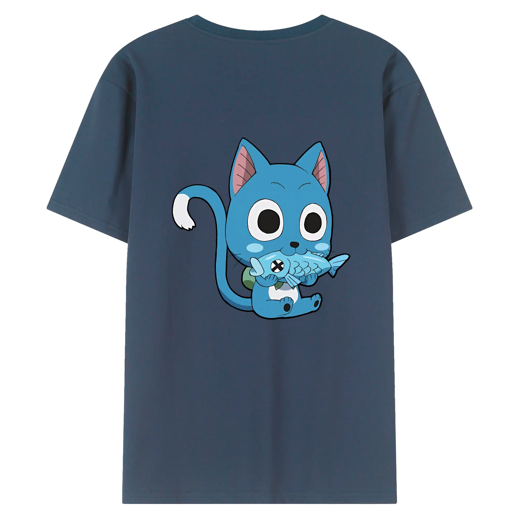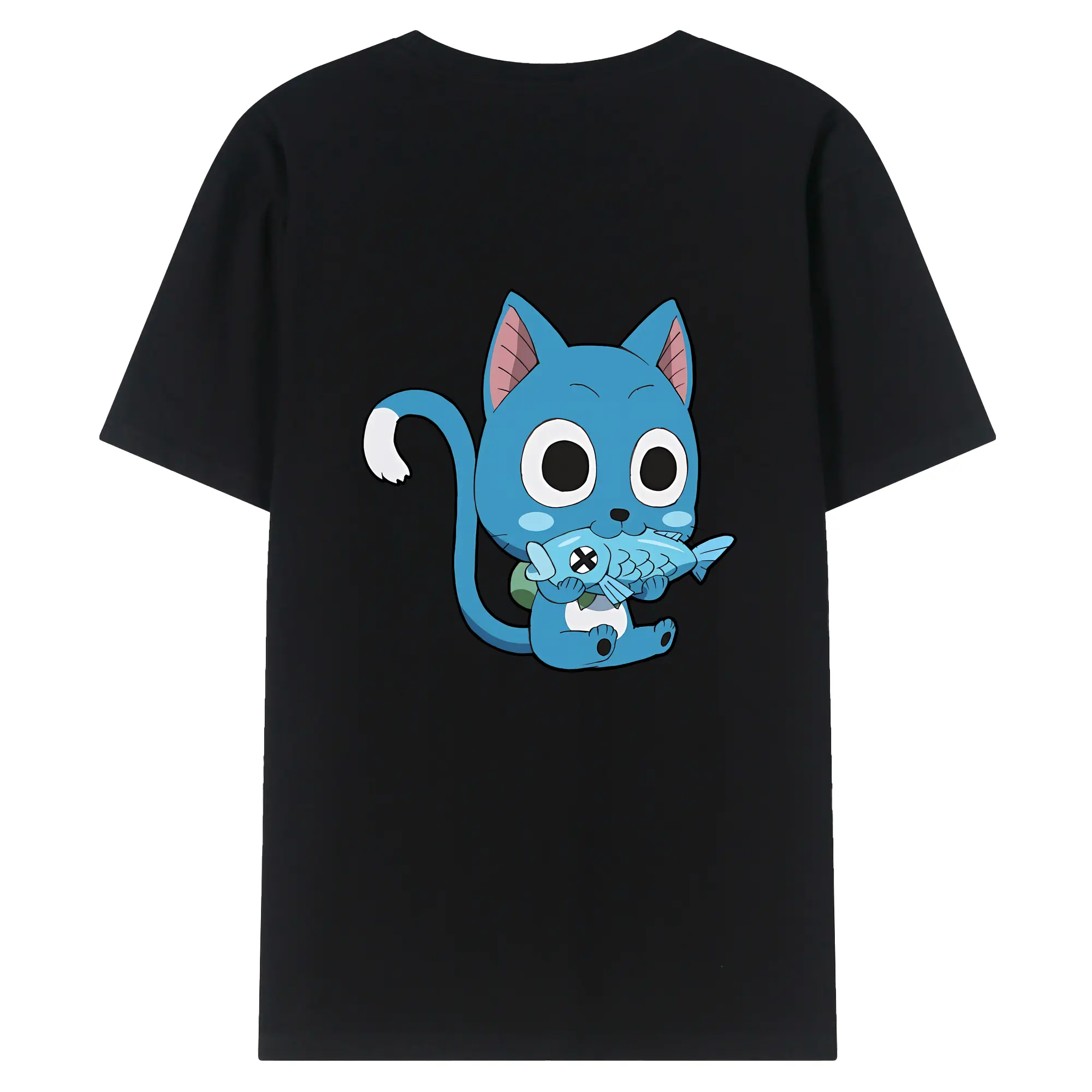 フェアリーテイル グッズ ハッピー - 綿100% 半袖Tシャツ ・ フロントプリント ・ 快適 通気性 ・ 日常使い 散歩 スポーツ用