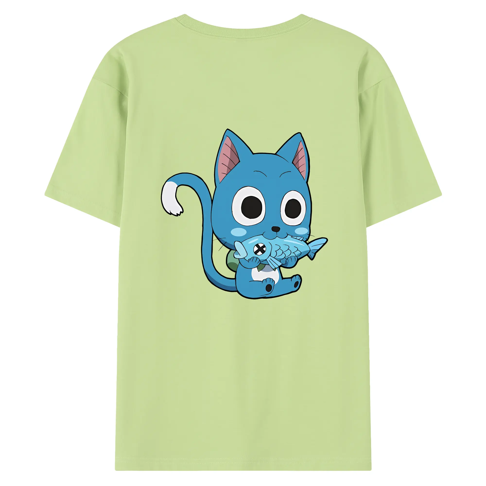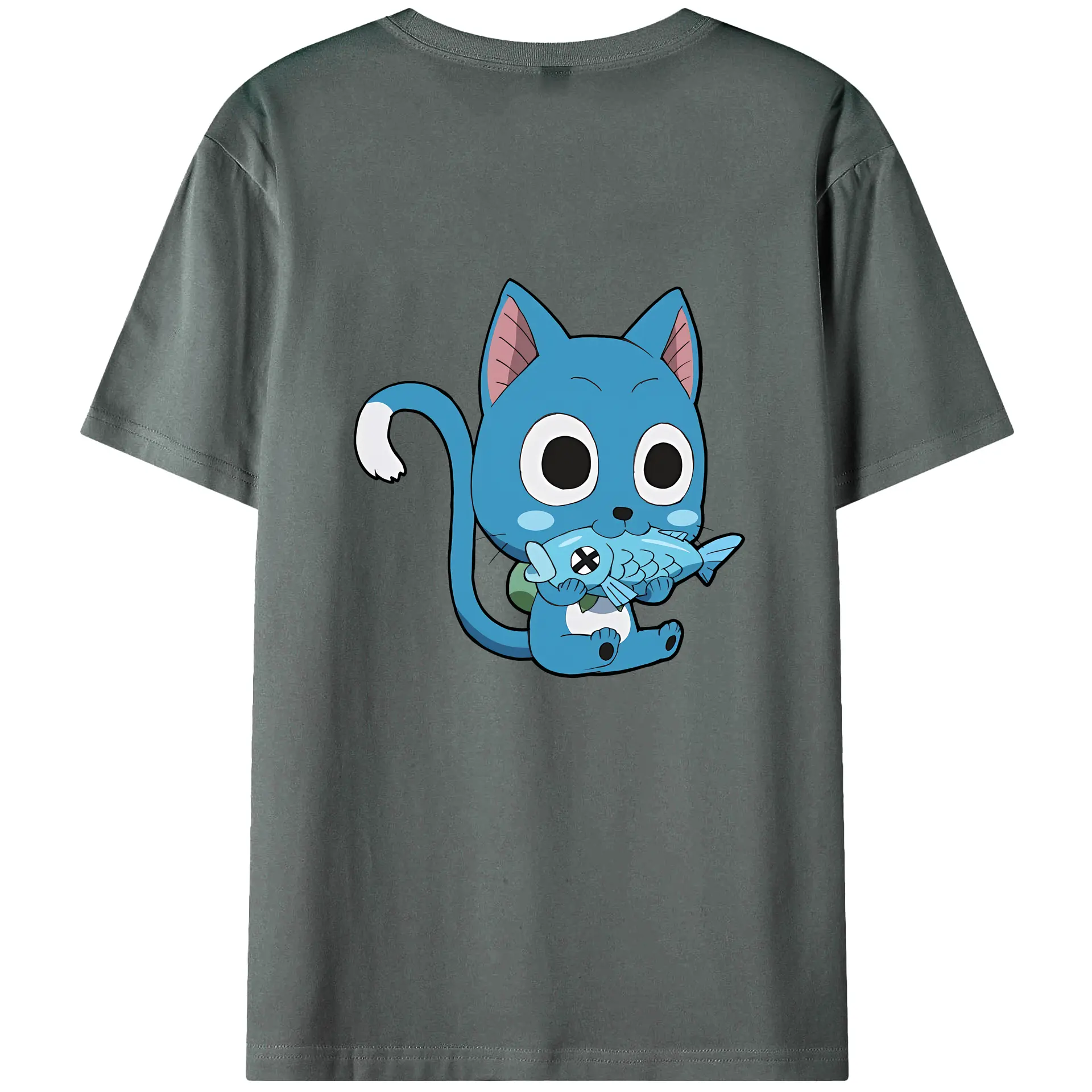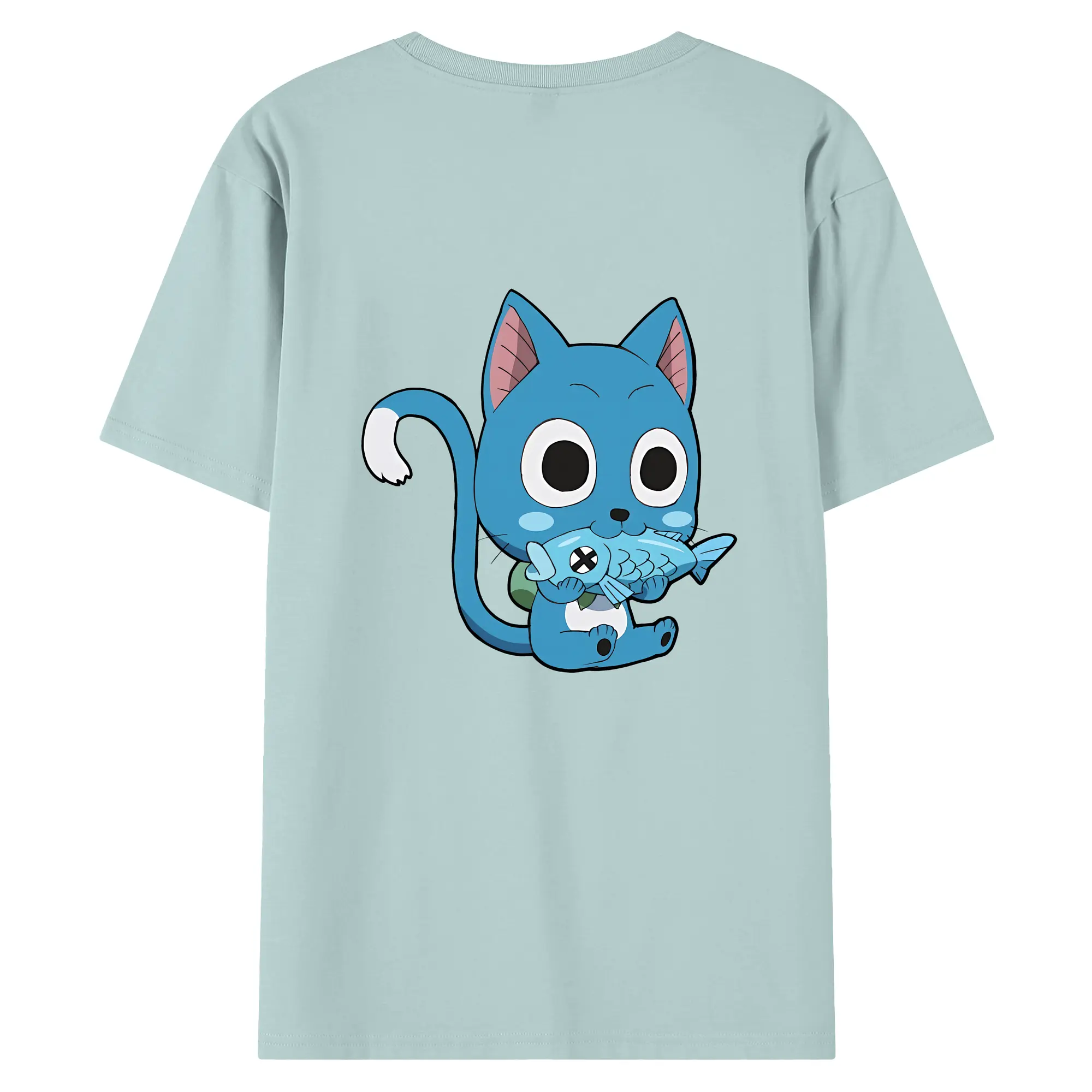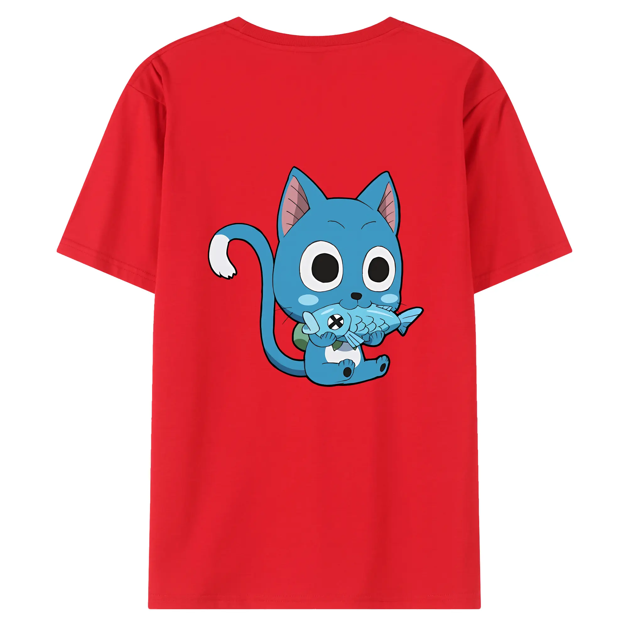 フェアリーテイル グッズ ハッピー - 綿100% 半袖Tシャツ ・ フロントプリント ・ 快適 通気性 ・ 日常使い 散歩 スポーツ用