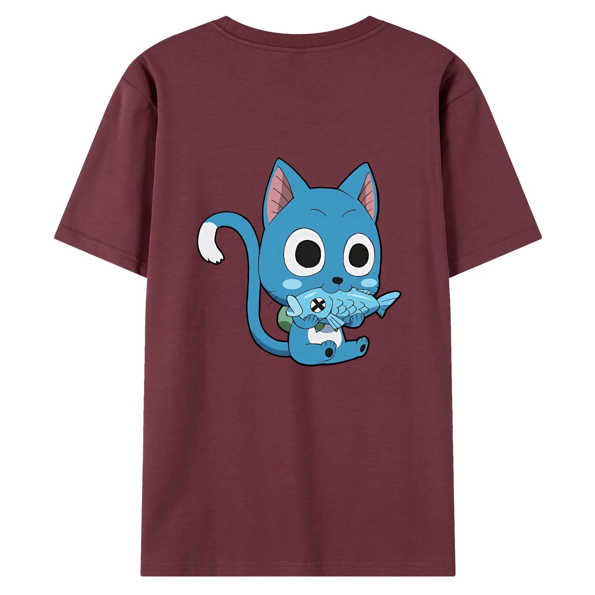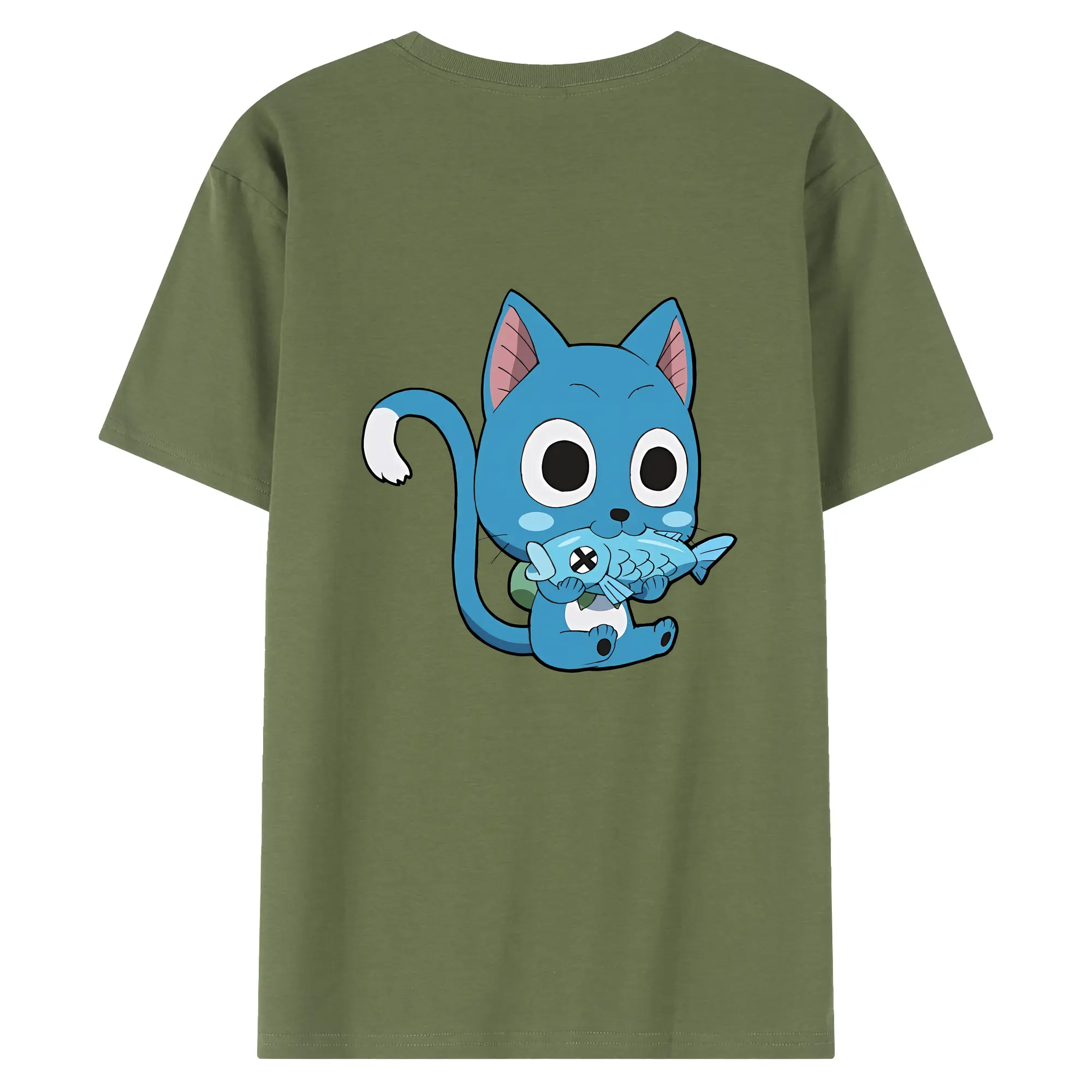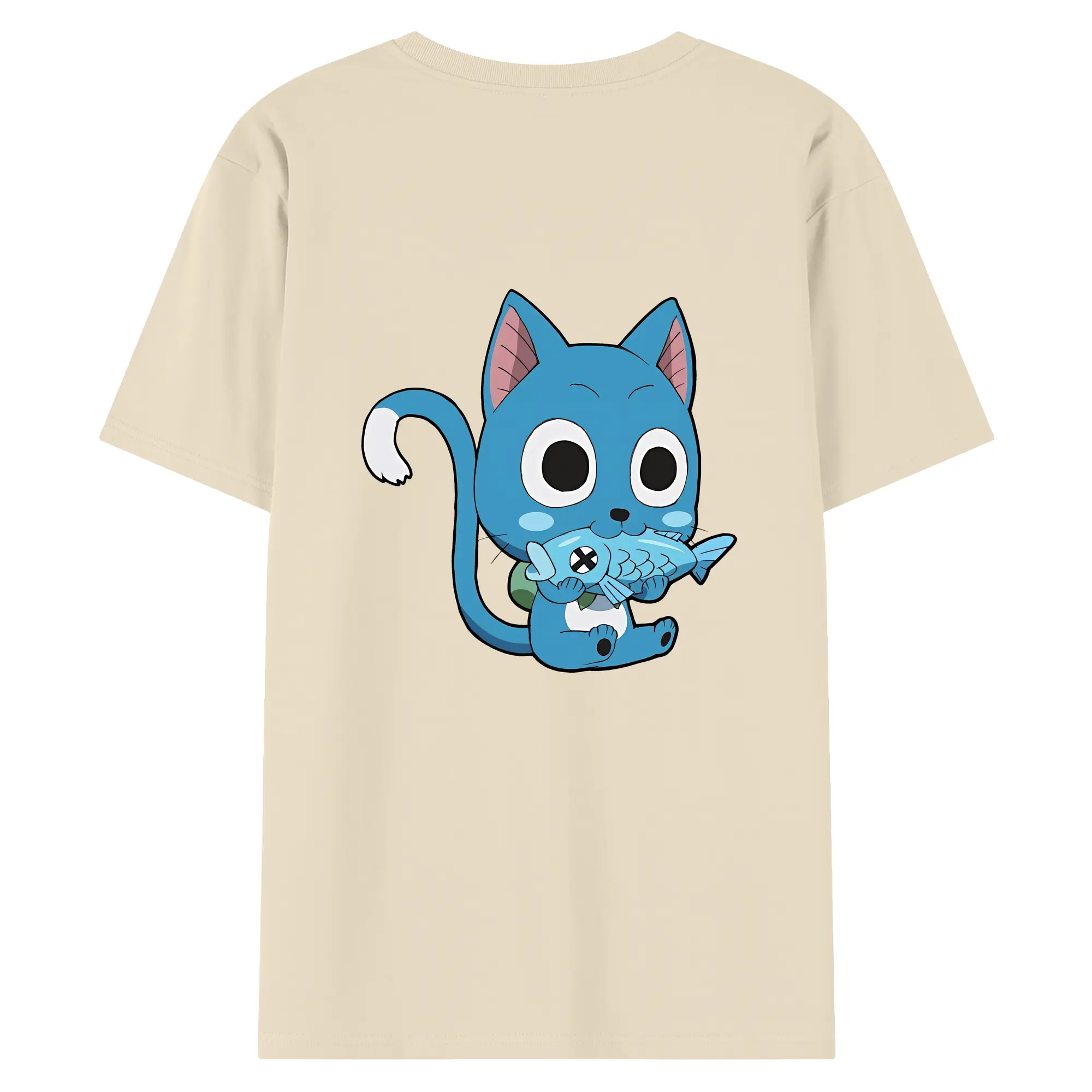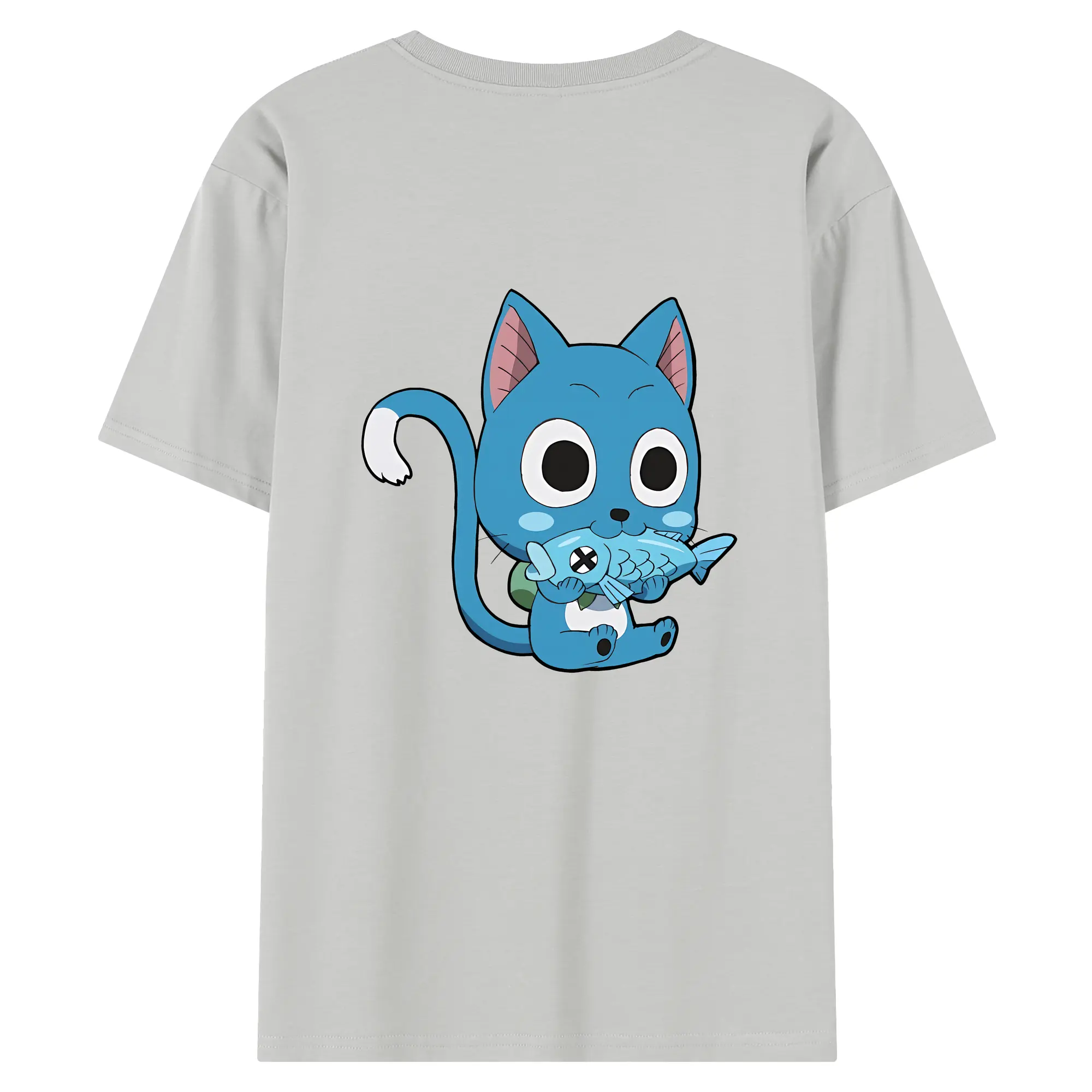 フェアリーテイル グッズ ハッピー - 綿100% 半袖Tシャツ ・ フロントプリント ・ 快適 通気性 ・ 日常使い 散歩 スポーツ用