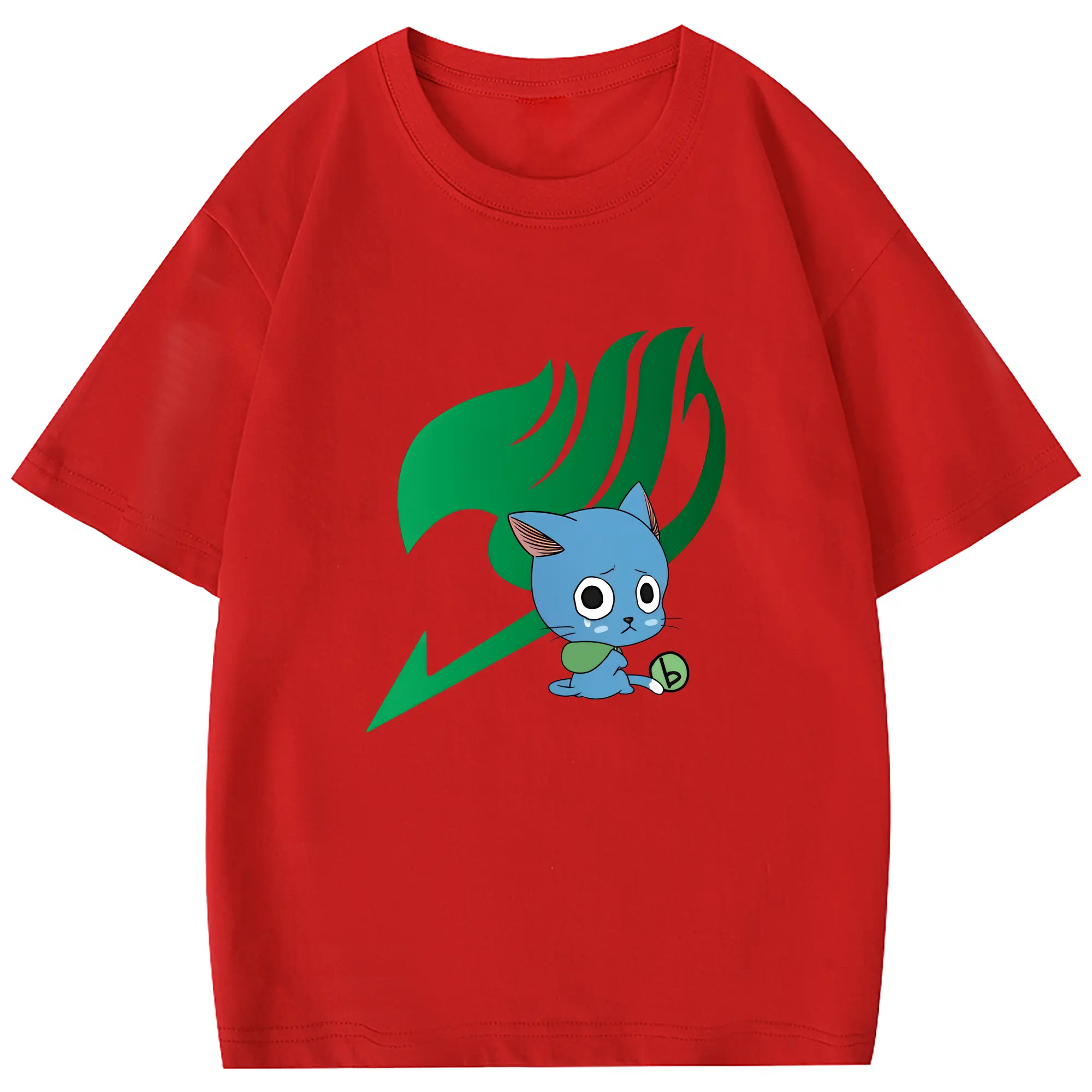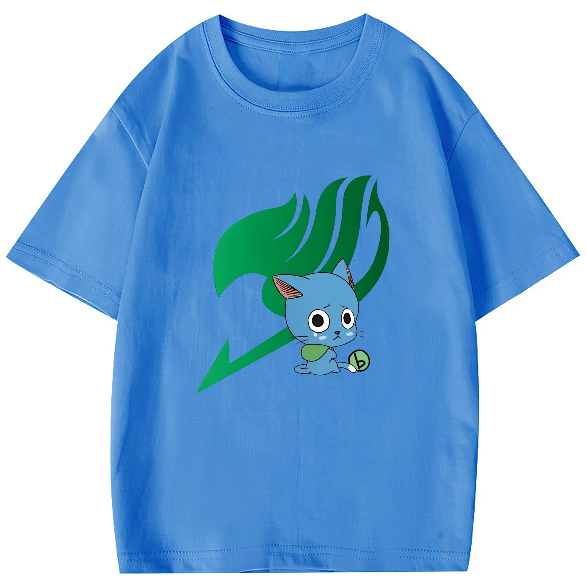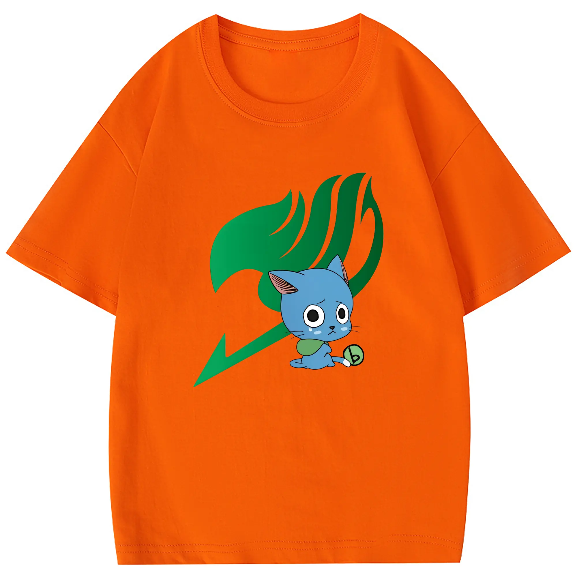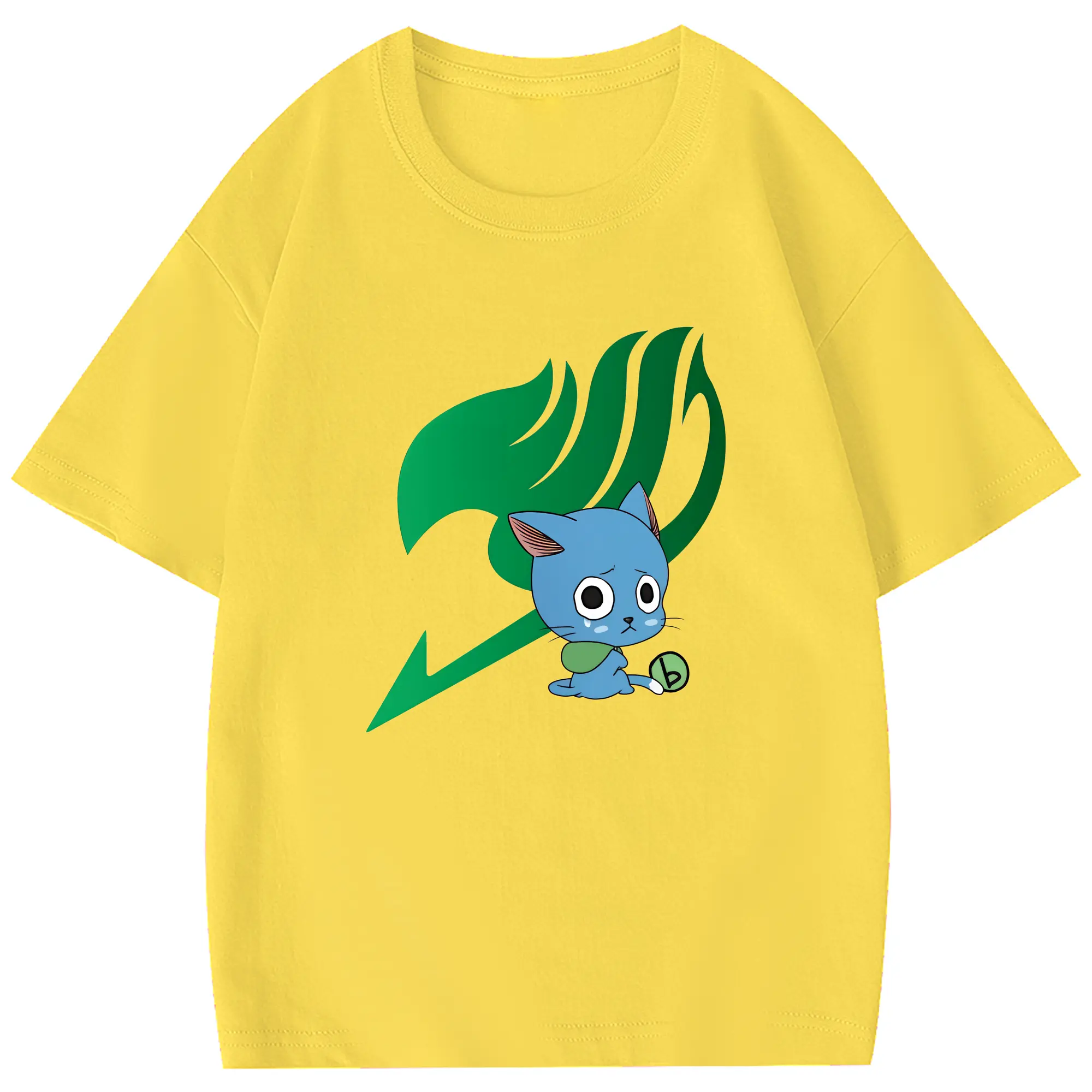 フェアリーテイル グッズ ハッピー - 綿100% 半袖Tシャツ ・ フロントプリント ・ 快適 通気性 ・ 日常使い 散歩 スポーツ用
