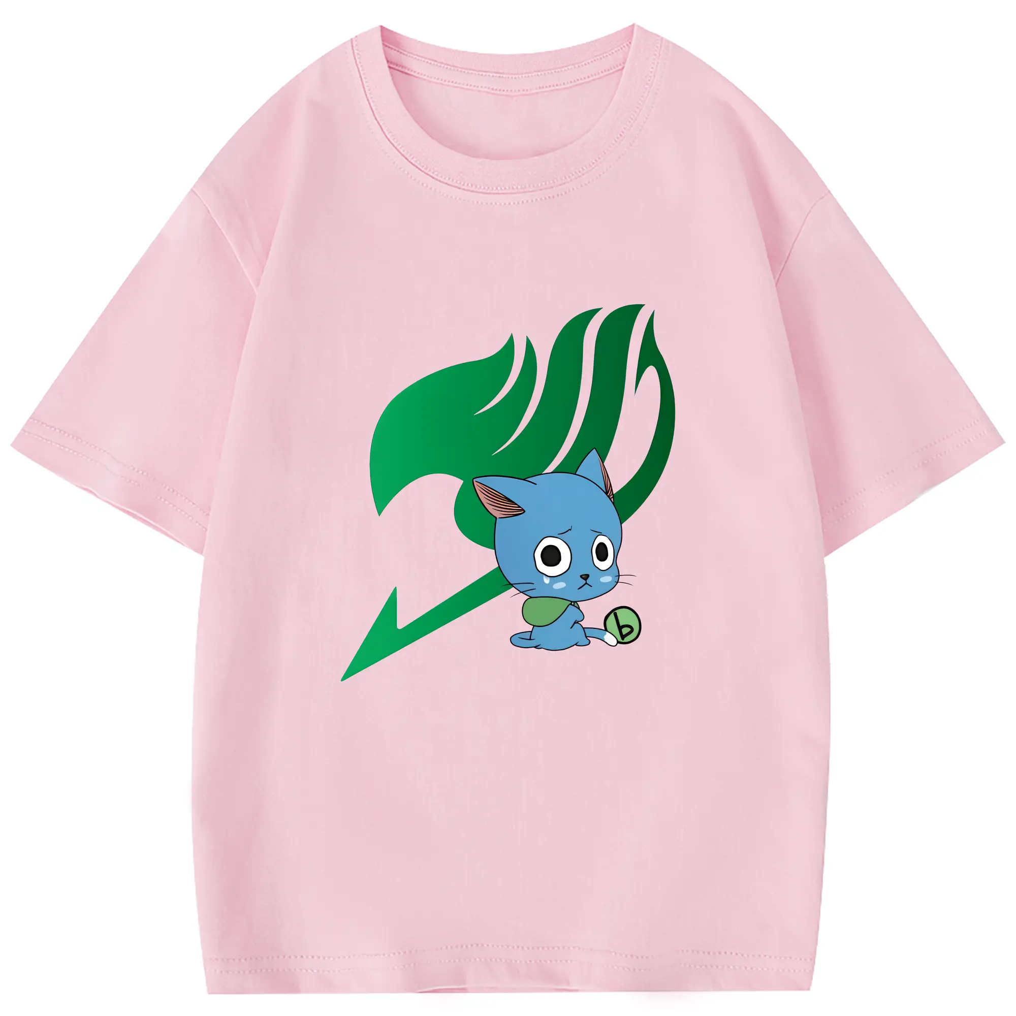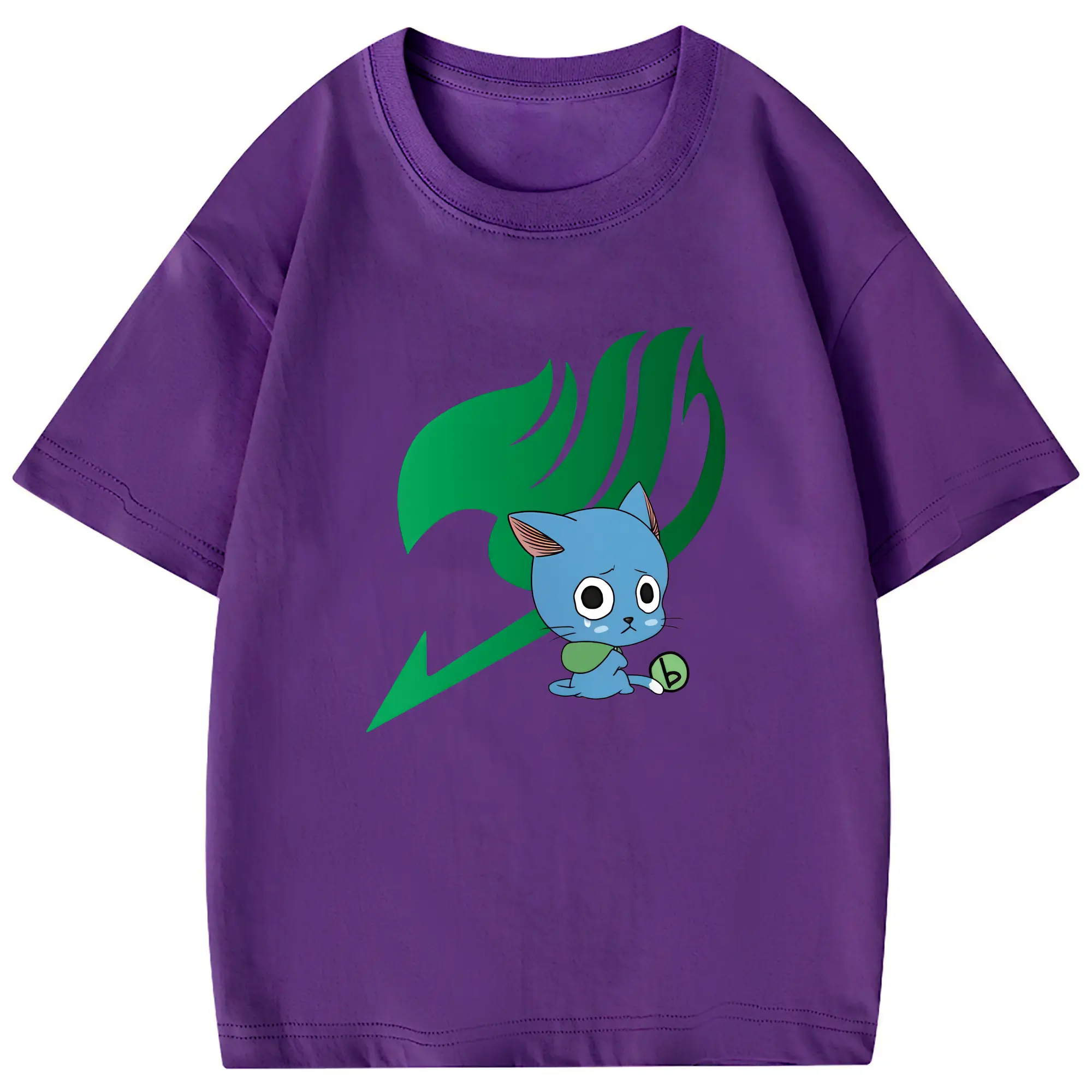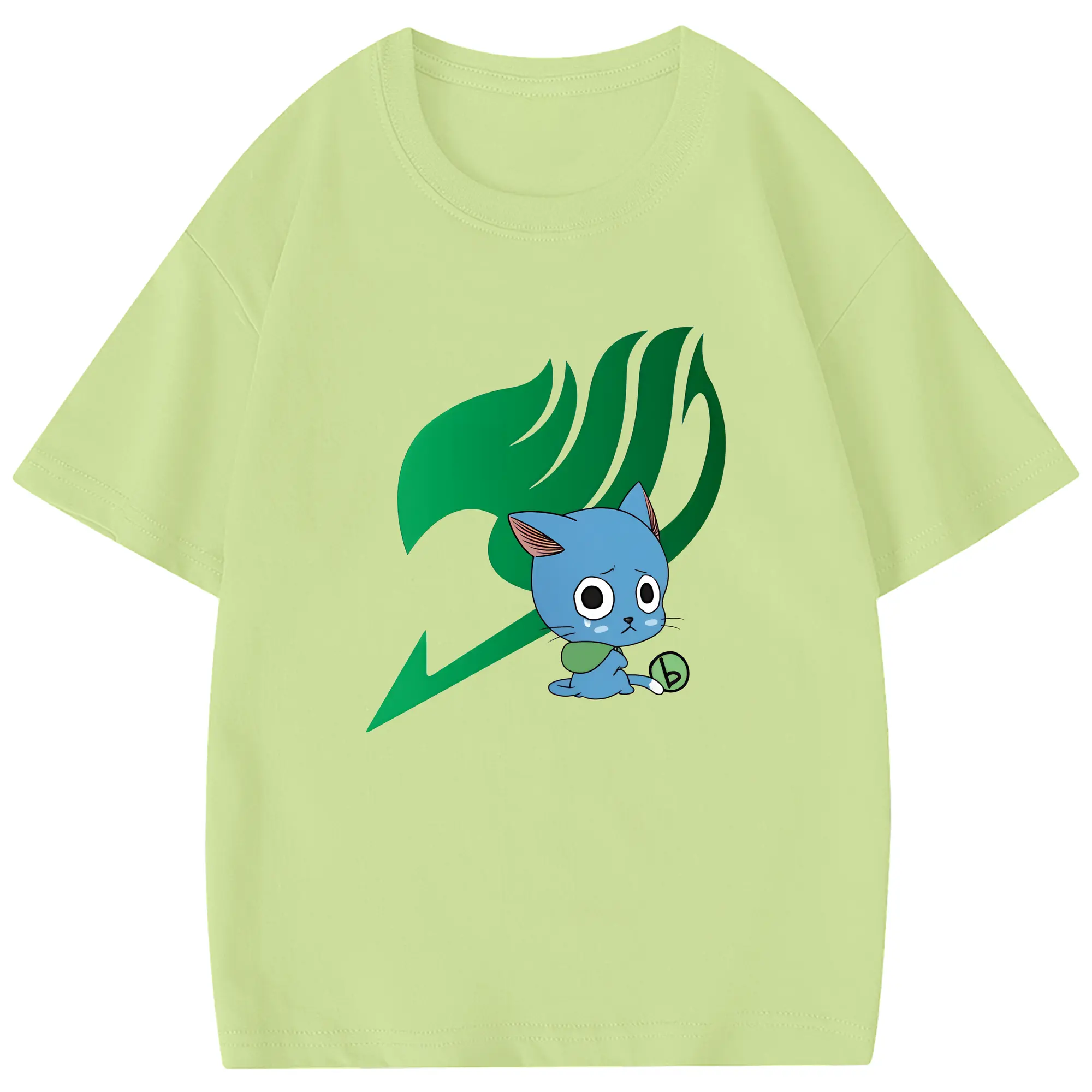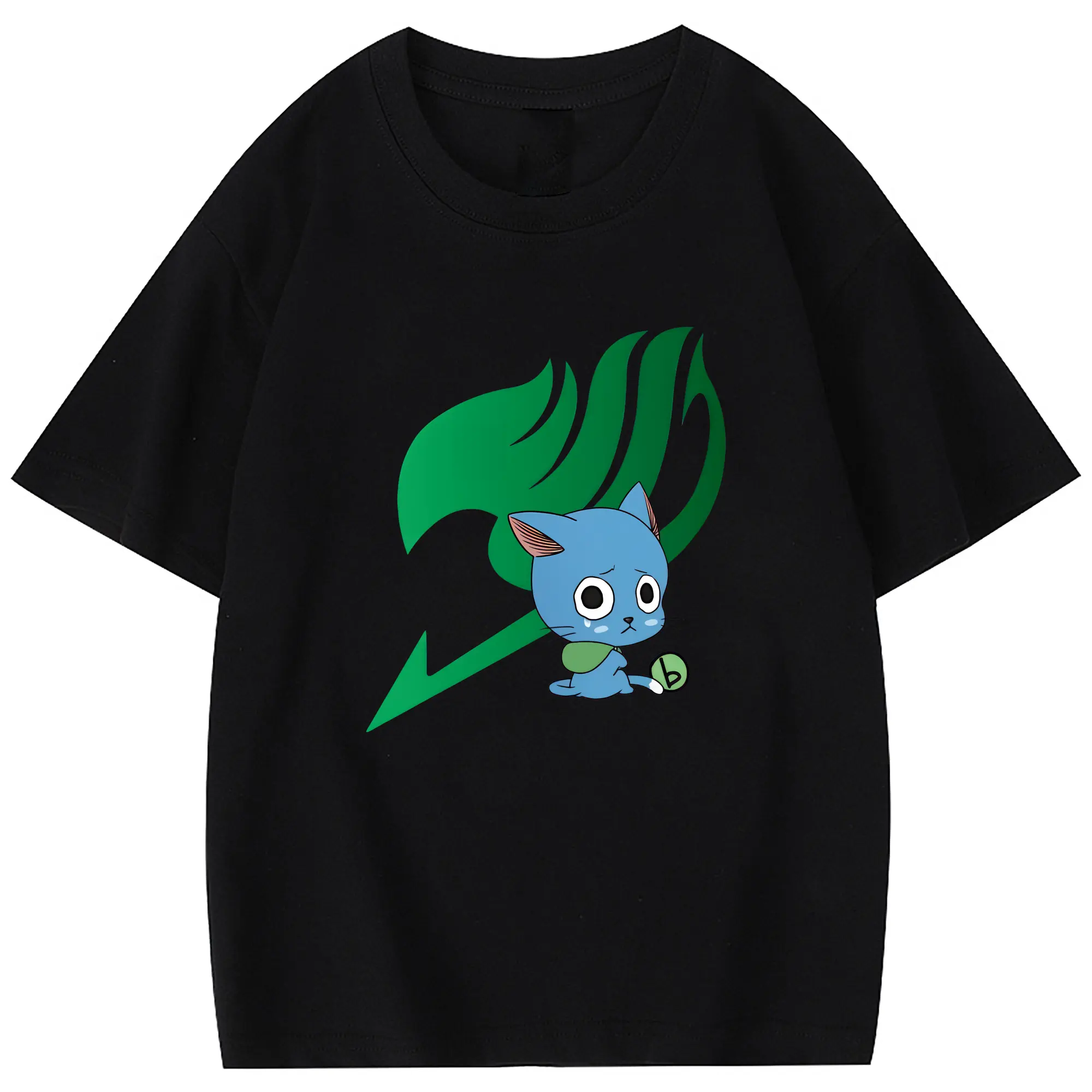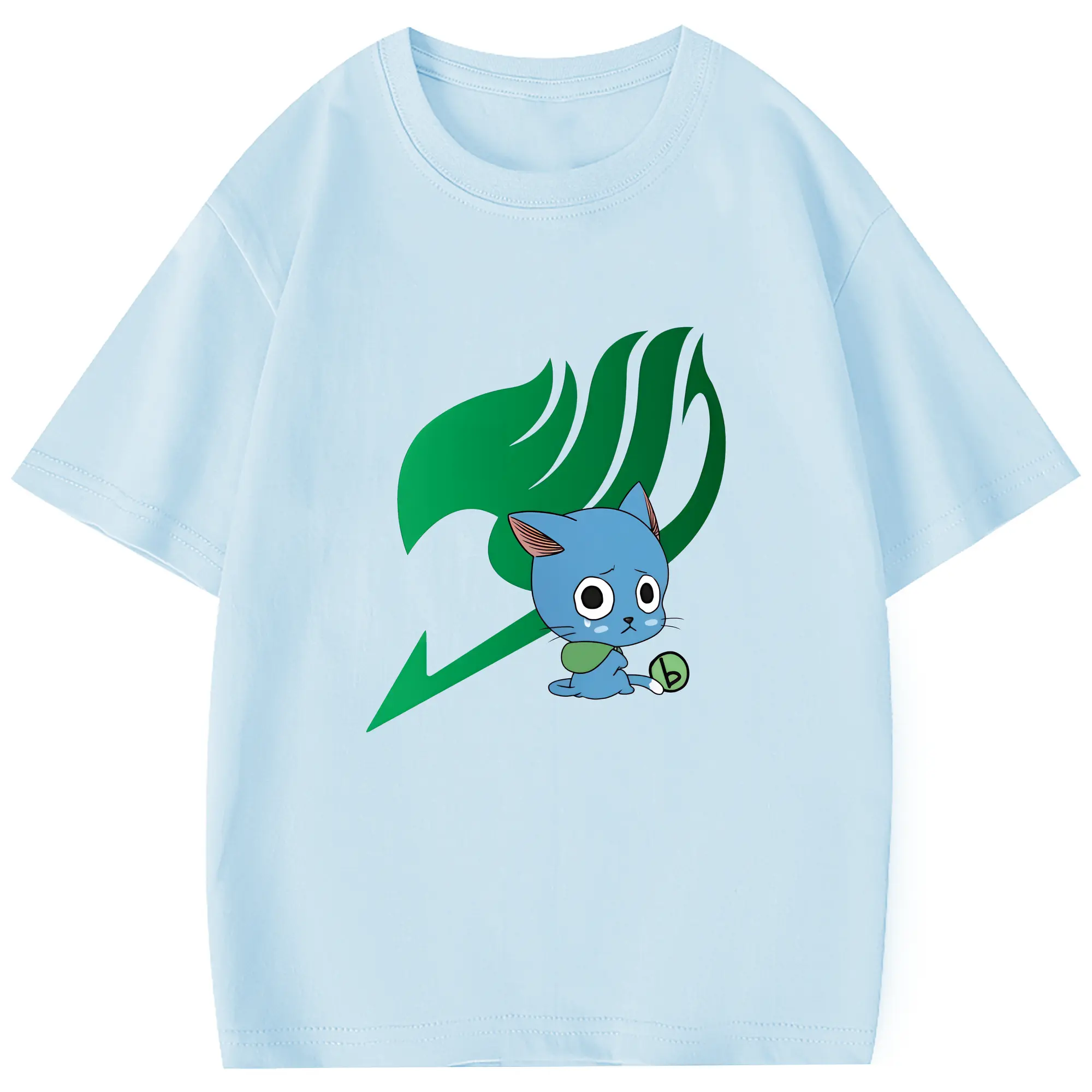 フェアリーテイル グッズ ハッピー - 綿100% 半袖Tシャツ ・ フロントプリント ・ 快適 通気性 ・ 日常使い 散歩 スポーツ用