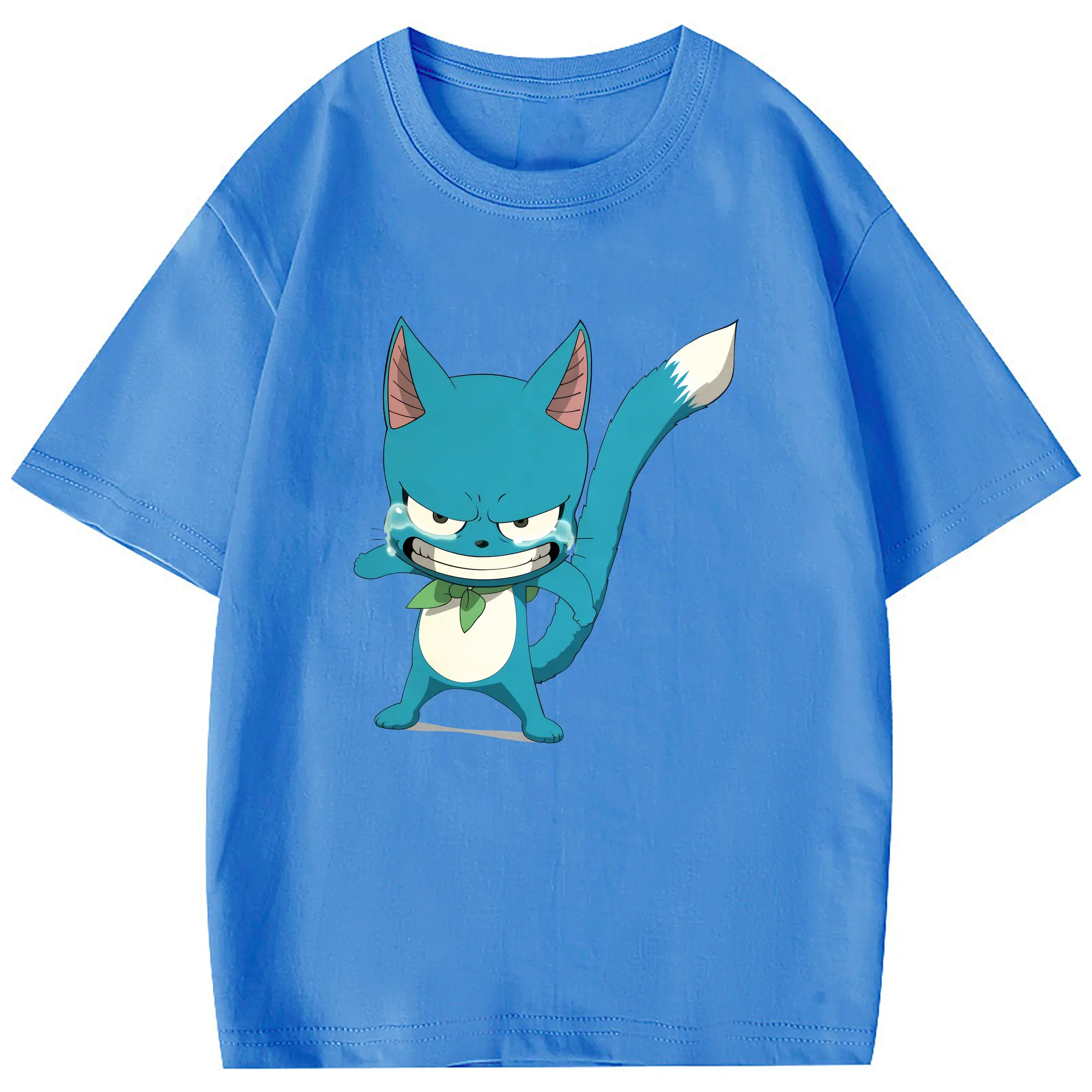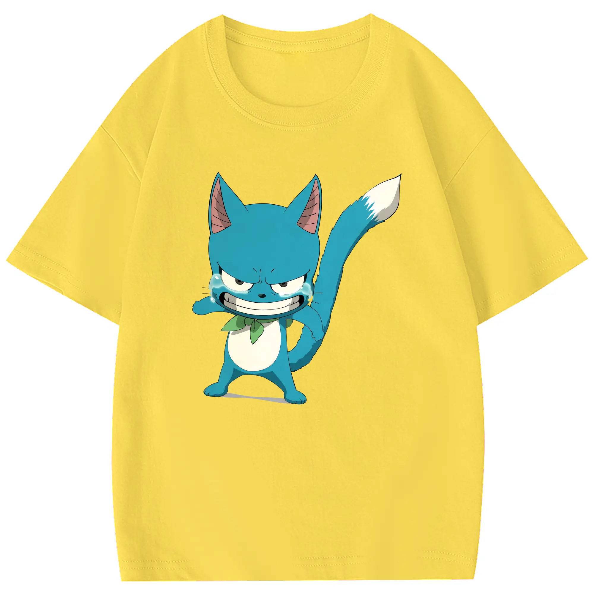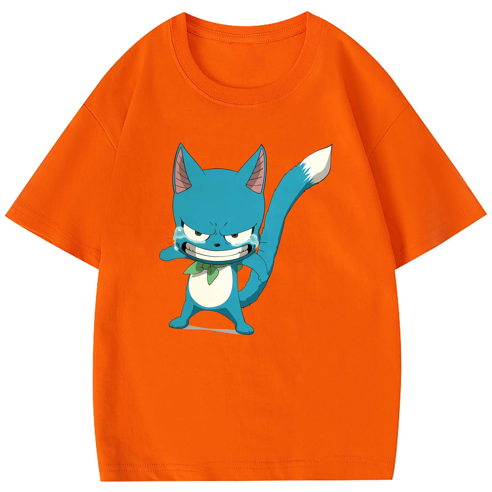 フェアリーテイル グッズ ハッピー - 綿100% 半袖Tシャツ ・ フロントプリント ・ 快適 通気性 ・ 日常使い 散歩 スポーツ用