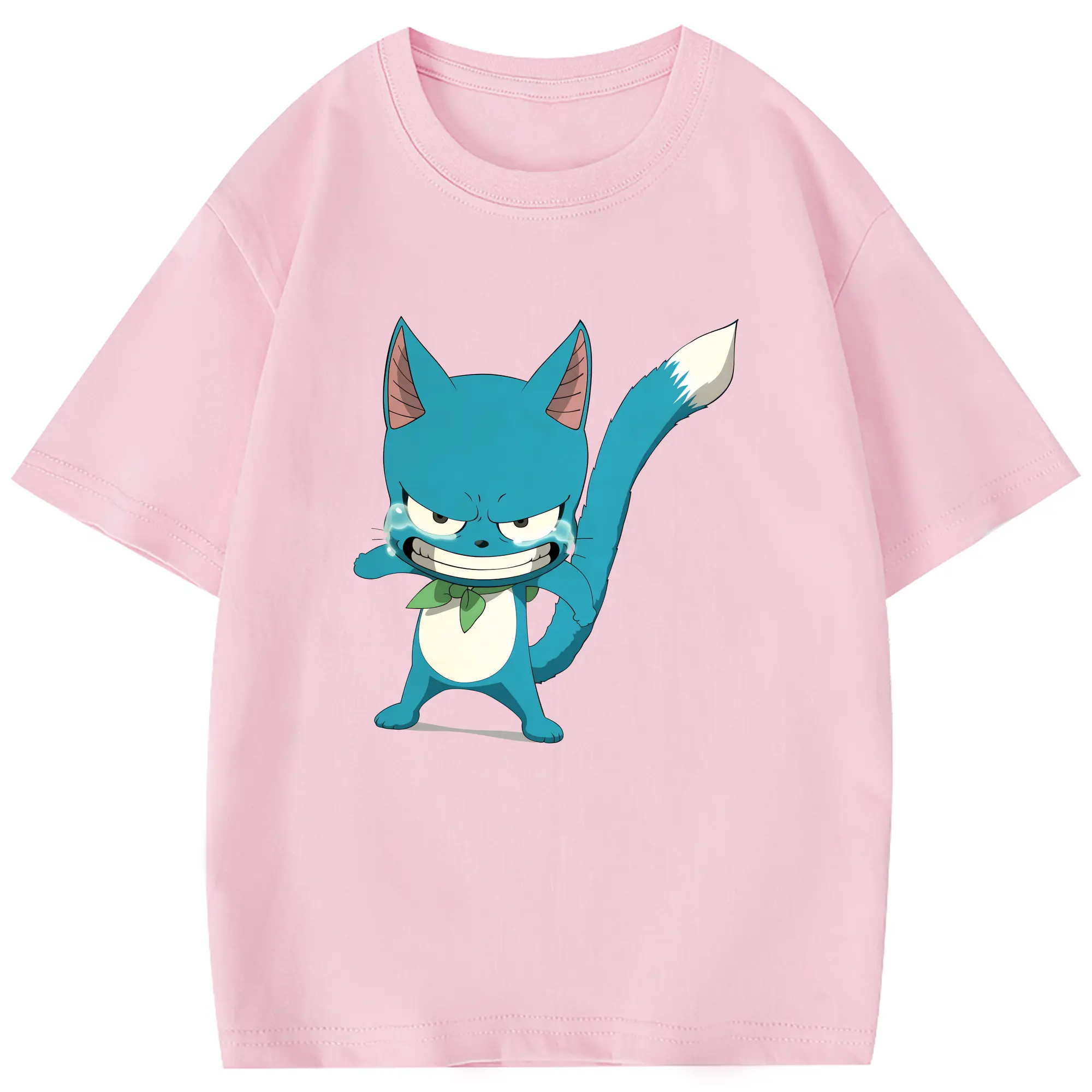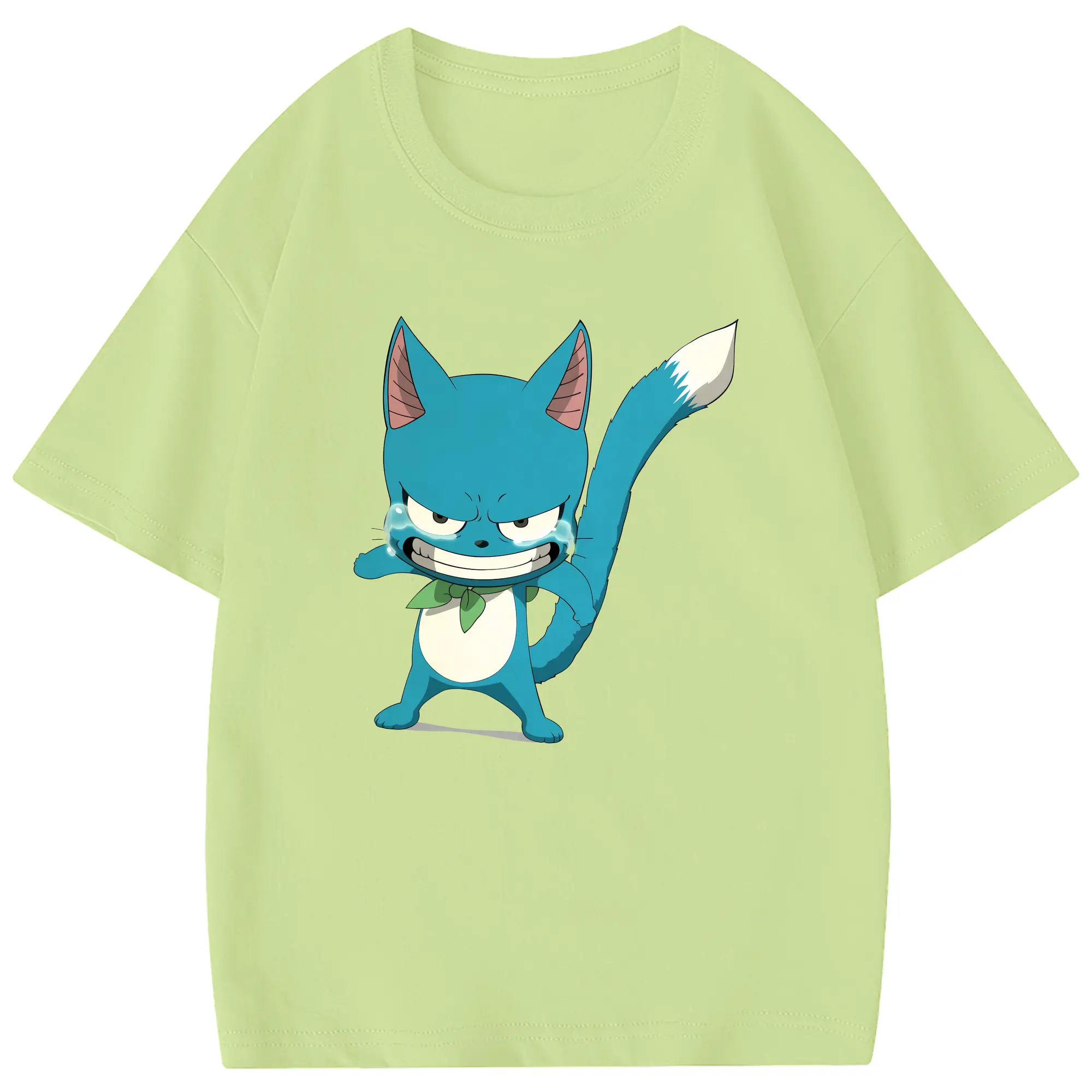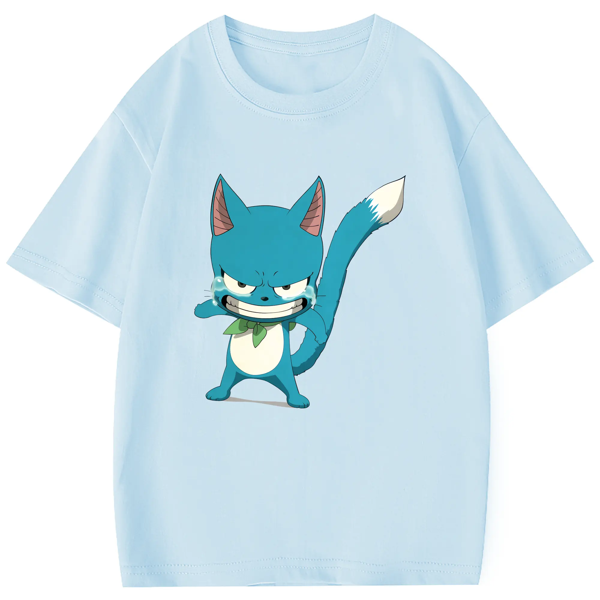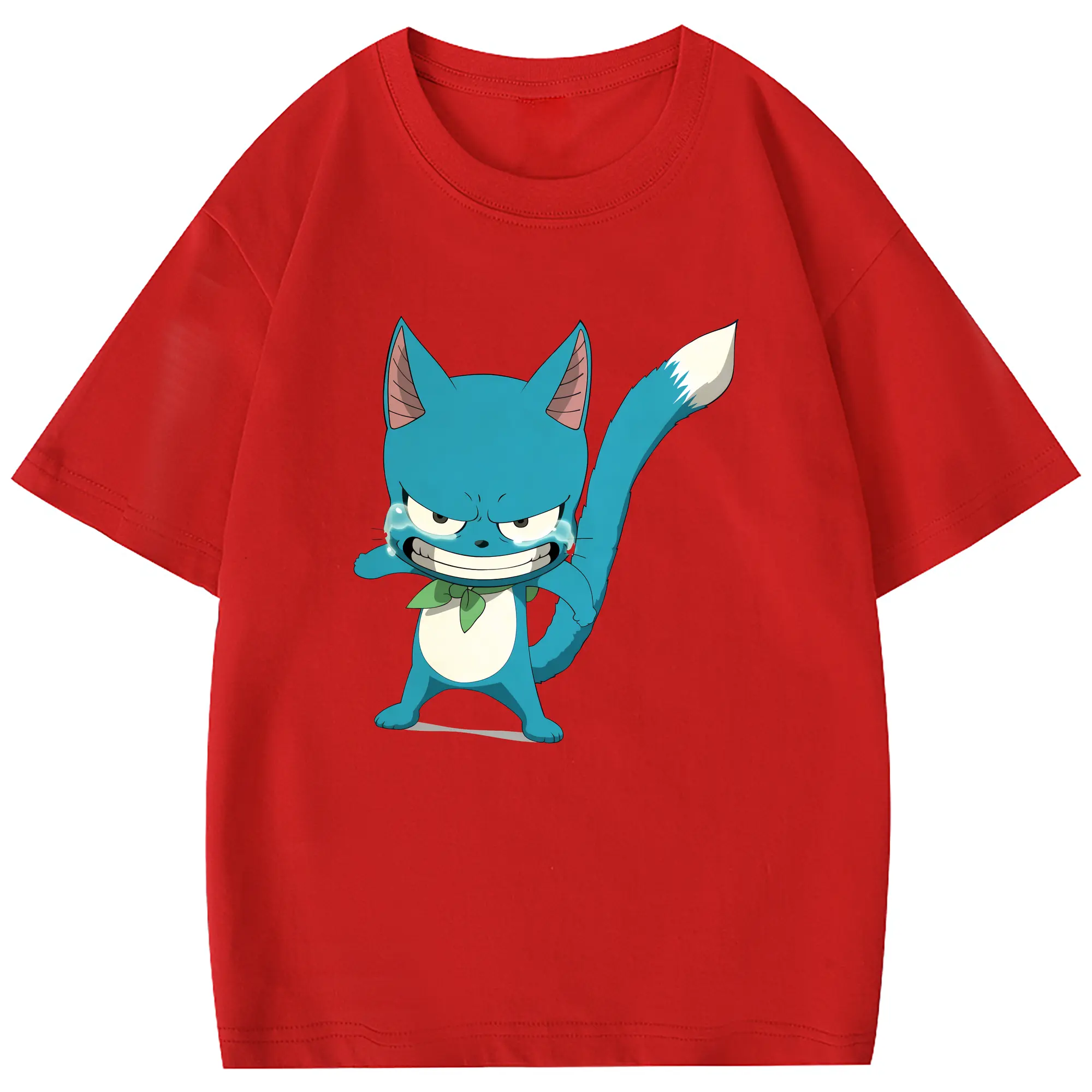 フェアリーテイル グッズ ハッピー - 綿100% 半袖Tシャツ ・ フロントプリント ・ 快適 通気性 ・ 日常使い 散歩 スポーツ用