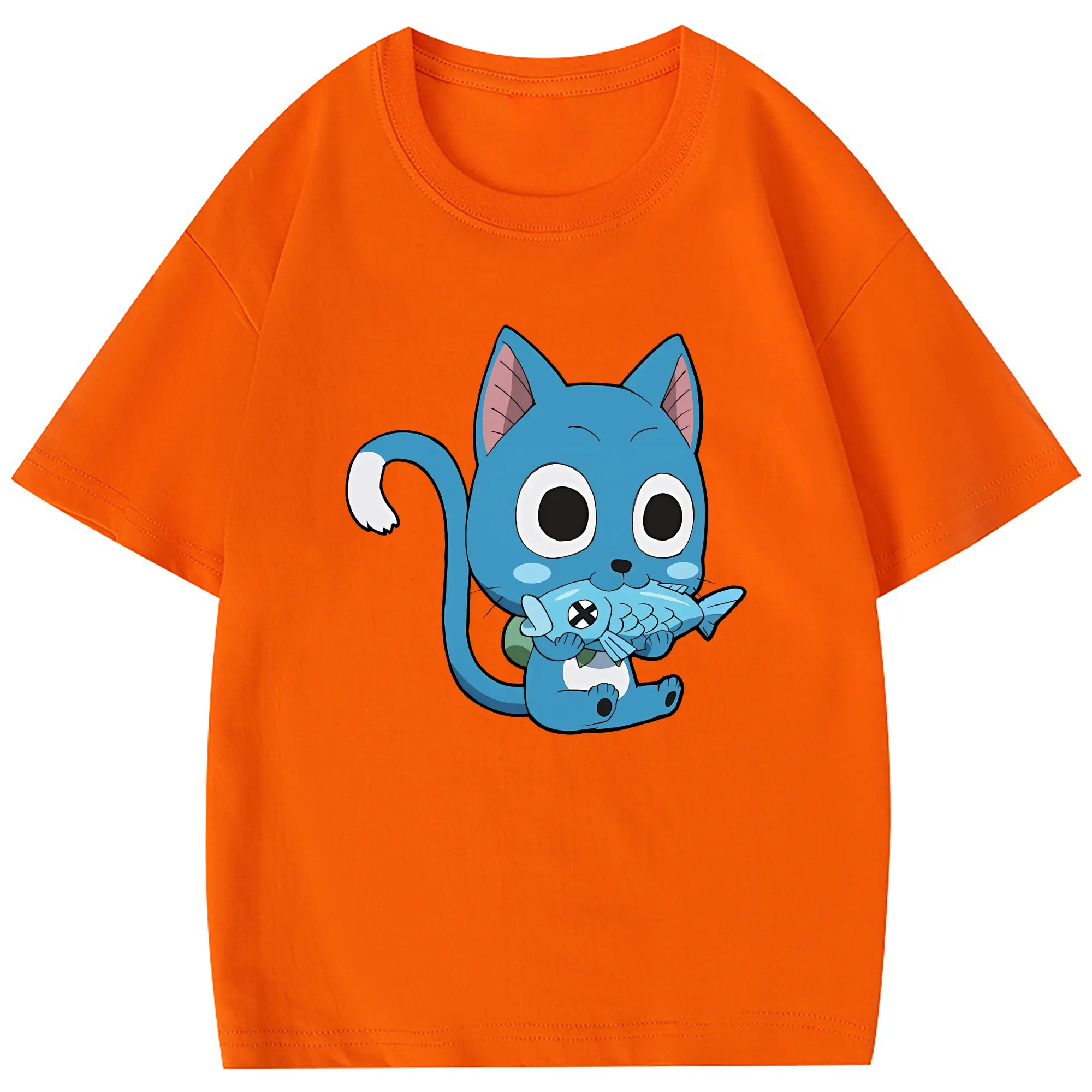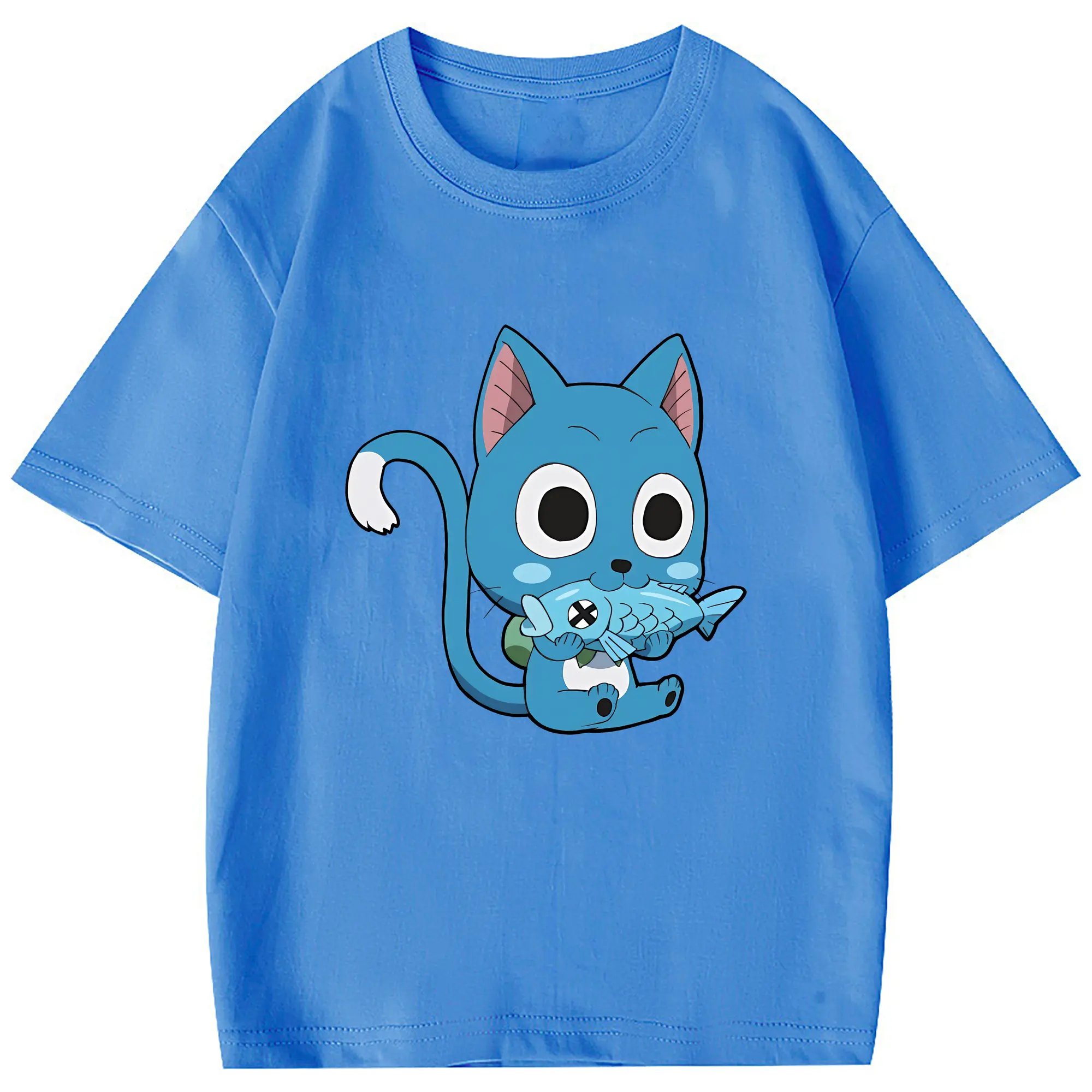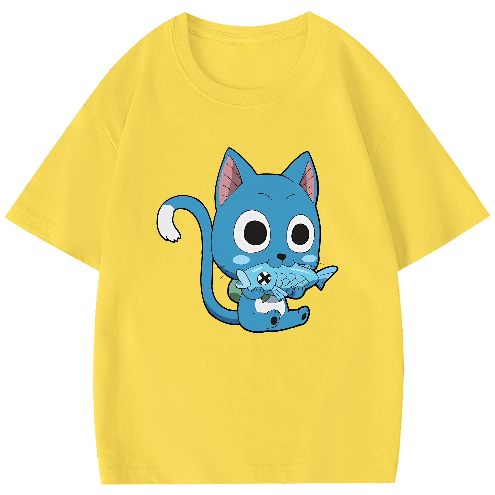 フェアリーテイル グッズ ハッピー - 綿100% 半袖Tシャツ ・ フロントプリント ・ 快適 通気性 ・ 日常使い 散歩 スポーツ用