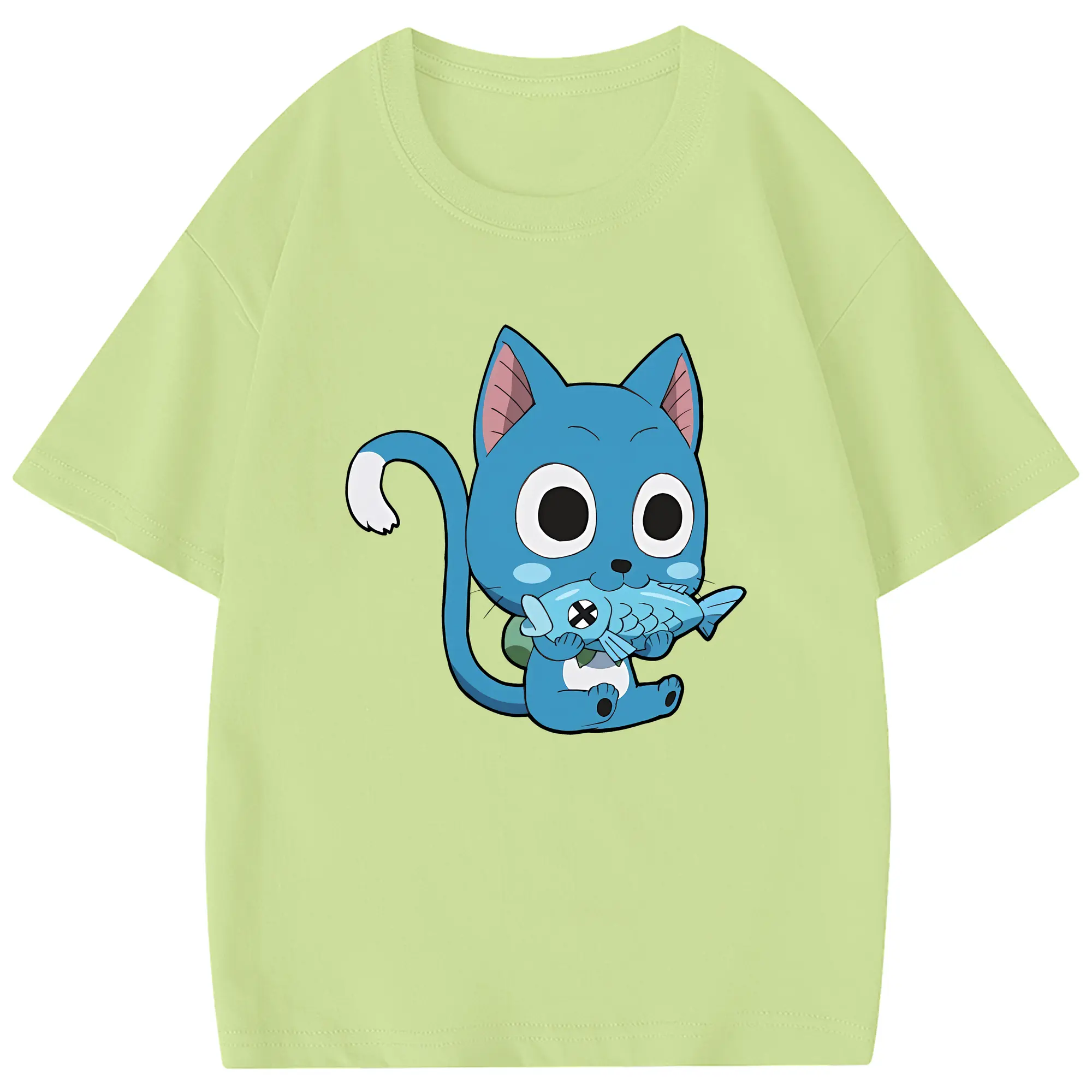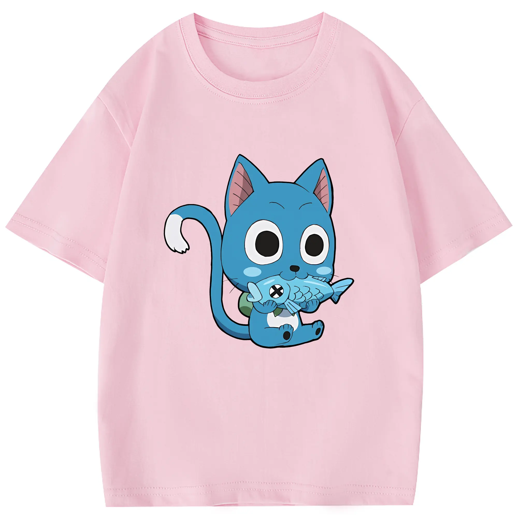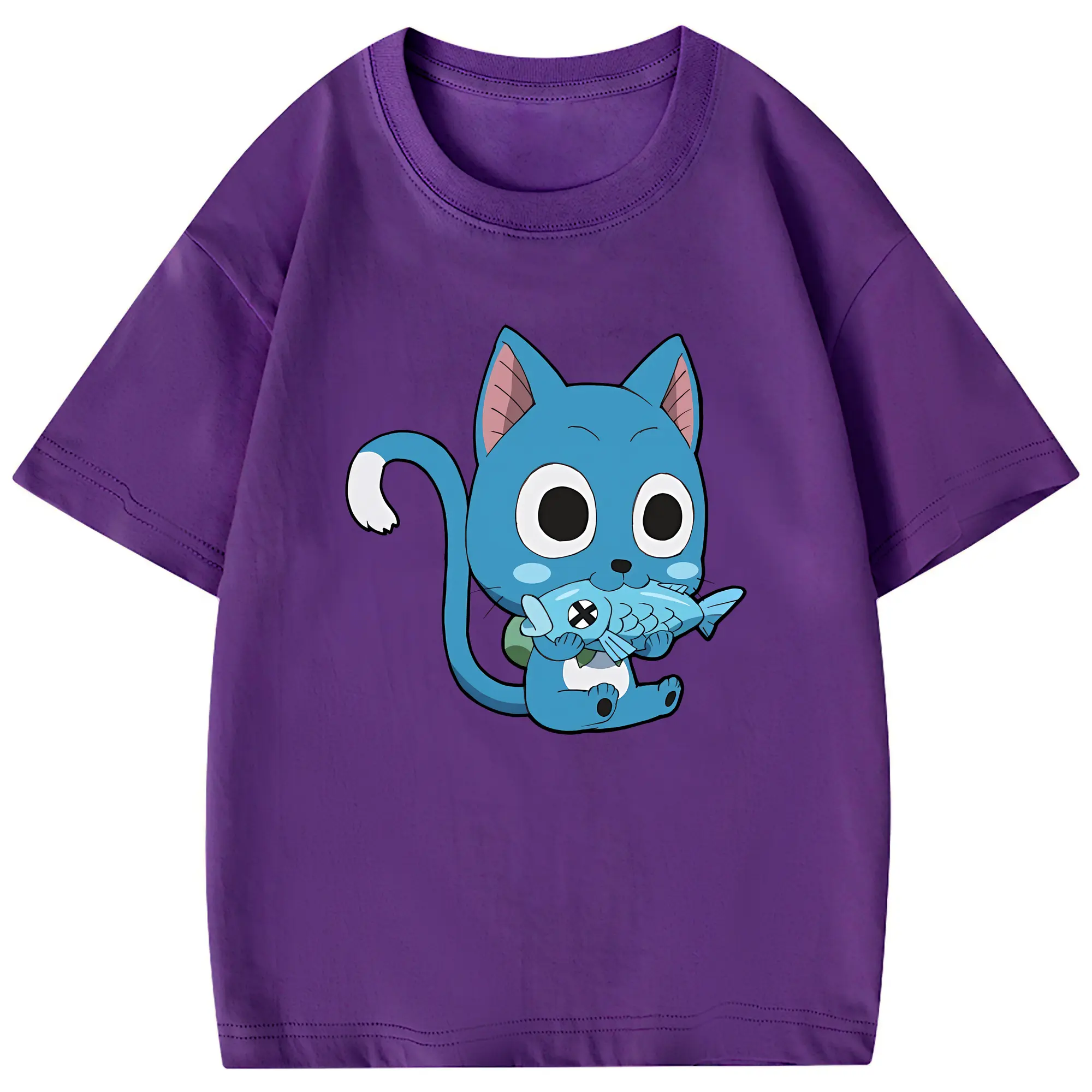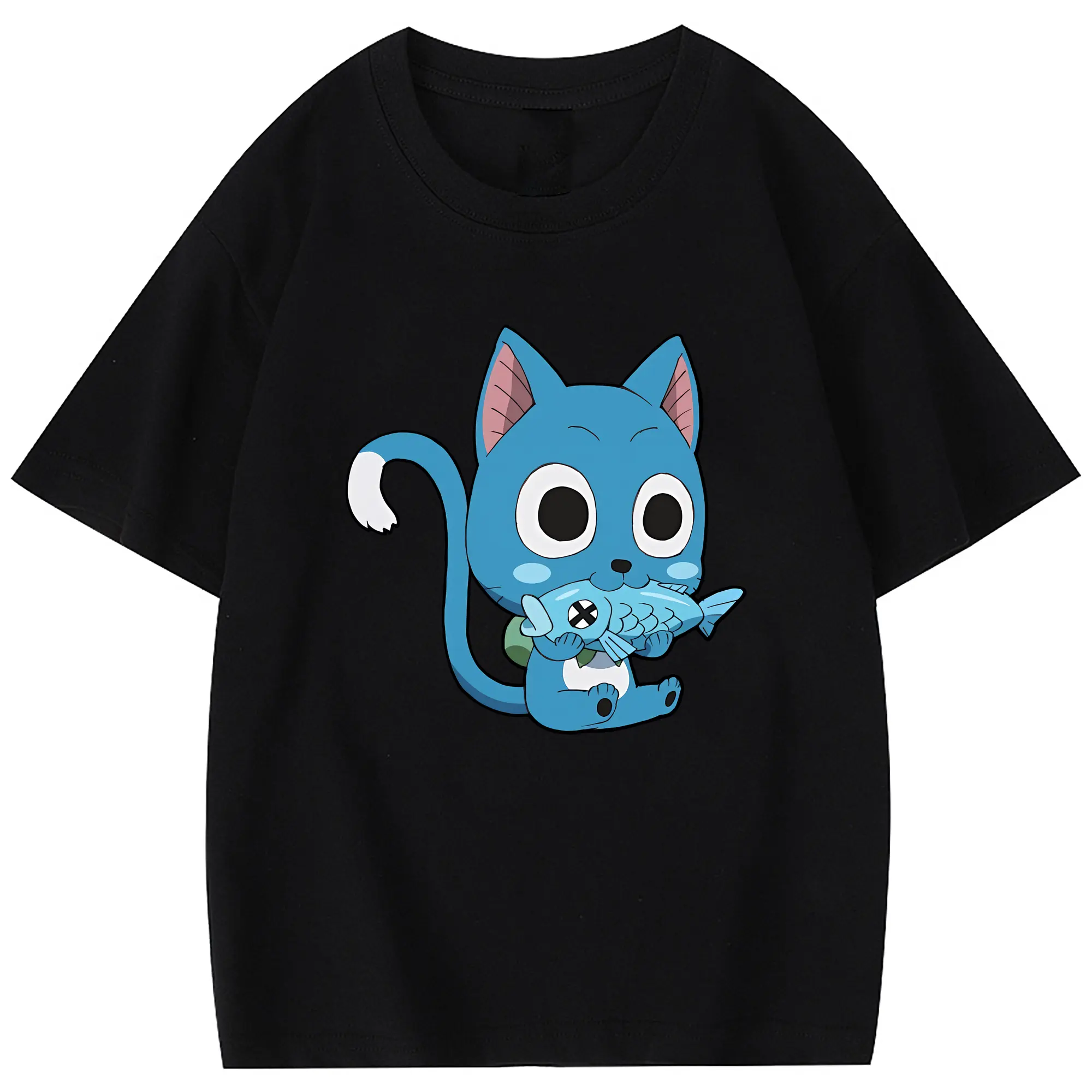 フェアリーテイル グッズ ハッピー - 綿100% 半袖Tシャツ ・ フロントプリント ・ 快適 通気性 ・ 日常使い 散歩 スポーツ用