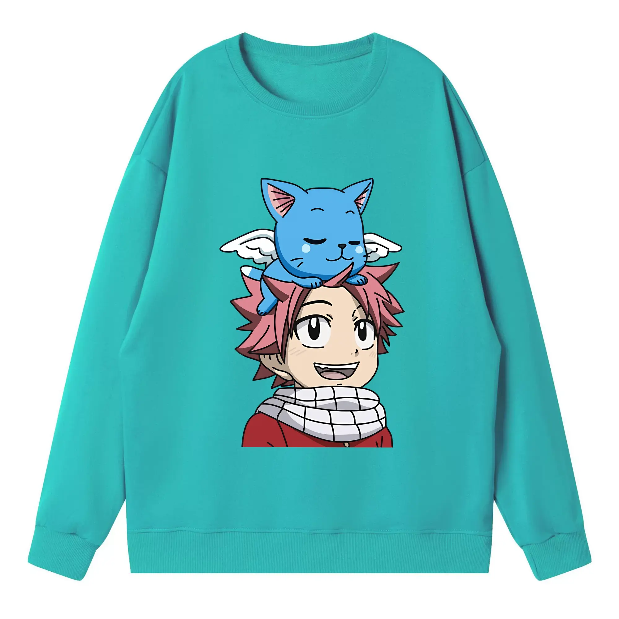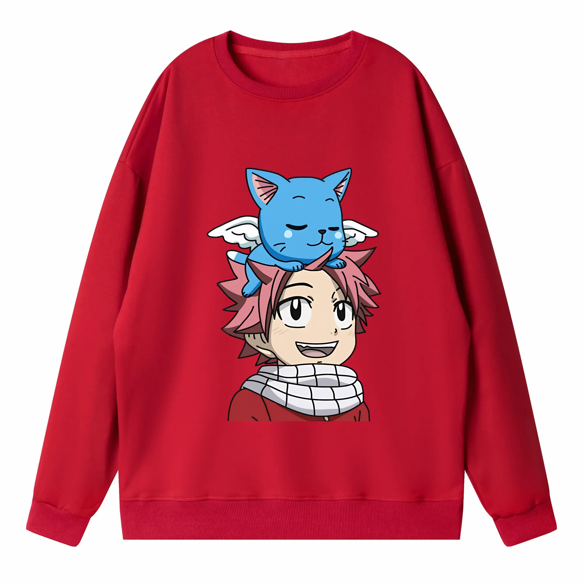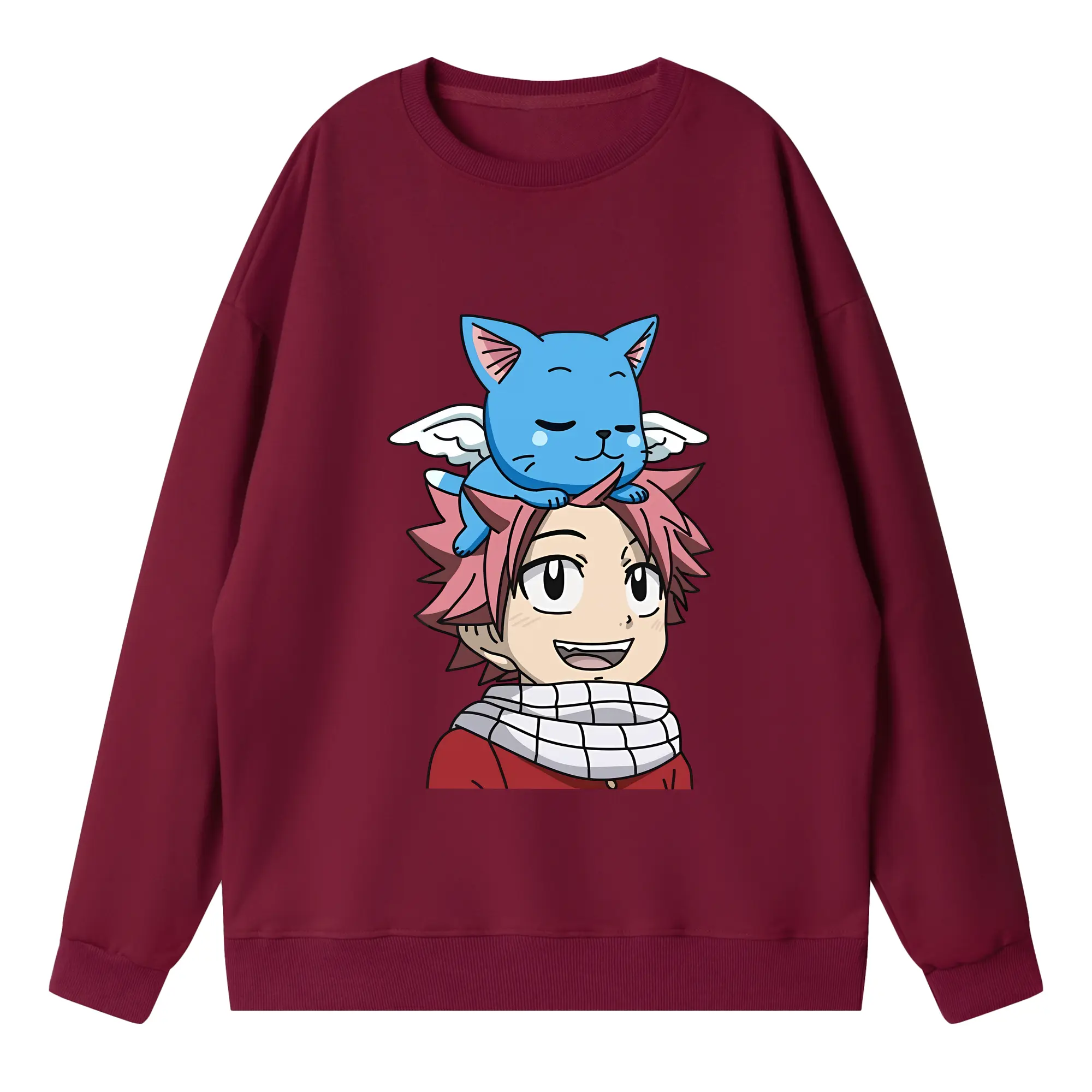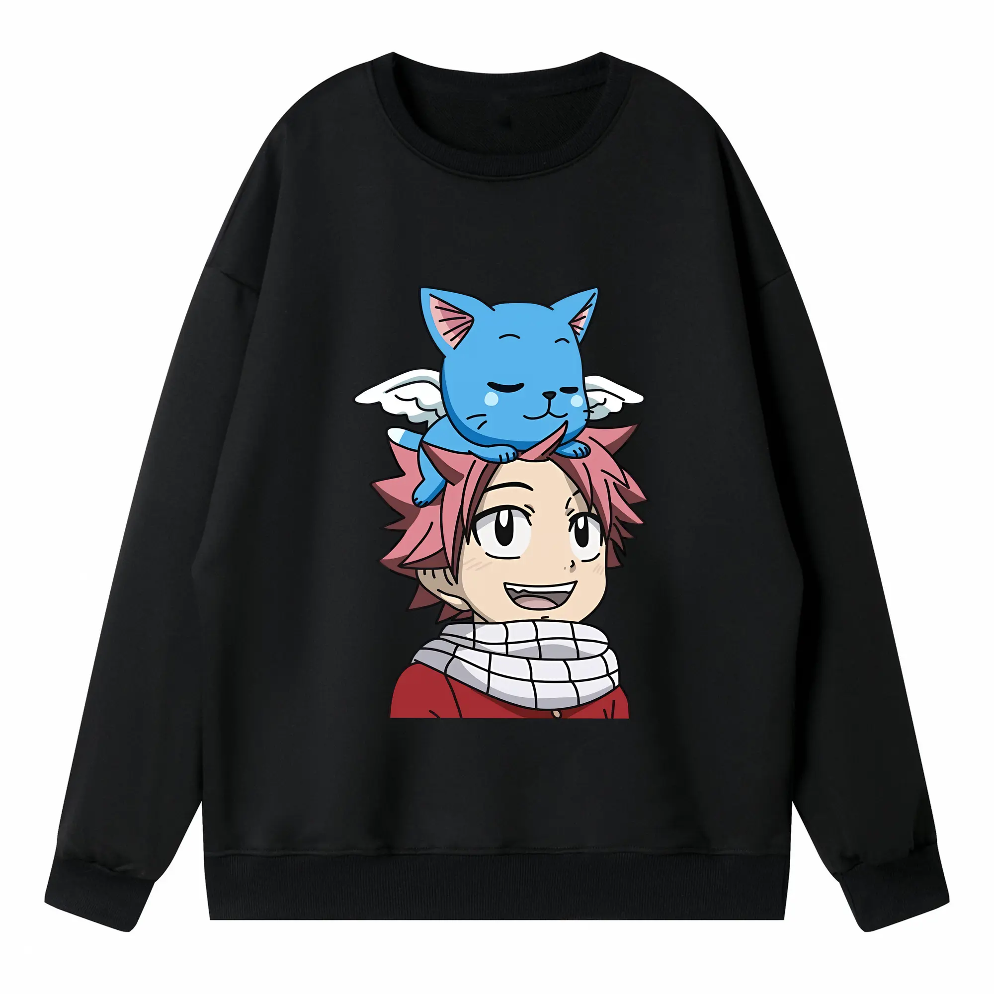 フェアリーテイル グッズ ハッピー - 高品質 クルーネック スウェット ・ コットン59% ポリエステル41% ・ ユニセックス 長袖 トレーナー ・ カジュアル デイリー スポーツ 散歩用