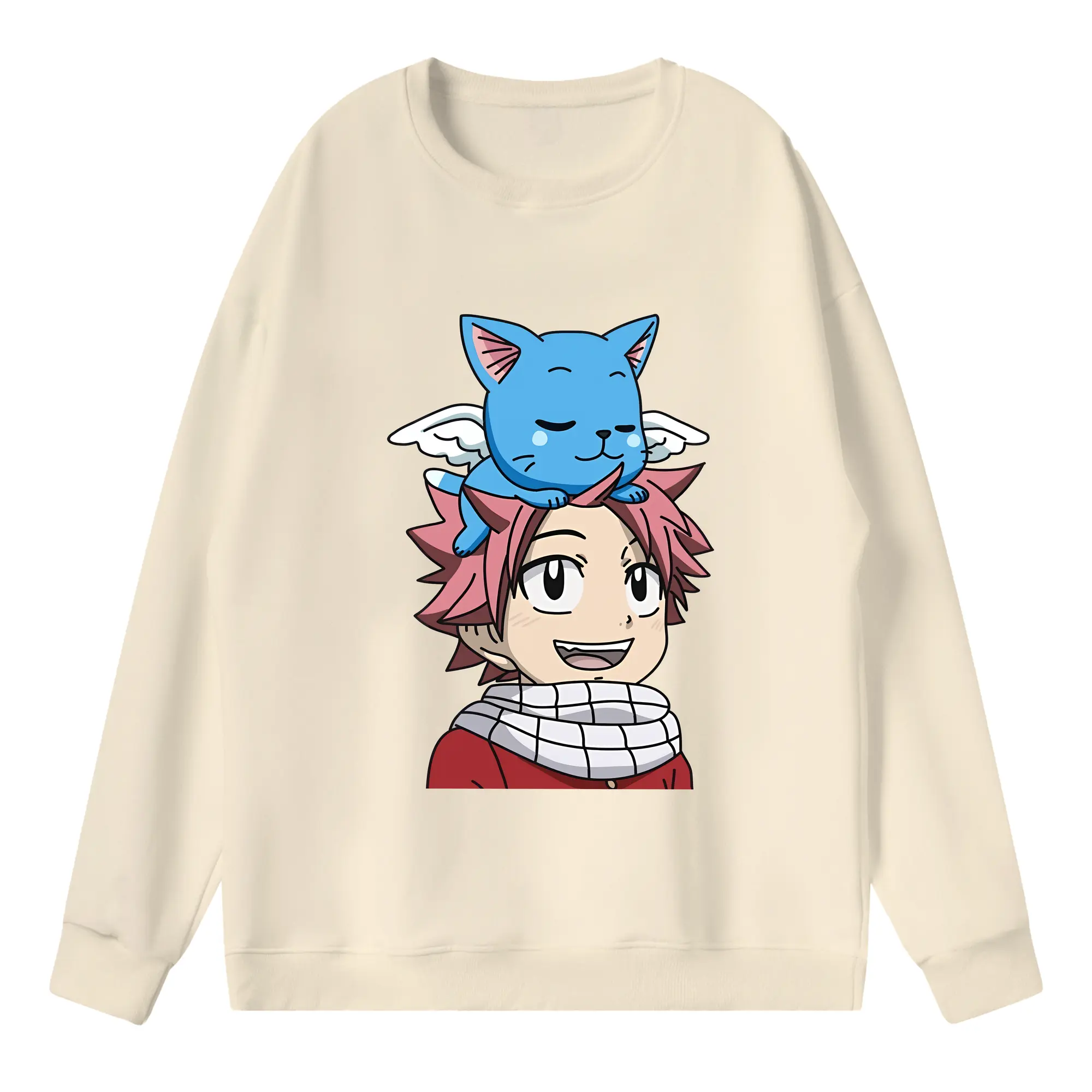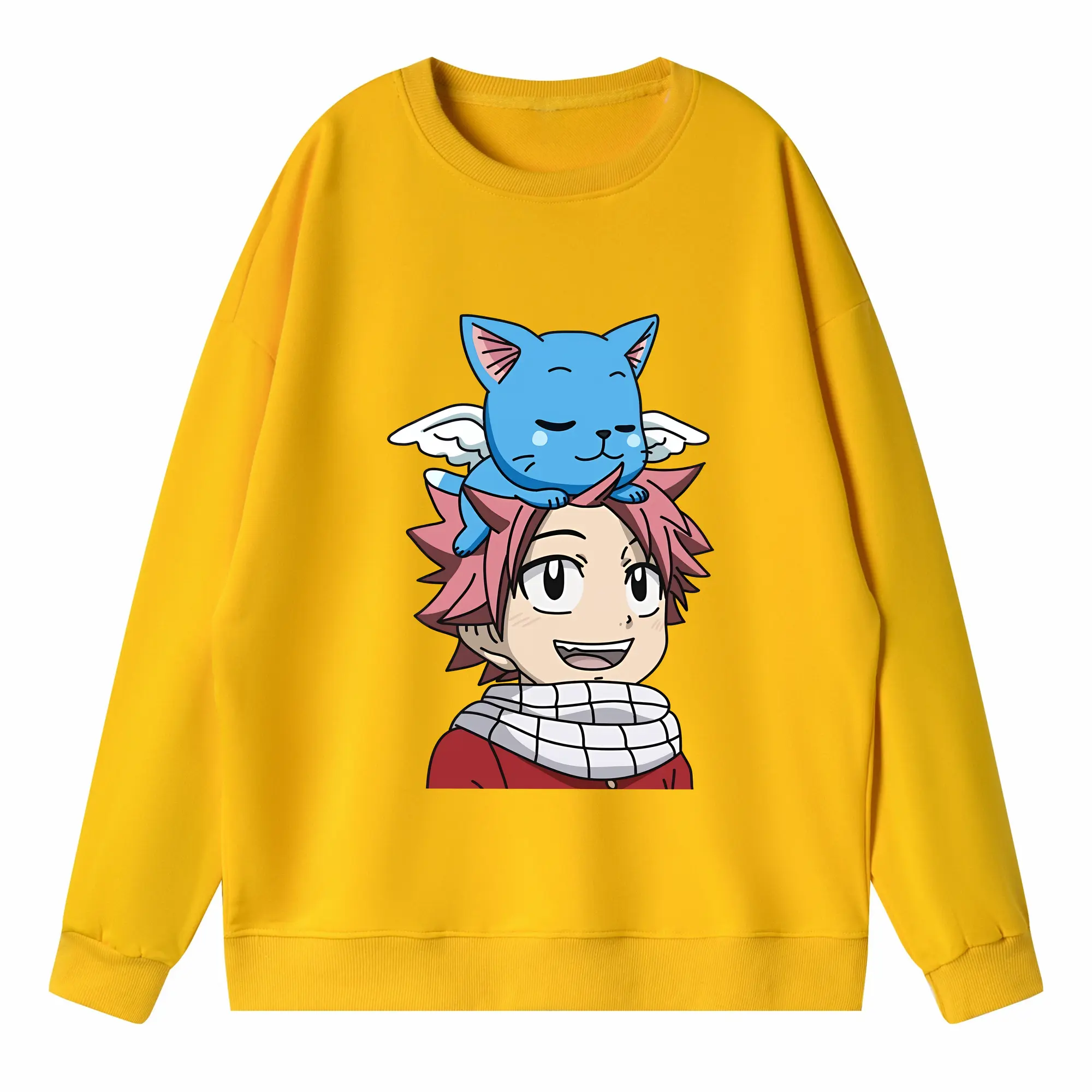 フェアリーテイル グッズ ハッピー - キッズ クルーネックスウェットシャツ ・ フロントプリント ・ 綿80% ポリエステル20% ・ 快適 通学 スポーツ 日常使い お散歩用