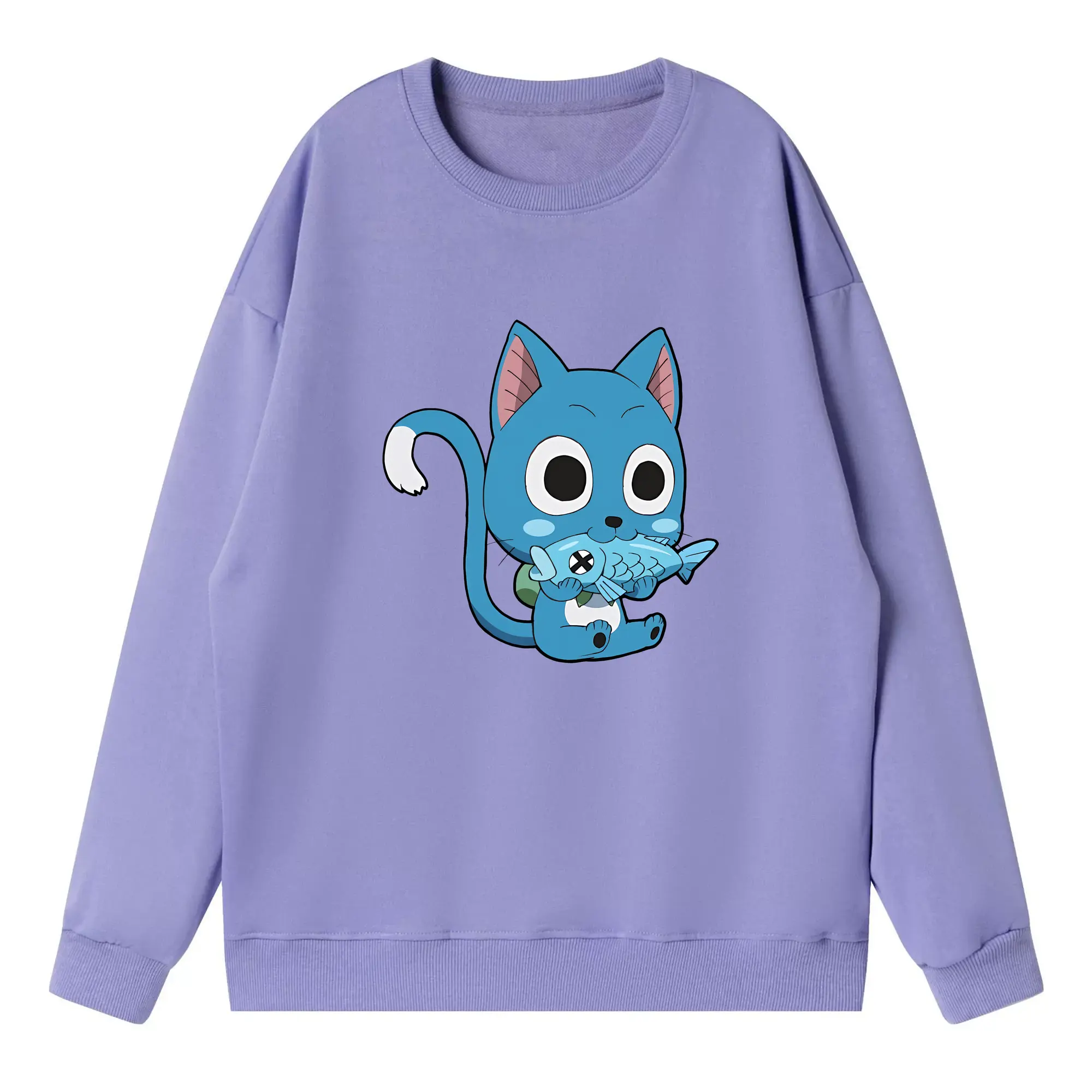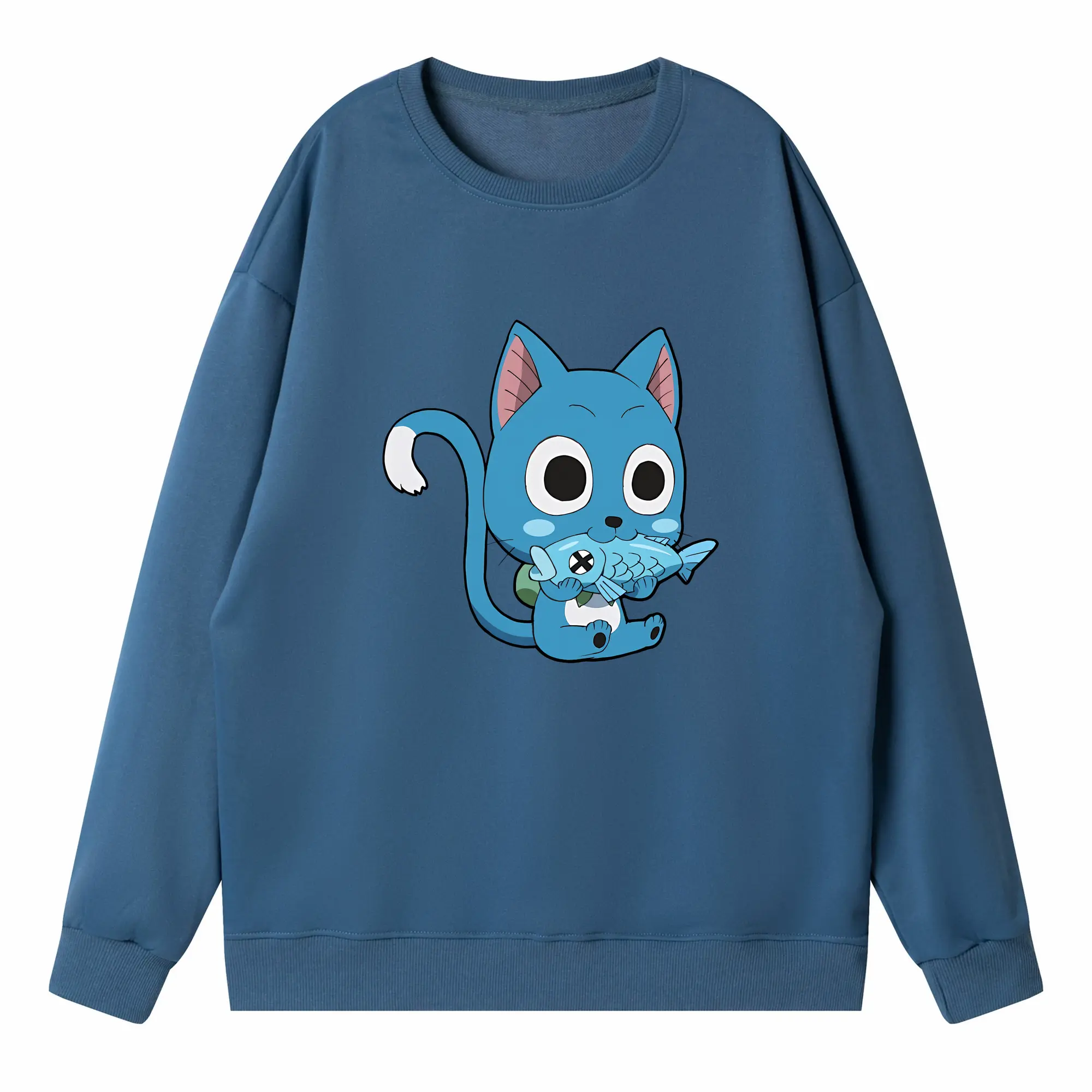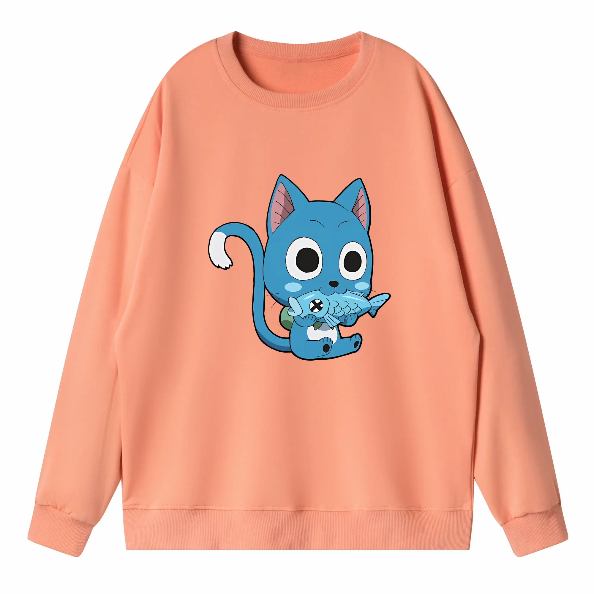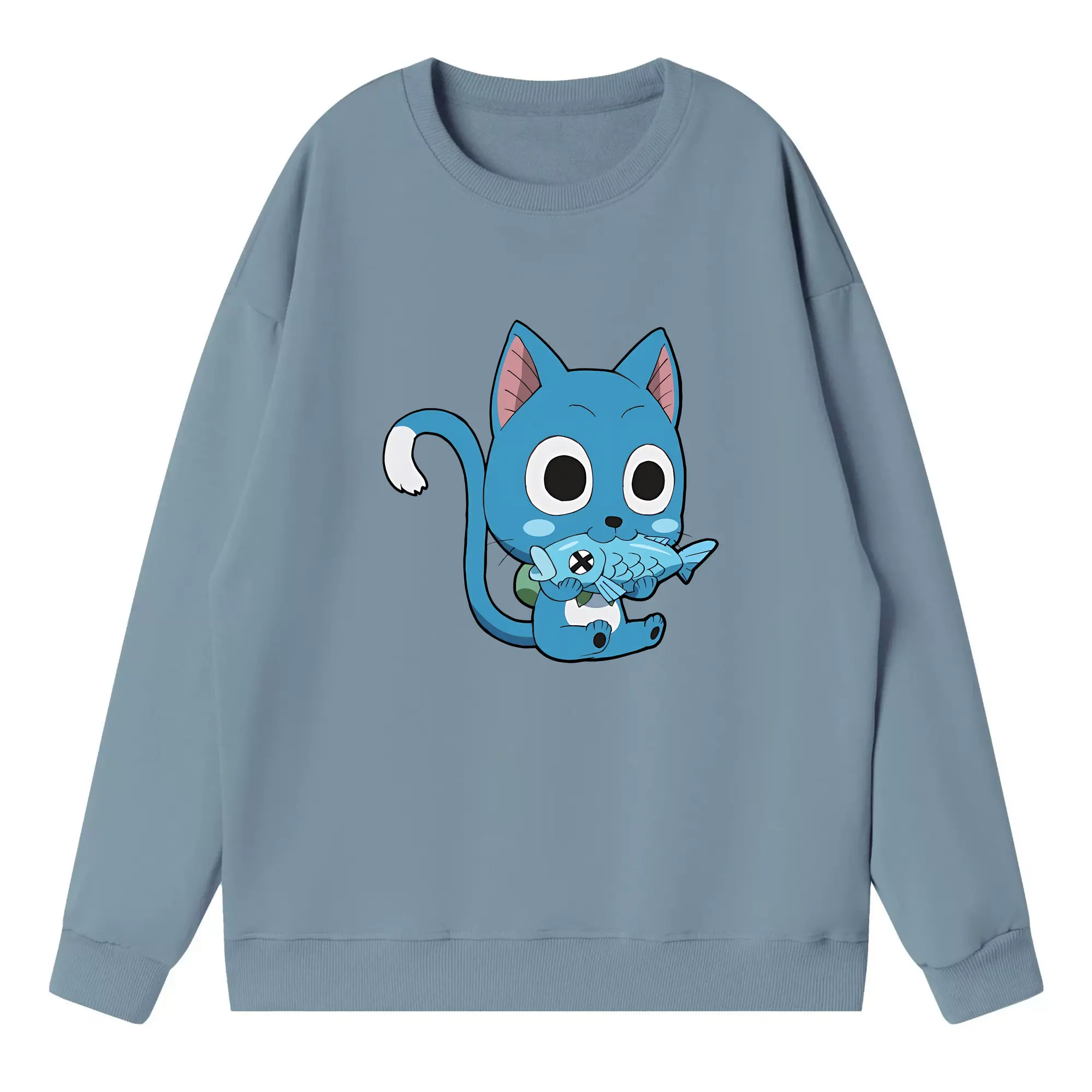 フェアリーテイル グッズ ハッピー - 高品質 クルーネック スウェット ・ コットン59% ポリエステル41% ・ ユニセックス 長袖 トレーナー ・ カジュアル デイリー スポーツ 散歩用