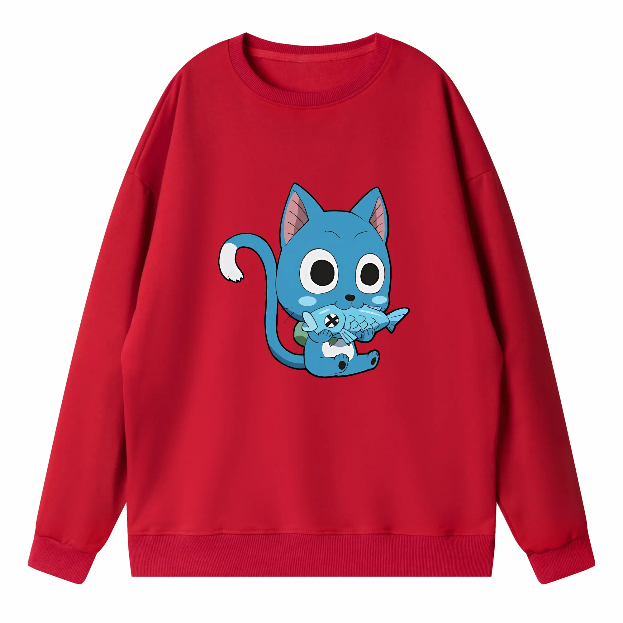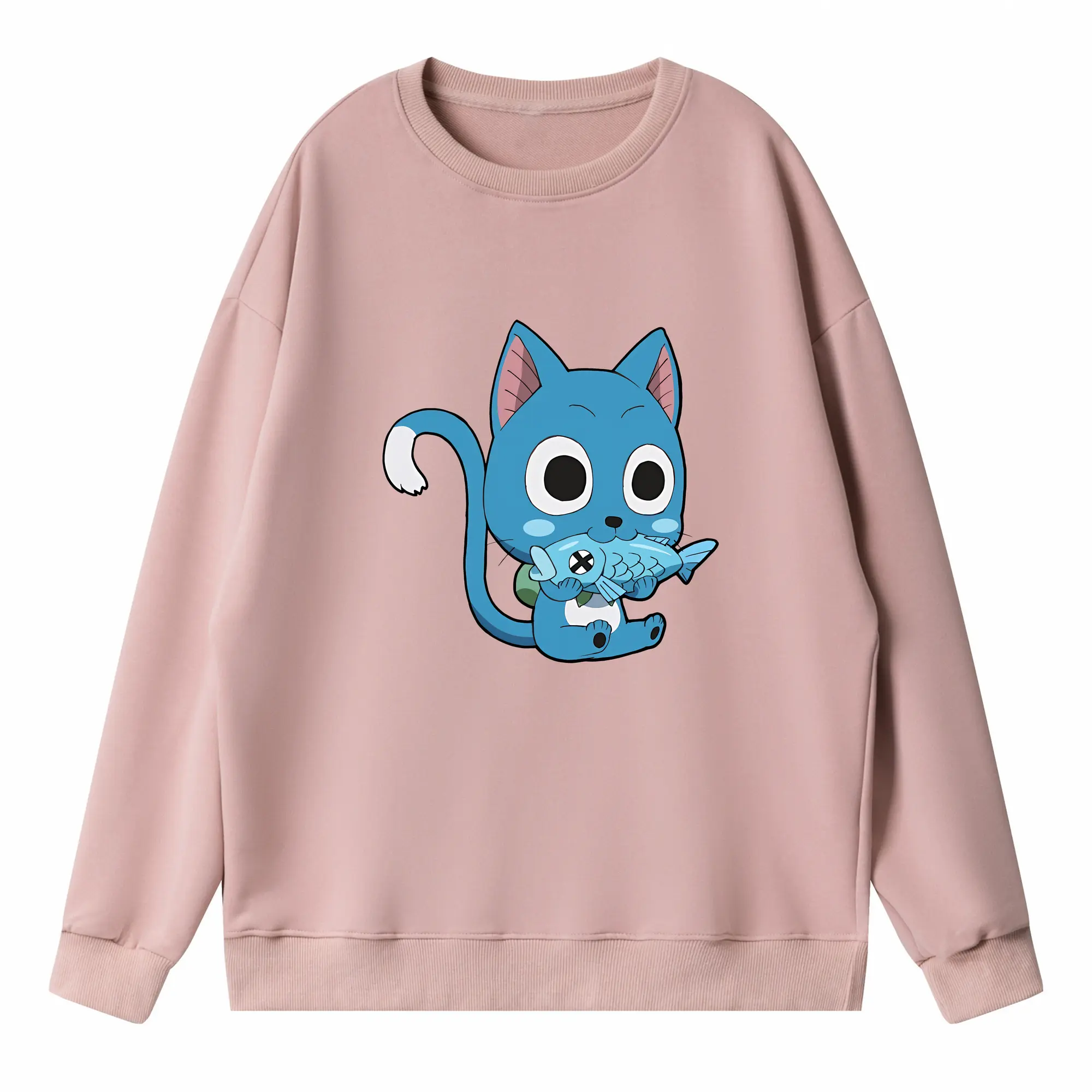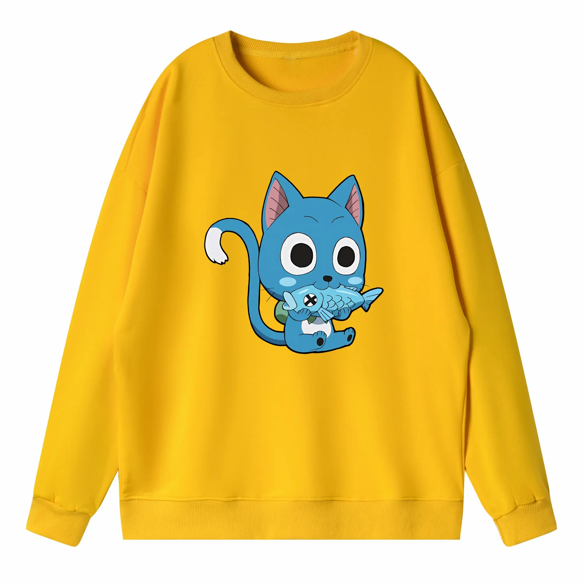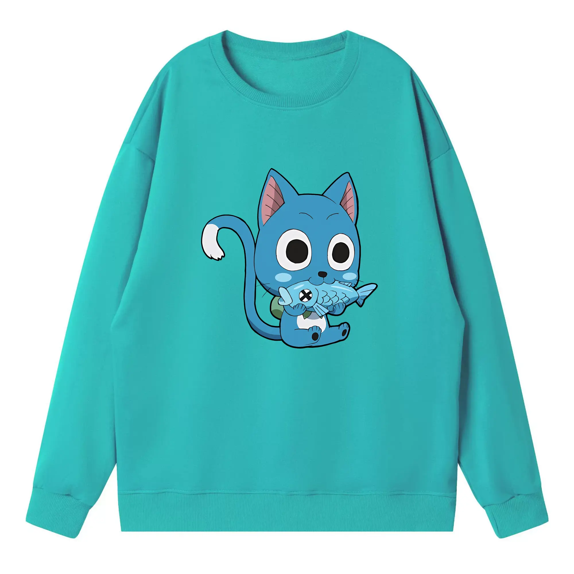 フェアリーテイル グッズ ハッピー - 高品質 クルーネック スウェット ・ コットン59% ポリエステル41% ・ ユニセックス 長袖 トレーナー ・ カジュアル デイリー スポーツ 散歩用