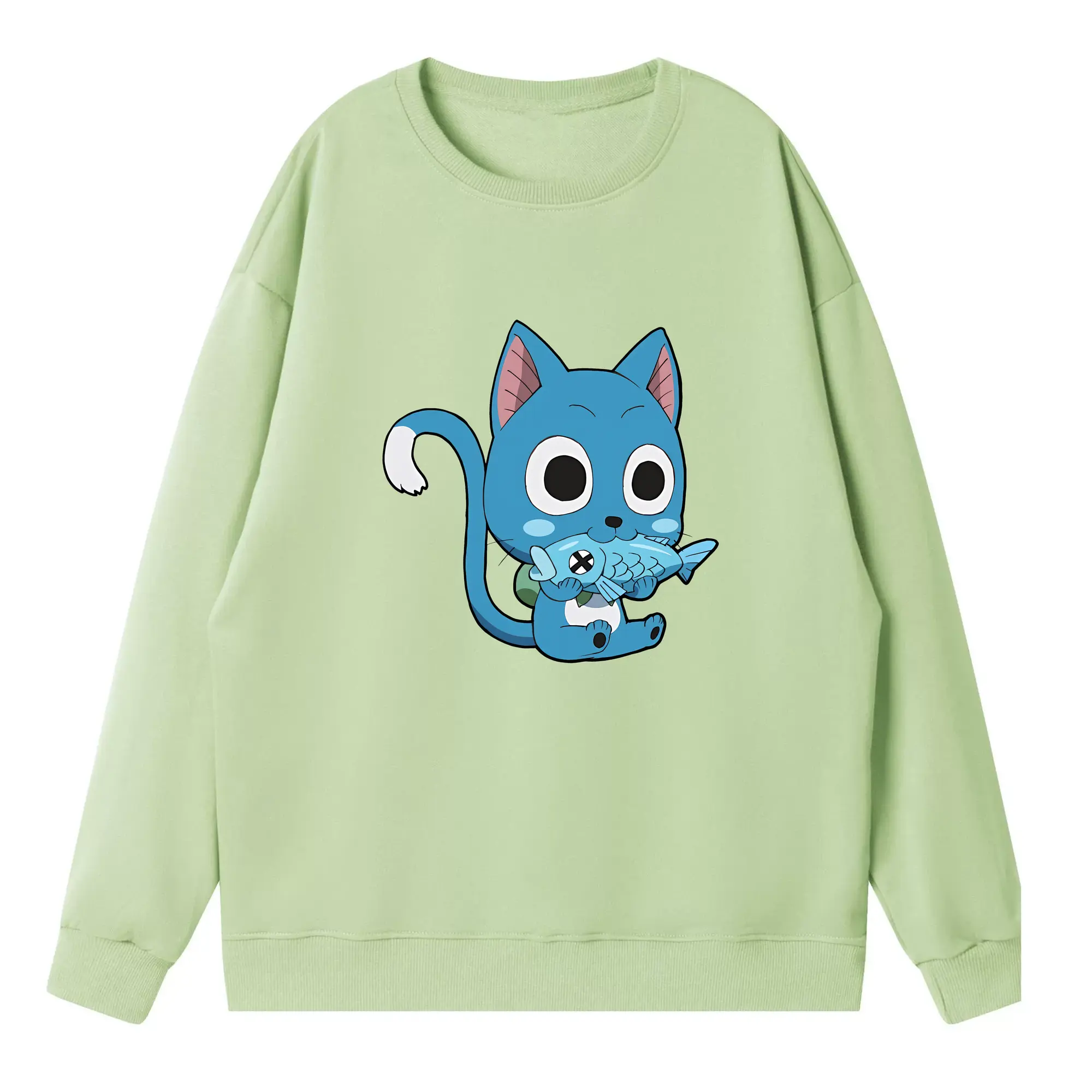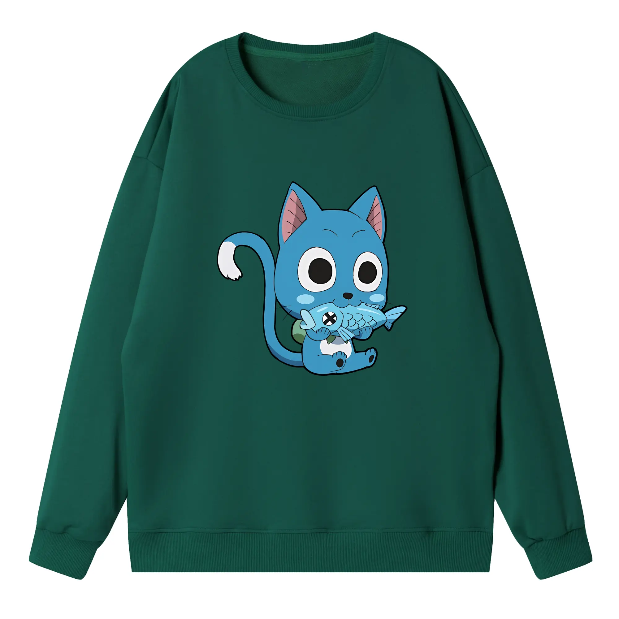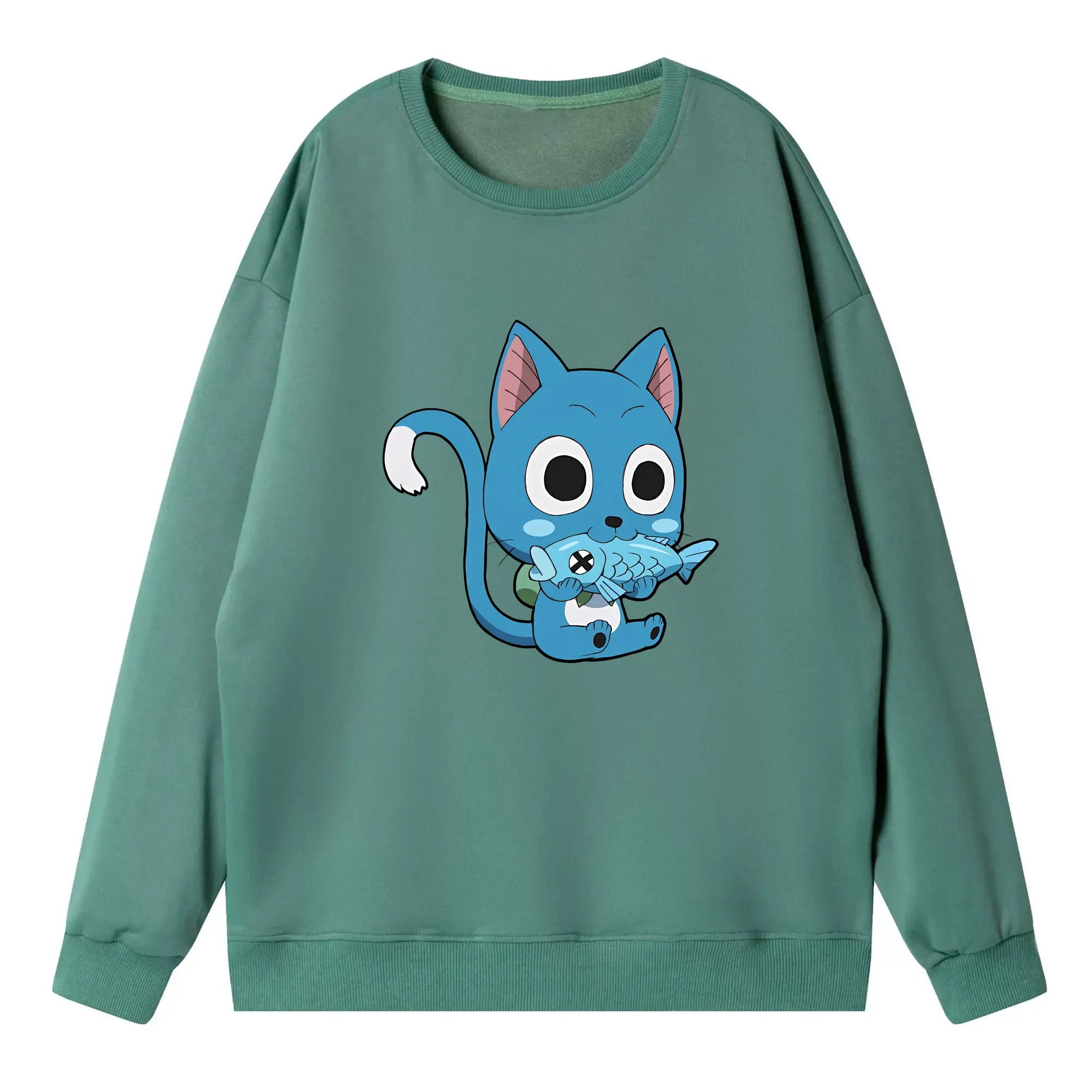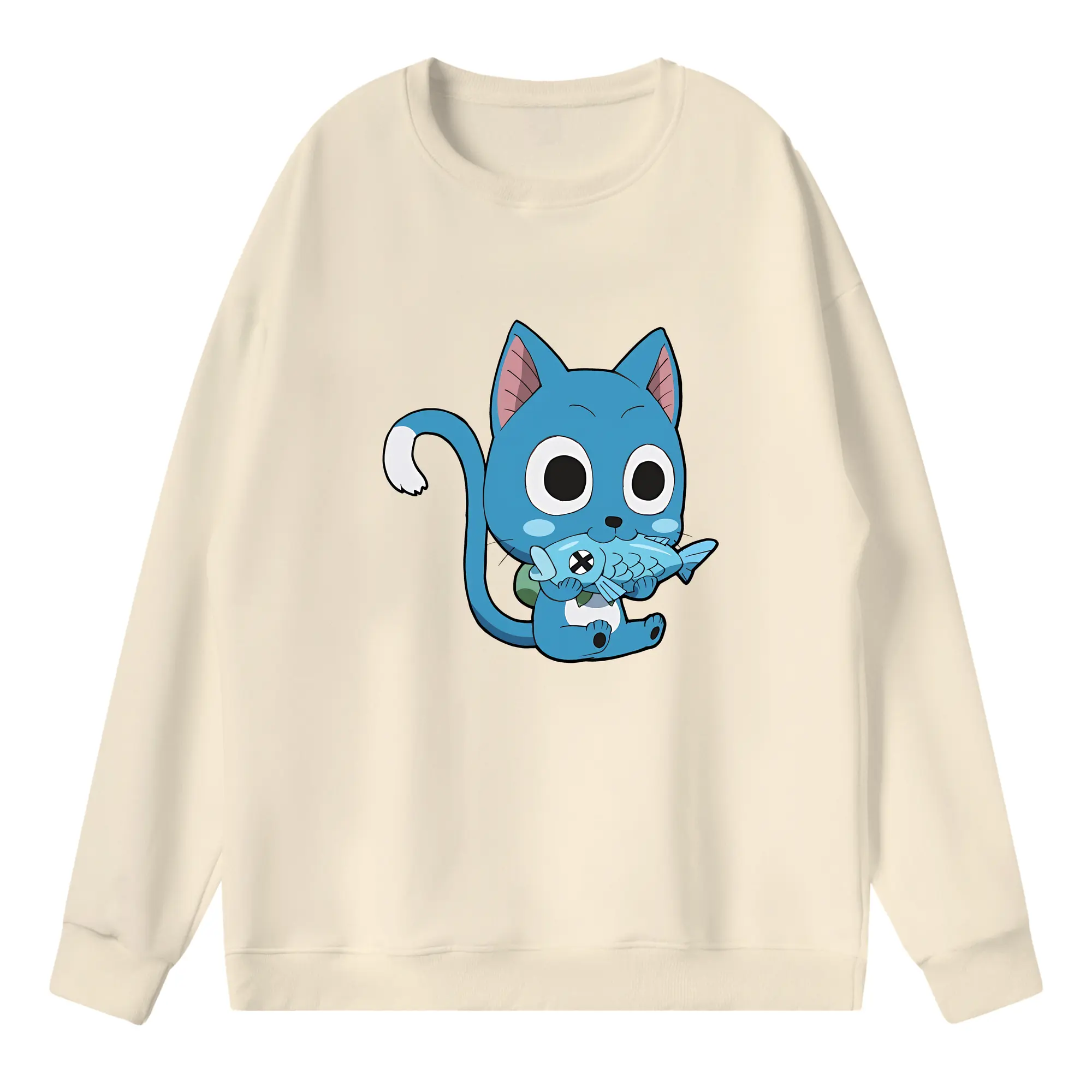フェアリーテイル グッズ ハッピー - 高品質 クルーネック スウェット ・ コットン59% ポリエステル41% ・ ユニセックス 長袖 トレーナー ・ カジュアル デイリー スポーツ 散歩用