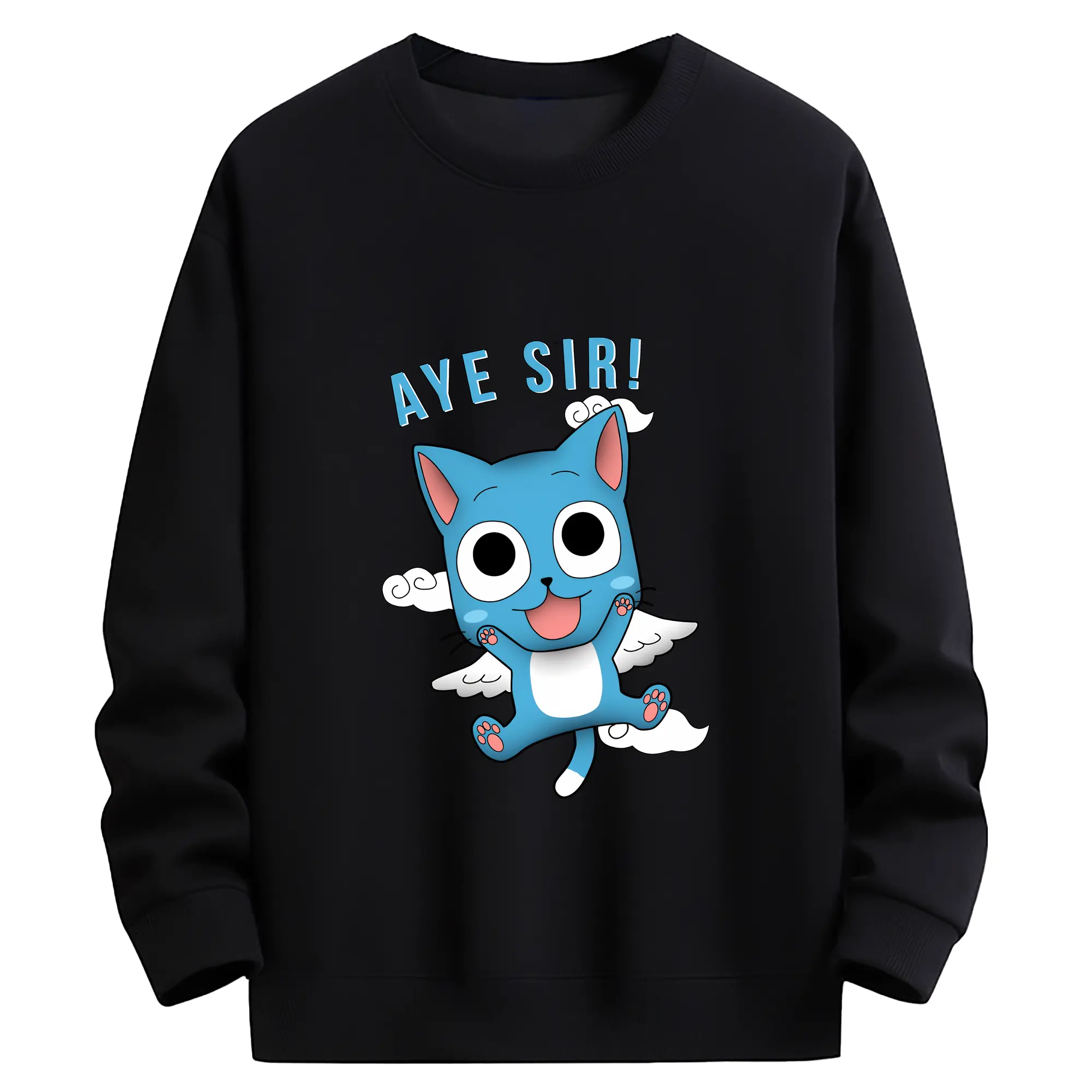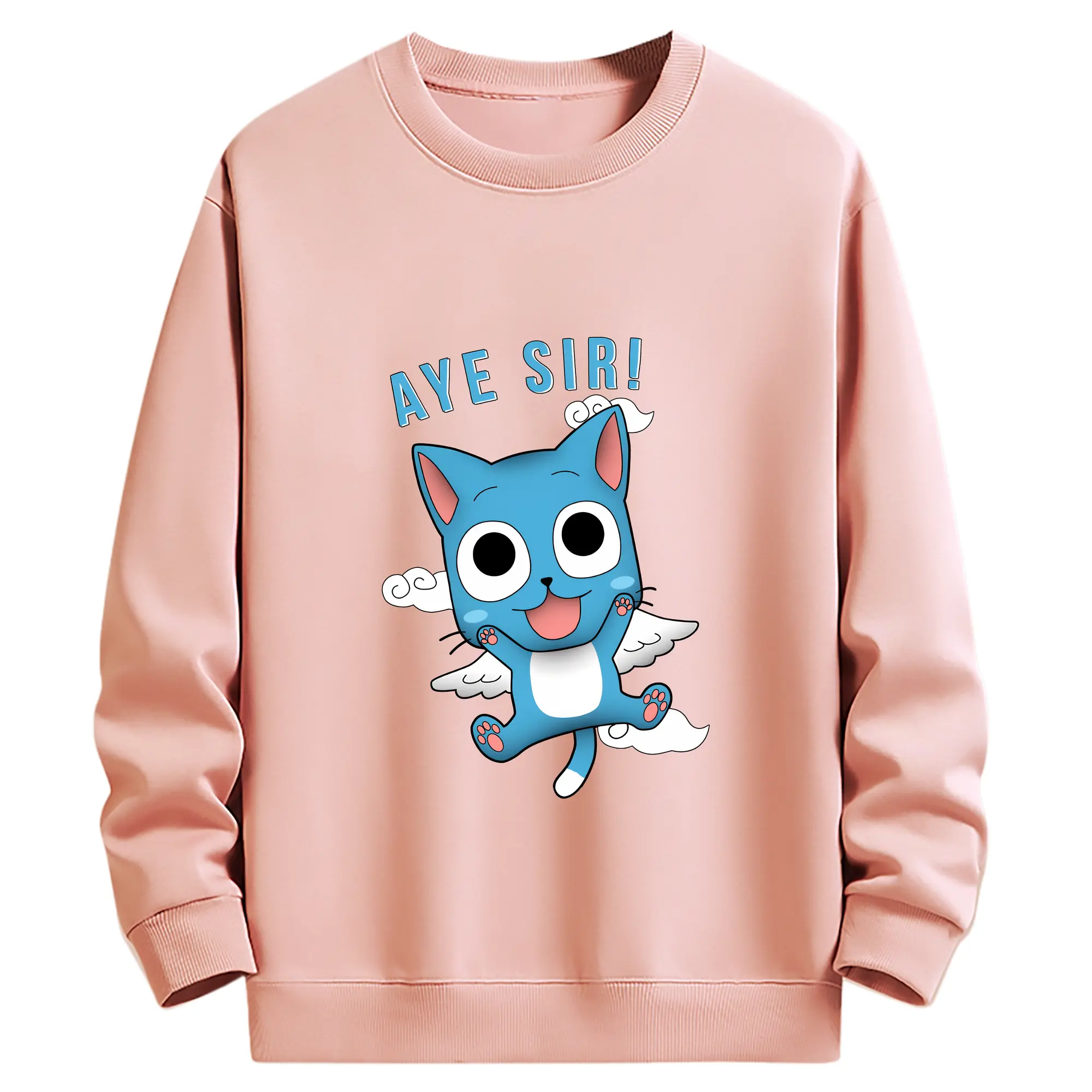 フェアリーテイル グッズ ハッピー - 高品質 クルーネック スウェット ・ コットン59% ポリエステル41% ・ ユニセックス 長袖 トレーナー ・ カジュアル デイリー スポーツ 散歩用