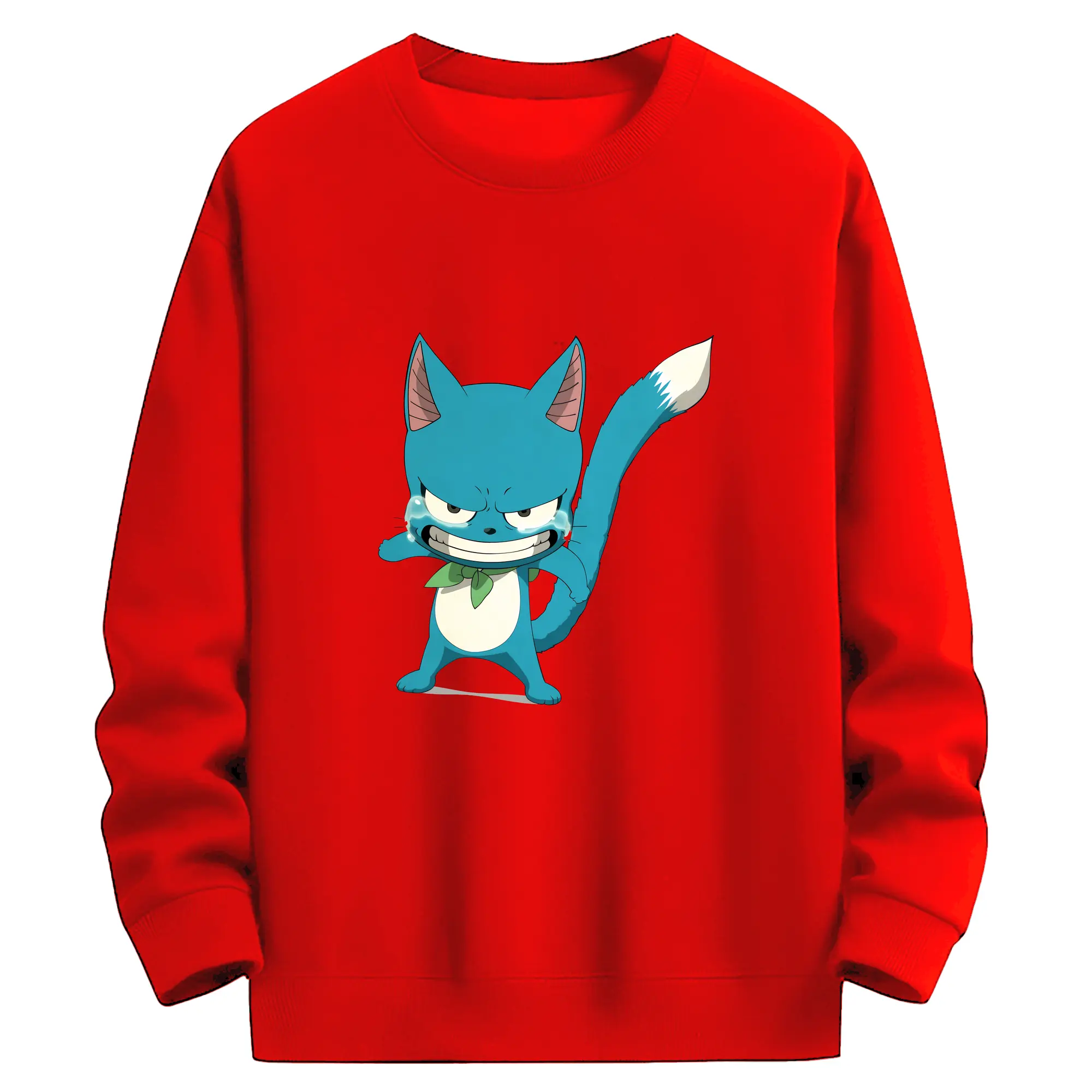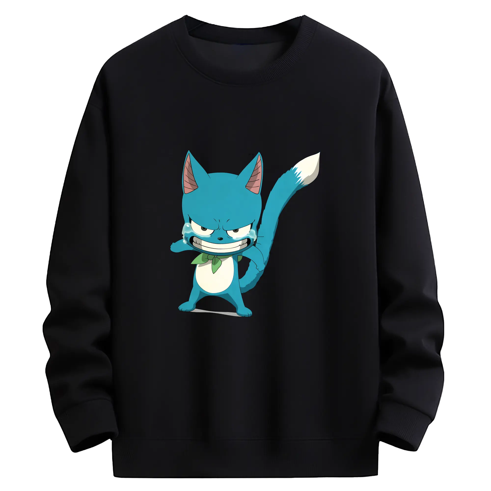 フェアリーテイル グッズ ハッピー - 高品質 クルーネック スウェット ・ コットン59% ポリエステル41% ・ ユニセックス 長袖 トレーナー ・ カジュアル デイリー スポーツ 散歩用