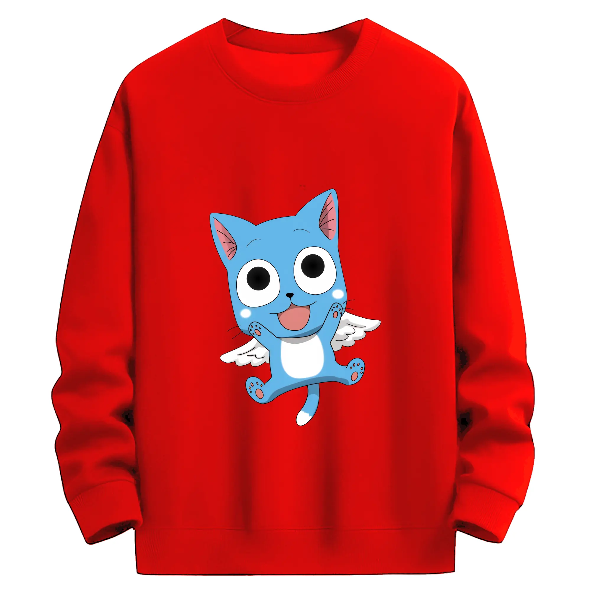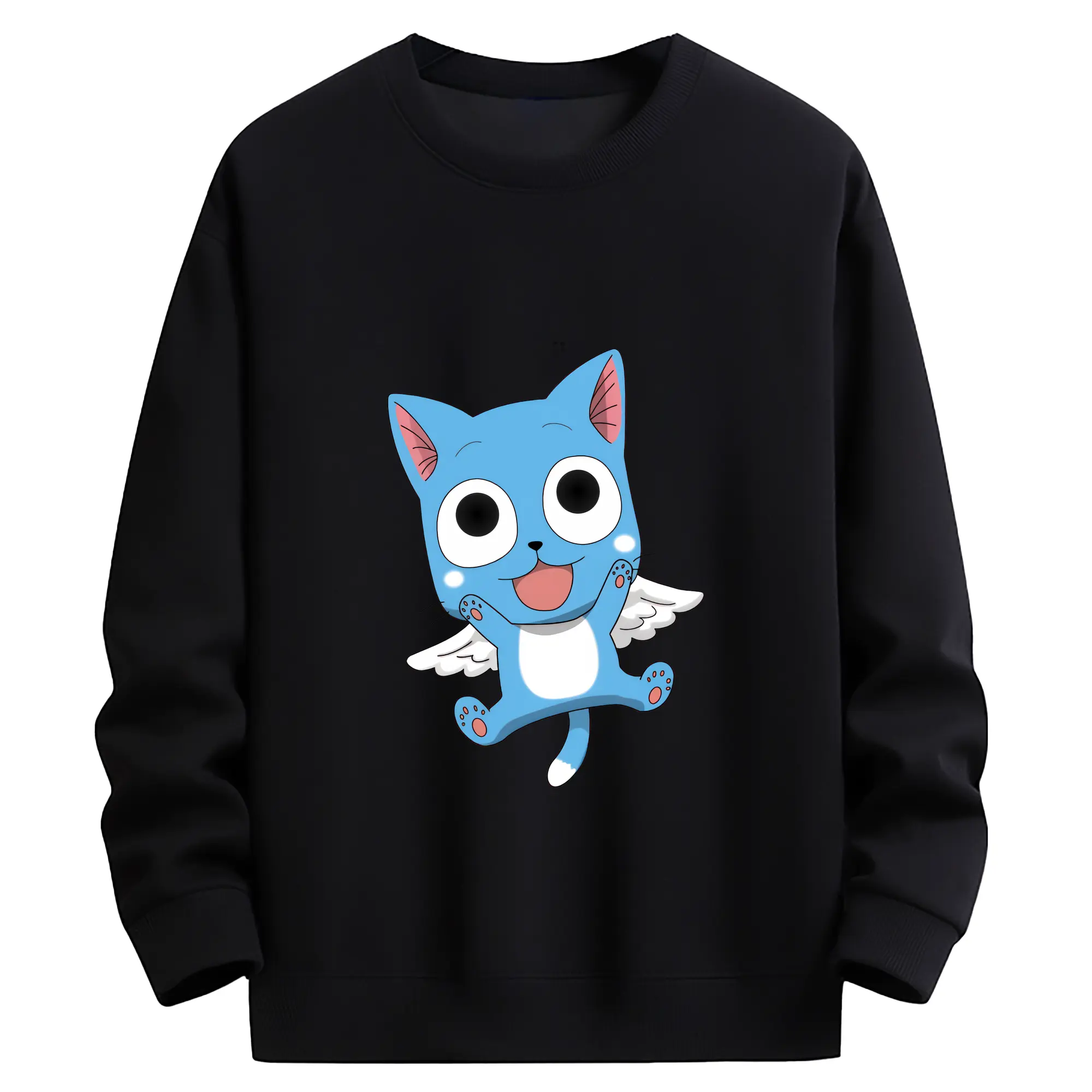 フェアリーテイル グッズ ハッピー - 高品質 クルーネック スウェット ・ コットン59% ポリエステル41% ・ ユニセックス 長袖 トレーナー ・ カジュアル デイリー スポーツ 散歩用
