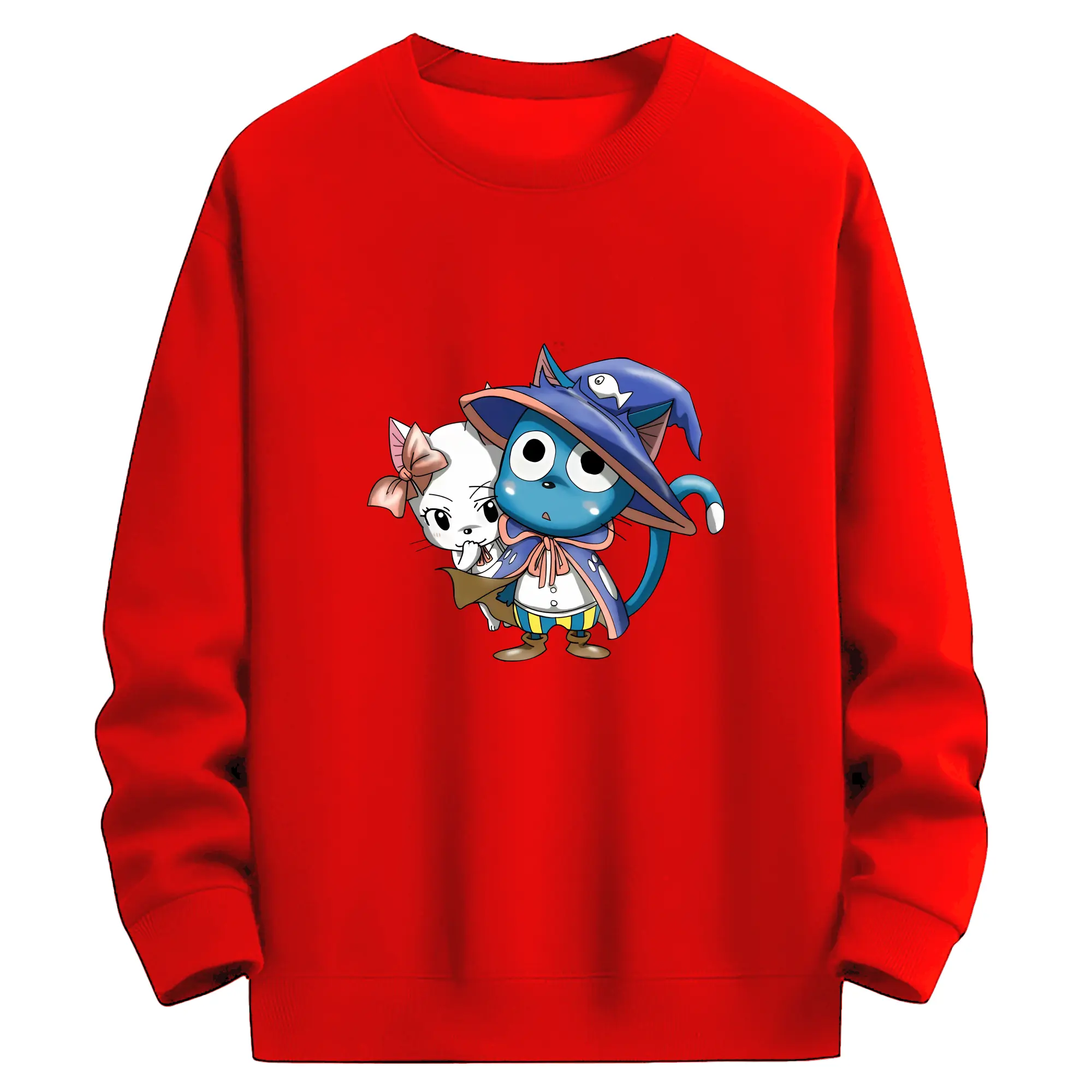 フェアリーテイル グッズ ハッピー - 高品質 クルーネック スウェット ・ コットン59% ポリエステル41% ・ ユニセックス 長袖 トレーナー ・ カジュアル デイリー スポーツ 散歩用